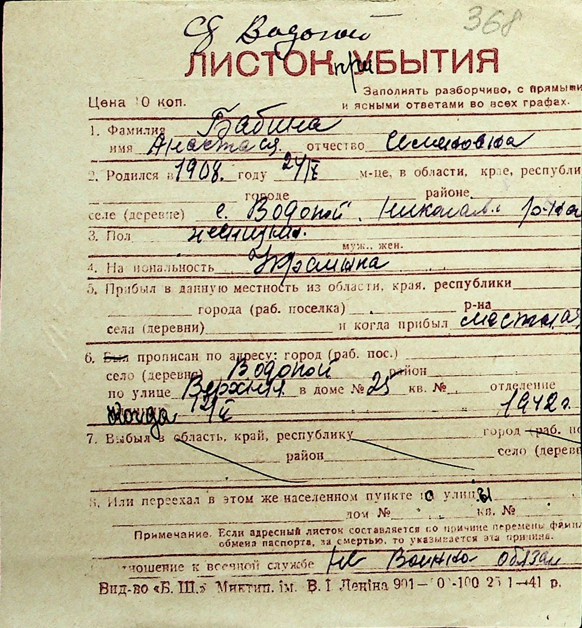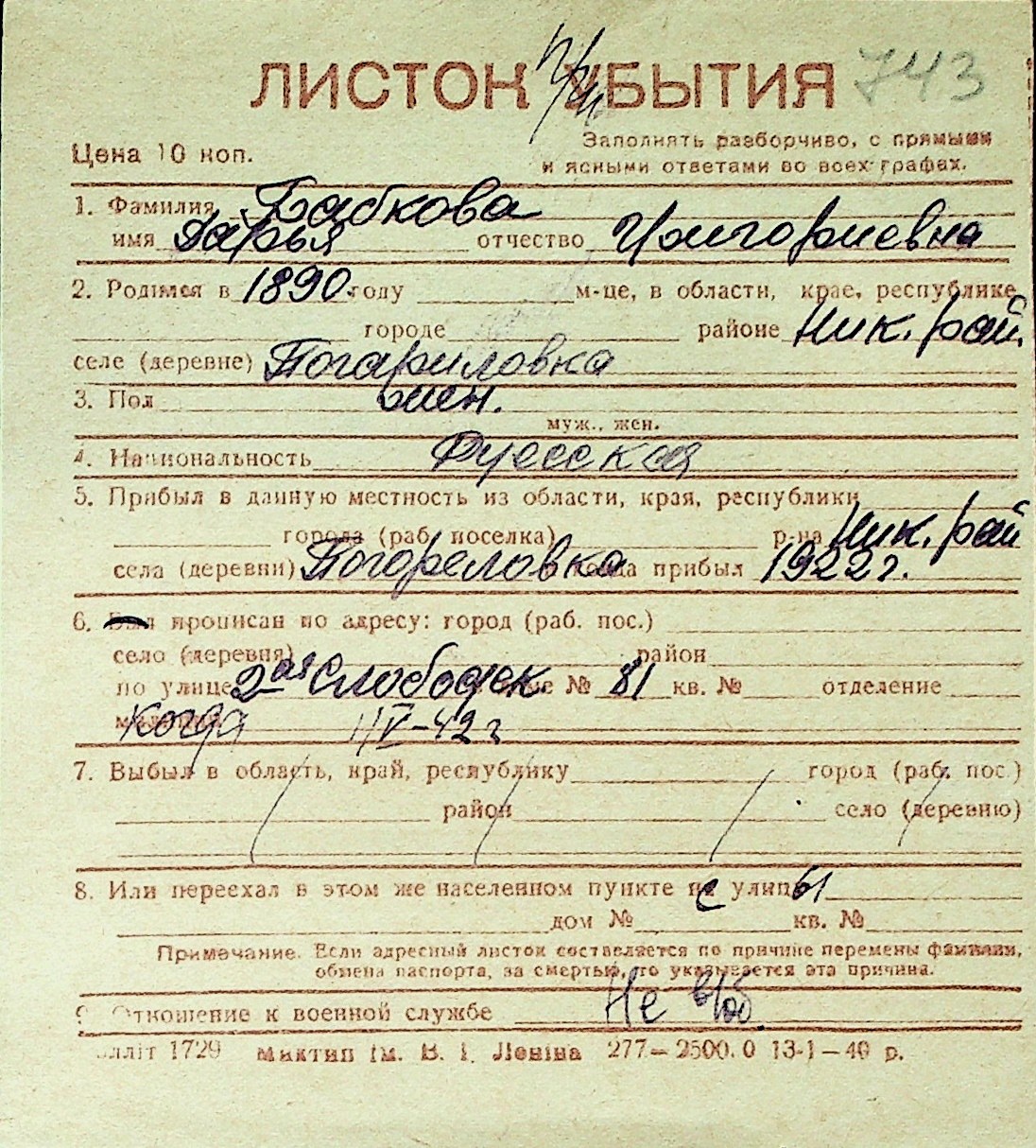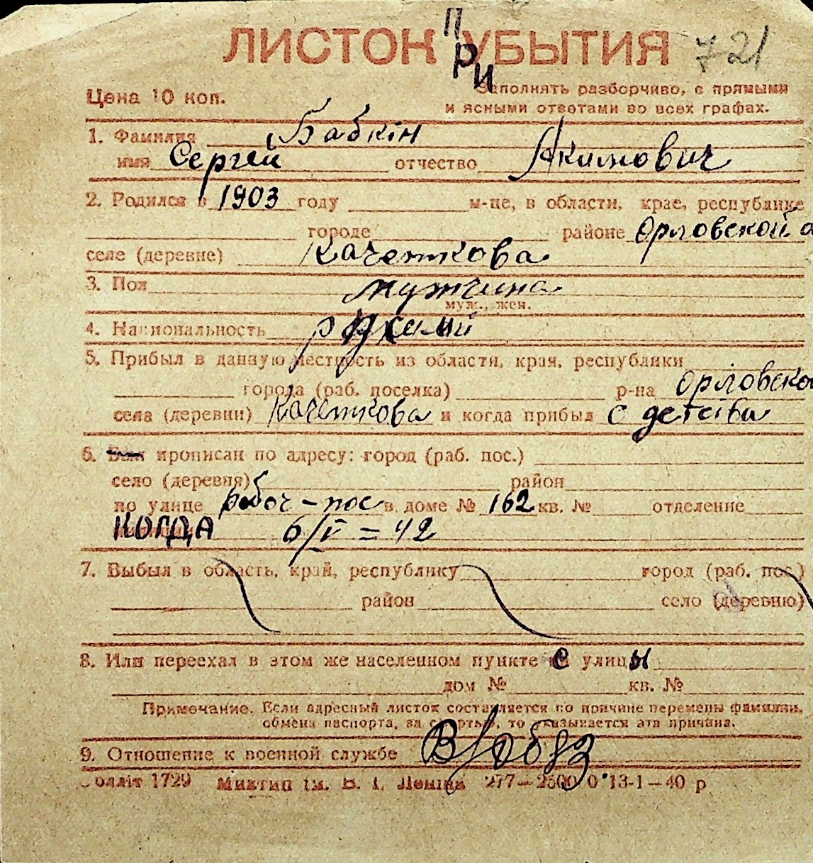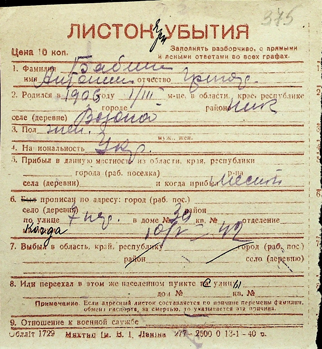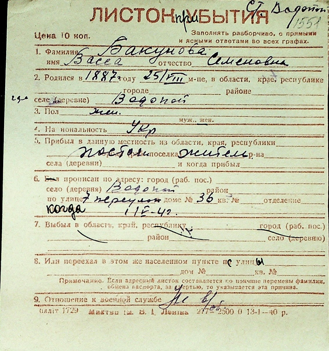 ◦ ◦ Перелік карток на осіб, які мешкали у м. Миколаїв у період окупації 1941–1944 років