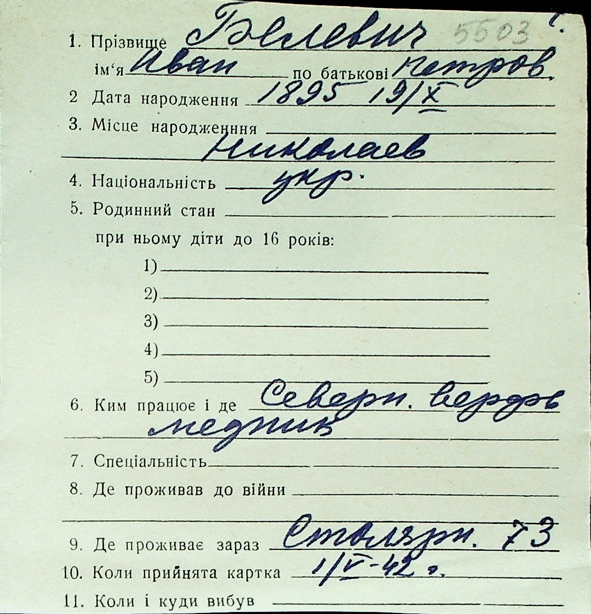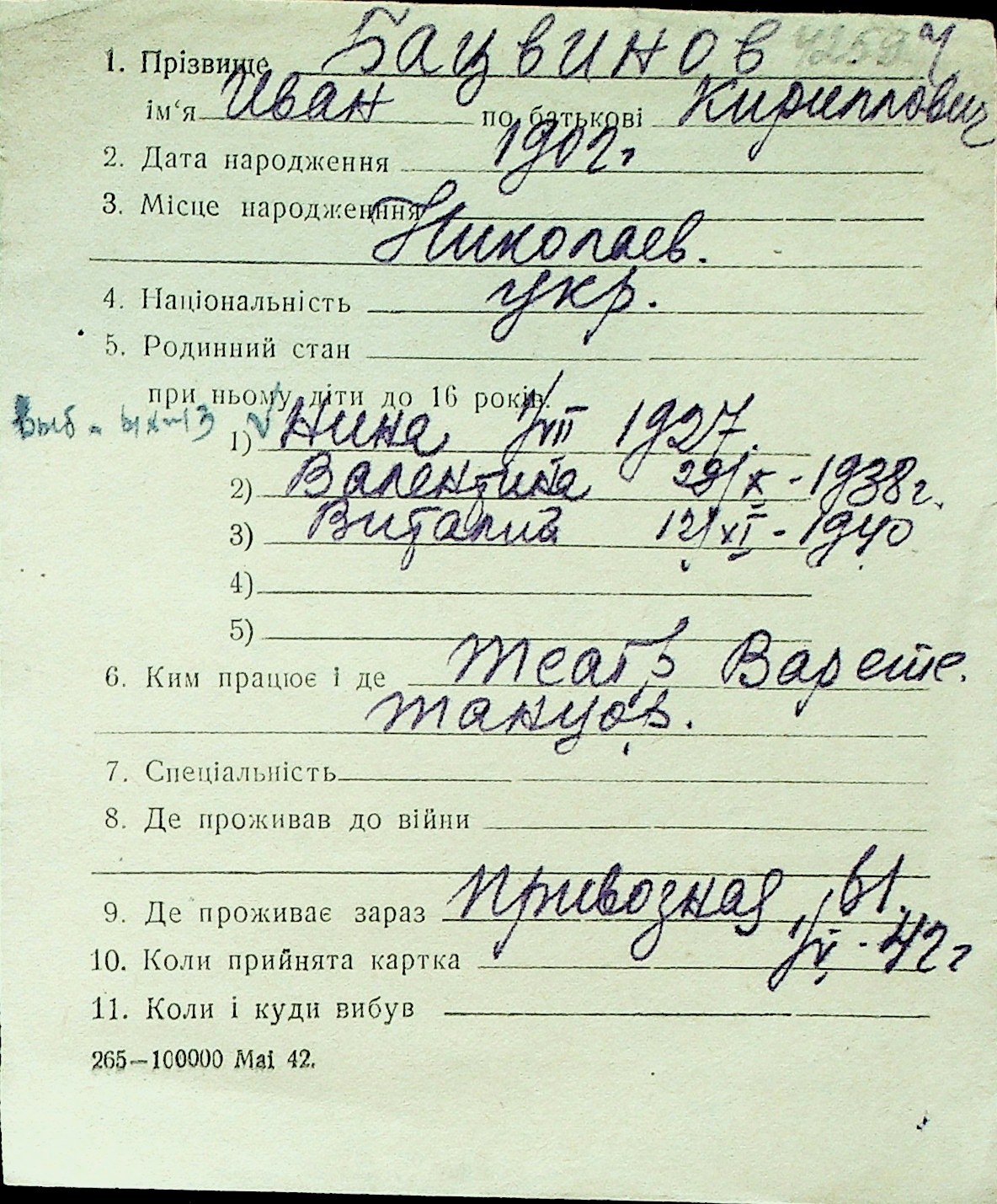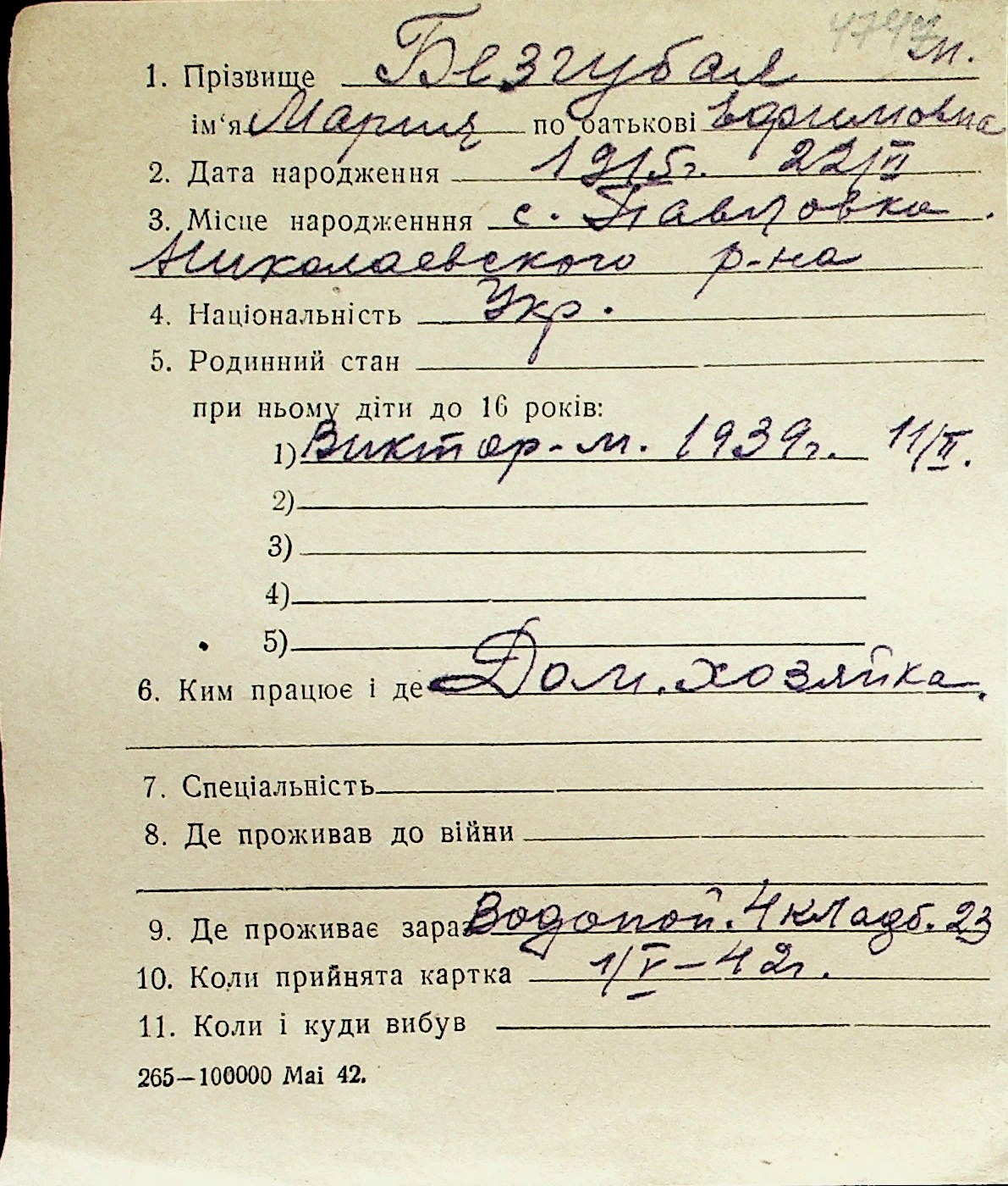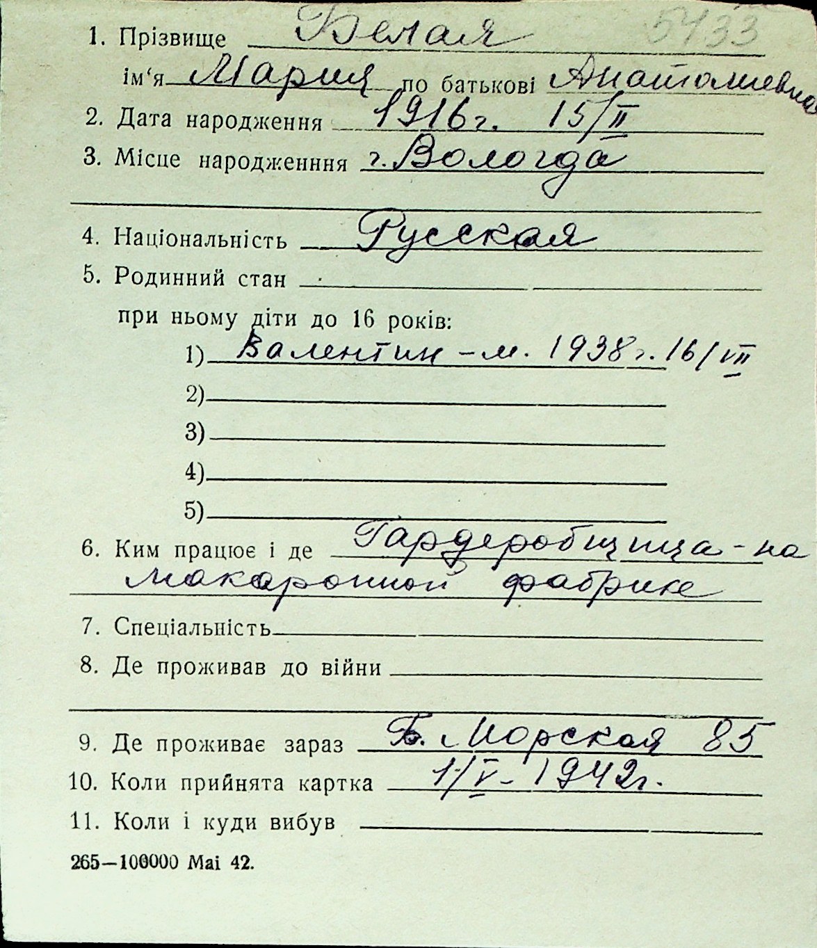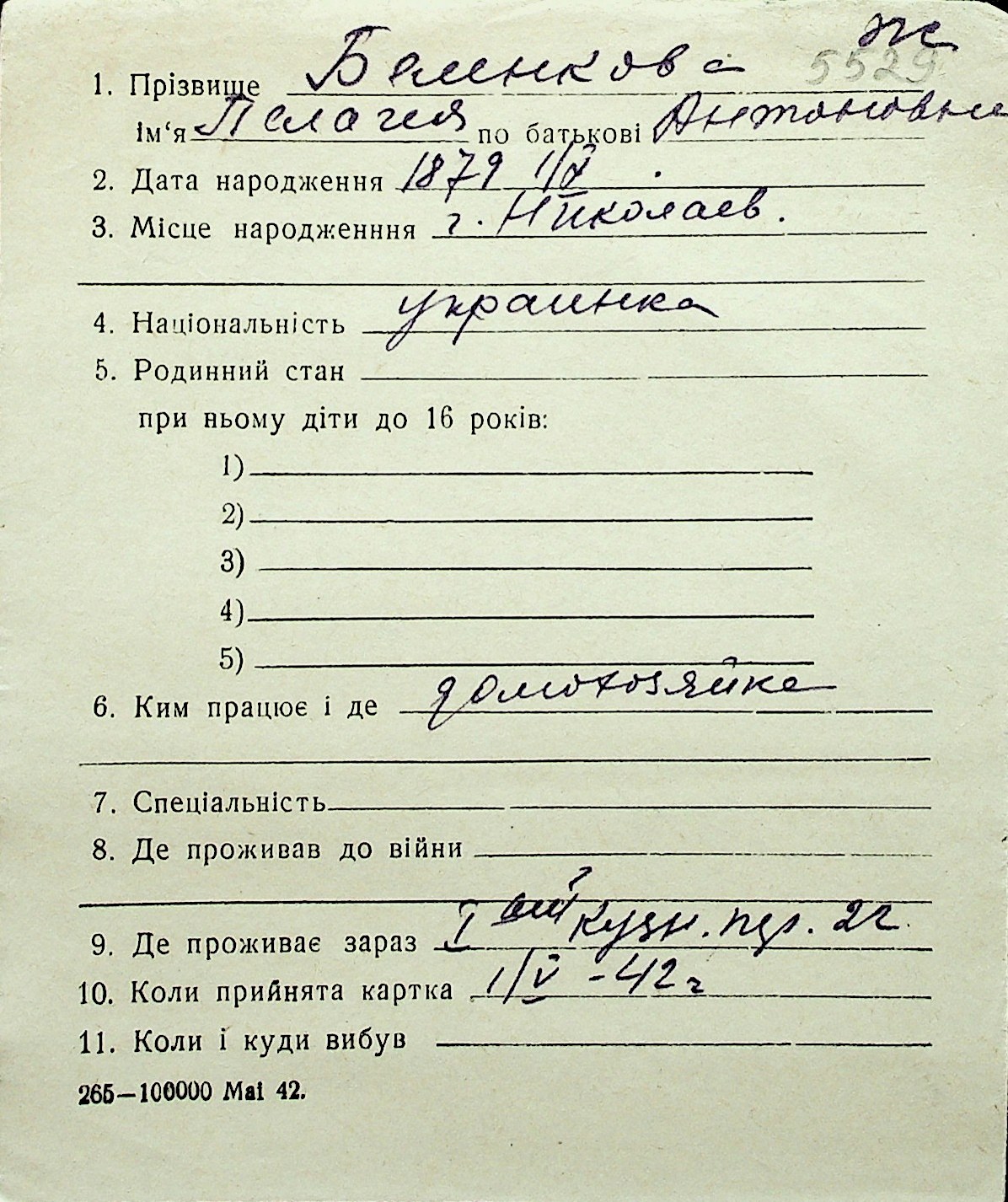 ◦ ◦ Перелік карток на осіб, які мешкали у м. Миколаїв у період окупації 1941–1944 років