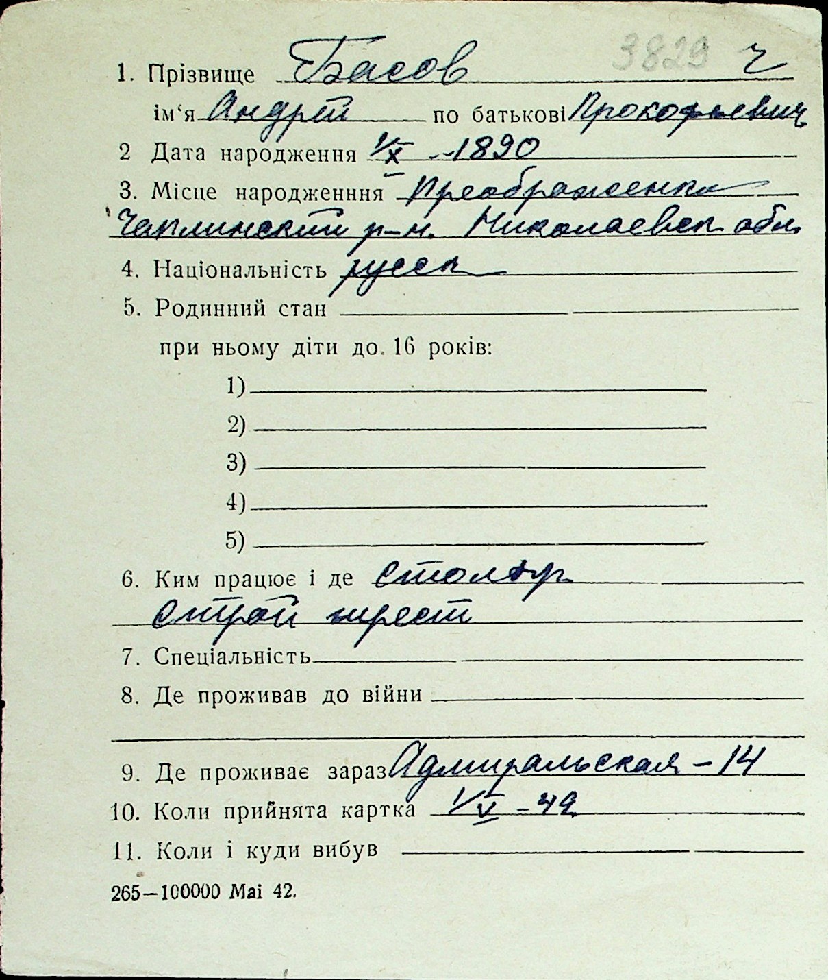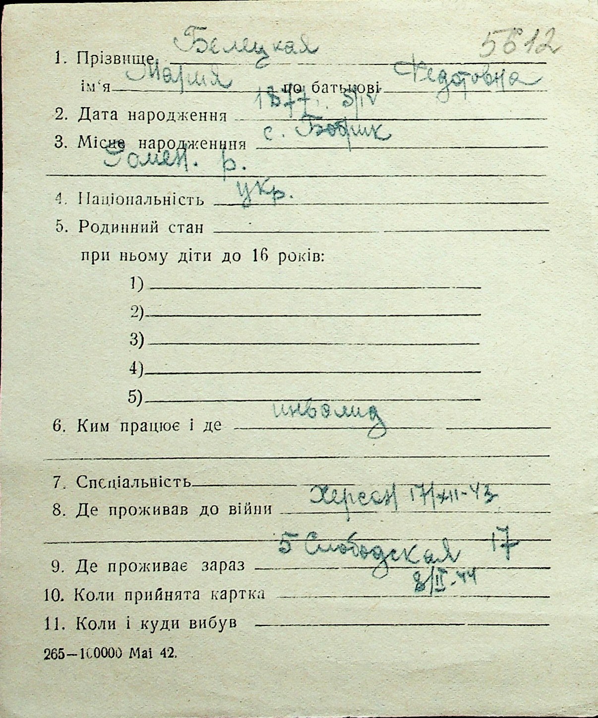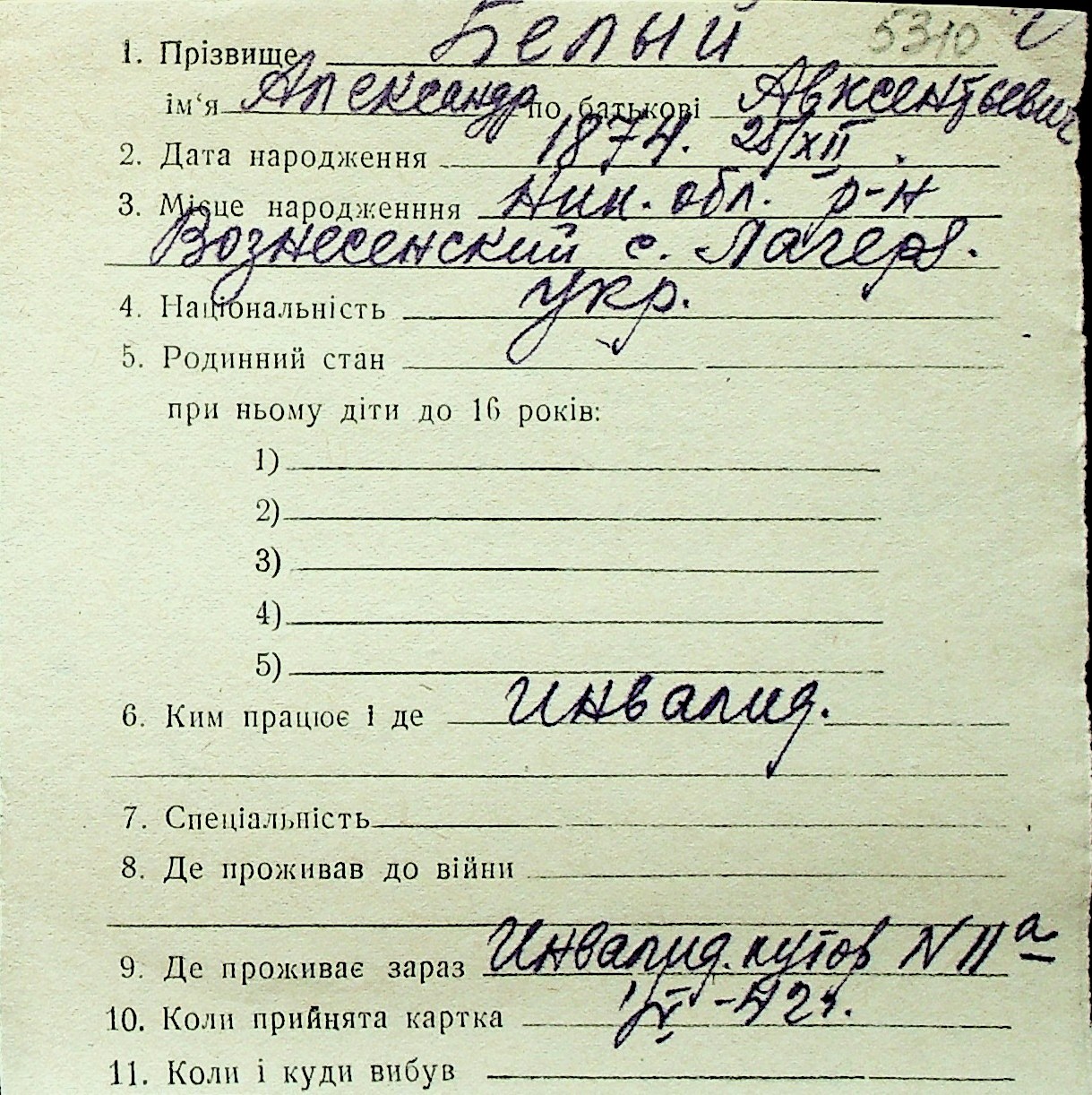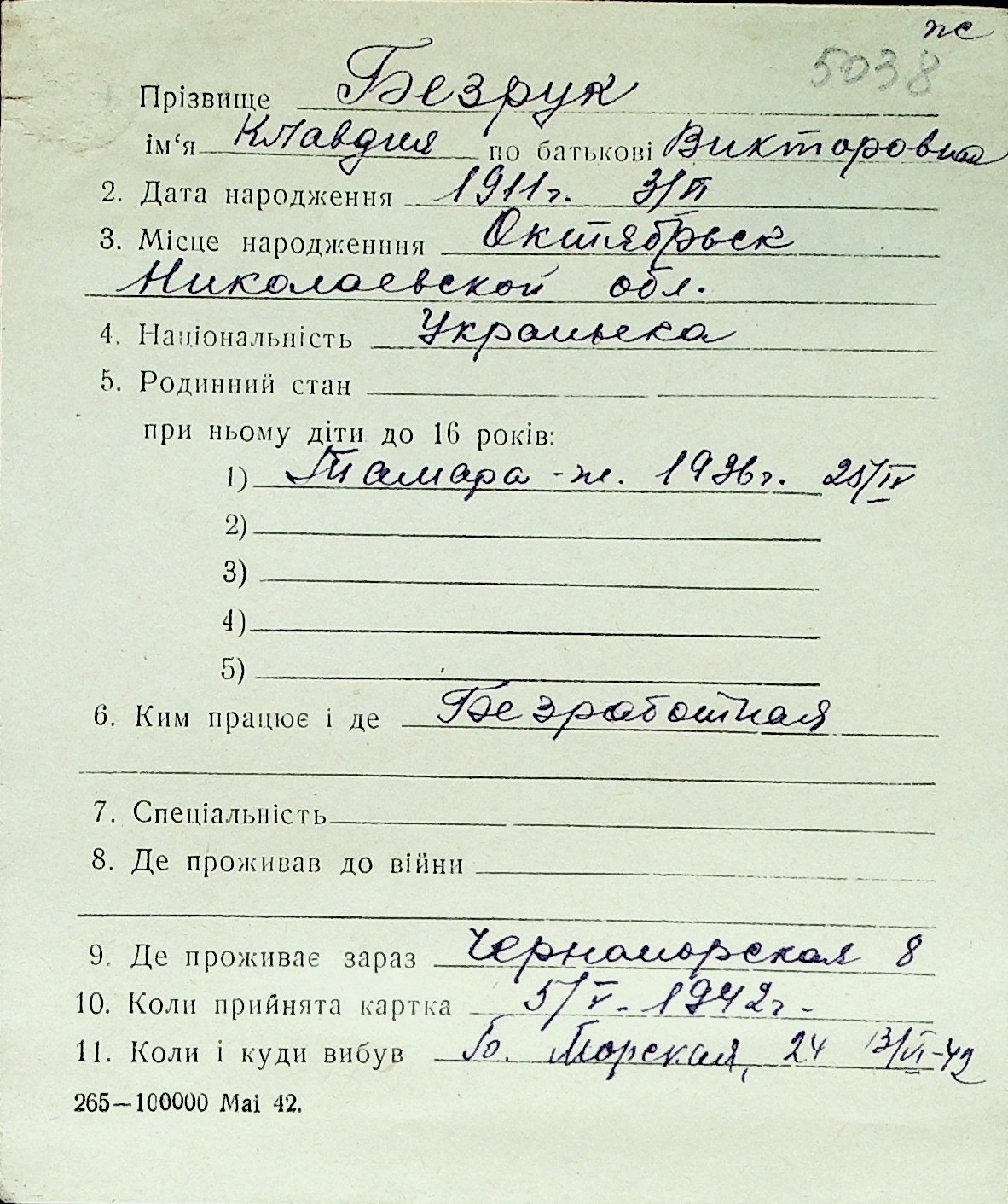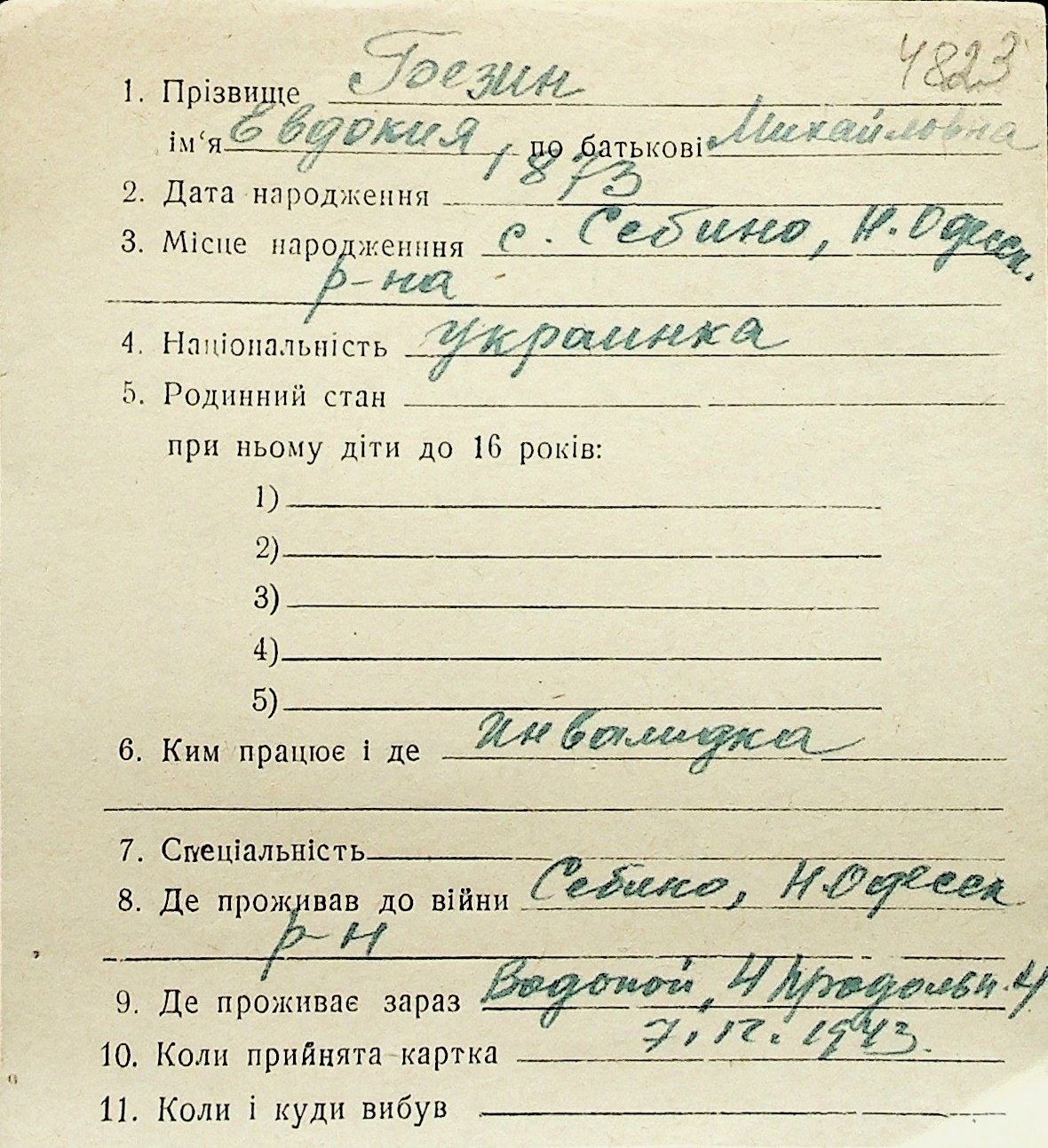 ◦ ◦ Перелік карток на осіб, які мешкали у м. Миколаїв у період окупації 1941–1944 років