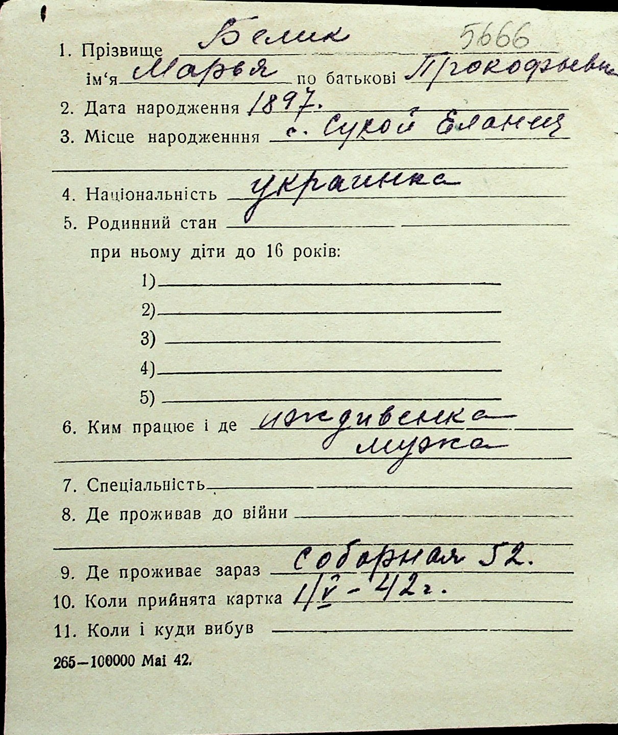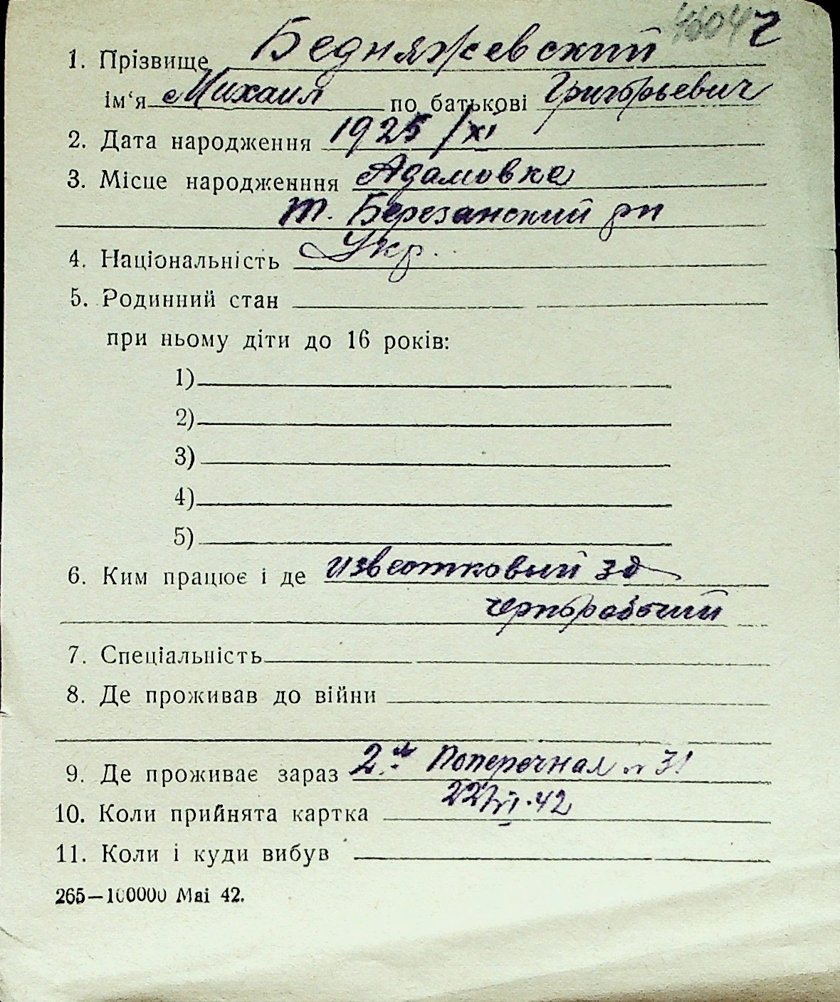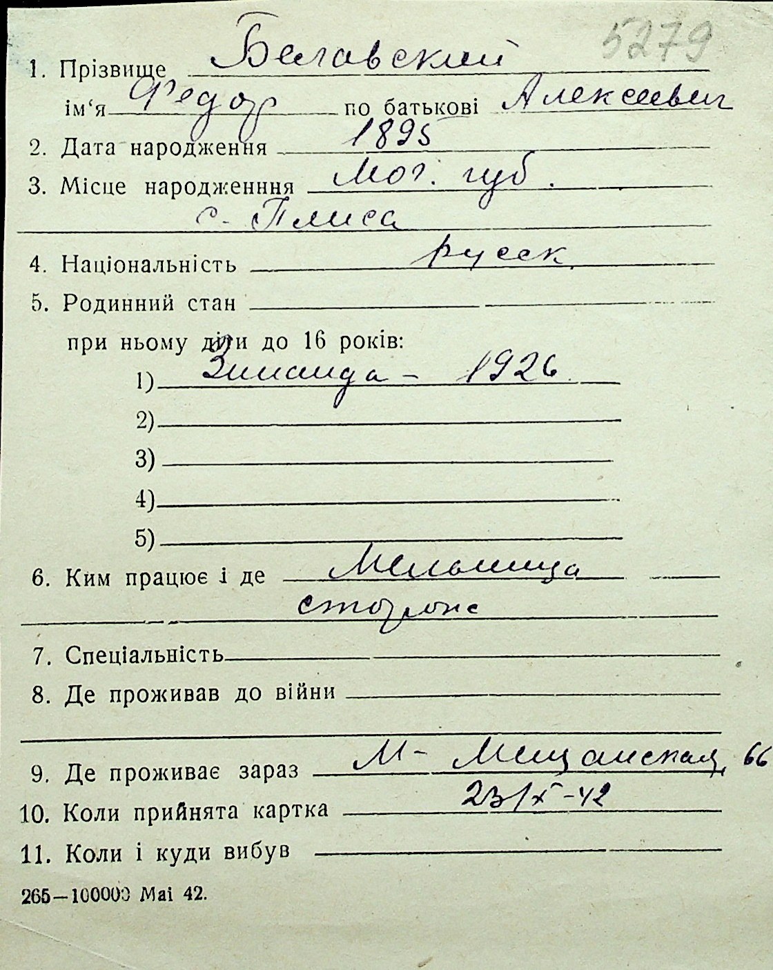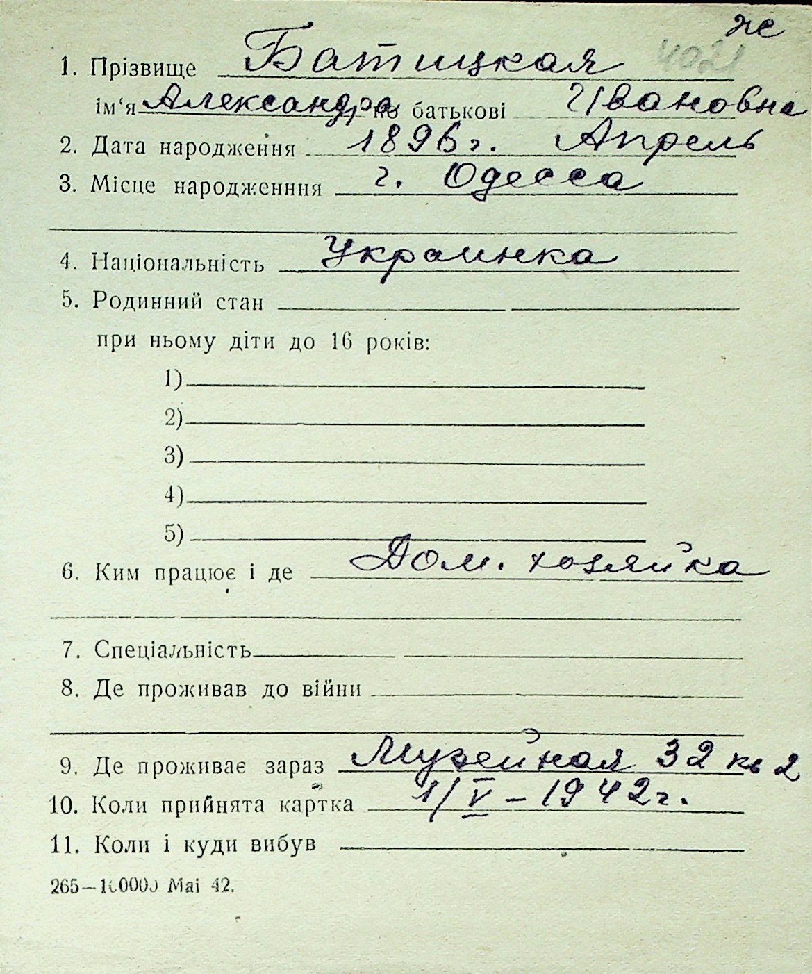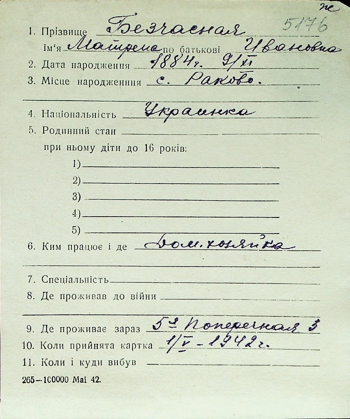 ◦ ◦ Перелік карток на осіб, які мешкали у м. Миколаїв у період окупації 1941–1944 років