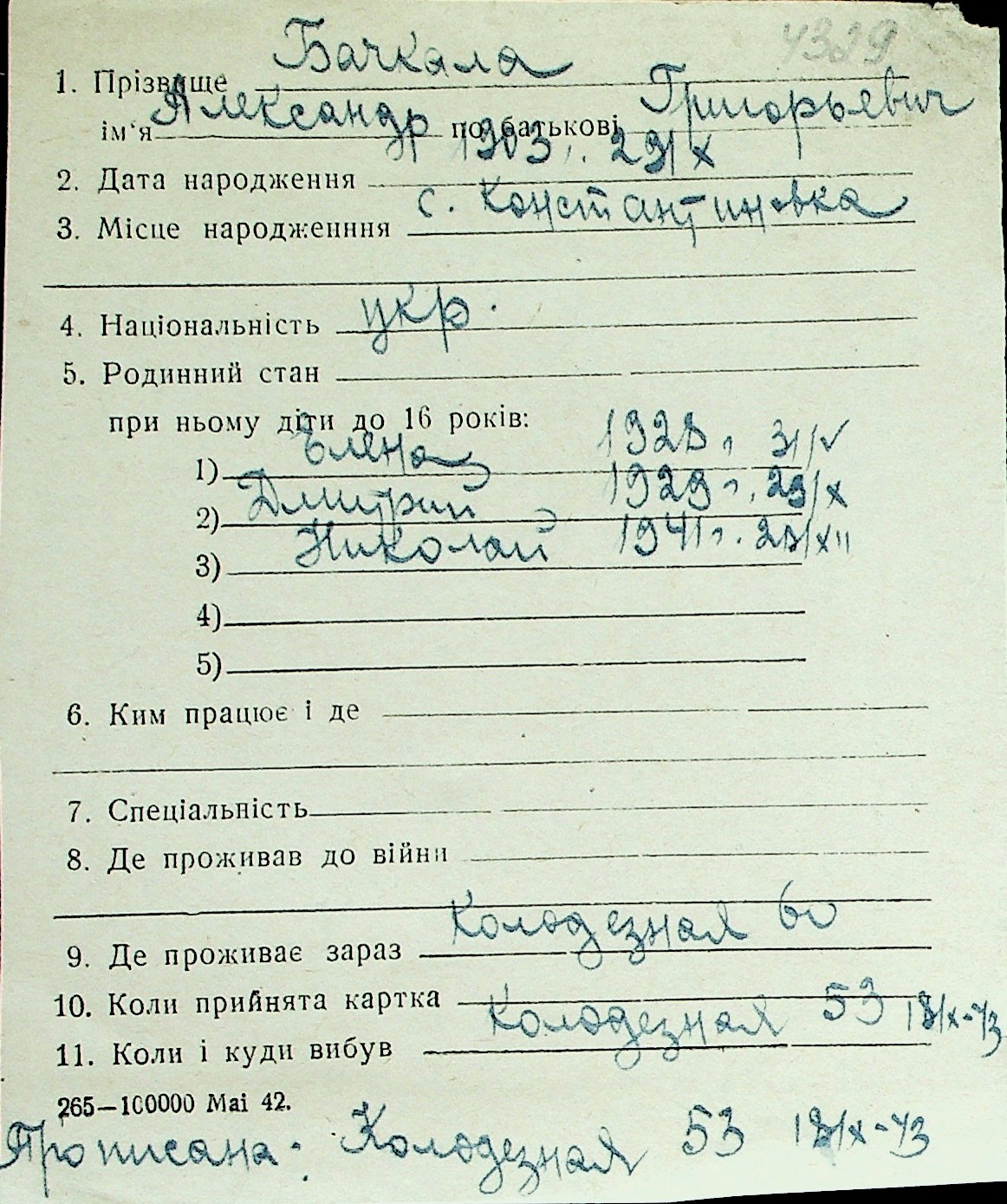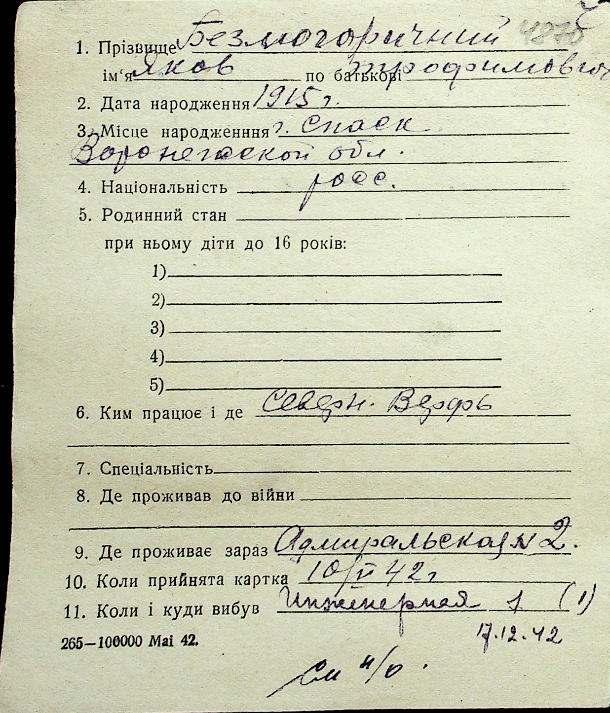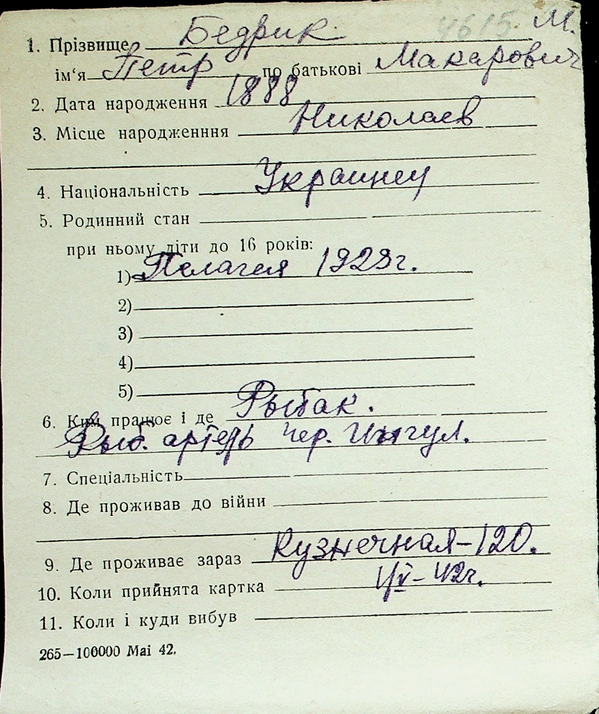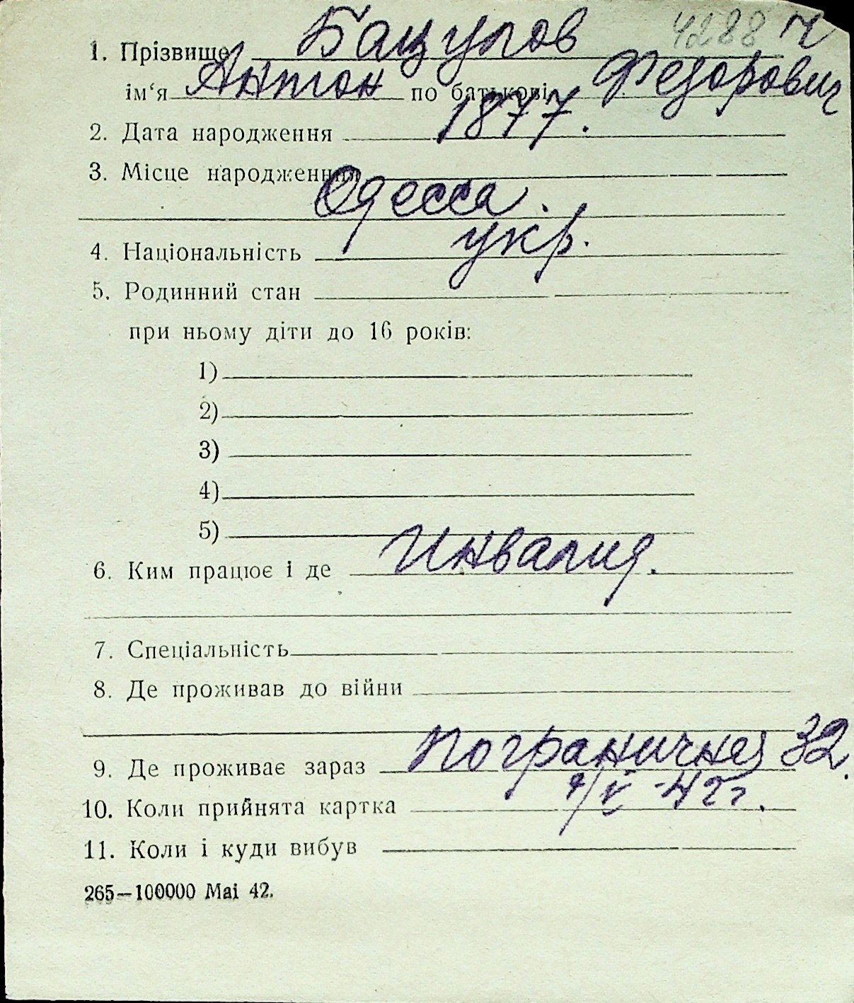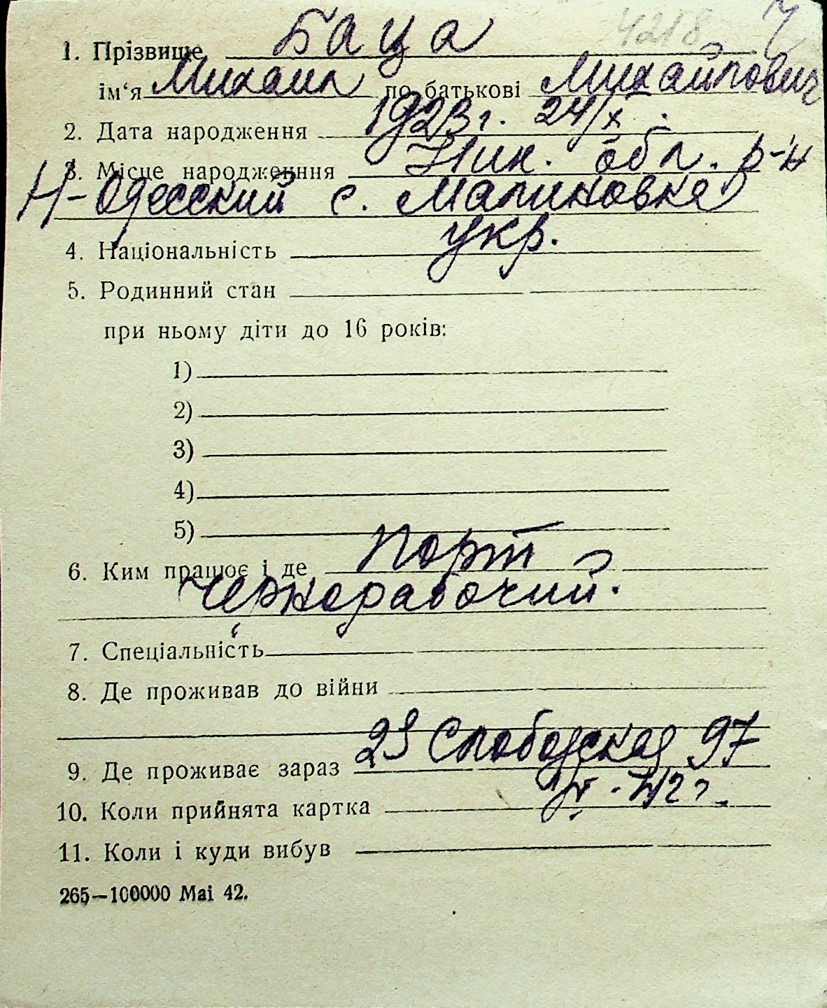 ◦ ◦ Перелік карток на осіб, які мешкали у м. Миколаїв у період окупації 1941–1944 років