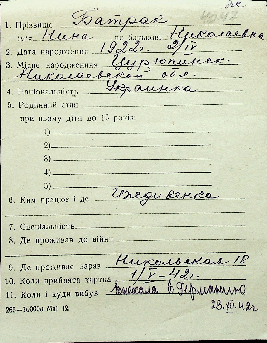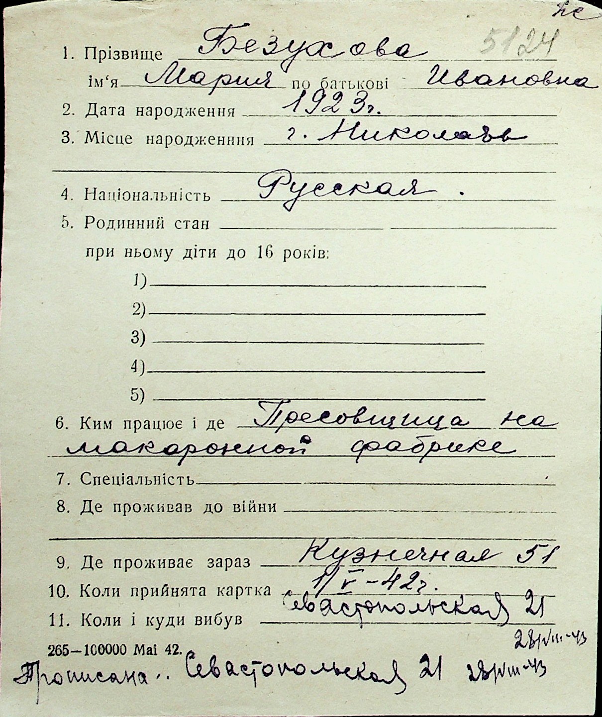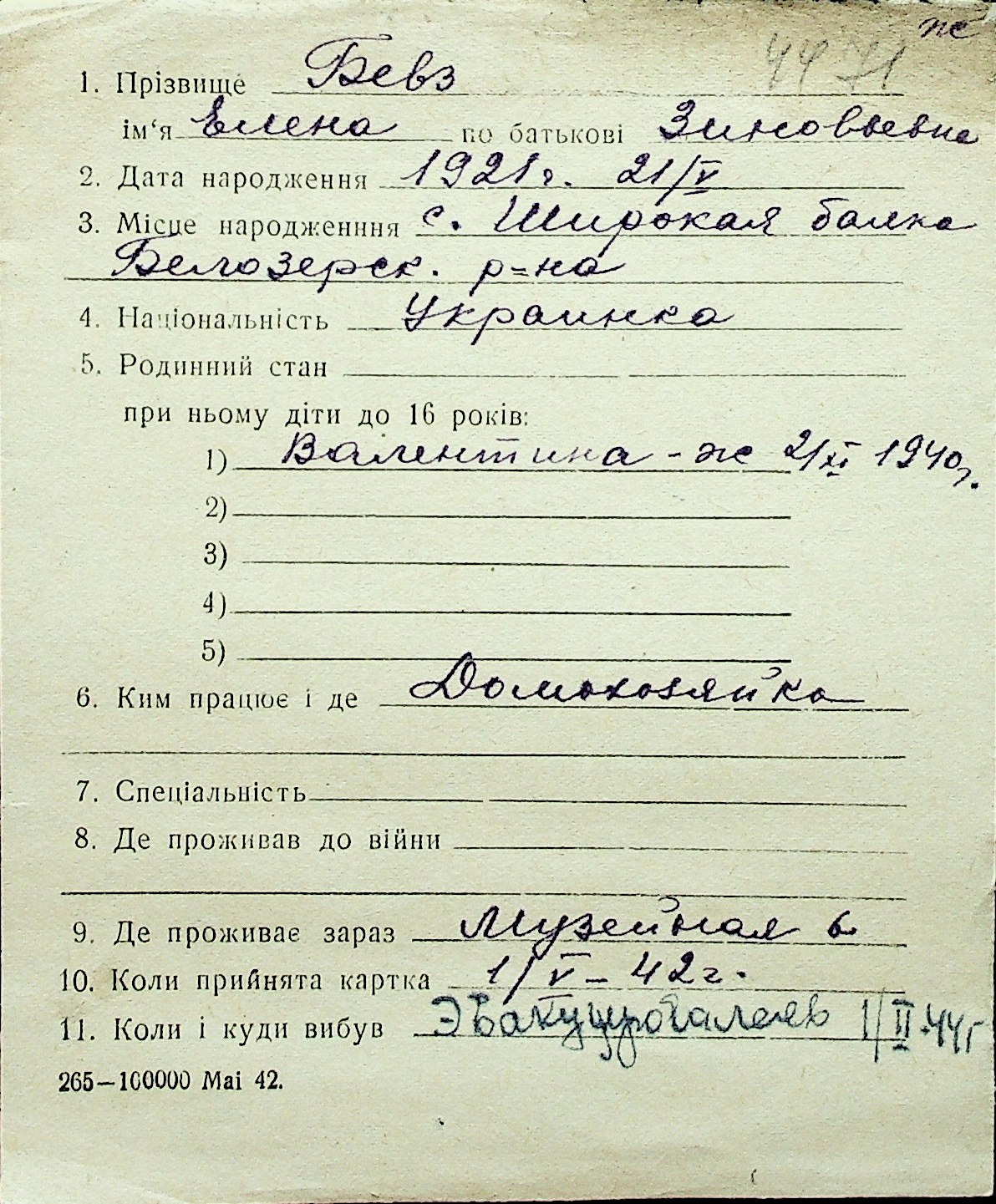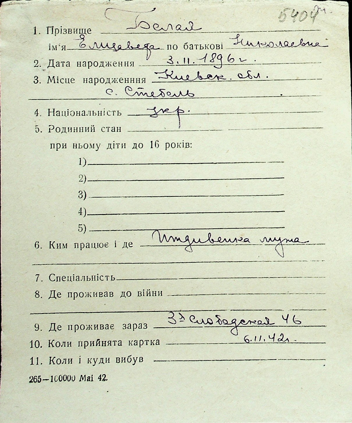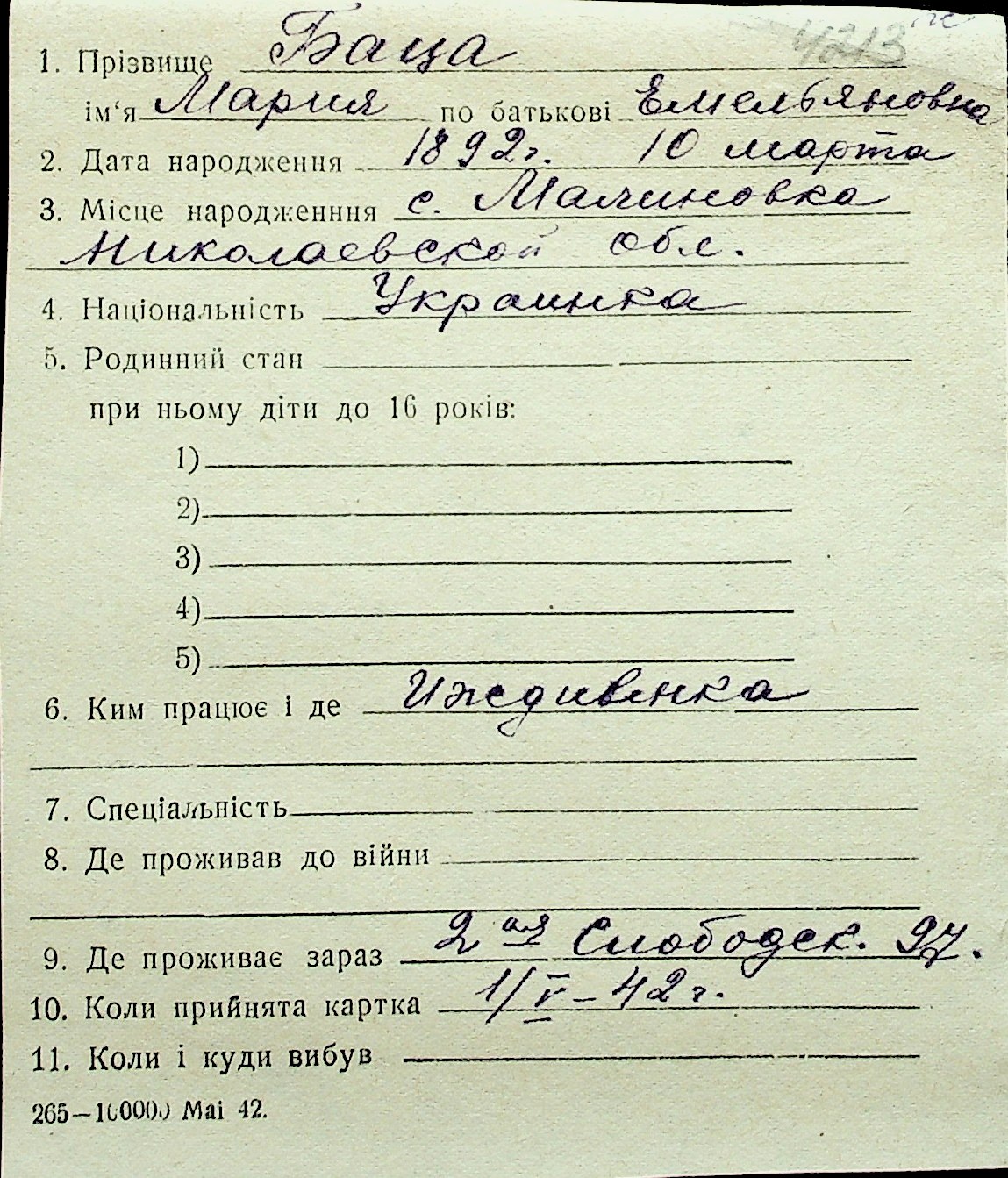 ◦ ◦ Перелік карток на осіб, які мешкали у м. Миколаїв у період окупації 1941–1944 років