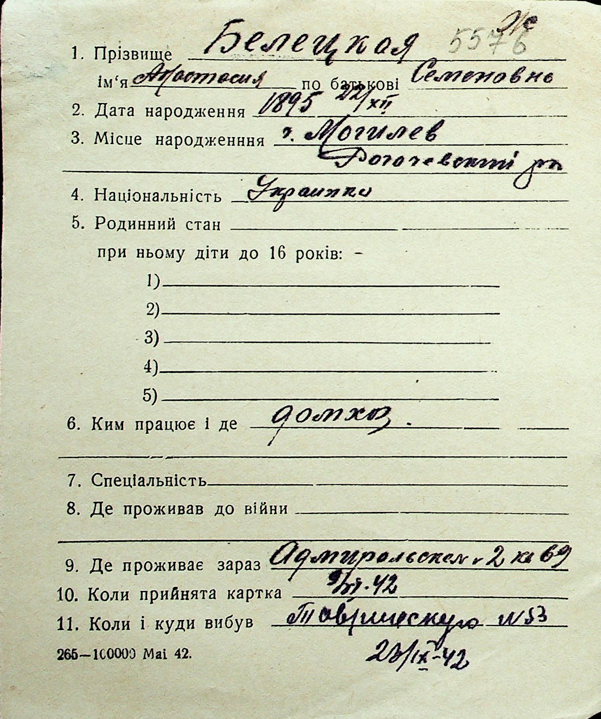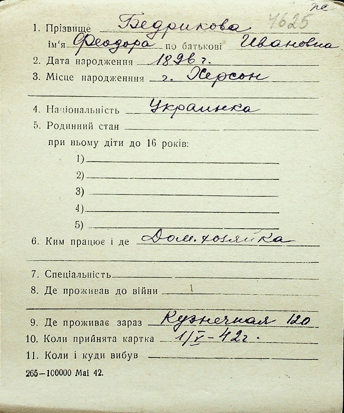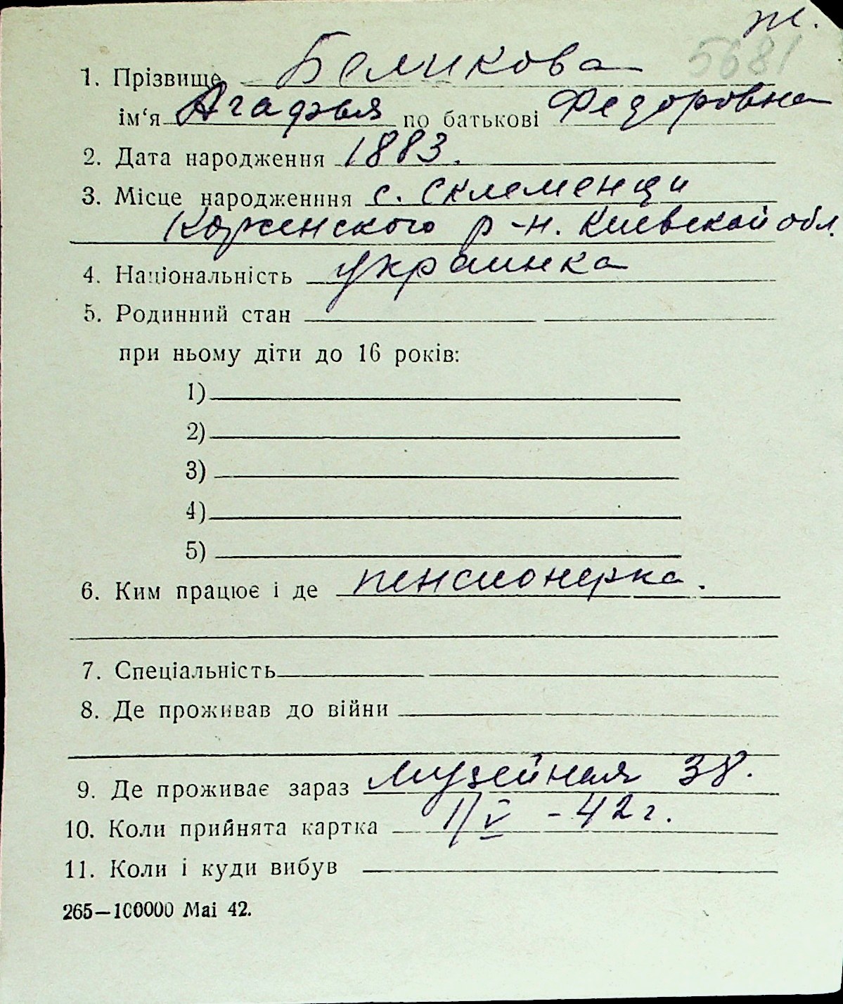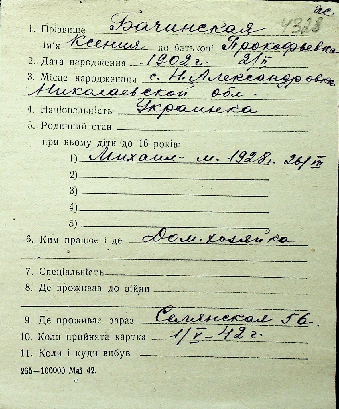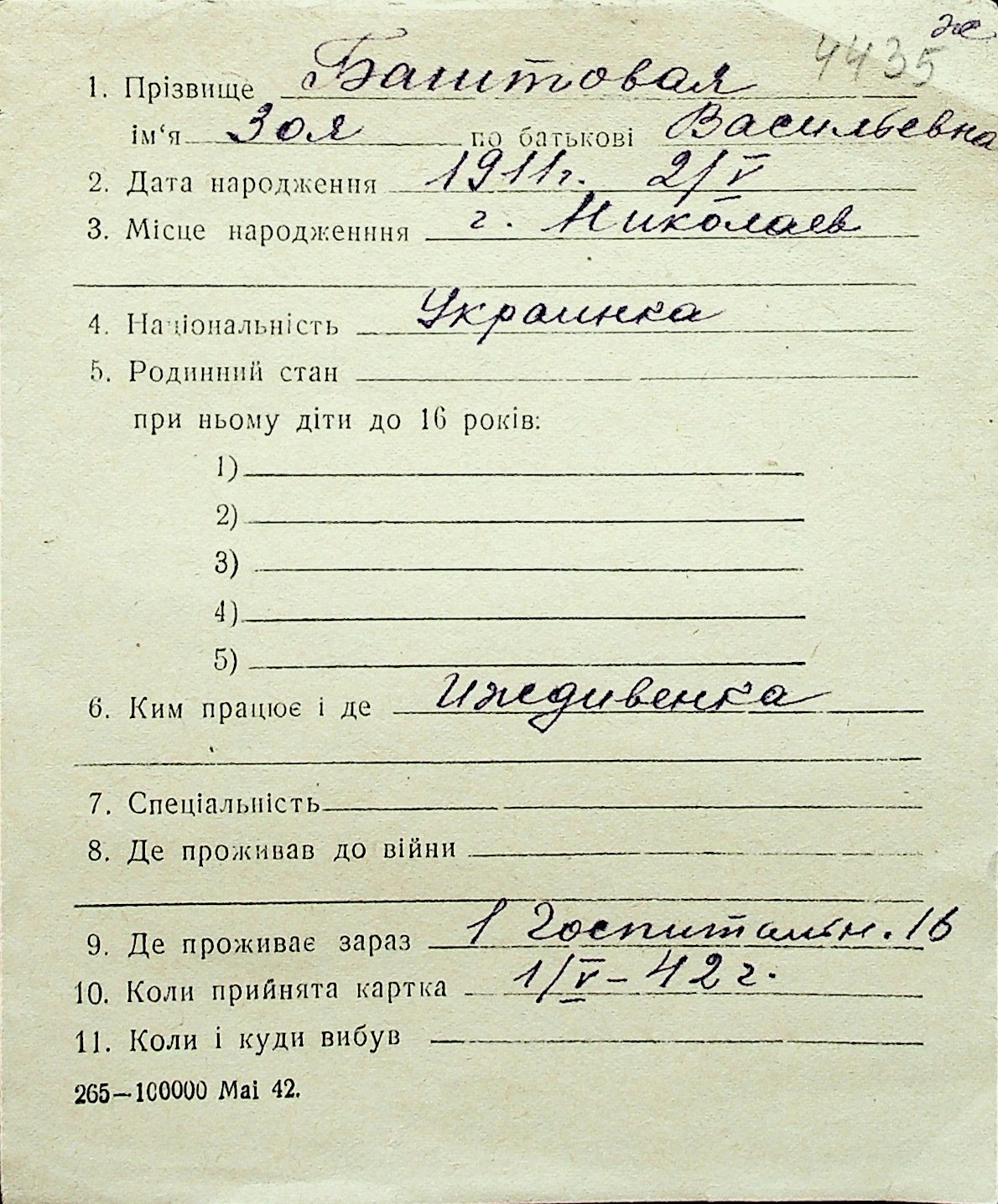 ◦ ◦ Перелік карток на осіб, які мешкали у м. Миколаїв у період окупації 1941–1944 років