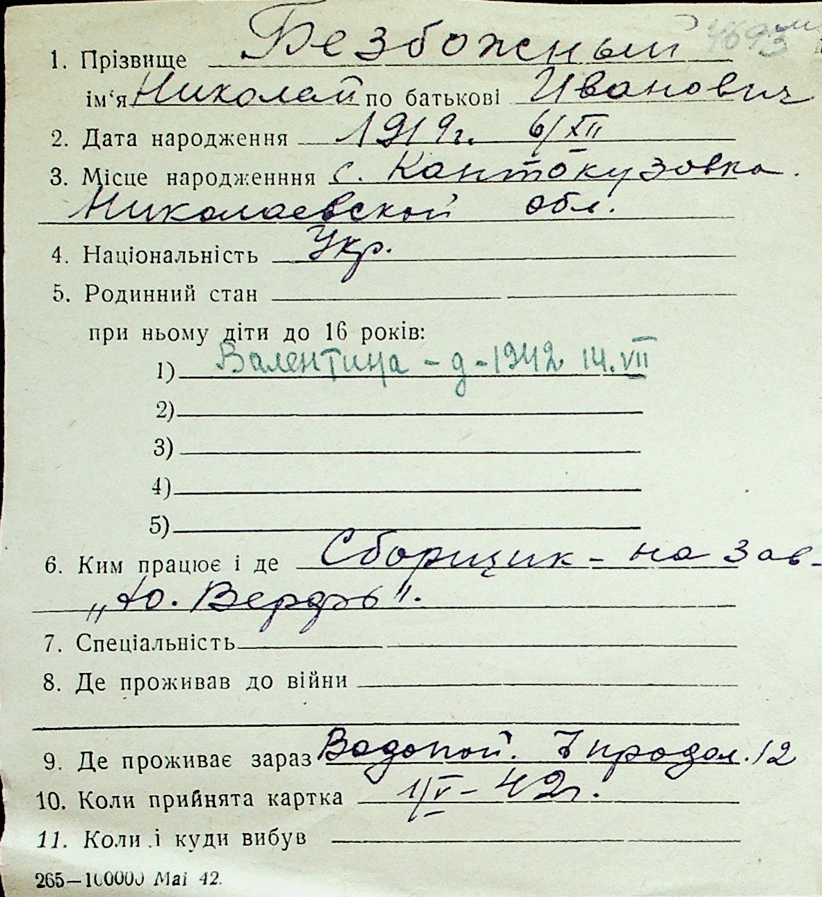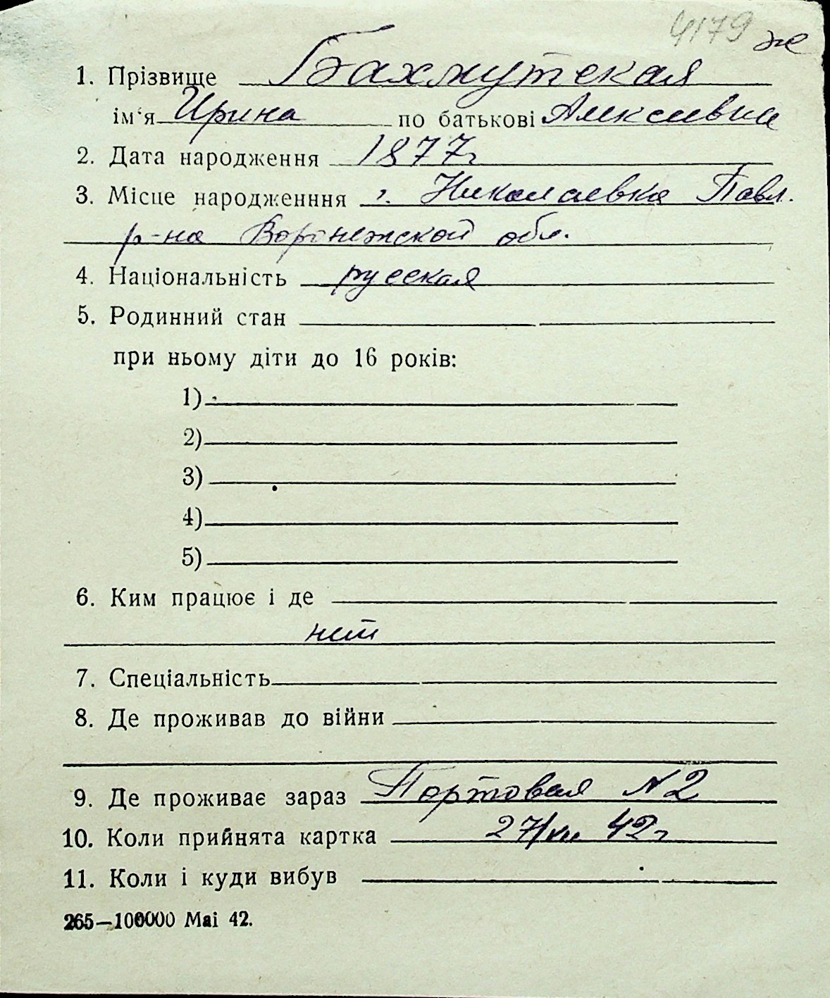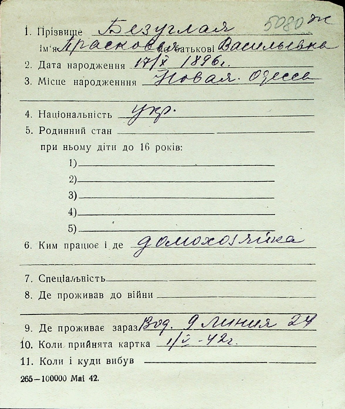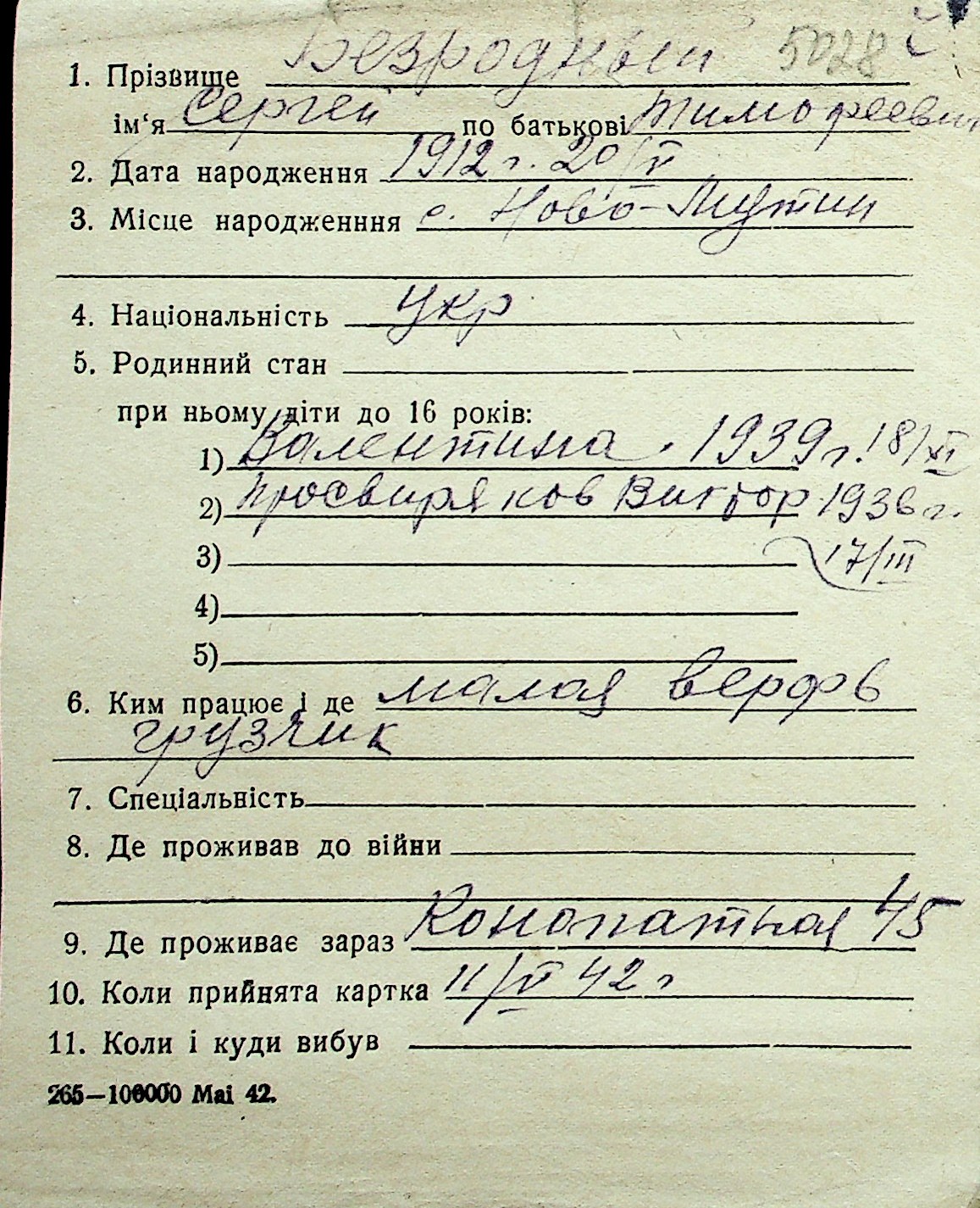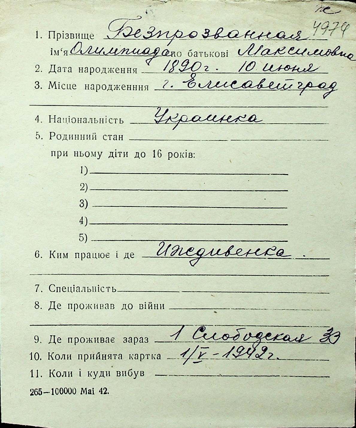 ◦ ◦ Перелік карток на осіб, які мешкали у м. Миколаїв у період окупації 1941–1944 років