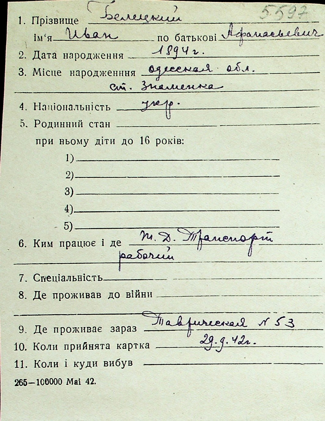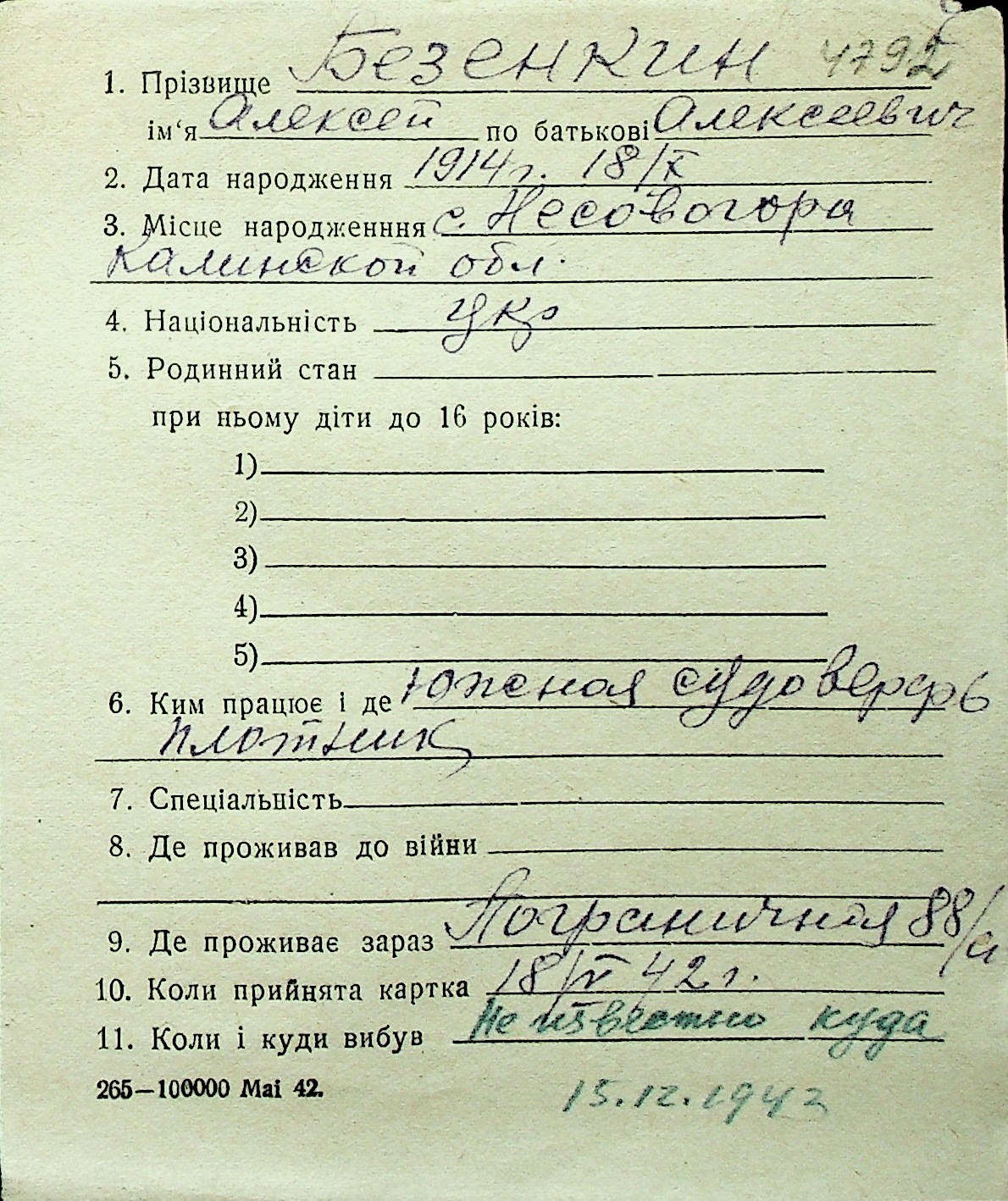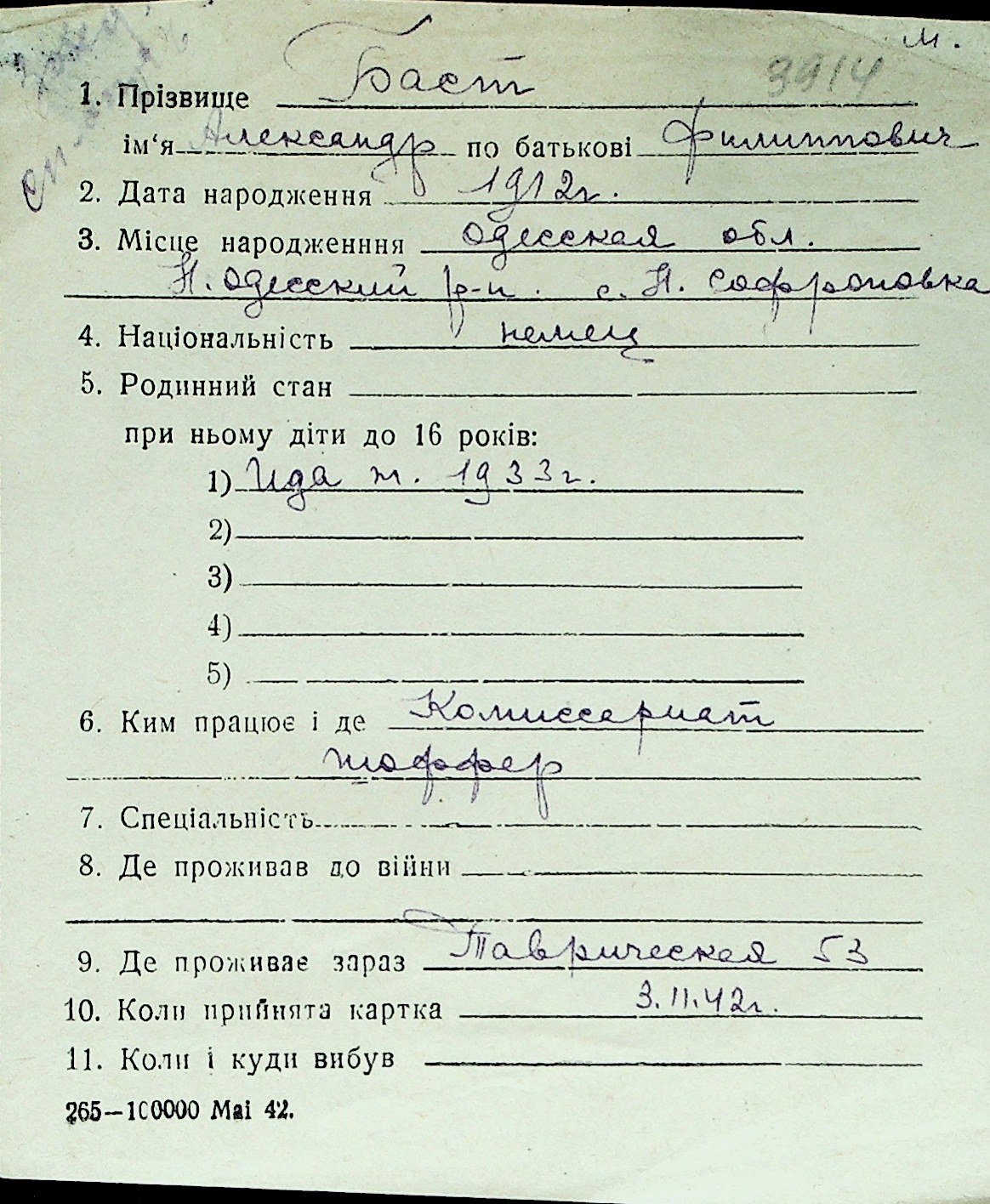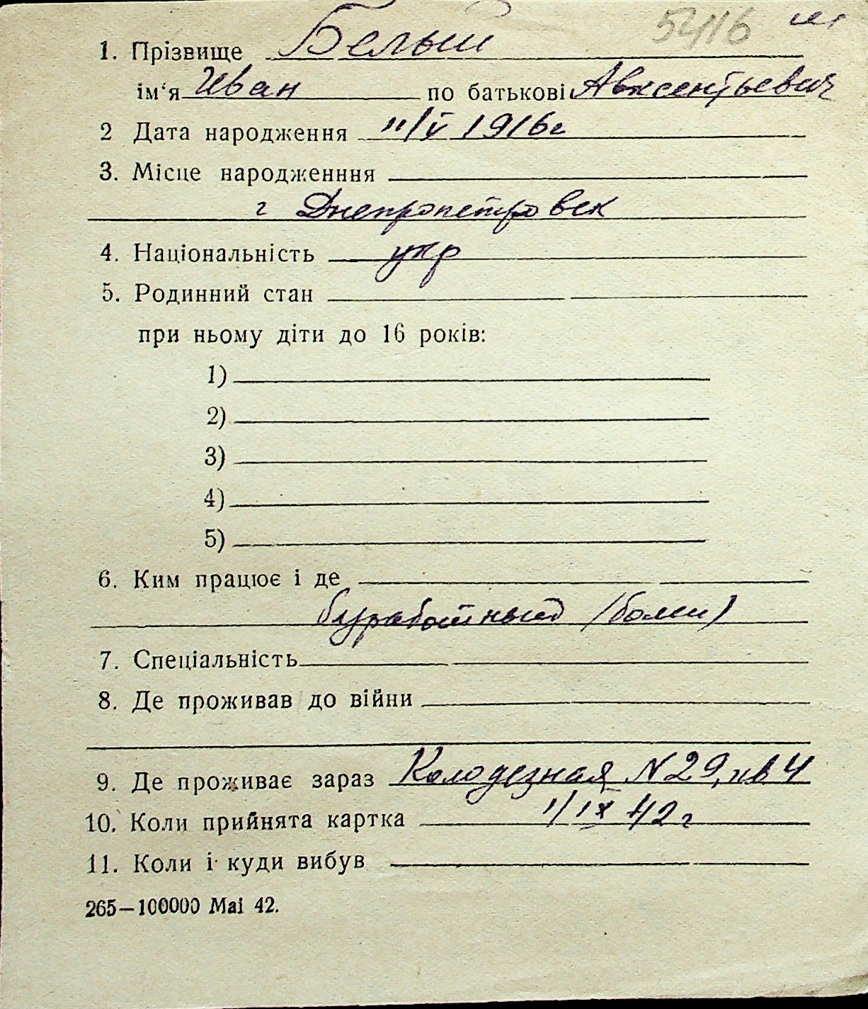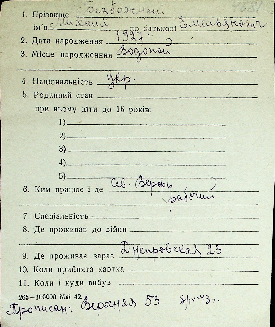 ◦ ◦ Перелік карток на осіб, які мешкали у м. Миколаїв у період окупації 1941–1944 років