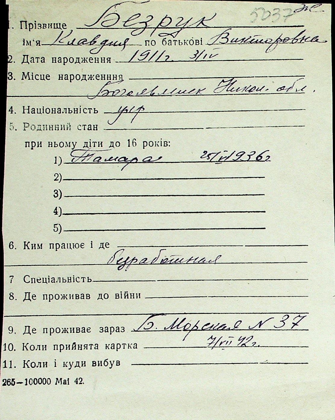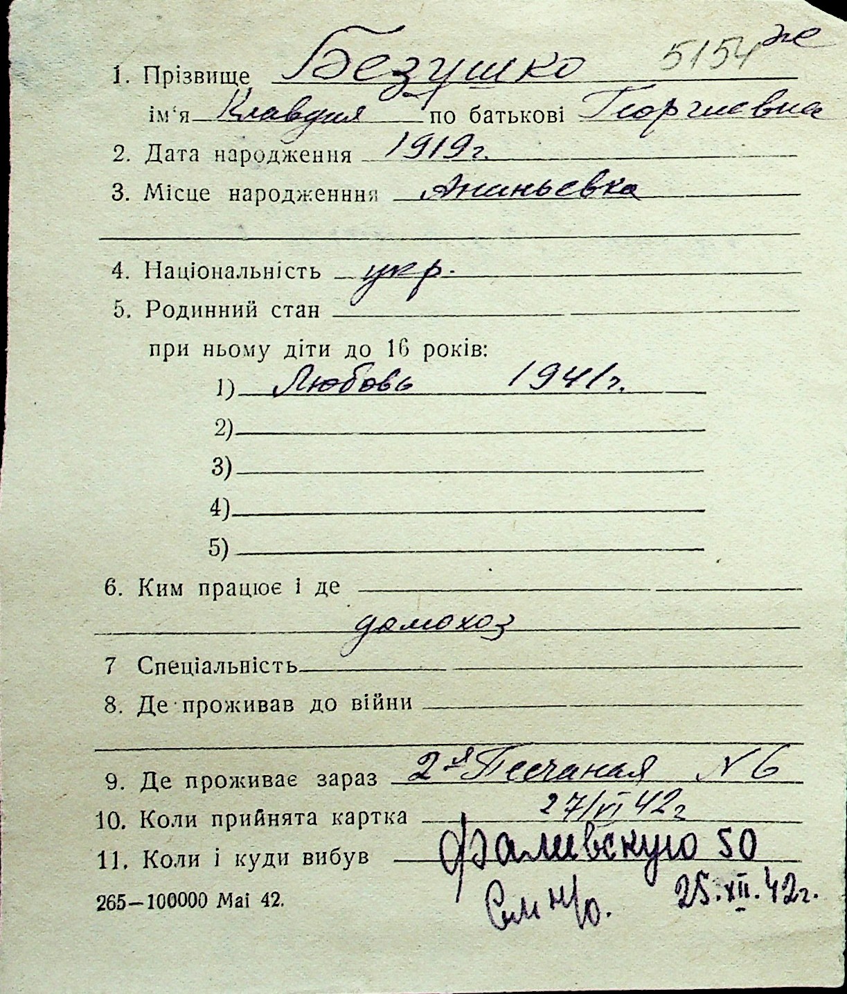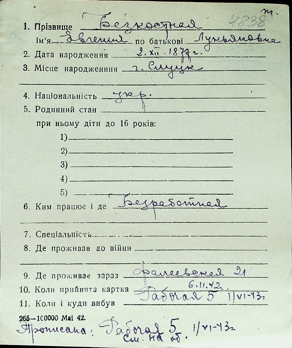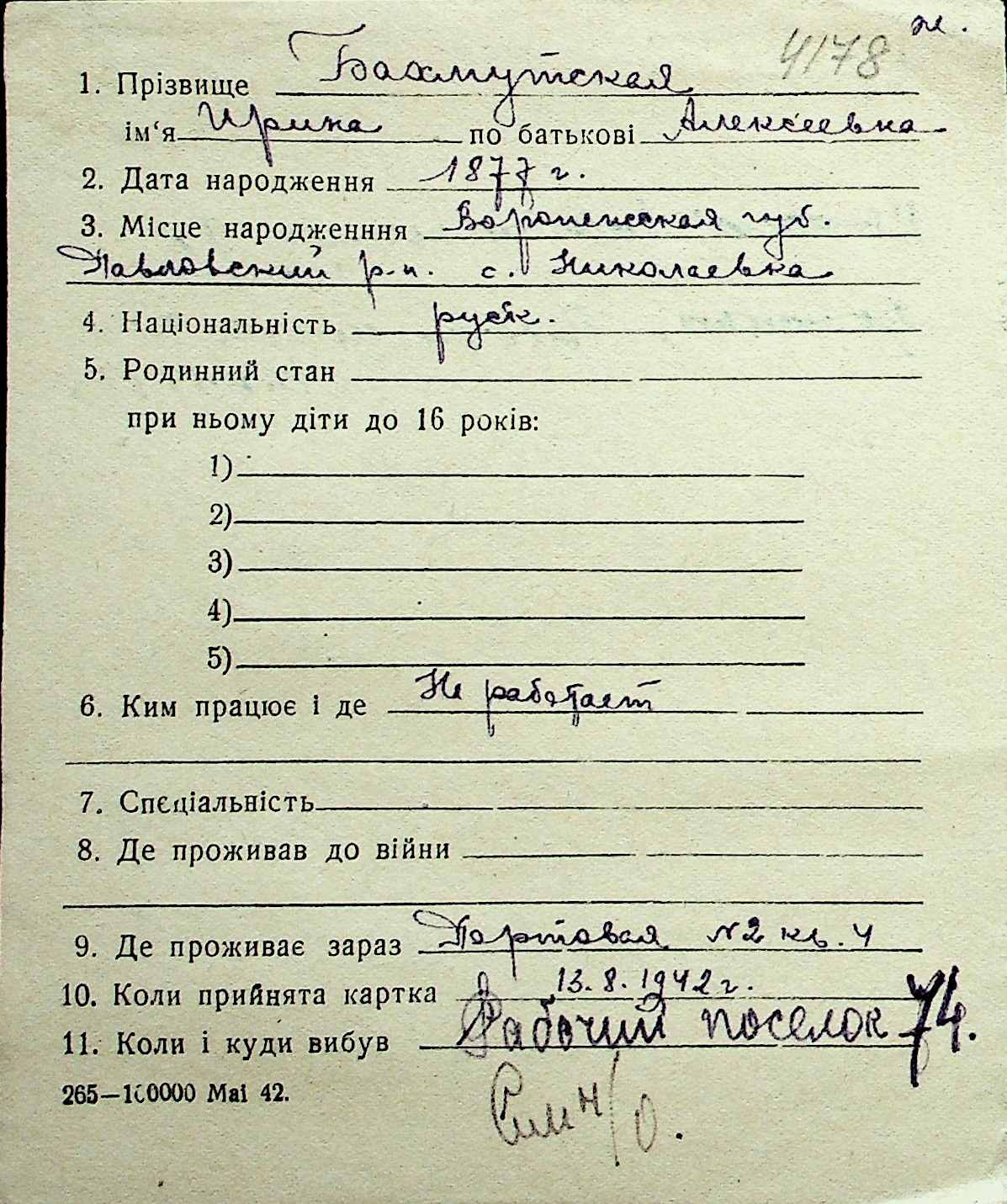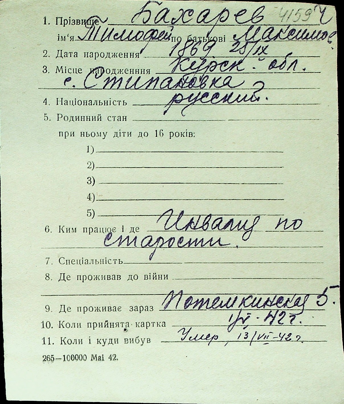 ◦ ◦ Перелік карток на осіб, які мешкали у м. Миколаїв у період окупації 1941–1944 років