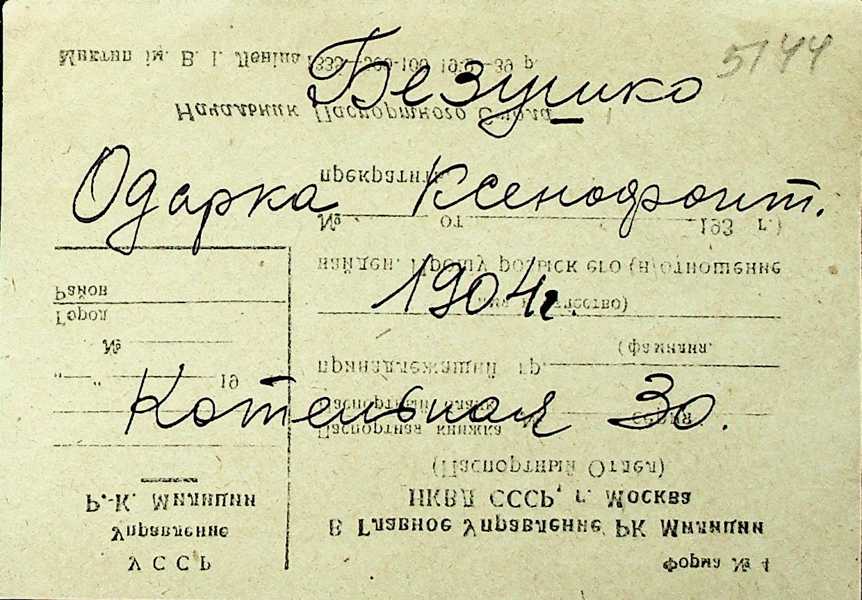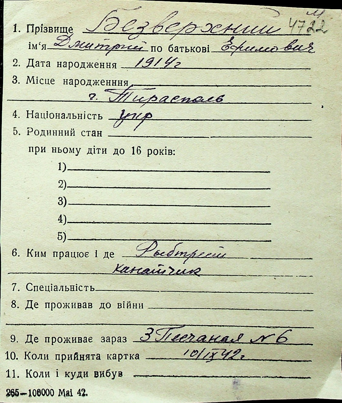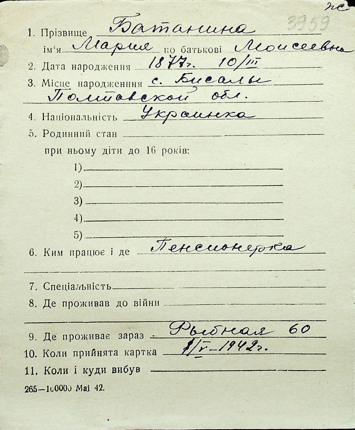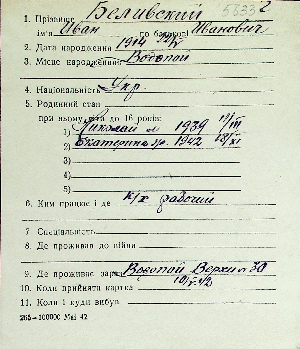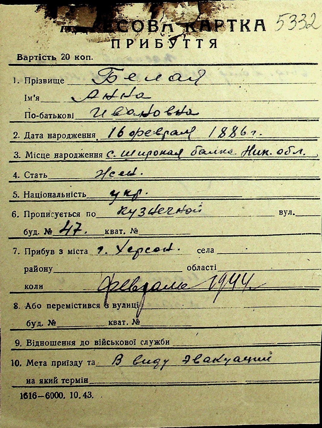◦ ◦ Перелік карток на осіб, які мешкали у м. Миколаїв у період окупації 1941–1944 років