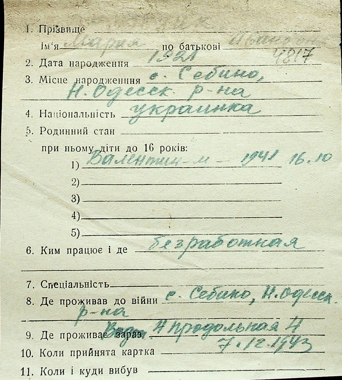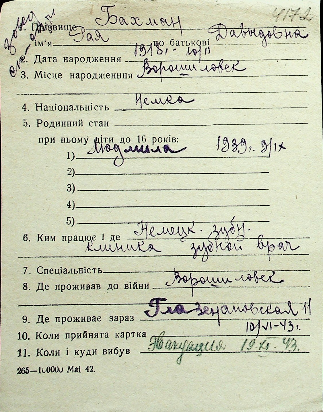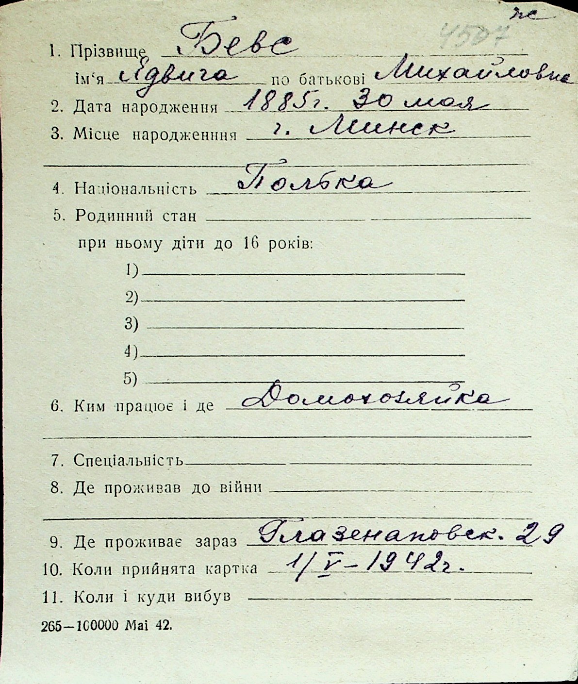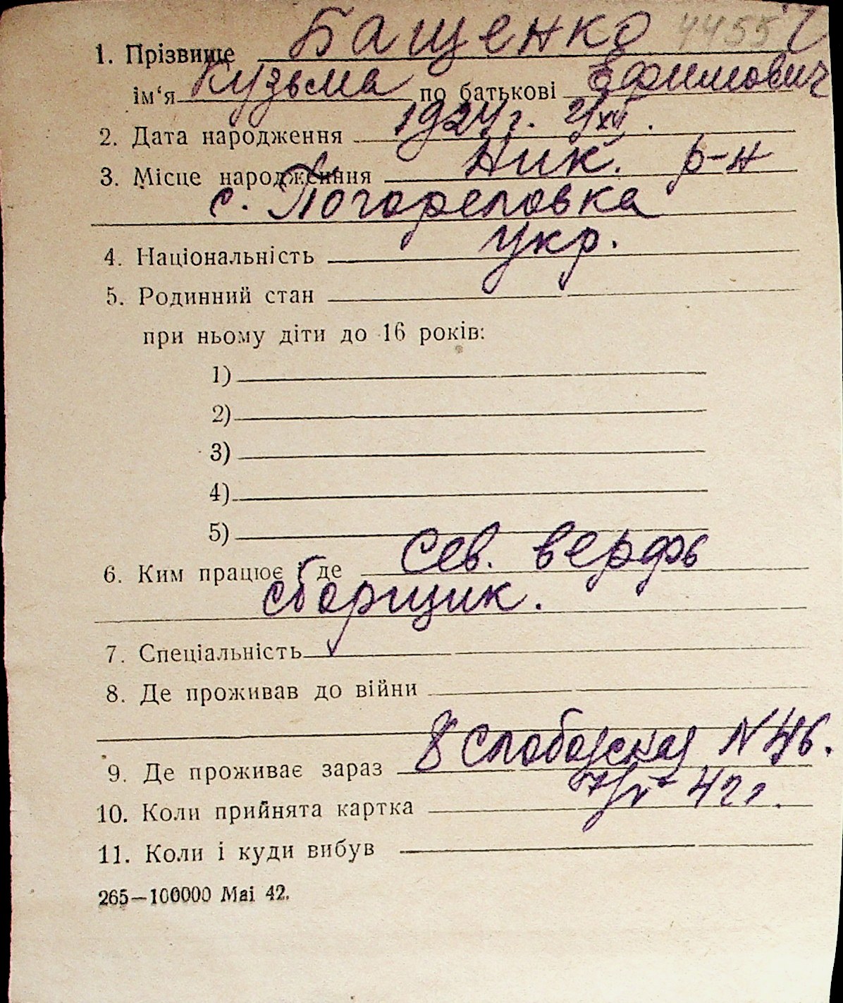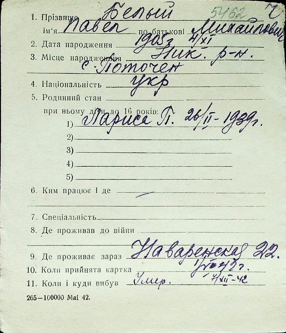 ◦ ◦ Перелік карток на осіб, які мешкали у м. Миколаїв у період окупації 1941–1944 років