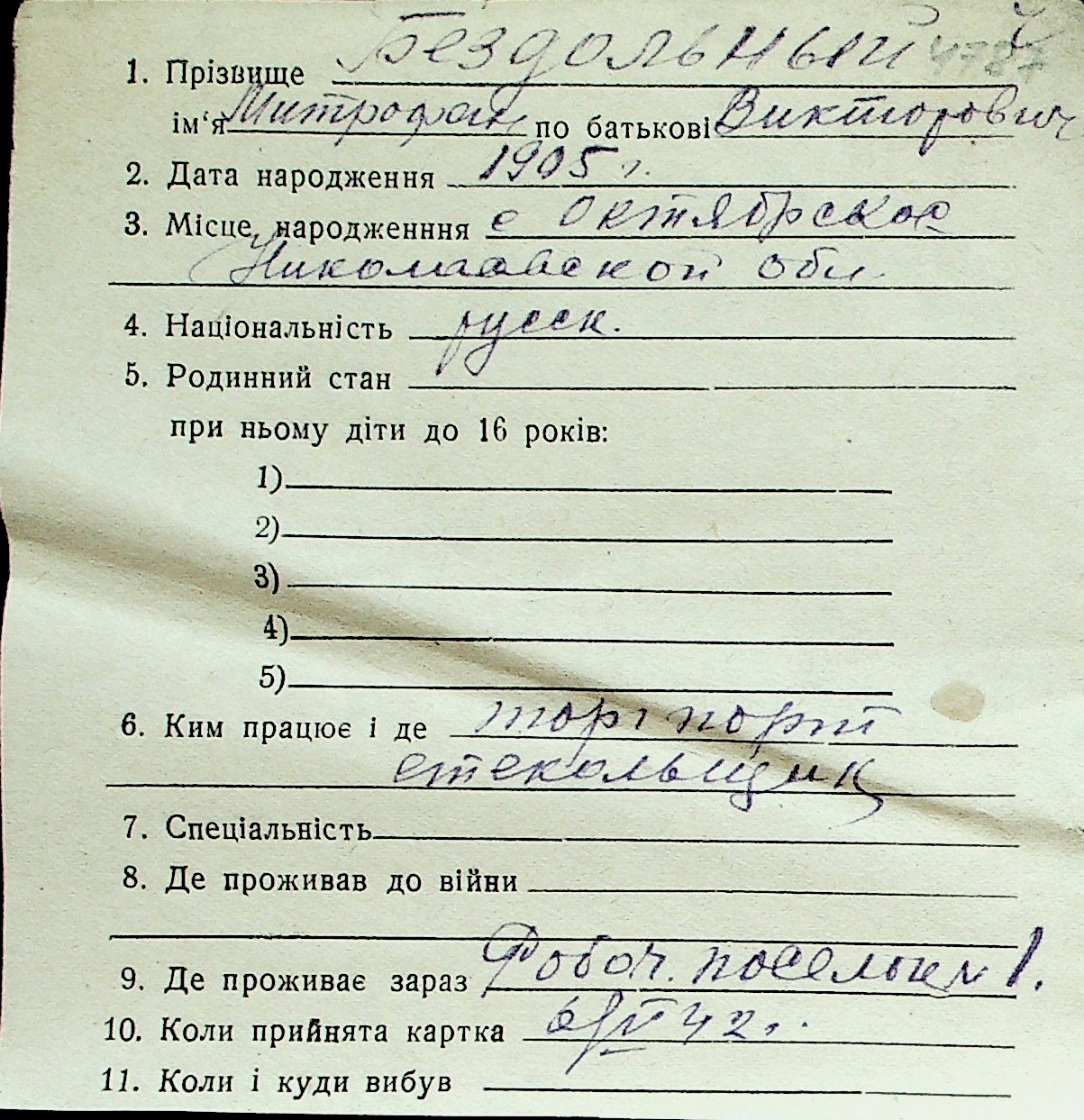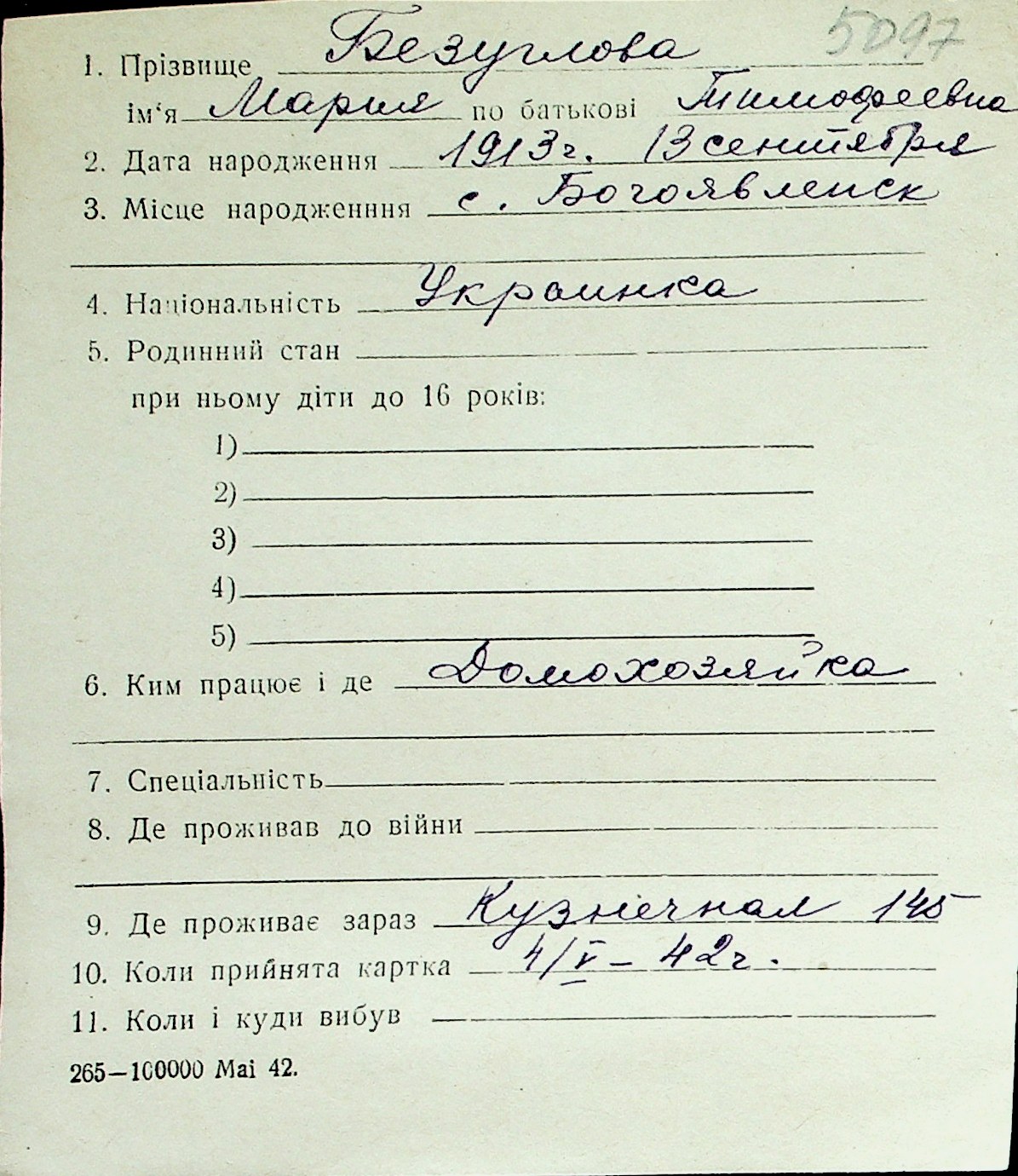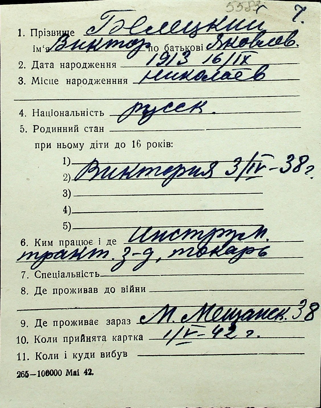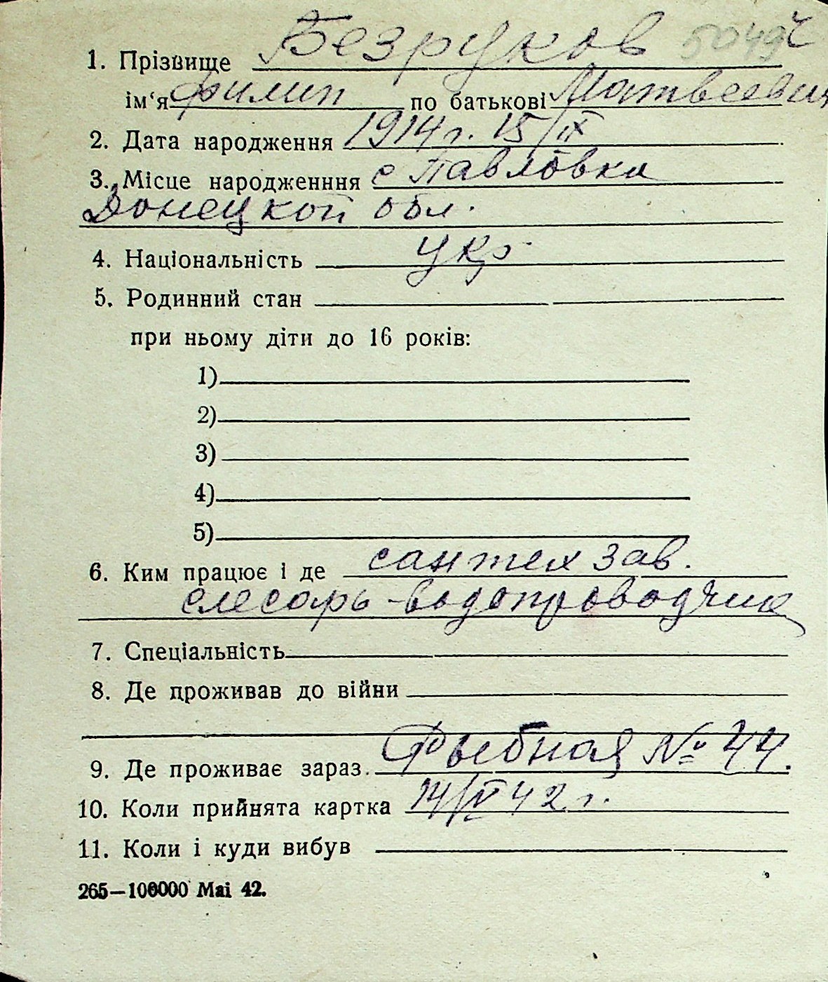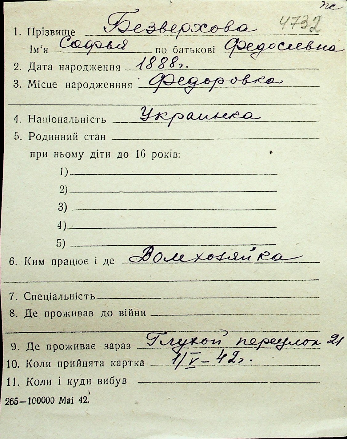 ◦ ◦ Перелік карток на осіб, які мешкали у м. Миколаїв у період окупації 1941–1944 років