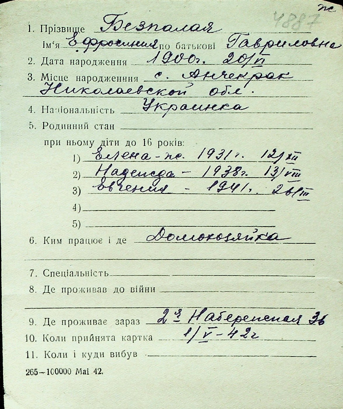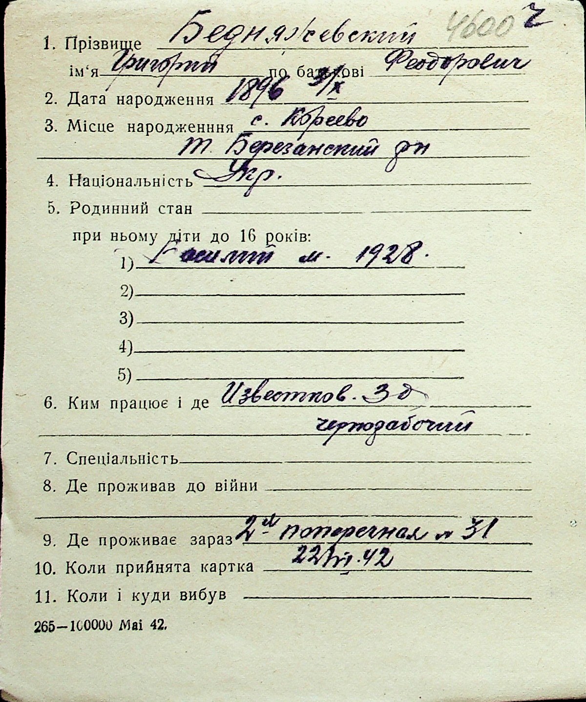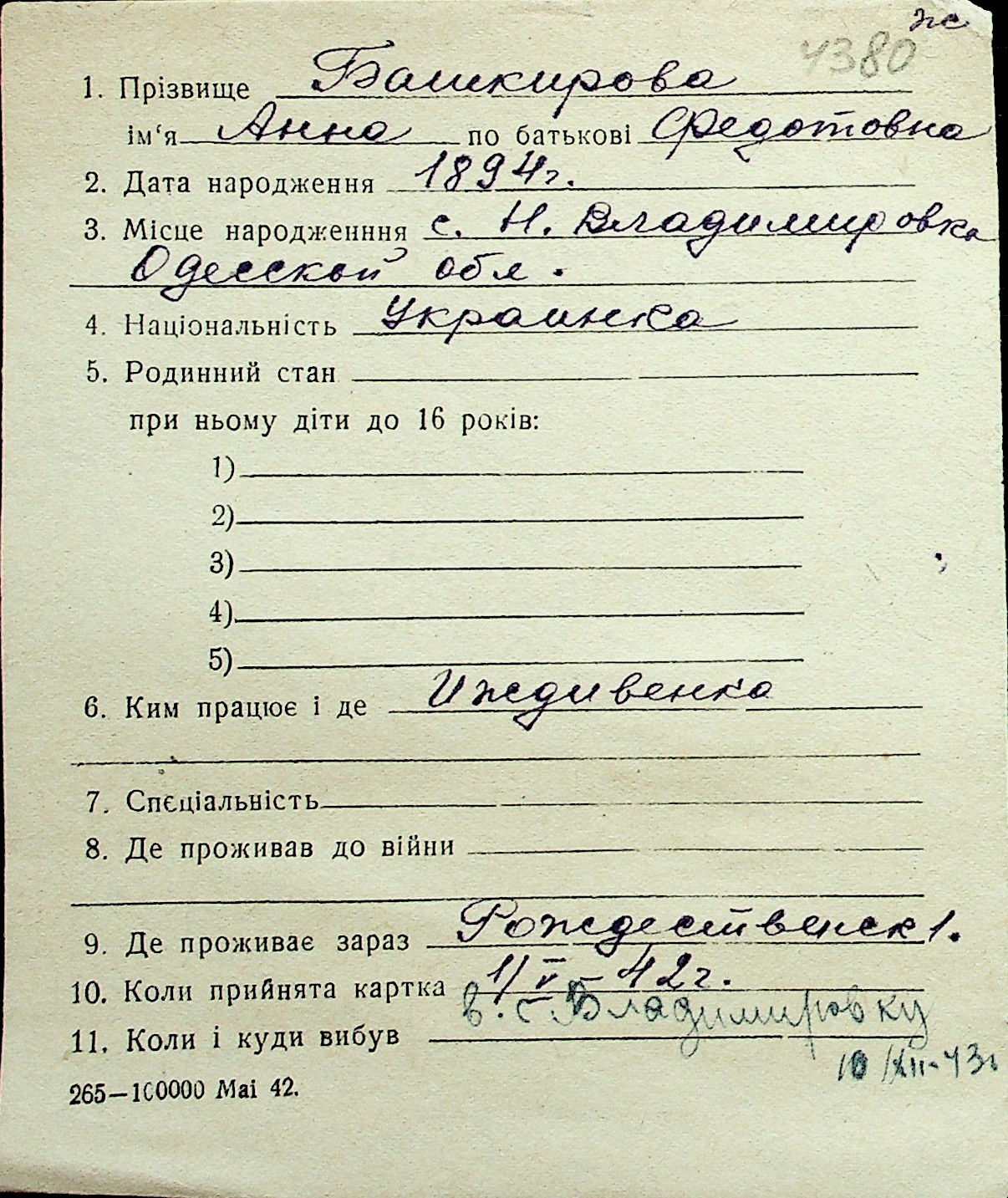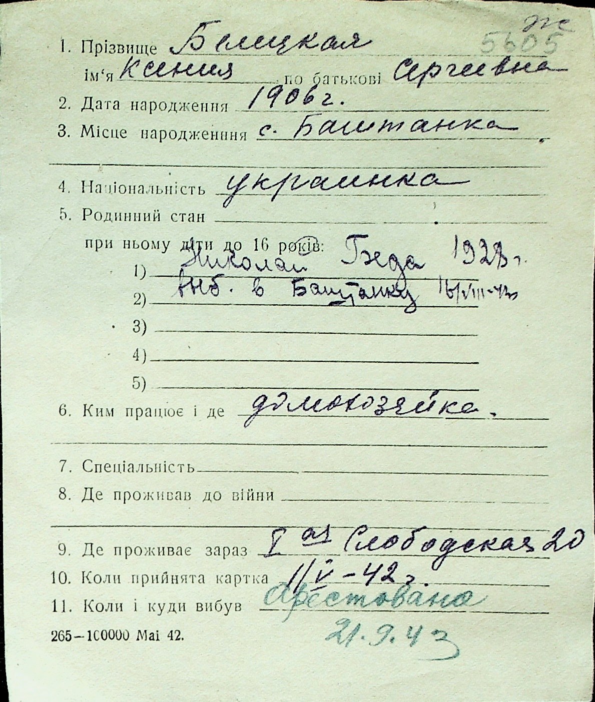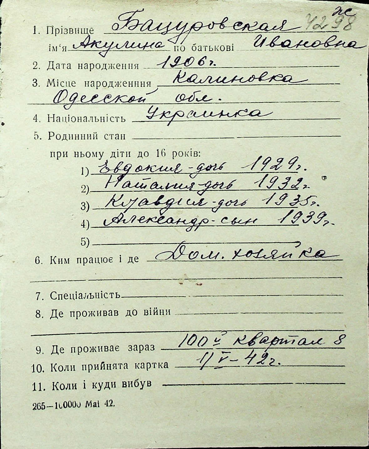 ◦ ◦ Перелік карток на осіб, які мешкали у м. Миколаїв у період окупації 1941–1944 років