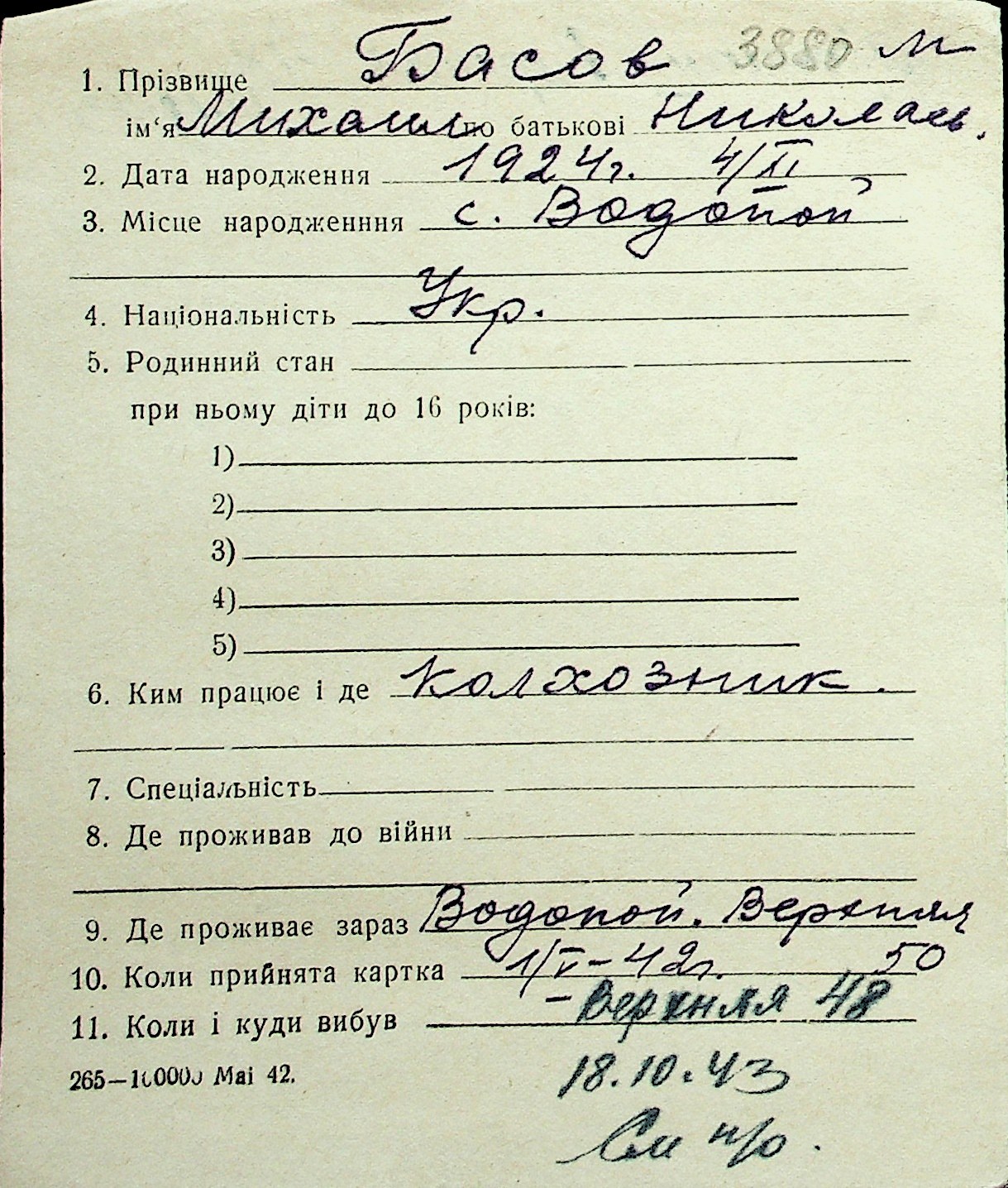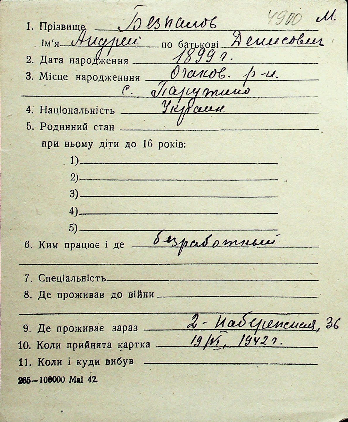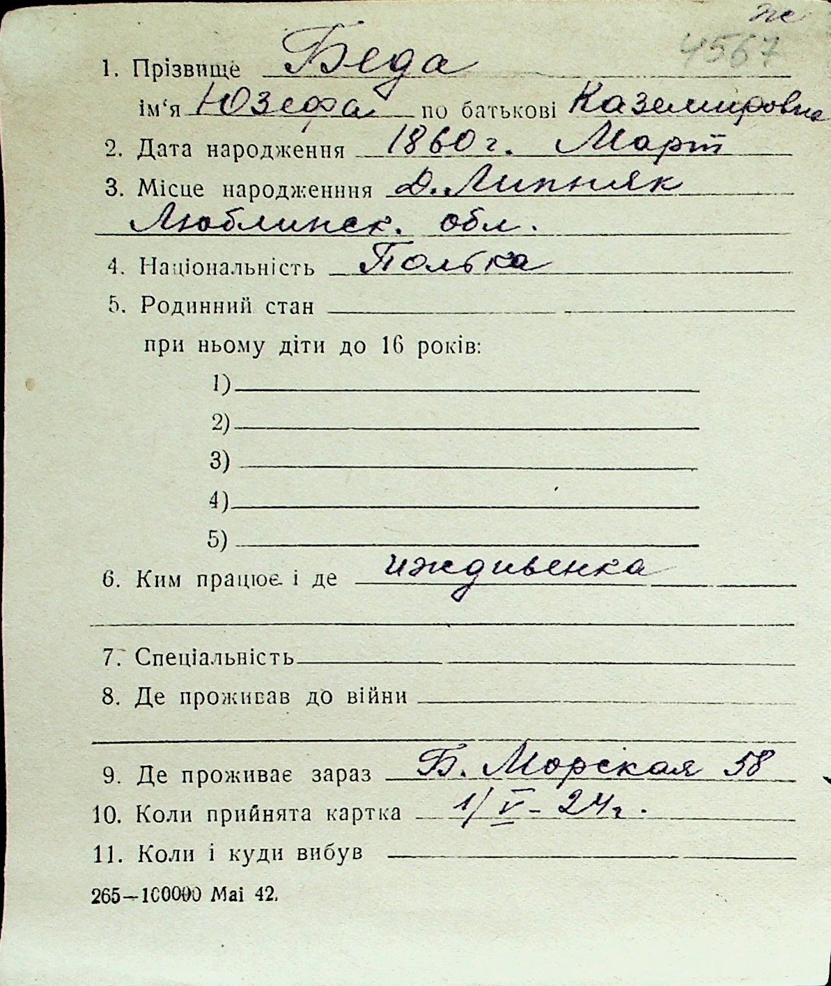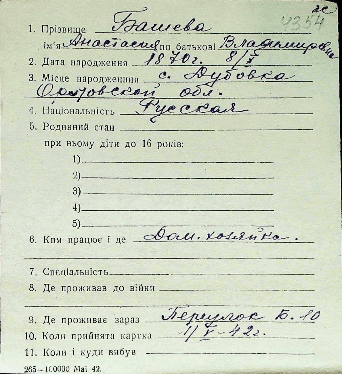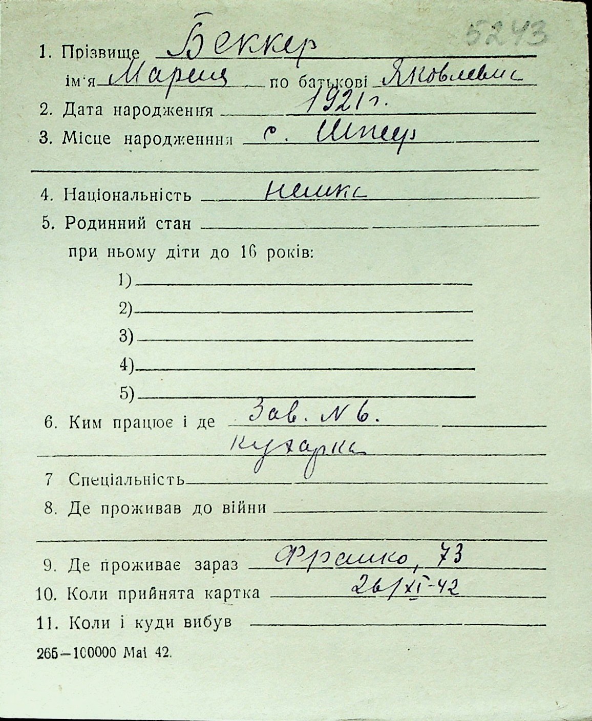 ◦ ◦ Перелік карток на осіб, які мешкали у м. Миколаїв у період окупації 1941–1944 років