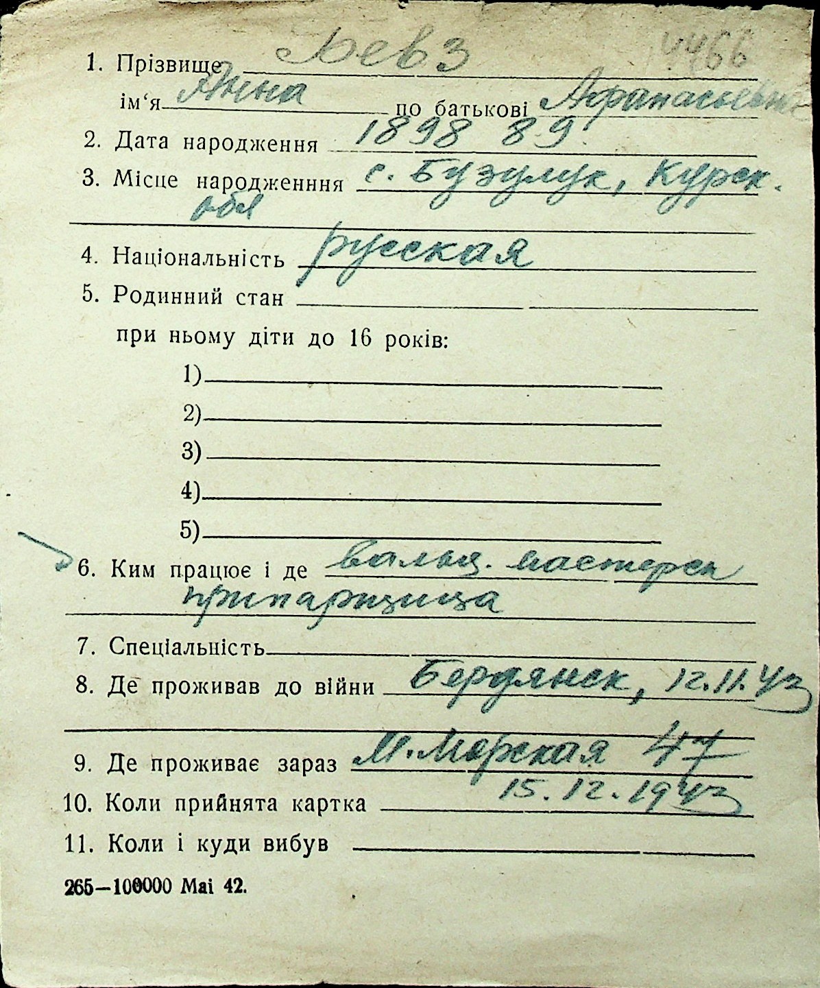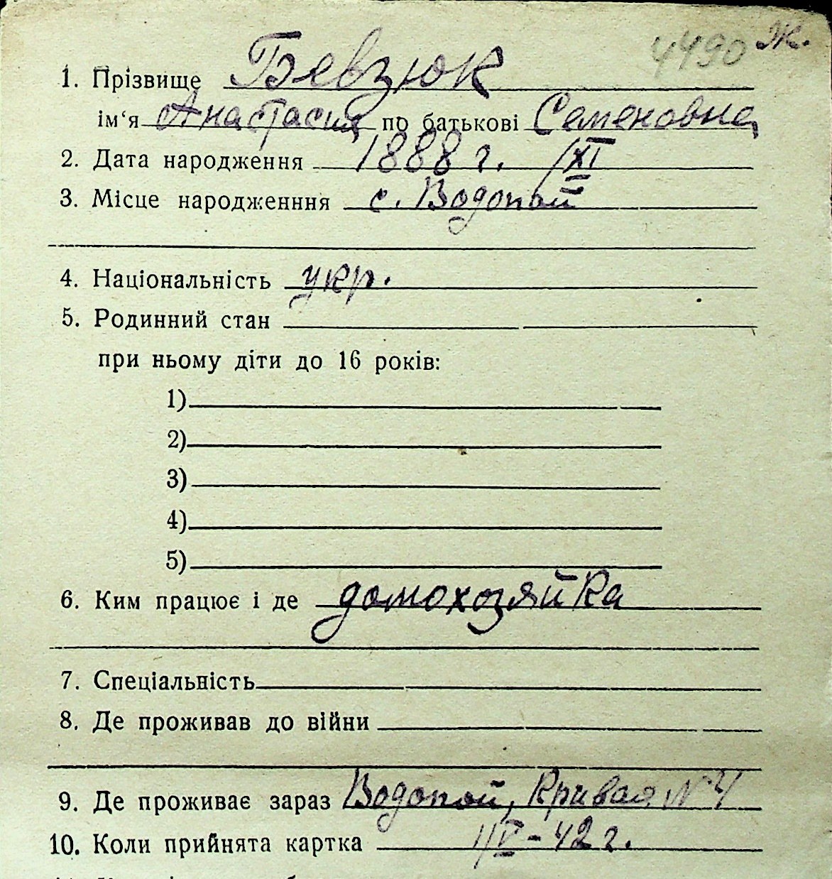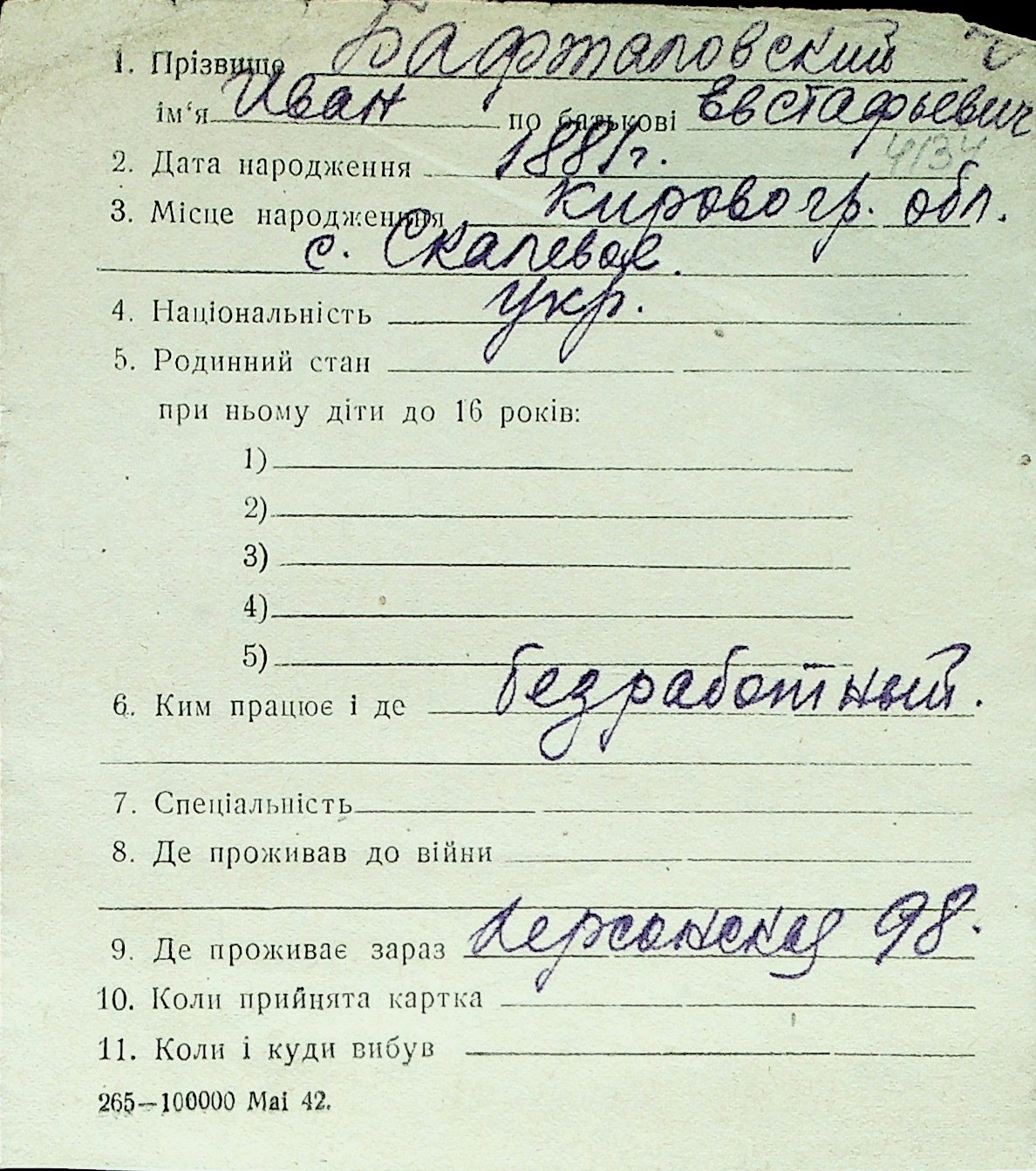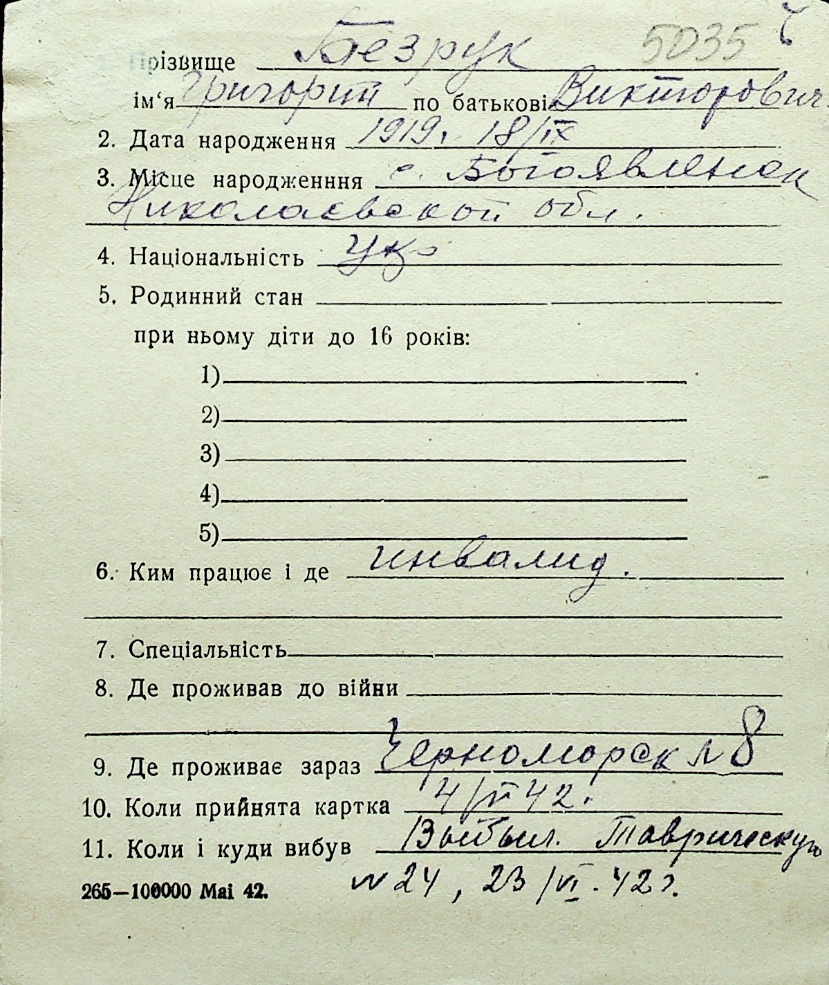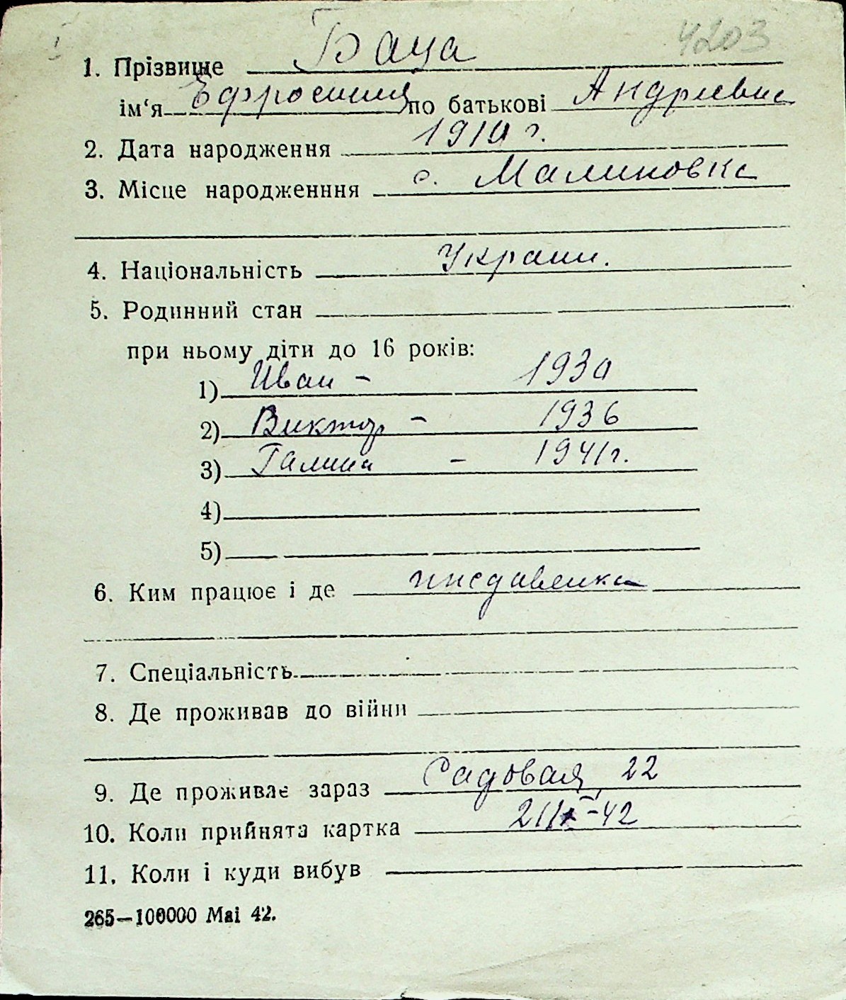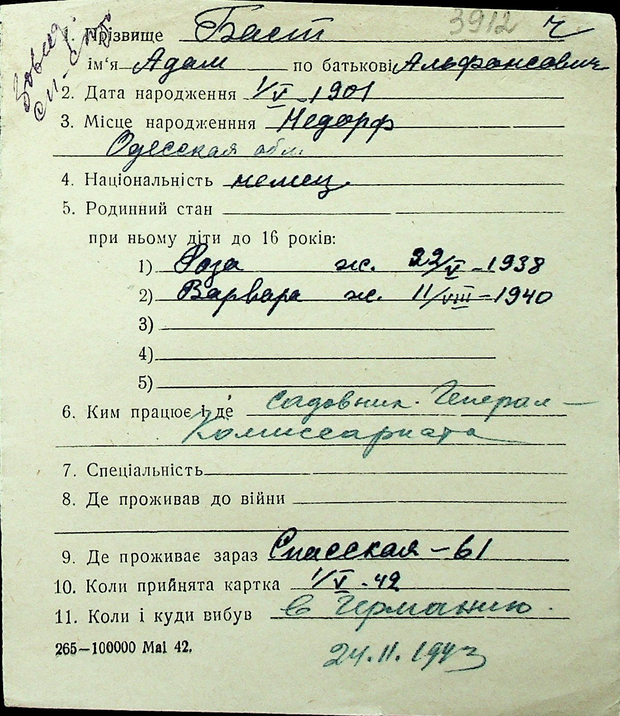 ◦ ◦ Перелік карток на осіб, які мешкали у м. Миколаїв у період окупації 1941–1944 років