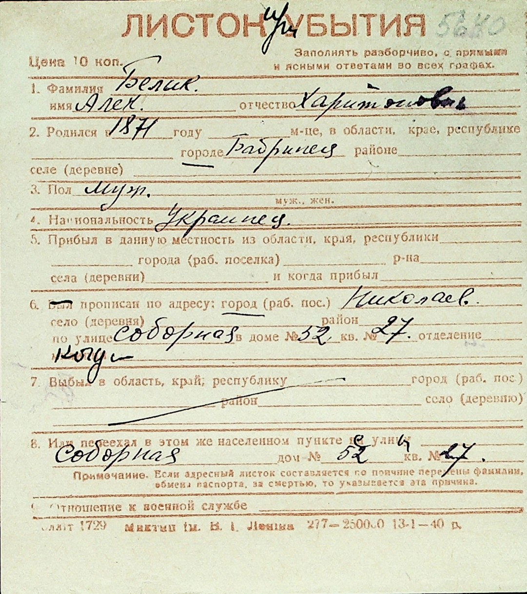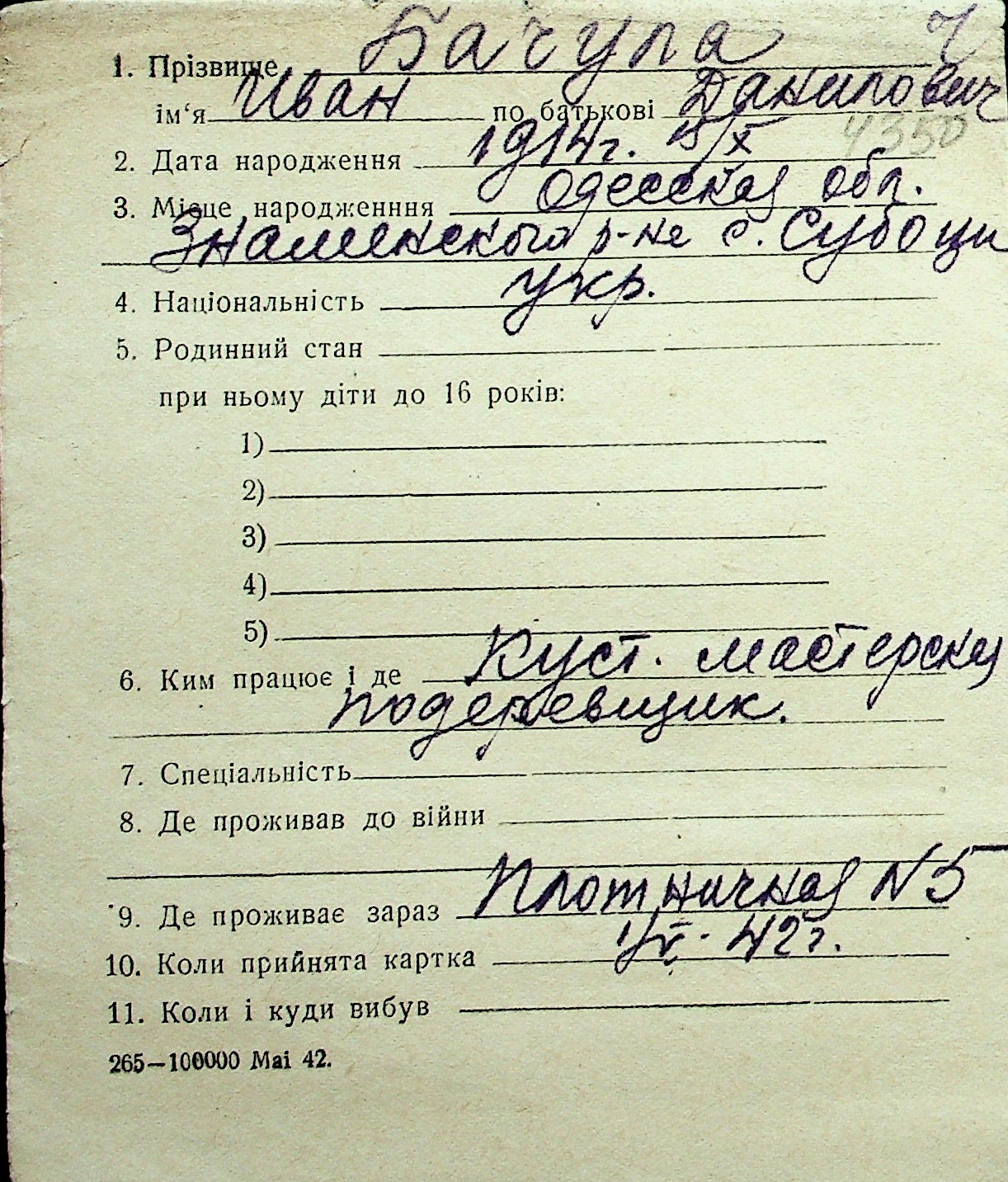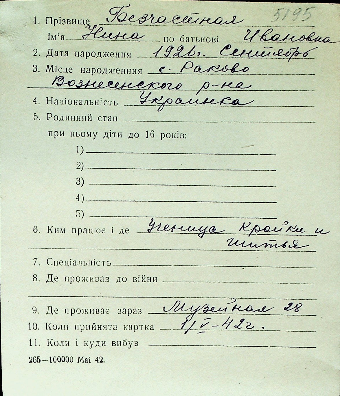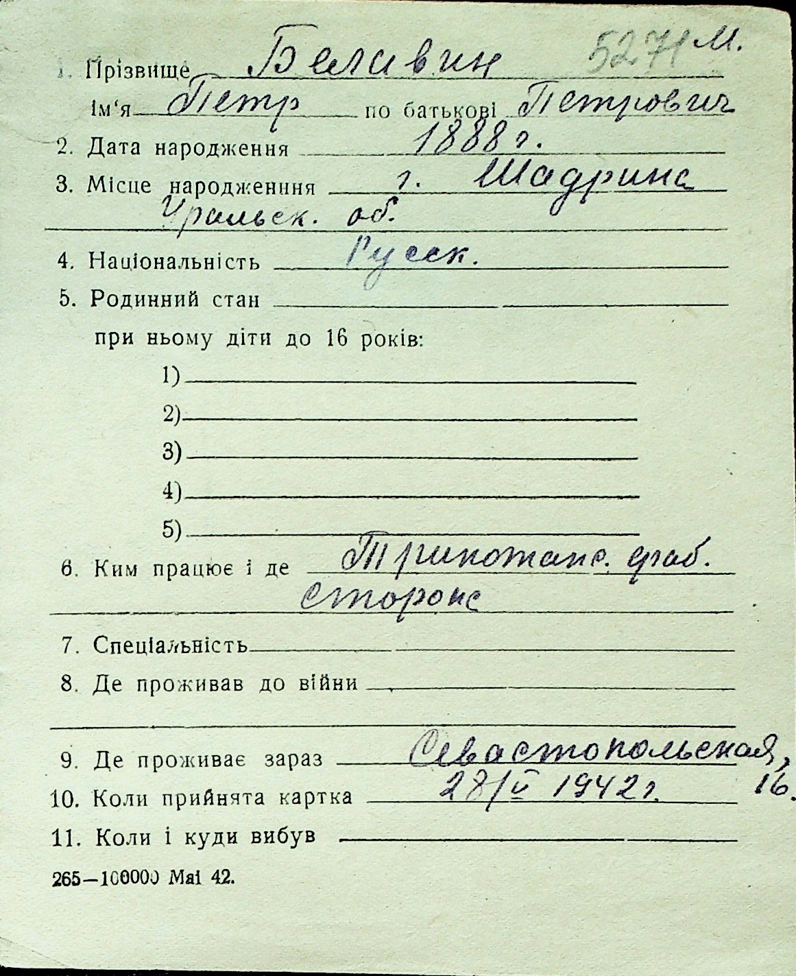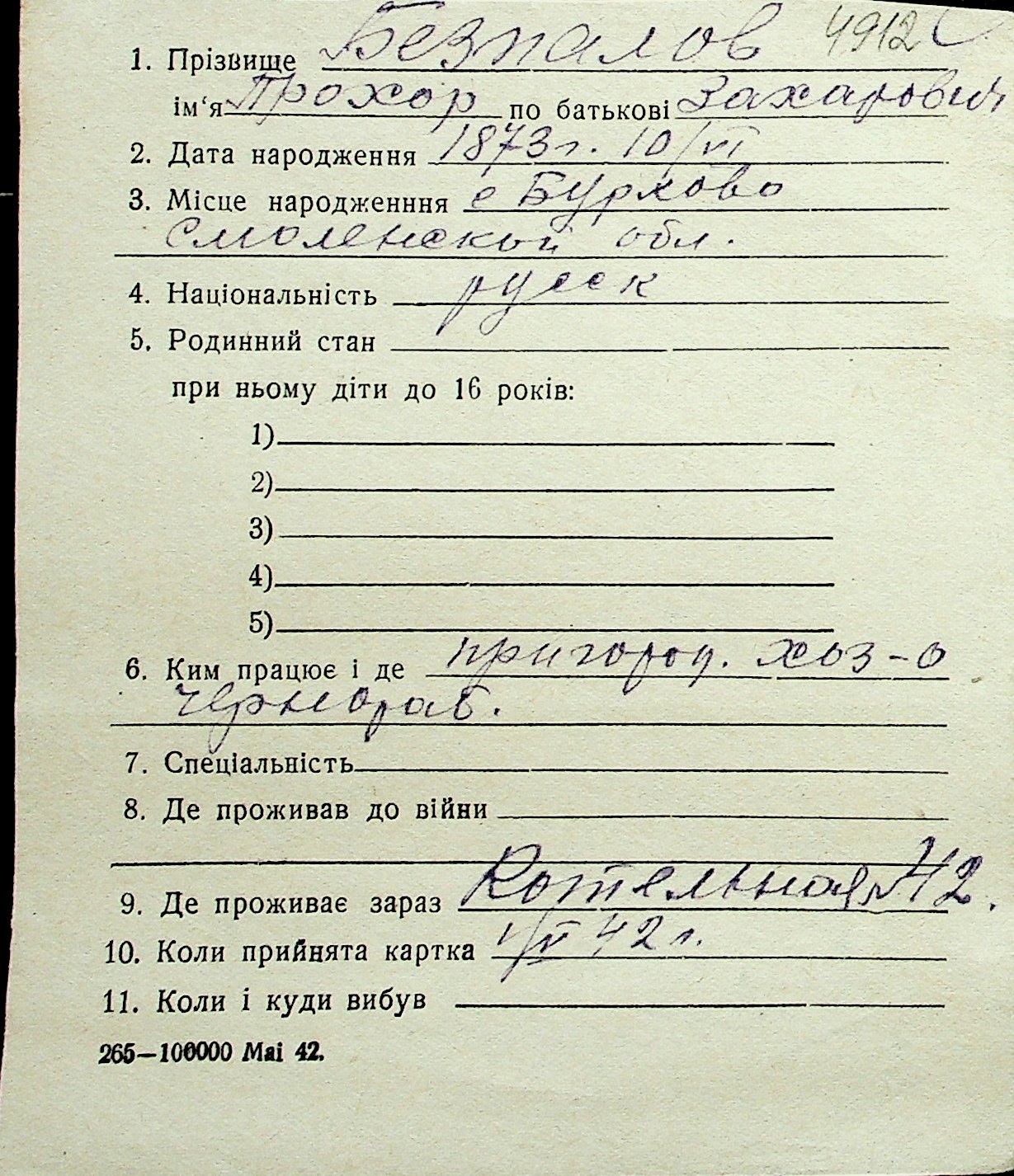 ◦ ◦ Перелік карток на осіб, які мешкали у м. Миколаїв у період окупації 1941–1944 років