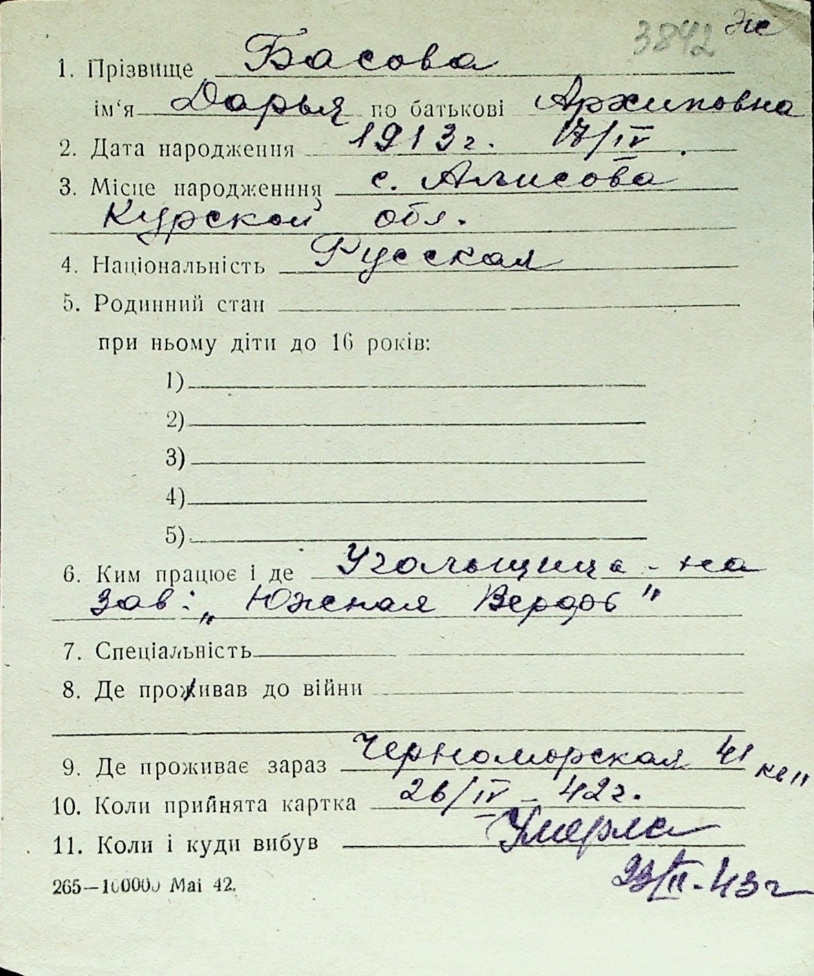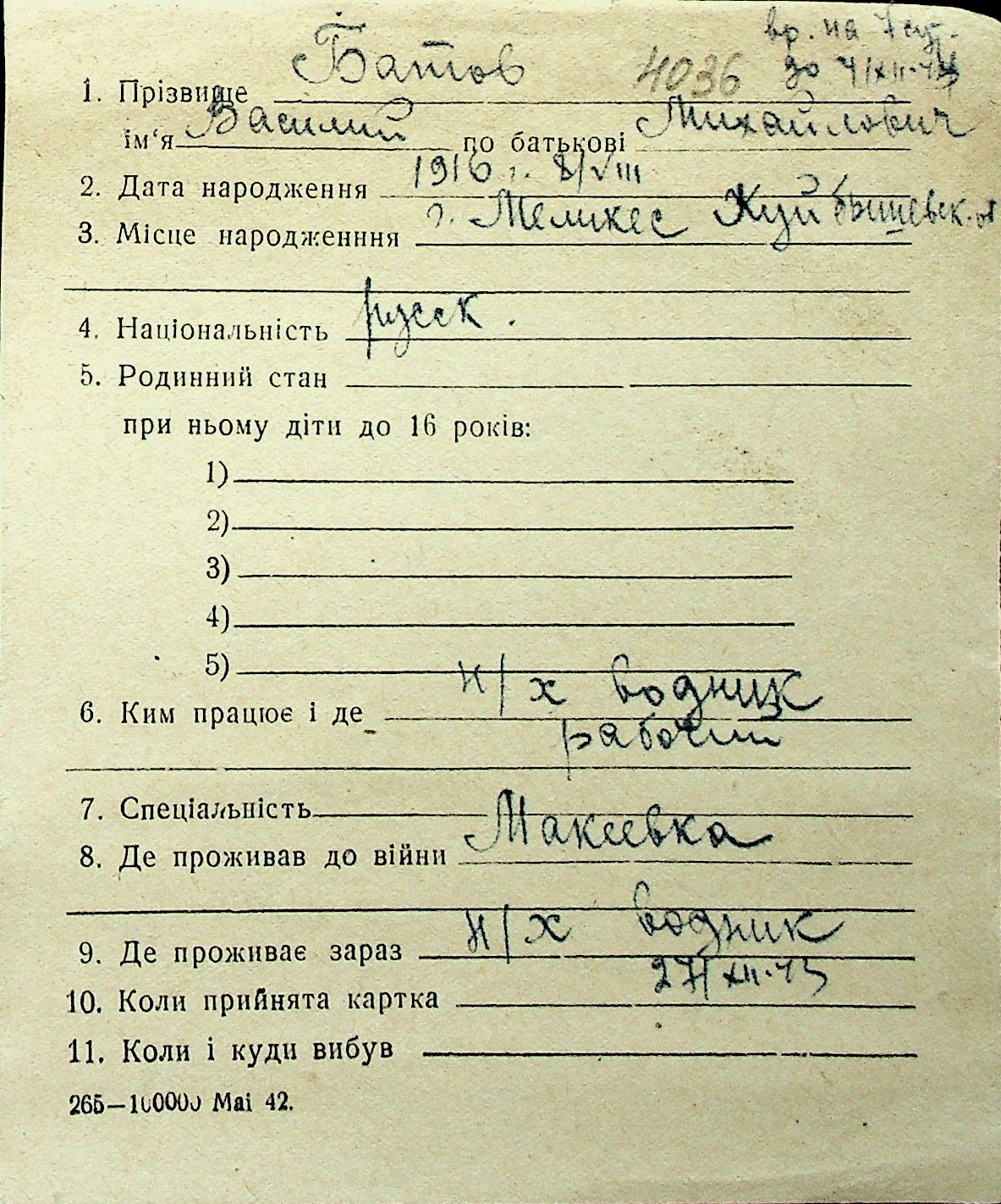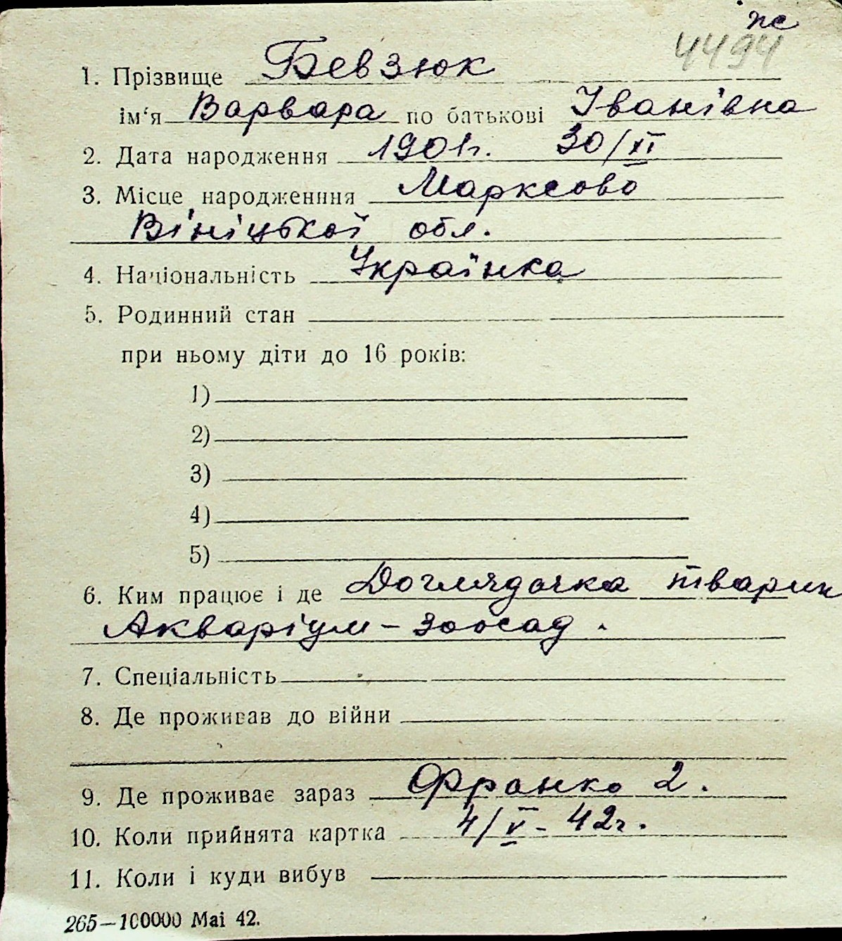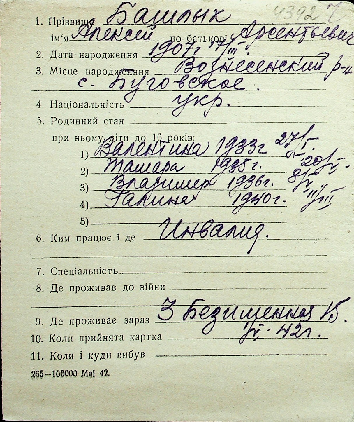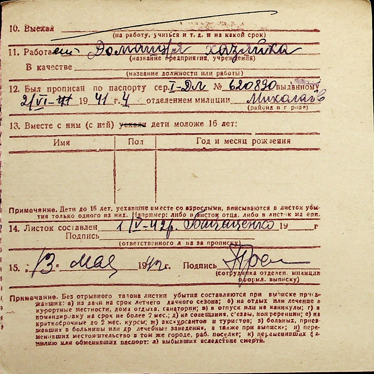 ◦ ◦ Перелік карток на осіб, які мешкали у м. Миколаїв у період окупації 1941–1944 років