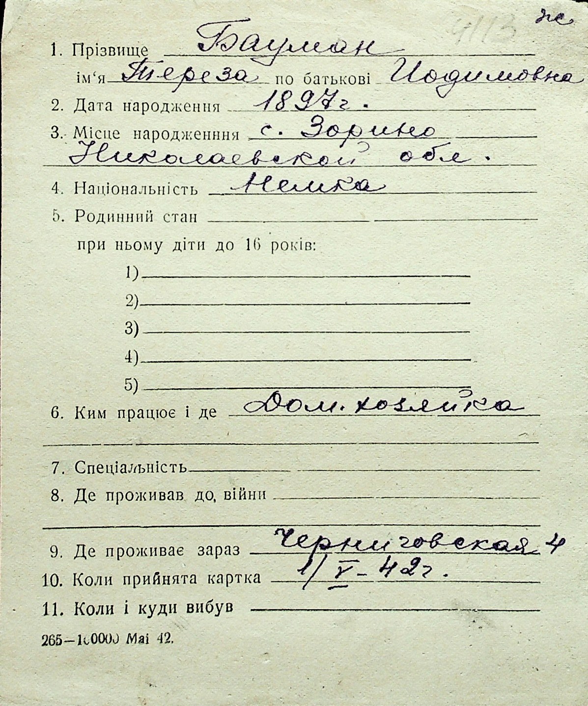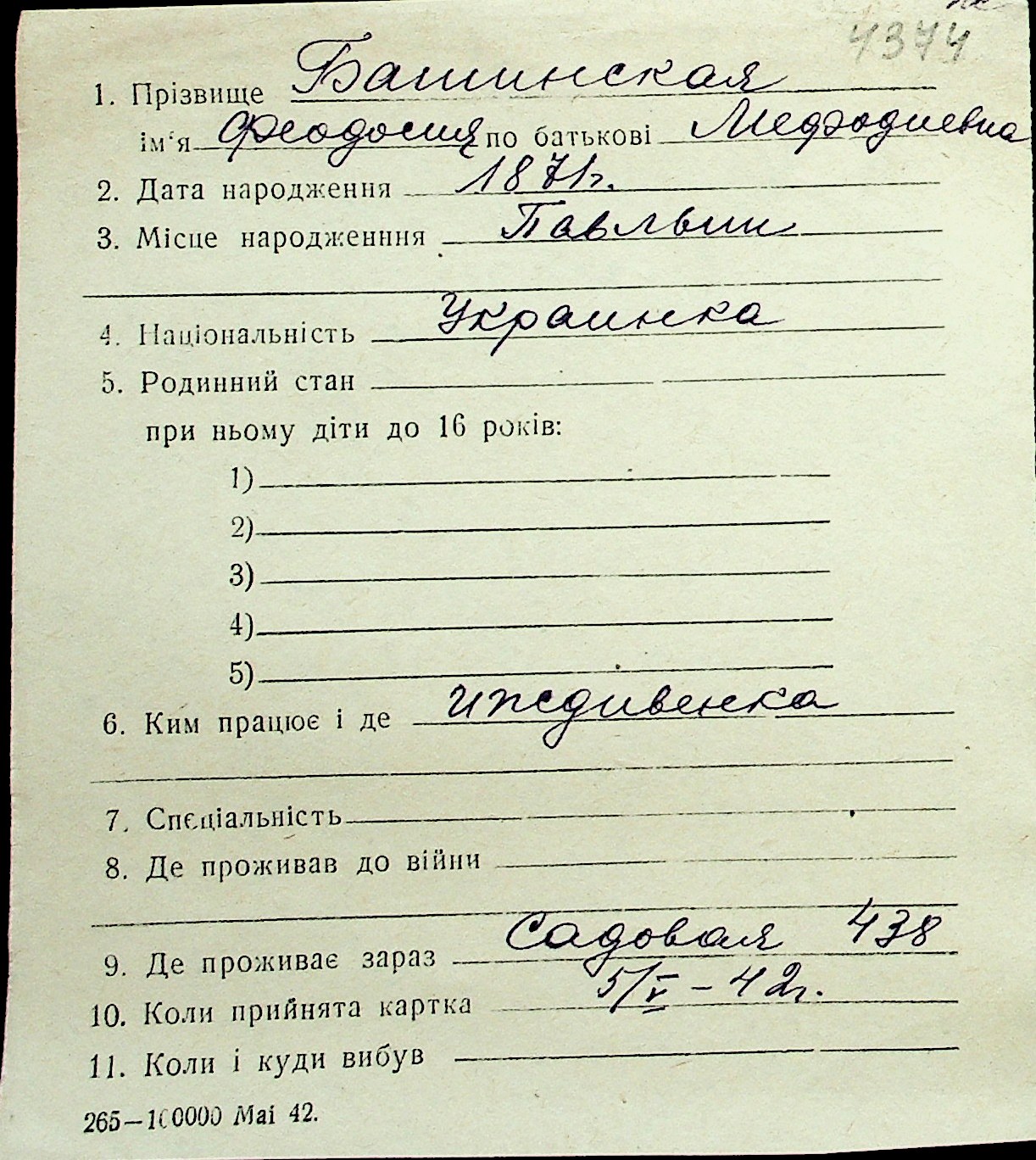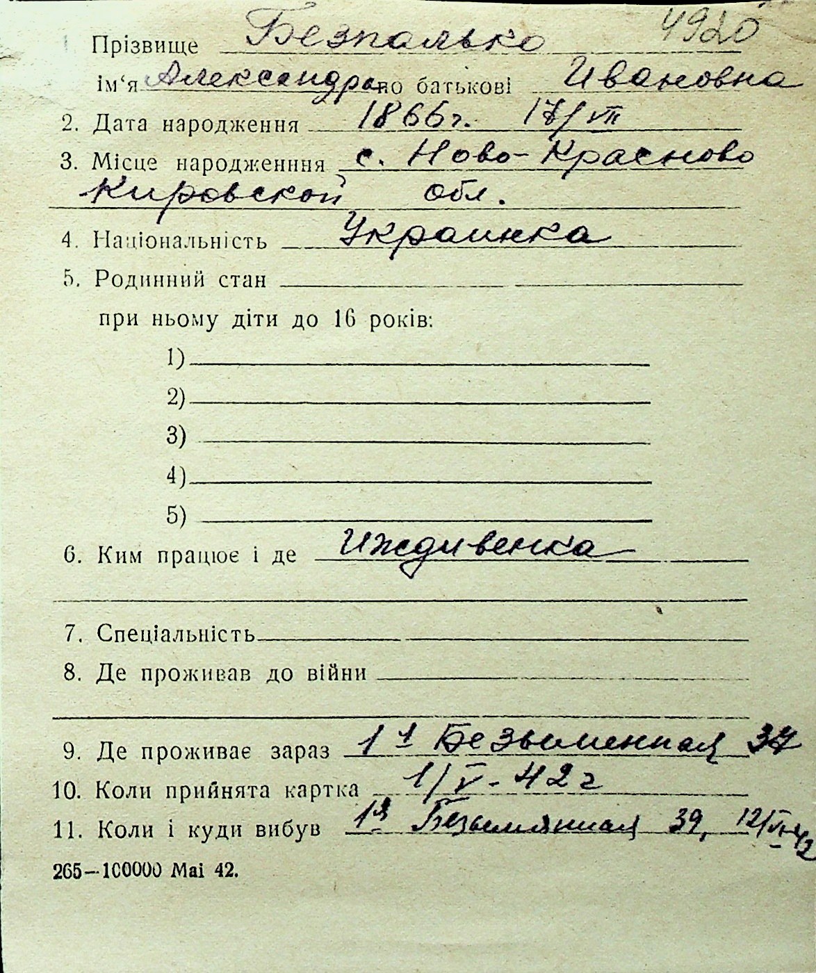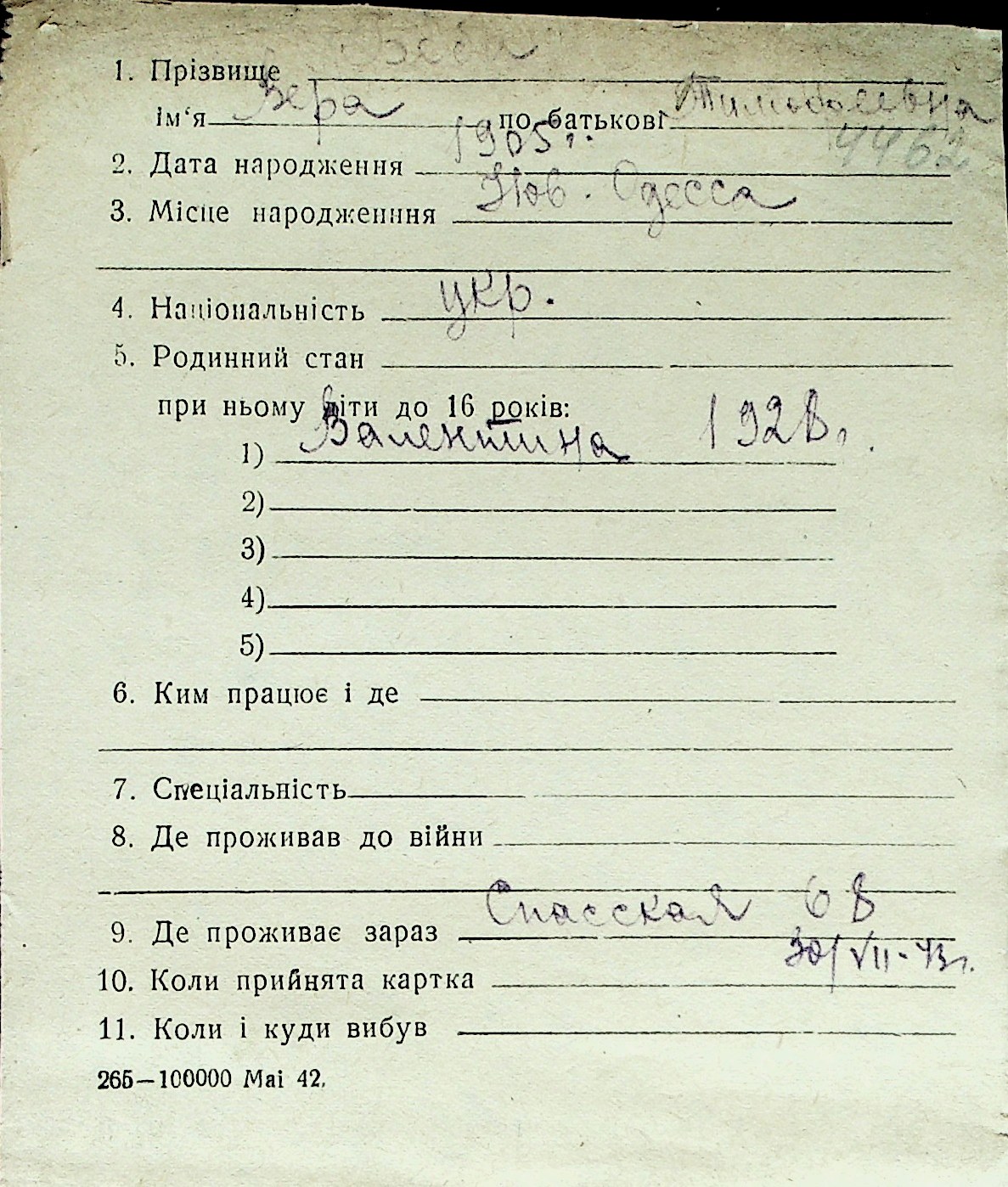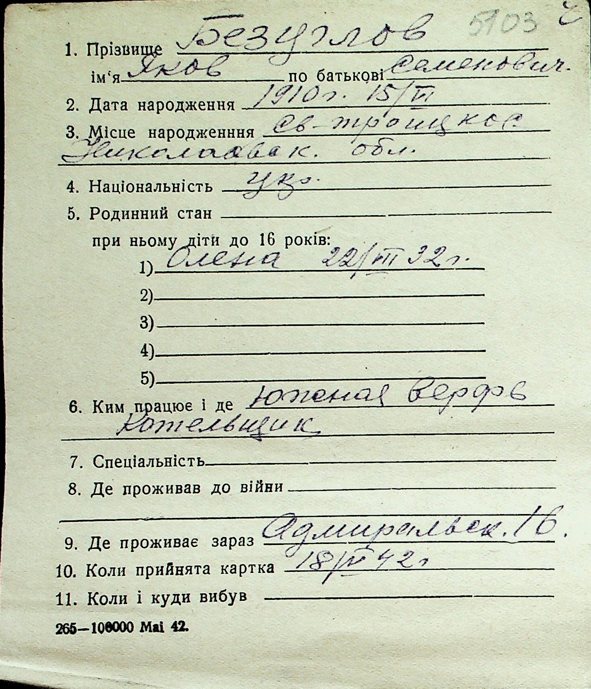 ◦ ◦ Перелік карток на осіб, які мешкали у м. Миколаїв у період окупації 1941–1944 років