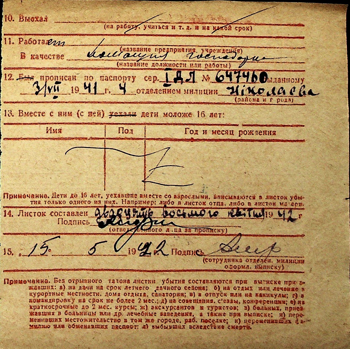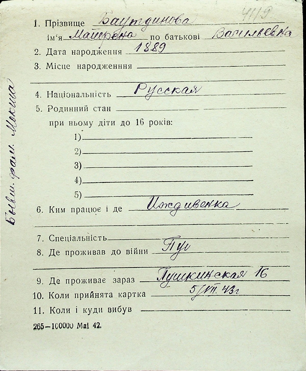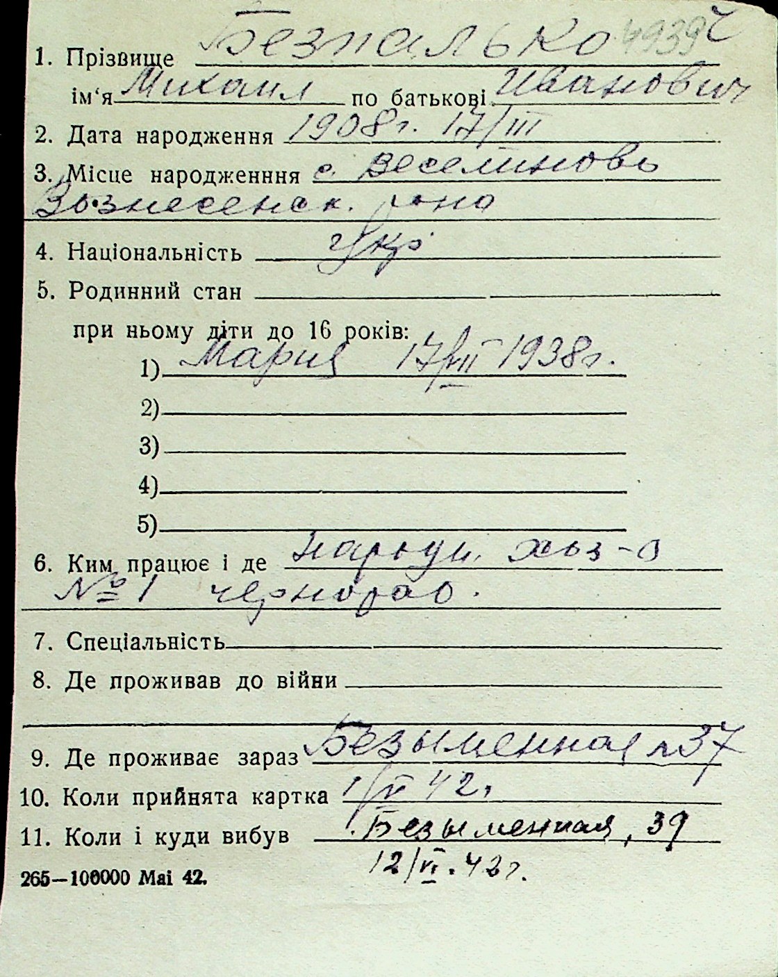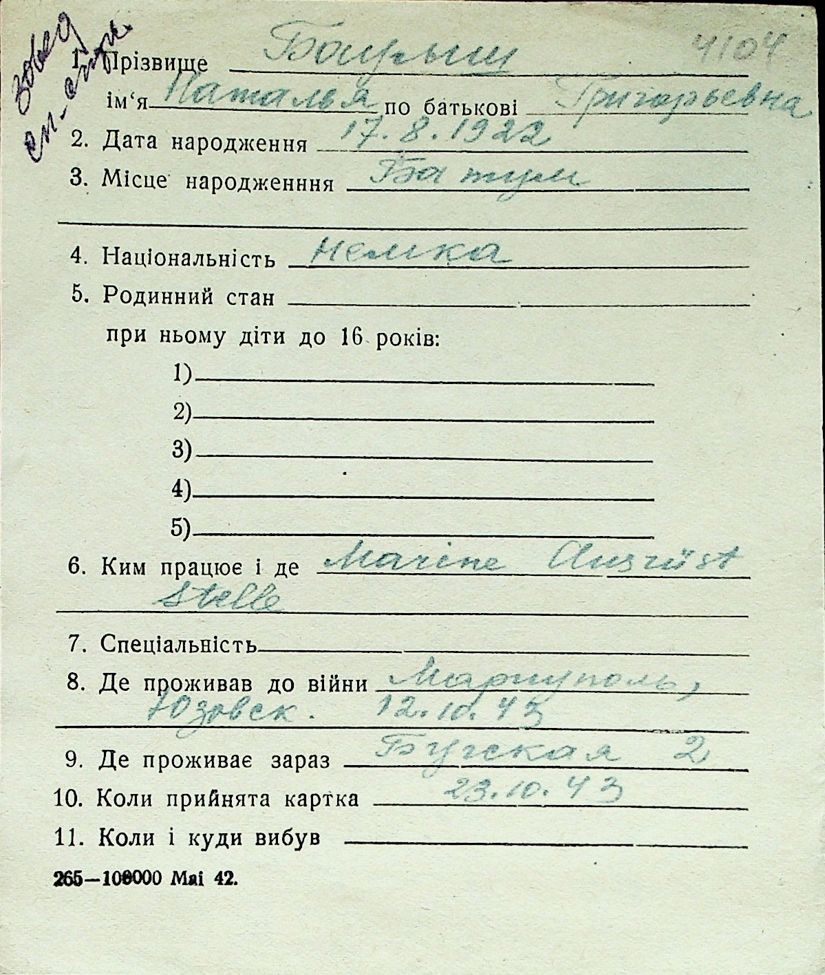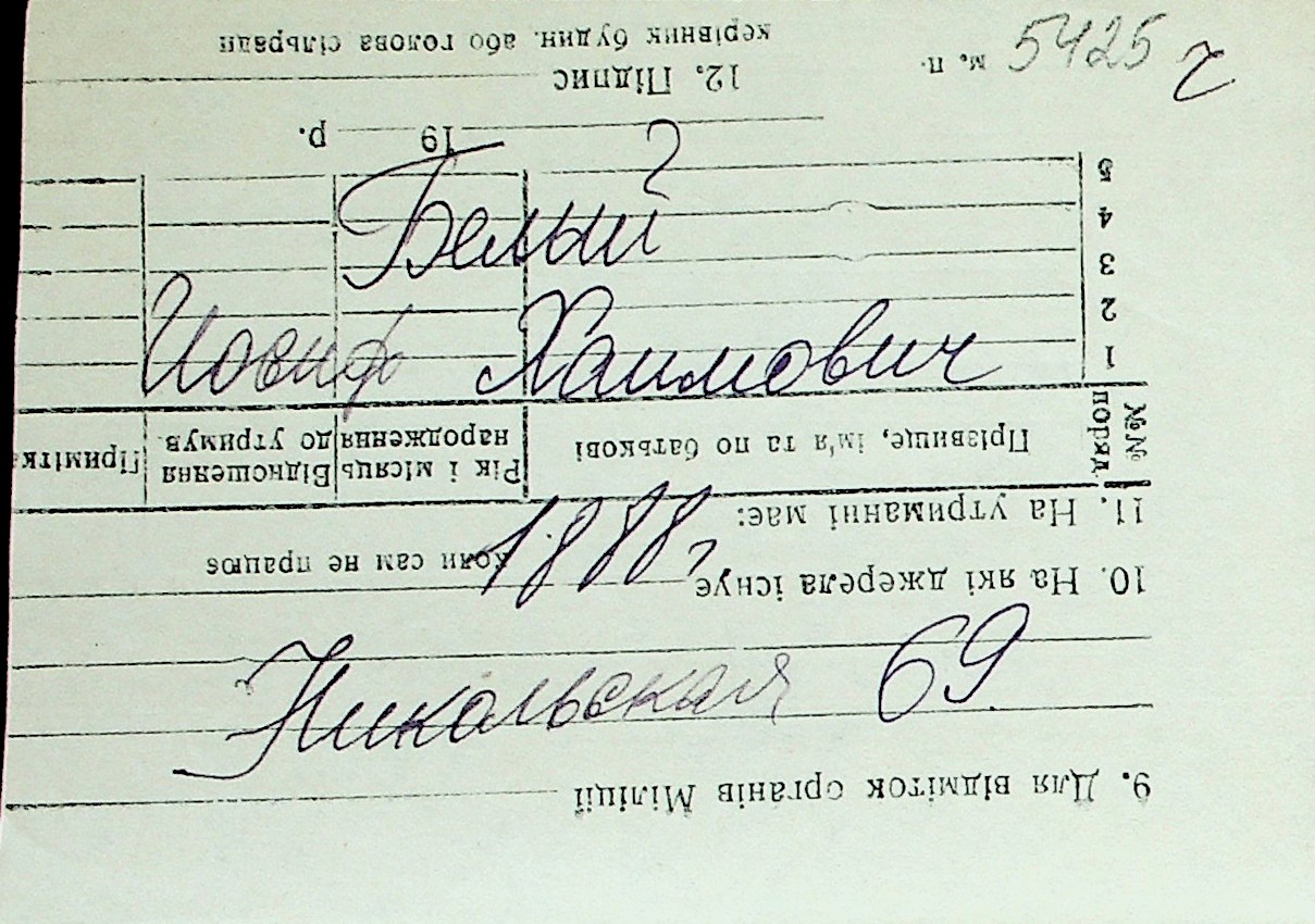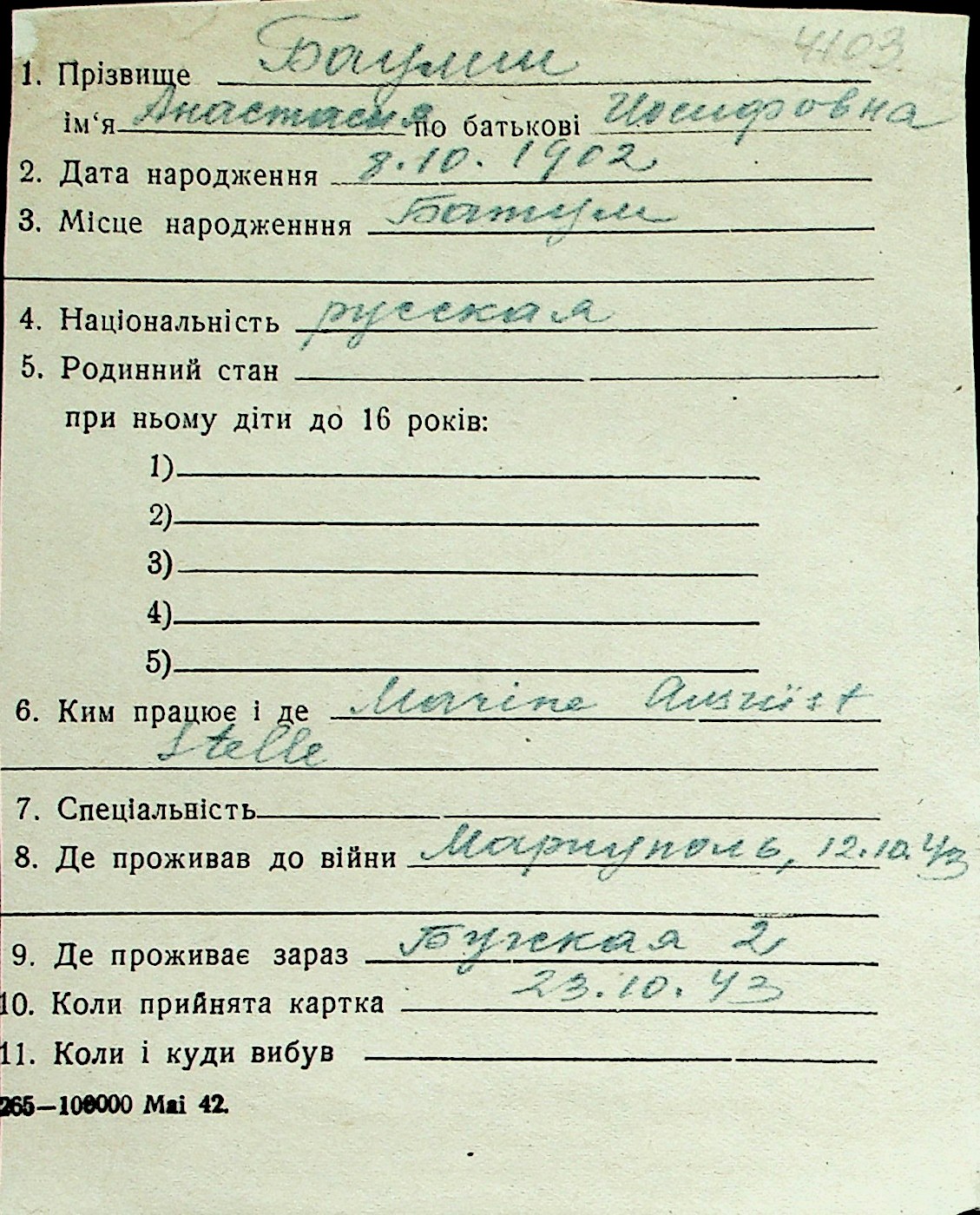 ◦ ◦ Перелік карток на осіб, які мешкали у м. Миколаїв у період окупації 1941–1944 років