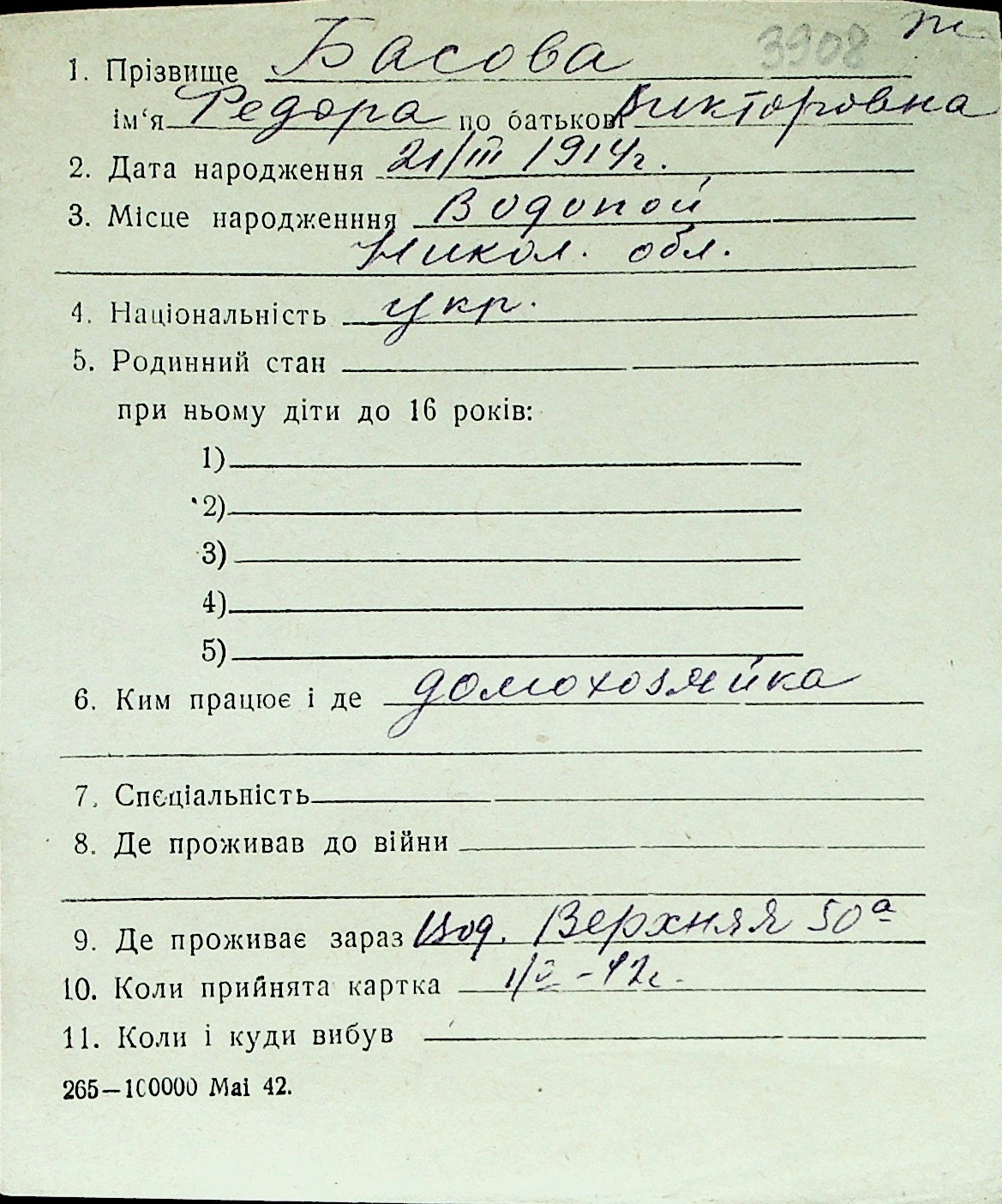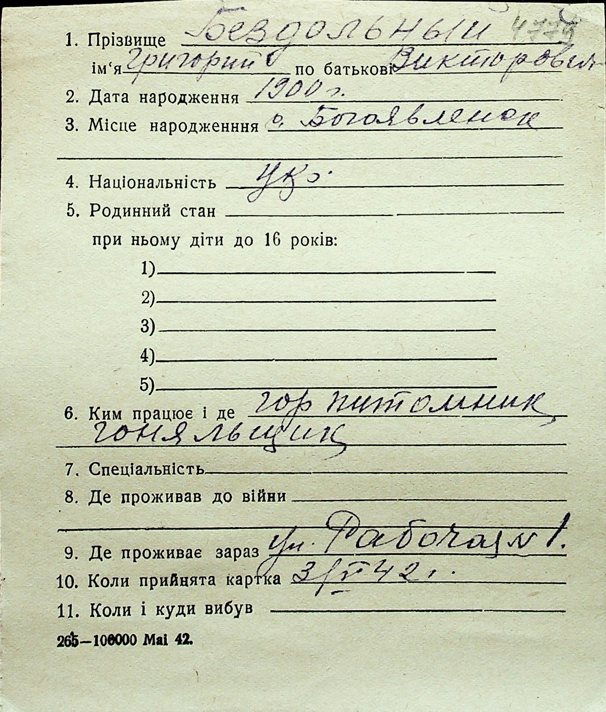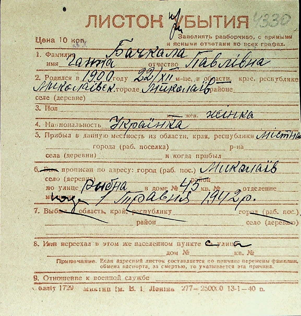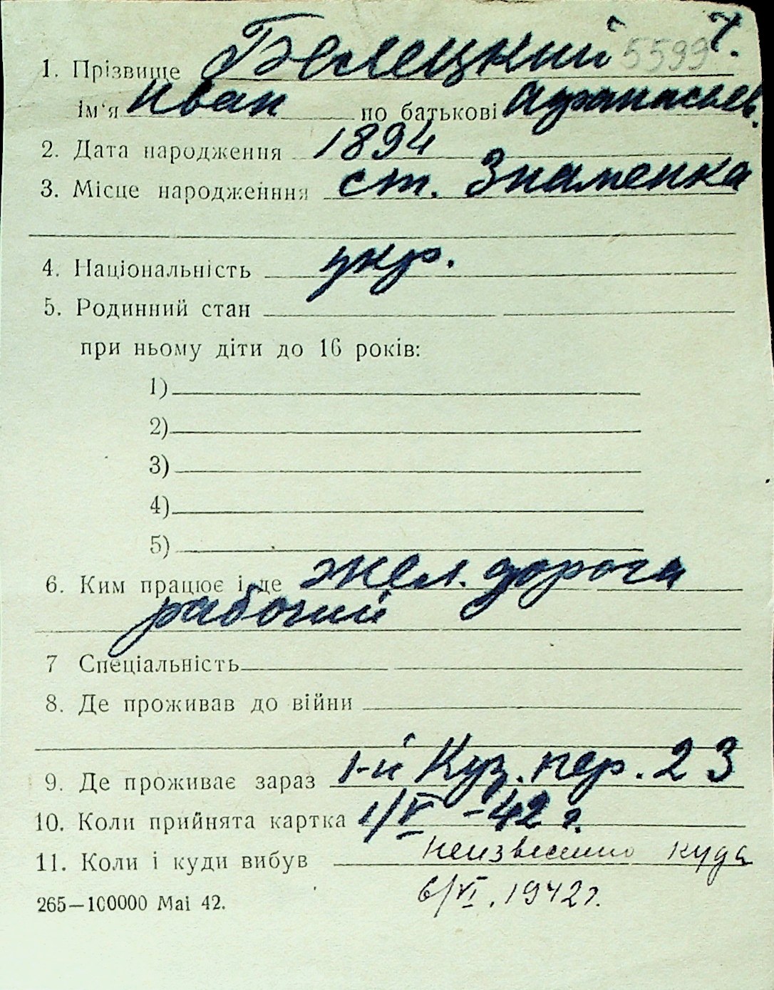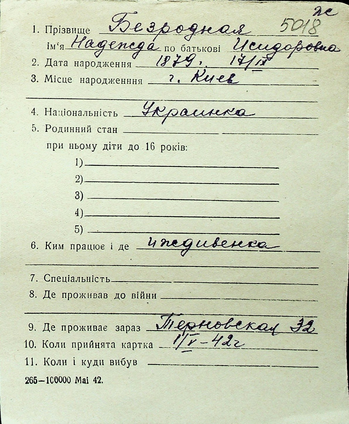 ◦ ◦ Перелік карток на осіб, які мешкали у м. Миколаїв у період окупації 1941–1944 років
