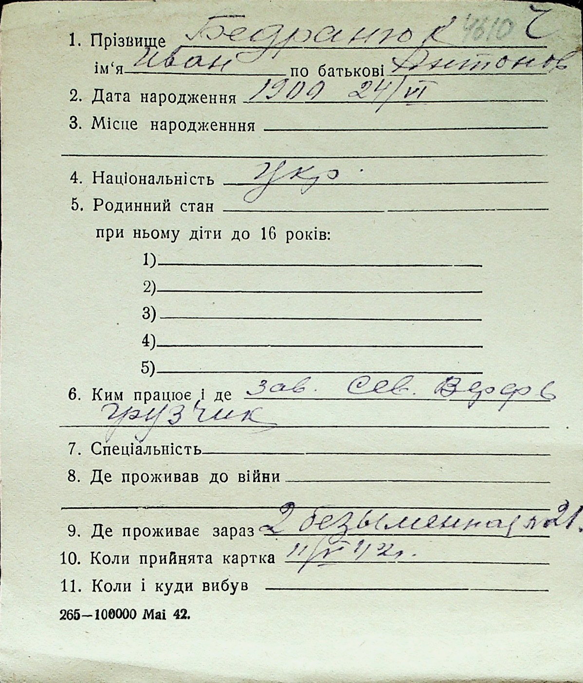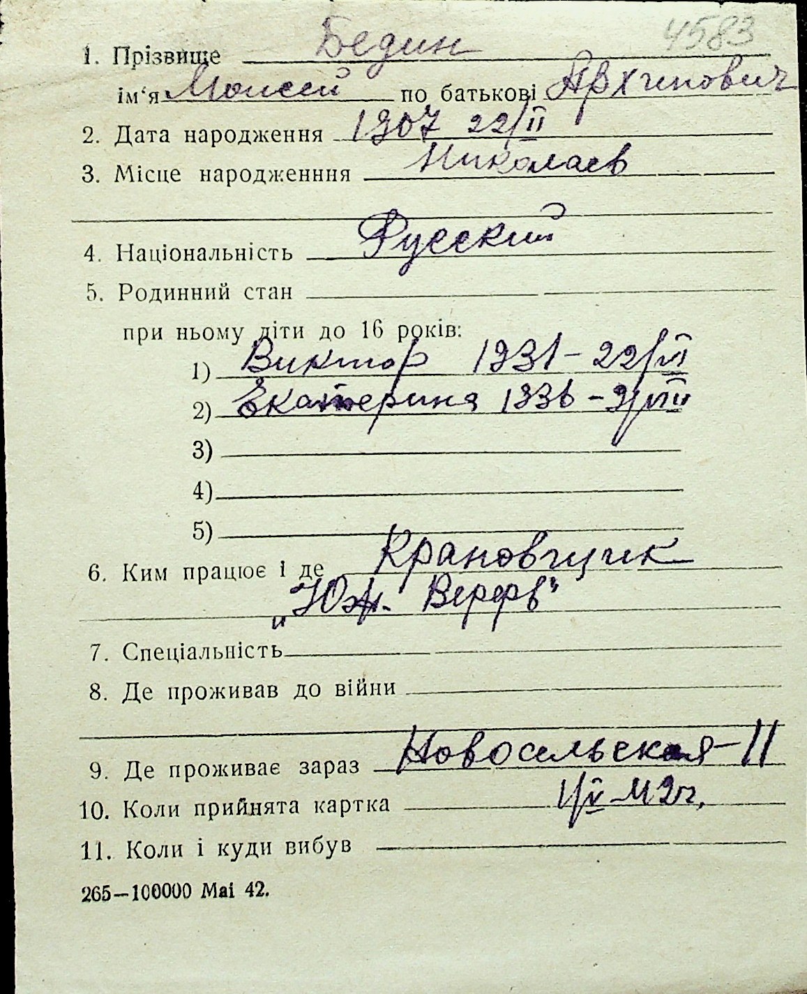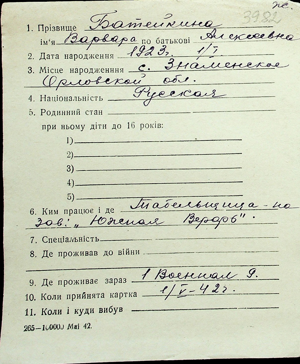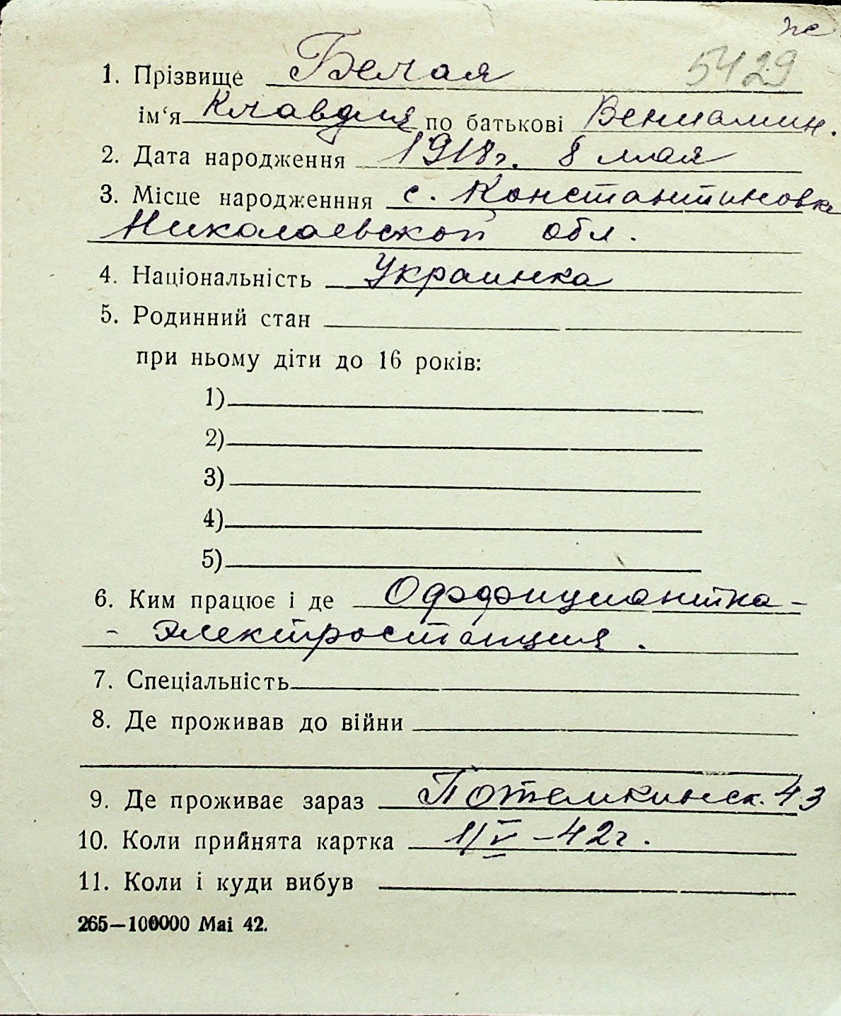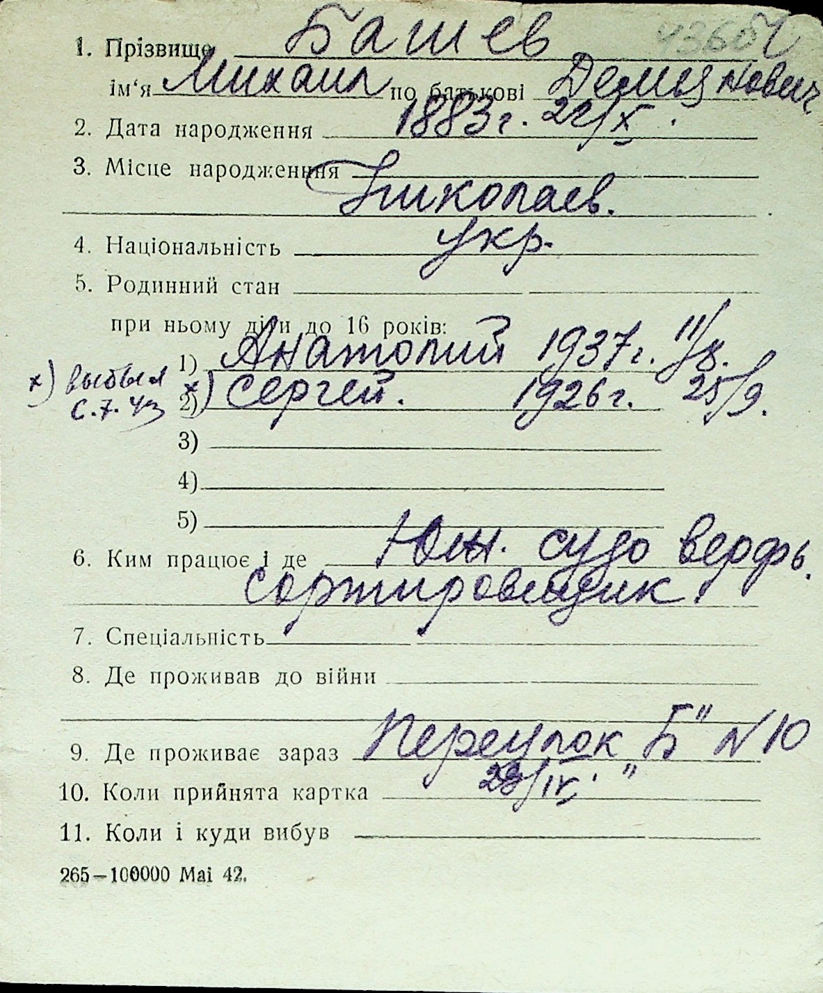◦ ◦ Перелік карток на осіб, які мешкали у м. Миколаїв у період окупації 1941–1944 років
