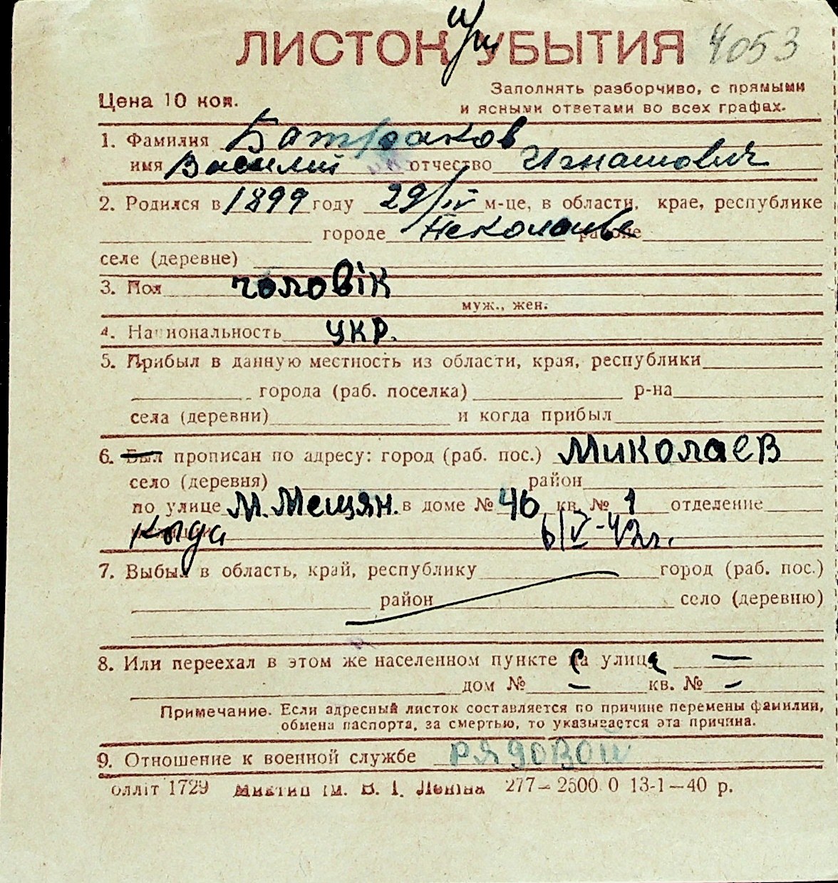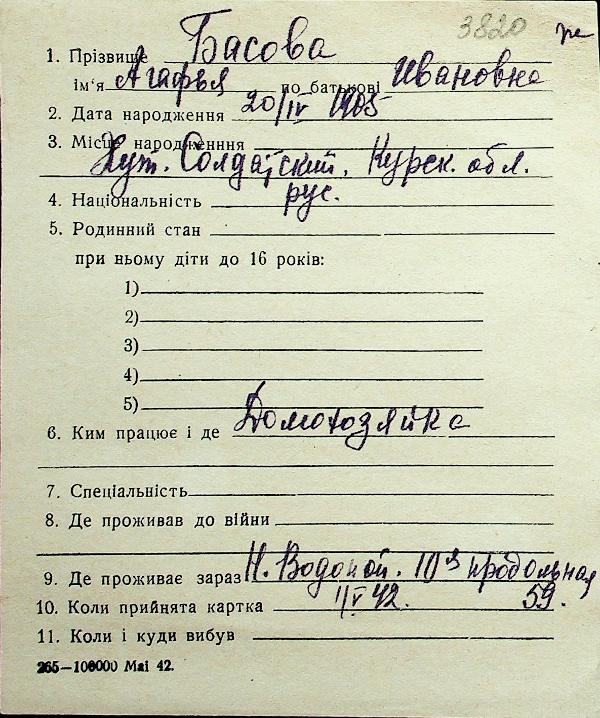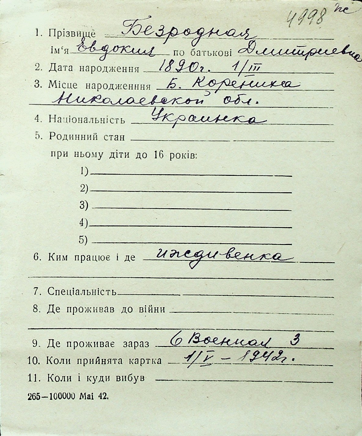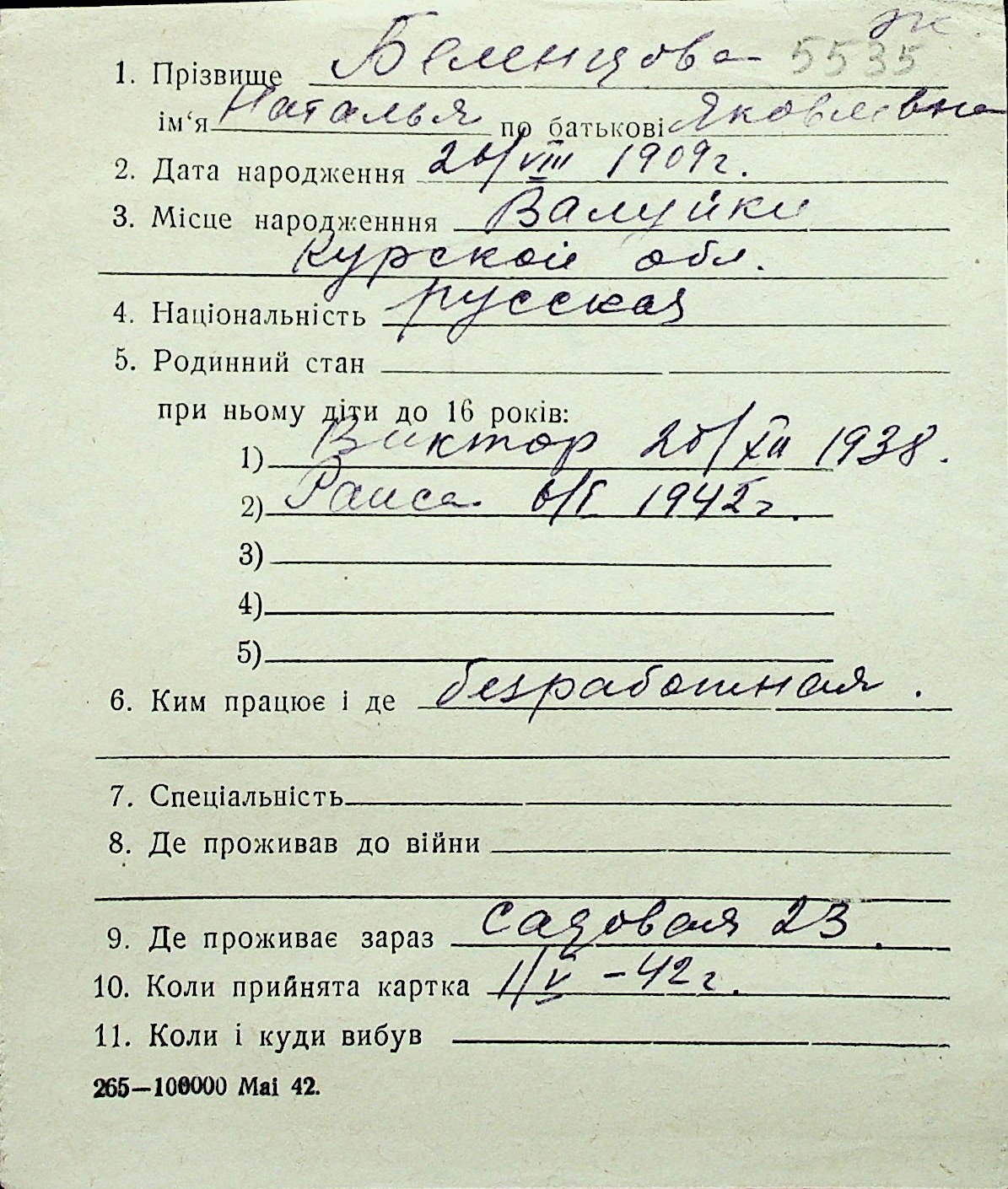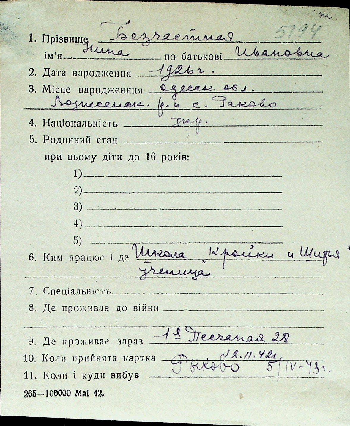 ◦ ◦ Перелік карток на осіб, які мешкали у м. Миколаїв у період окупації 1941–1944 років