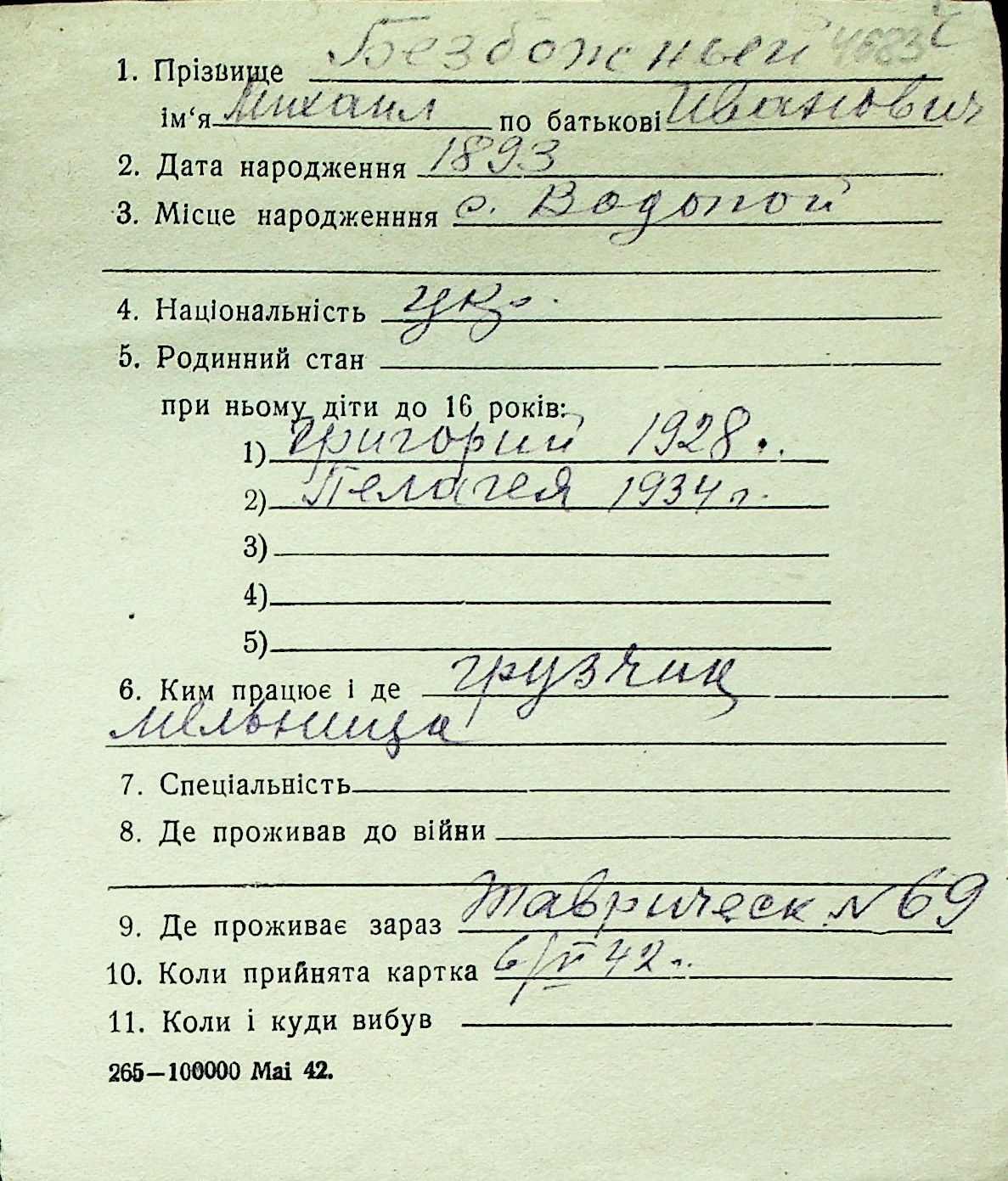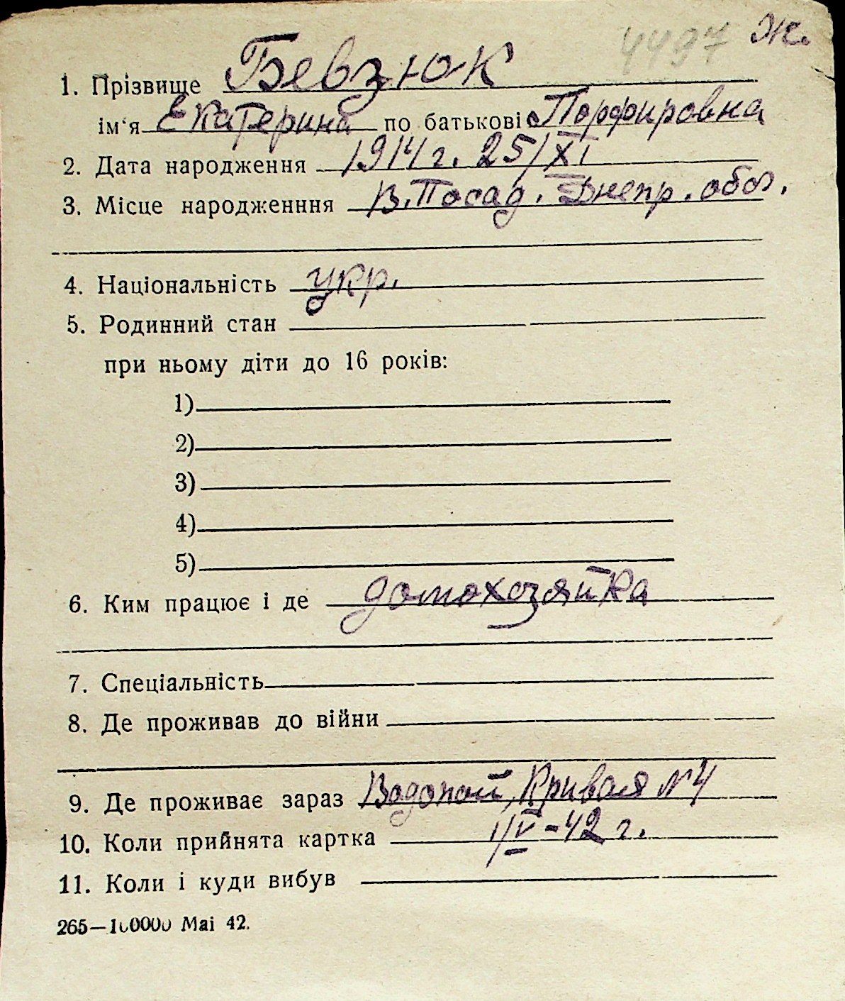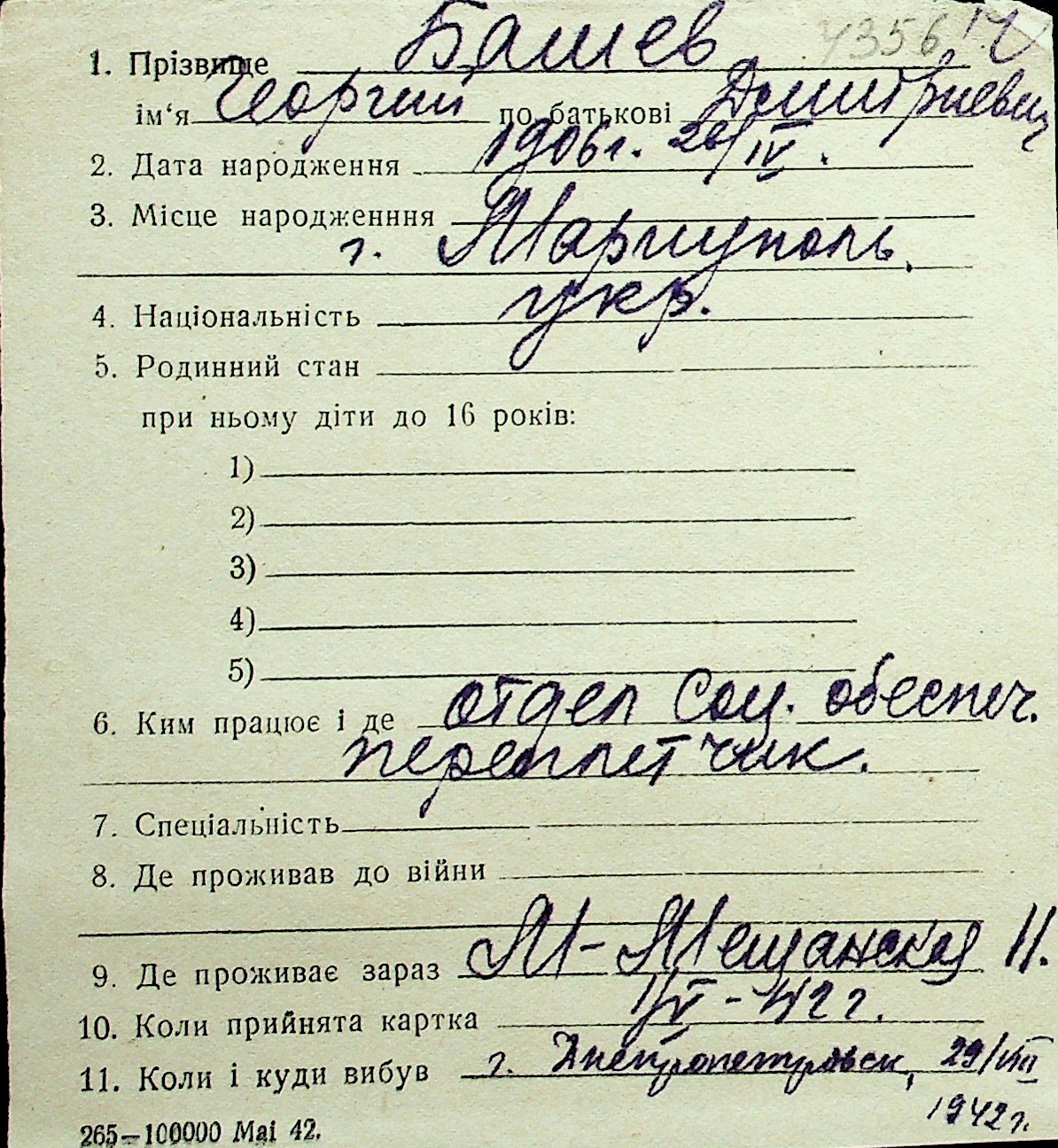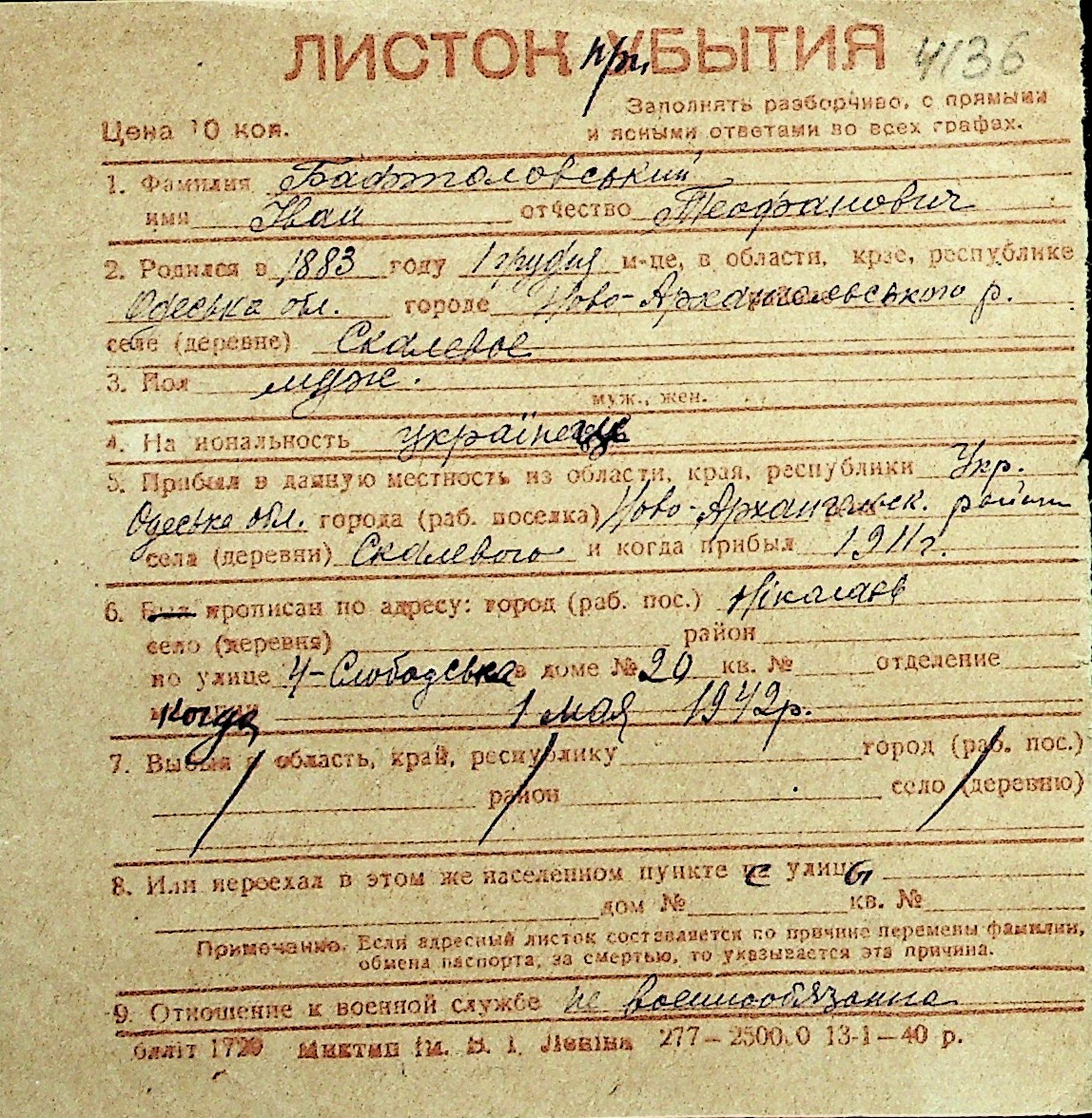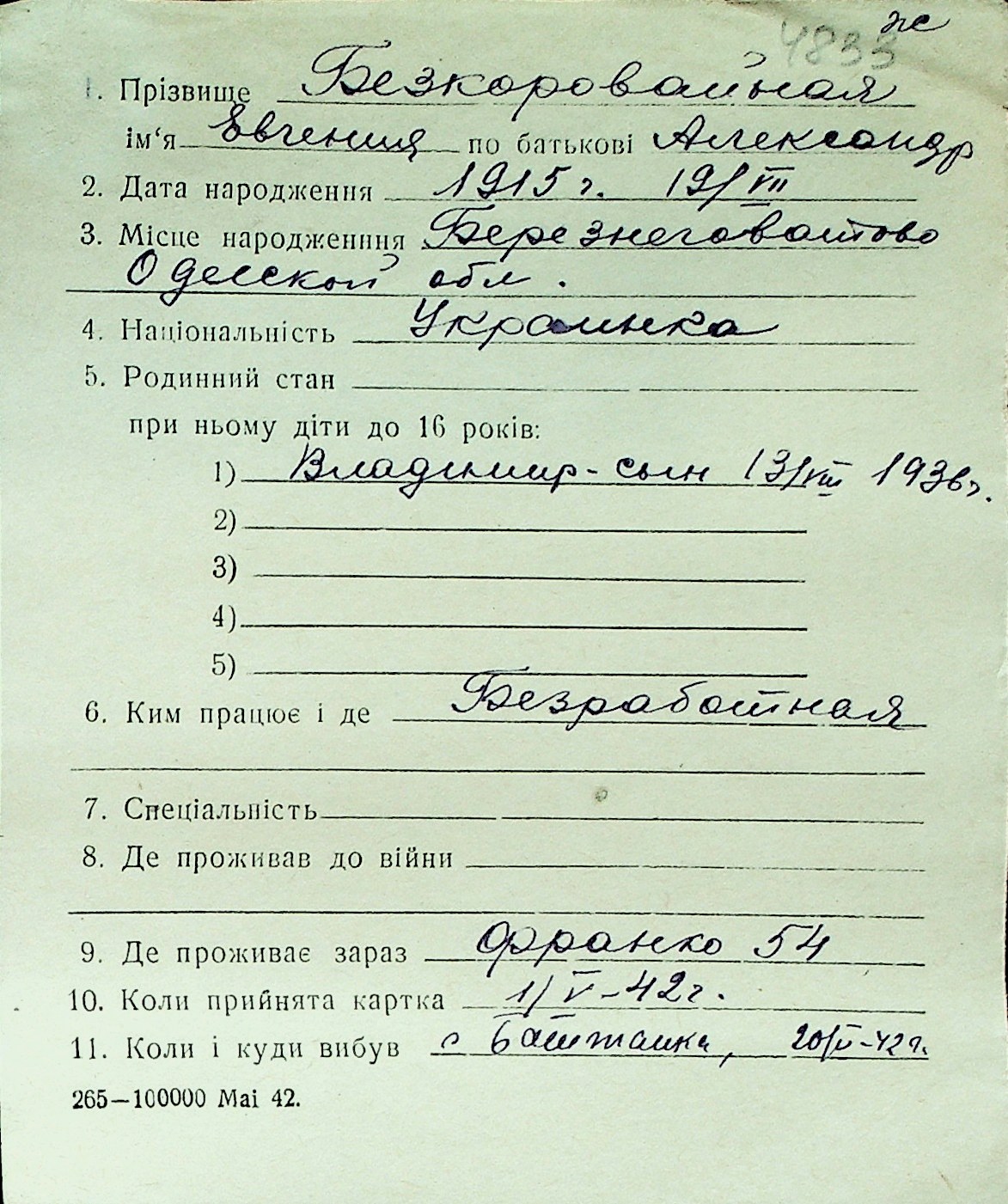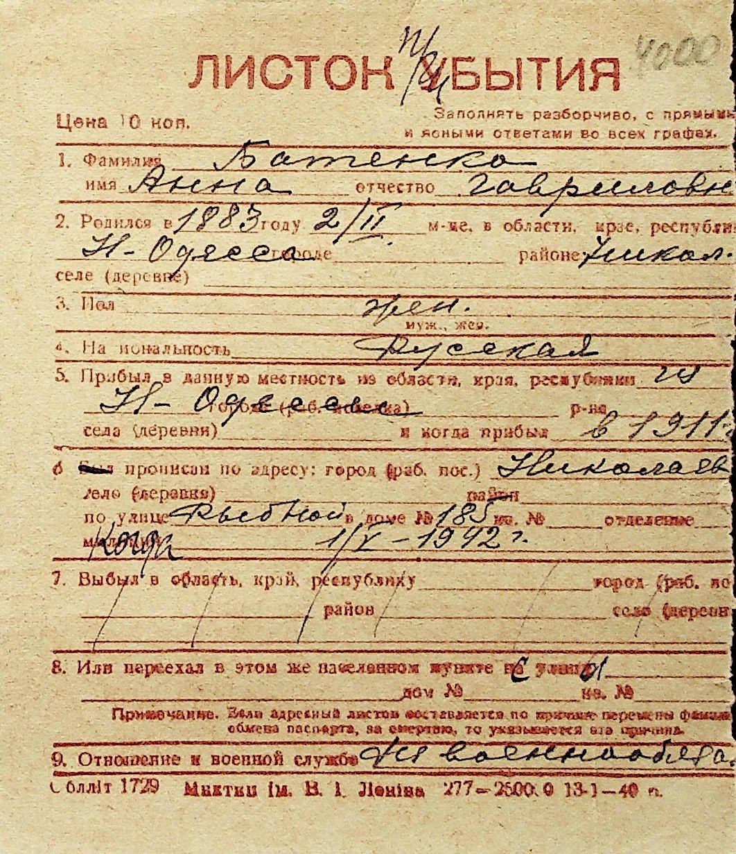 ◦ ◦ Перелік карток на осіб, які мешкали у м. Миколаїв у період окупації 1941–1944 років