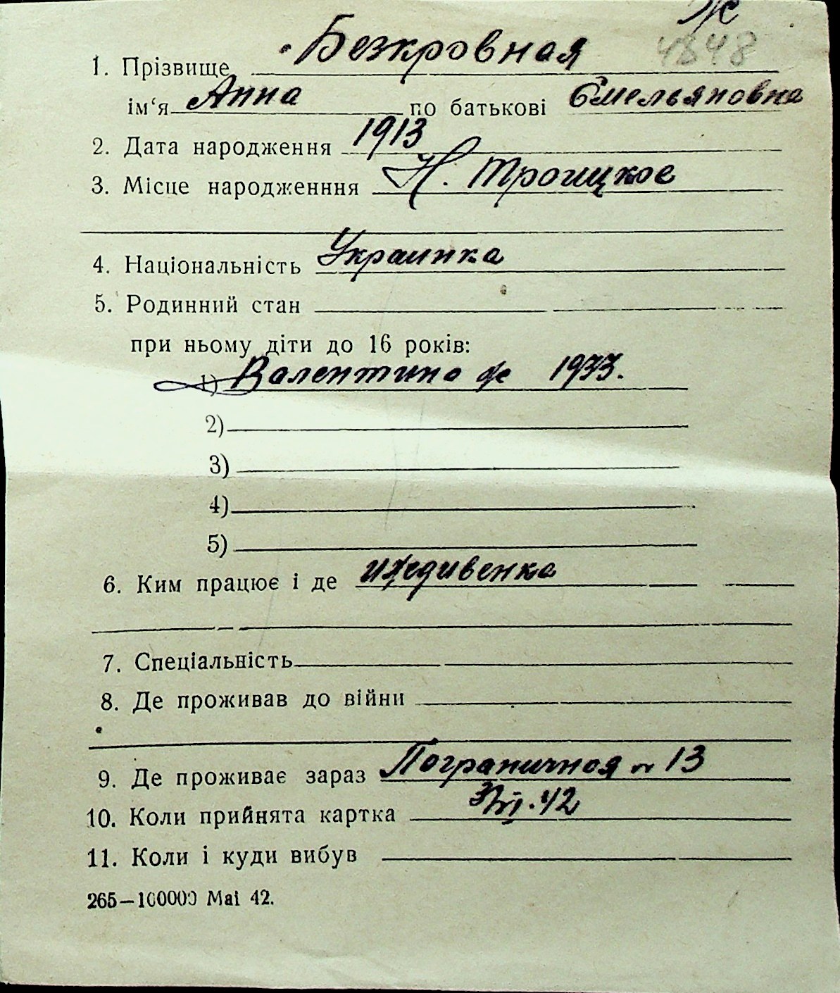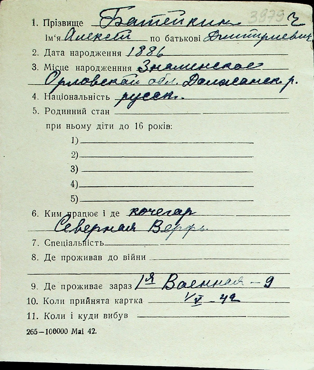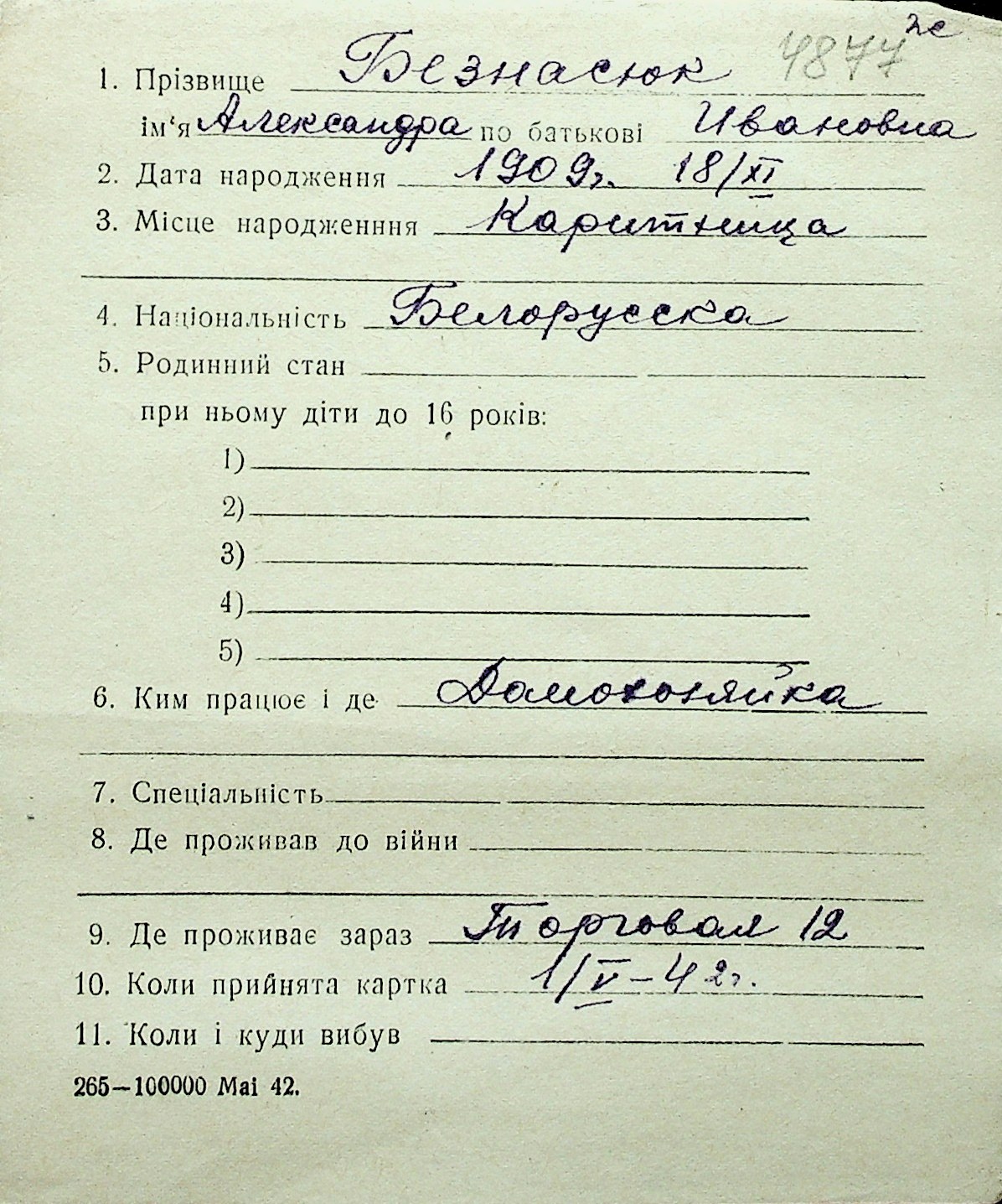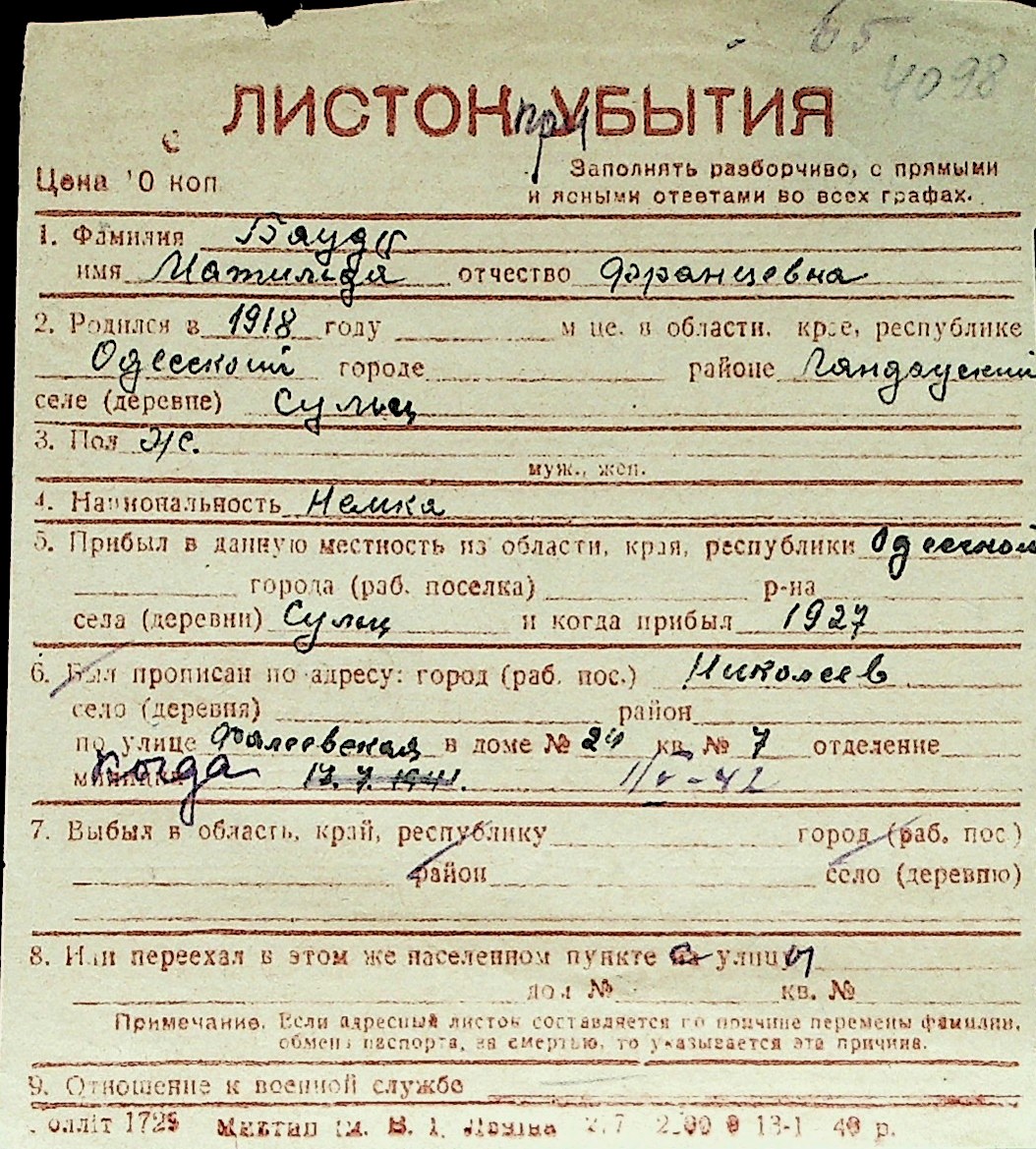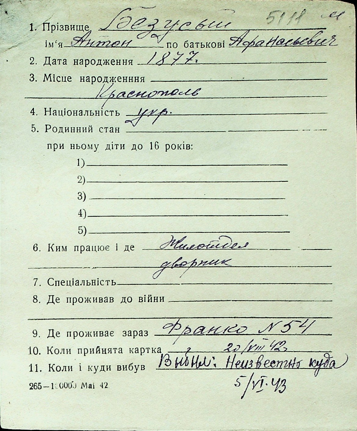 ◦ ◦ Перелік карток на осіб, які мешкали у м. Миколаїв у період окупації 1941–1944 років