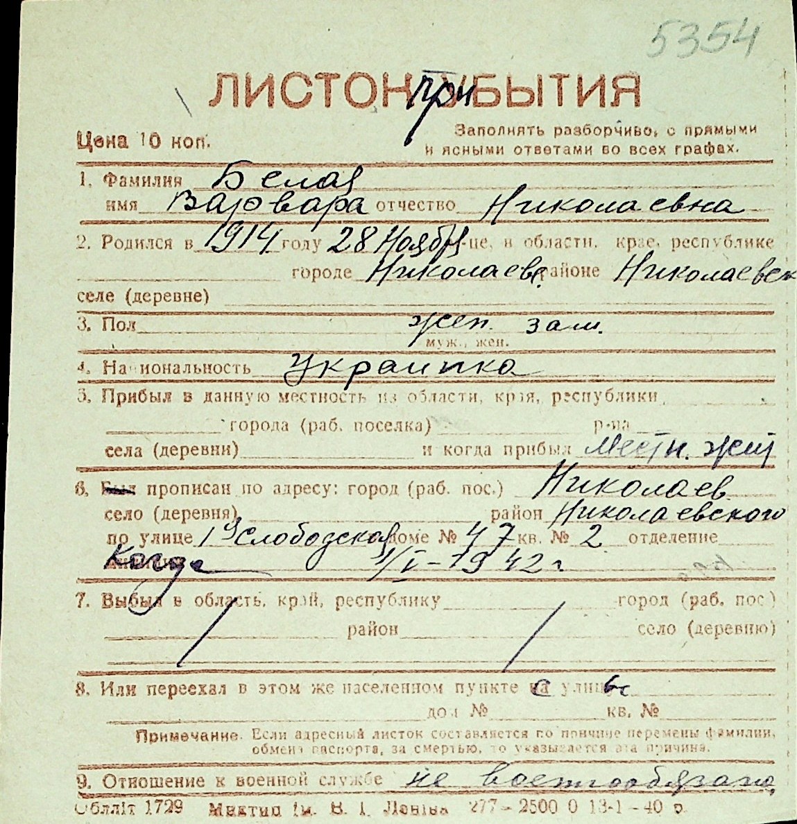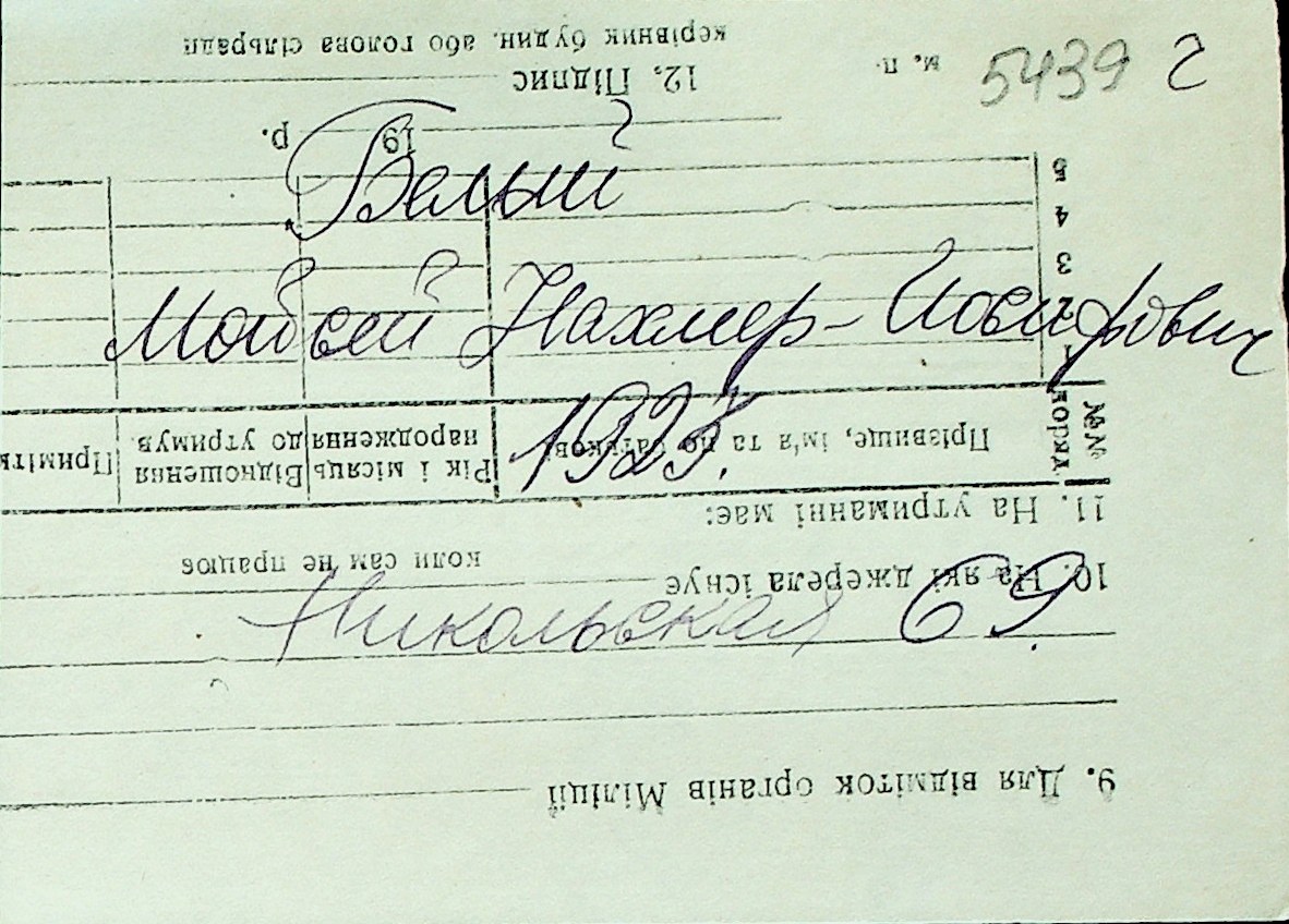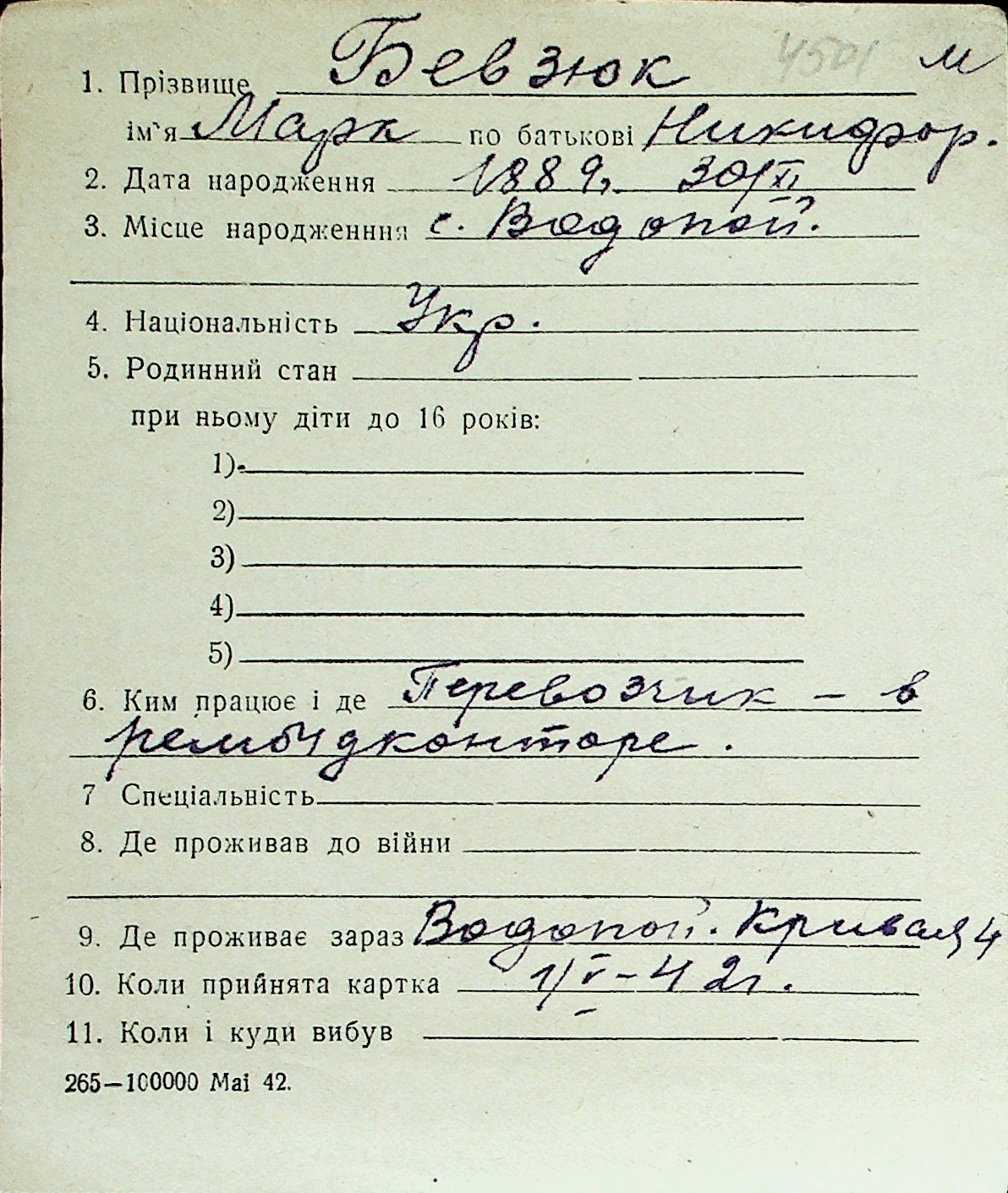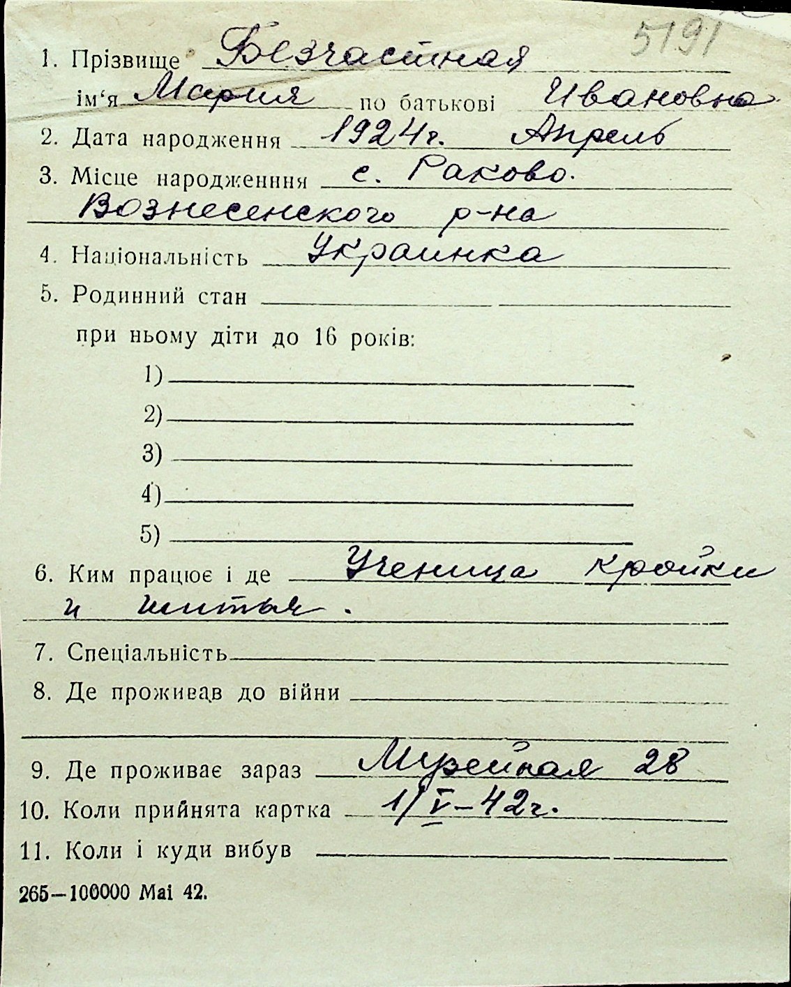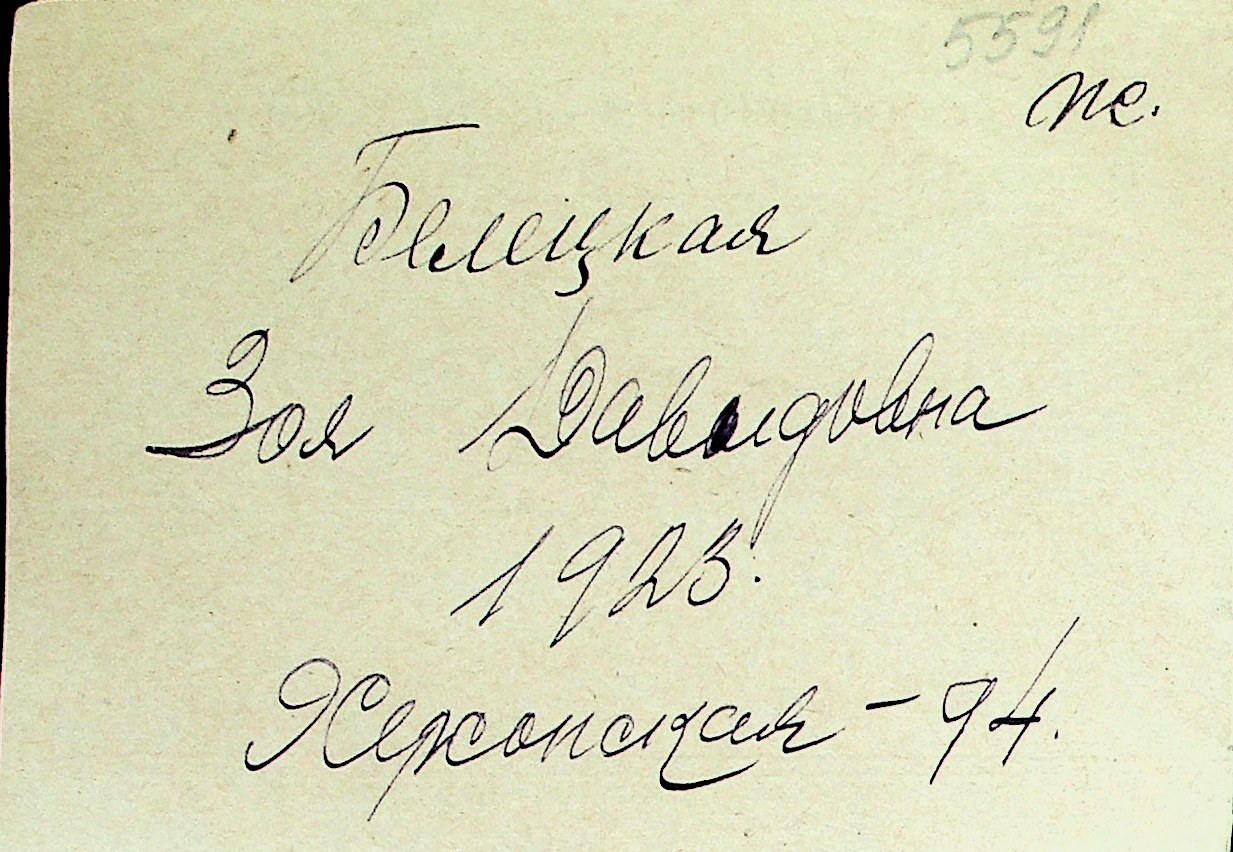 ◦ ◦ Перелік карток на осіб, які мешкали у м. Миколаїв у період окупації 1941–1944 років