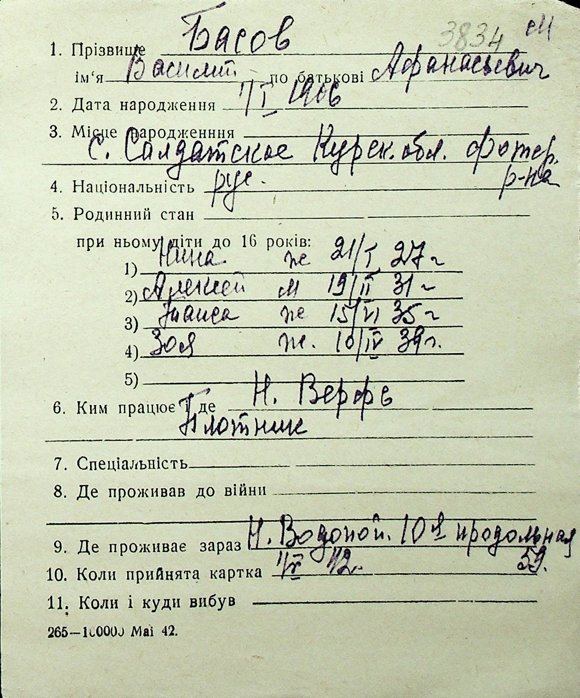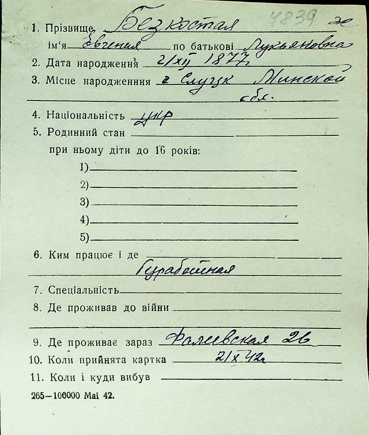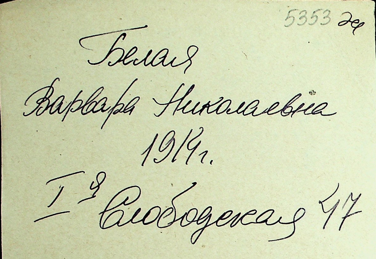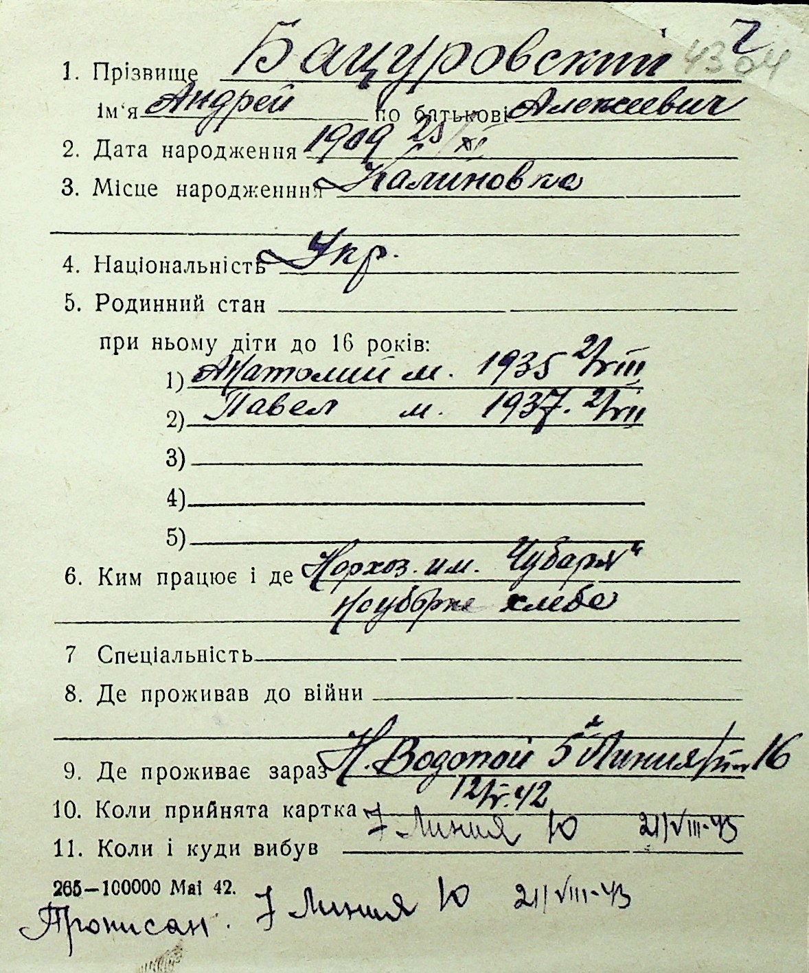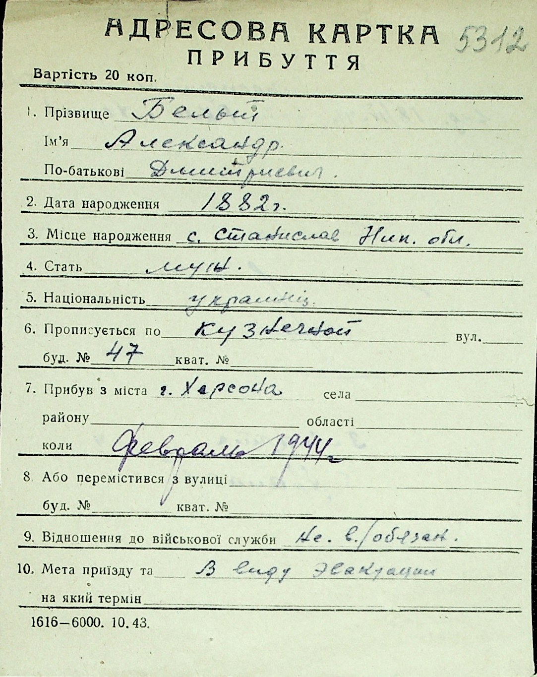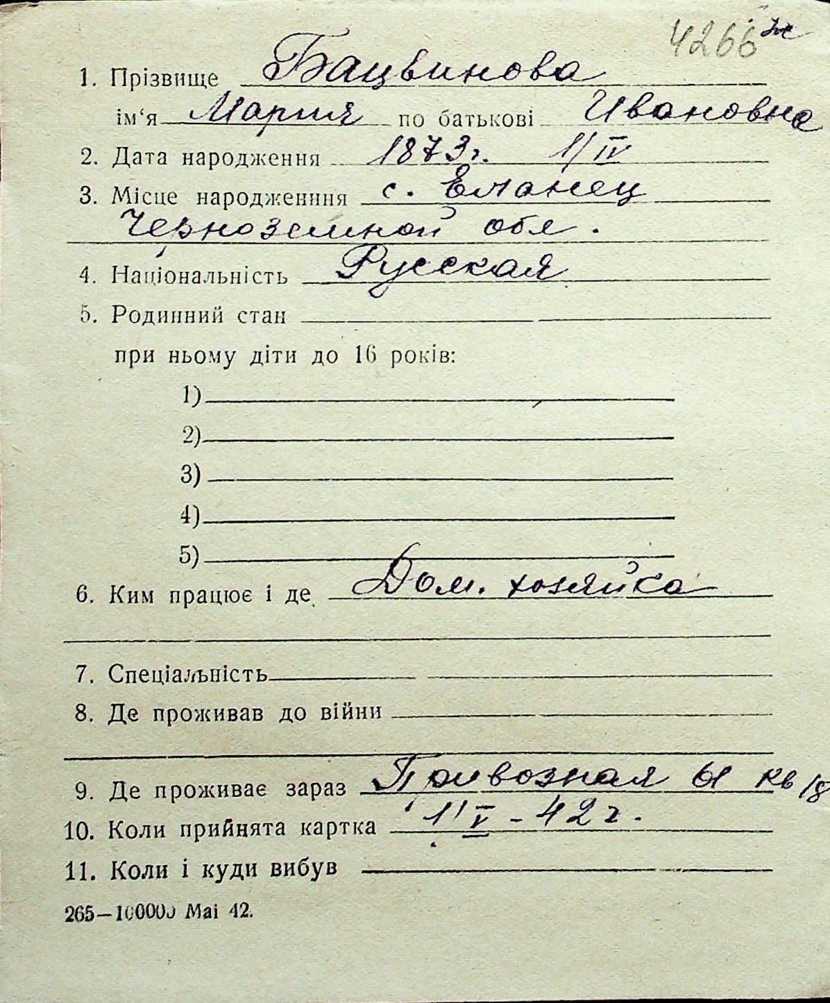 ◦ ◦ Перелік карток на осіб, які мешкали у м. Миколаїв у період окупації 1941–1944 років