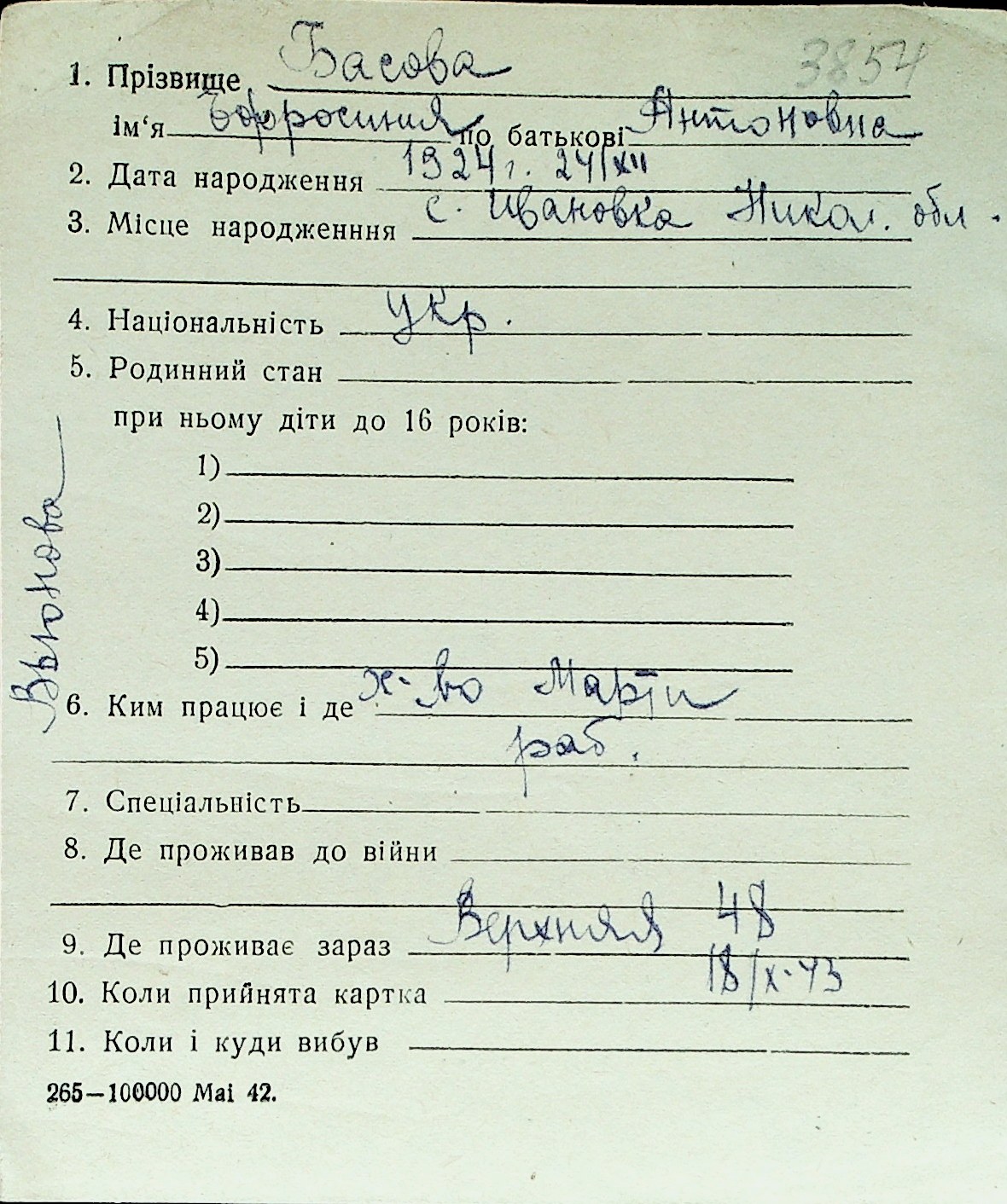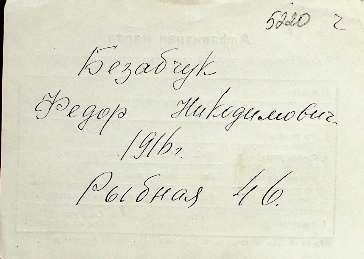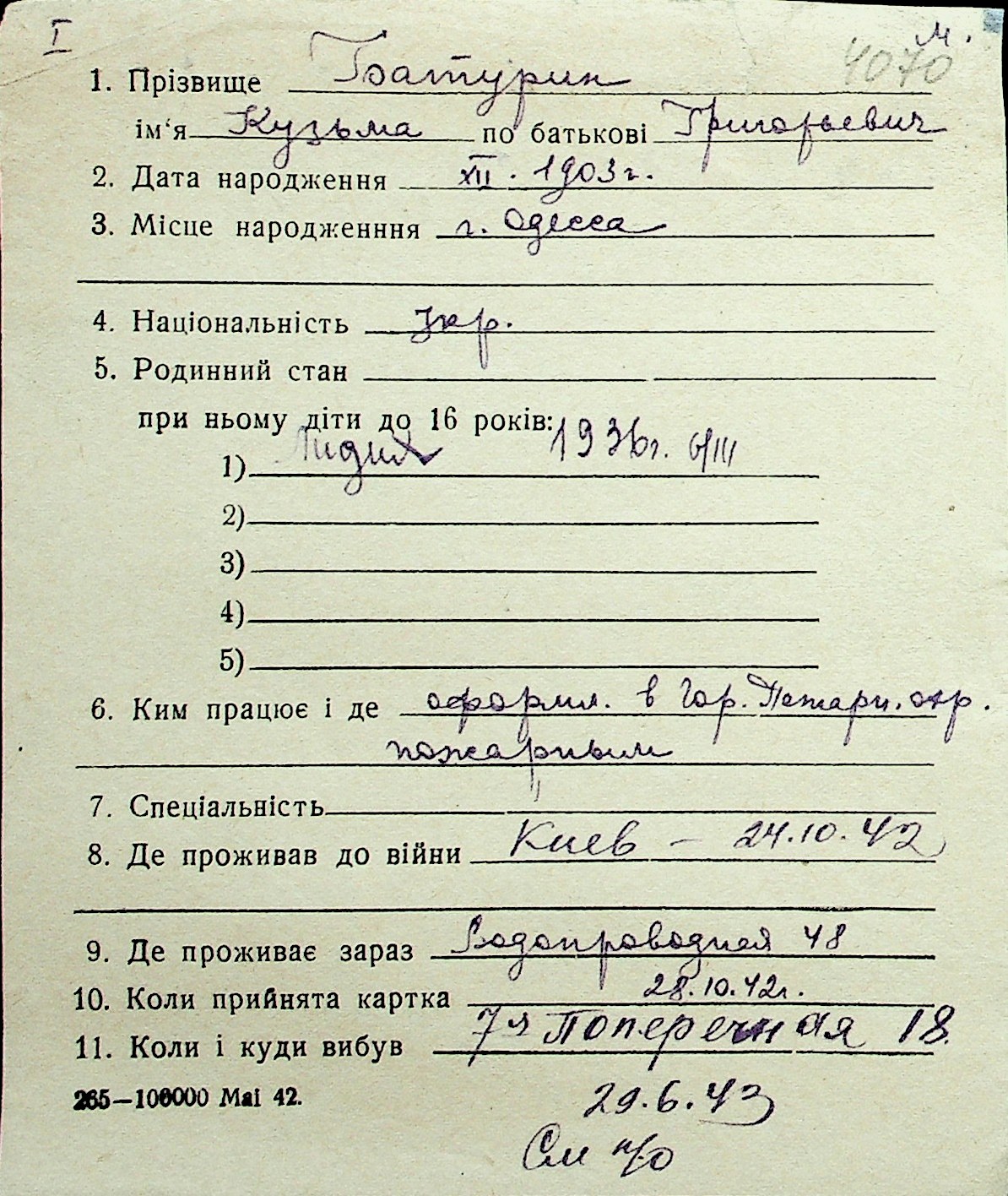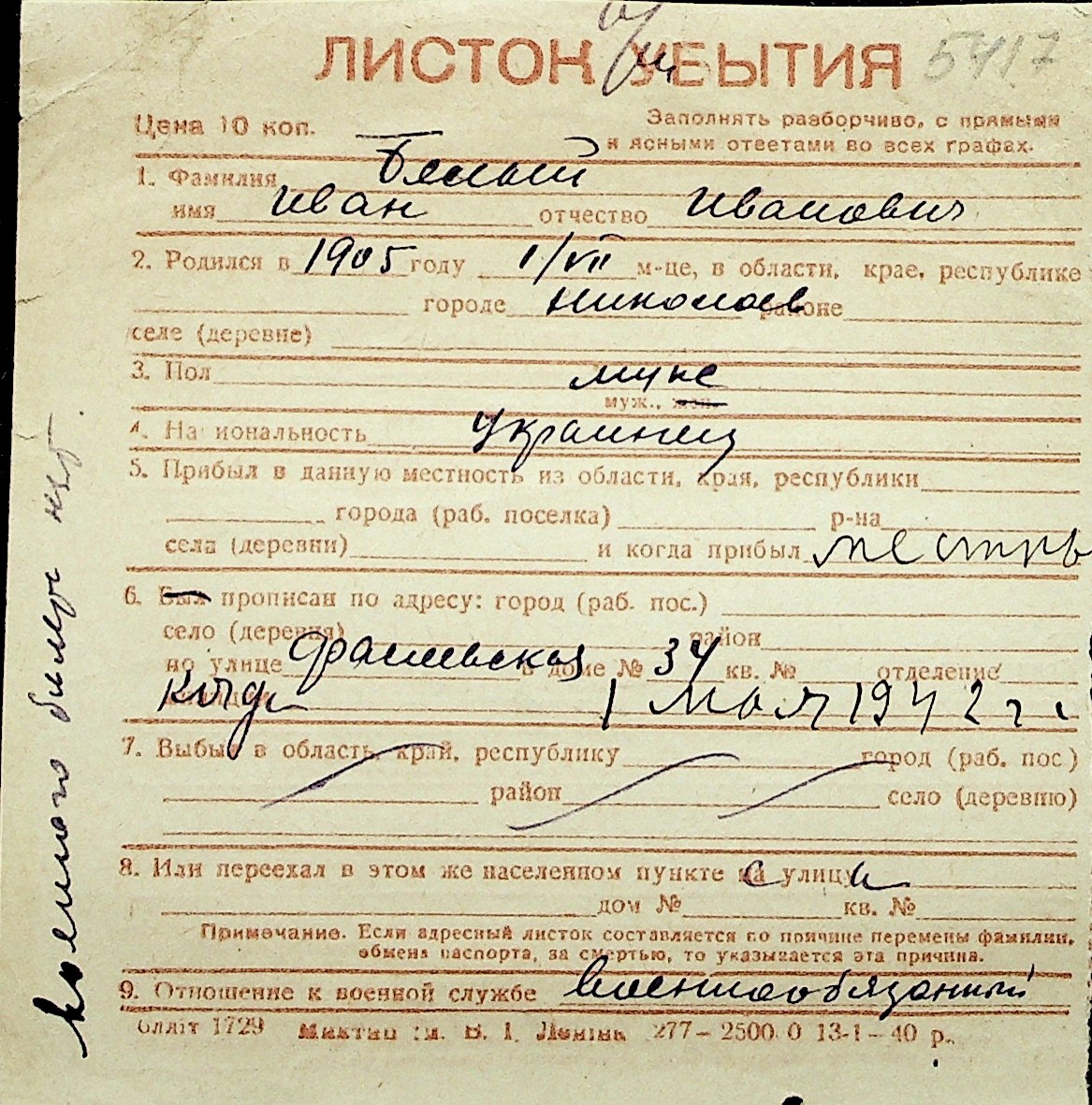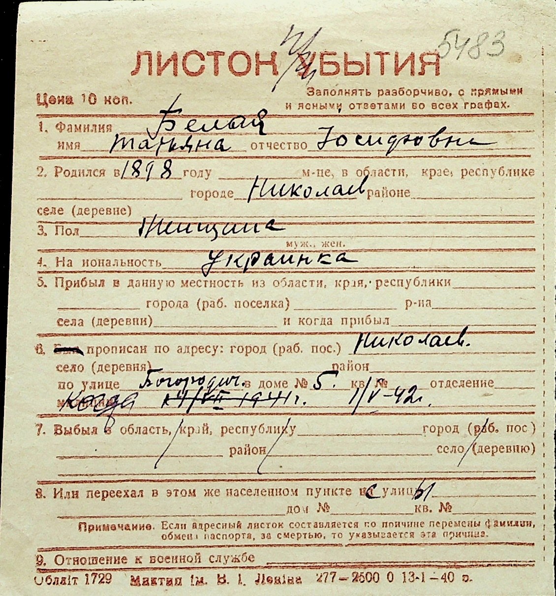 ◦ ◦ Перелік карток на осіб, які мешкали у м. Миколаїв у період окупації 1941–1944 років