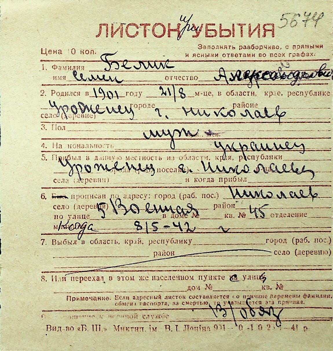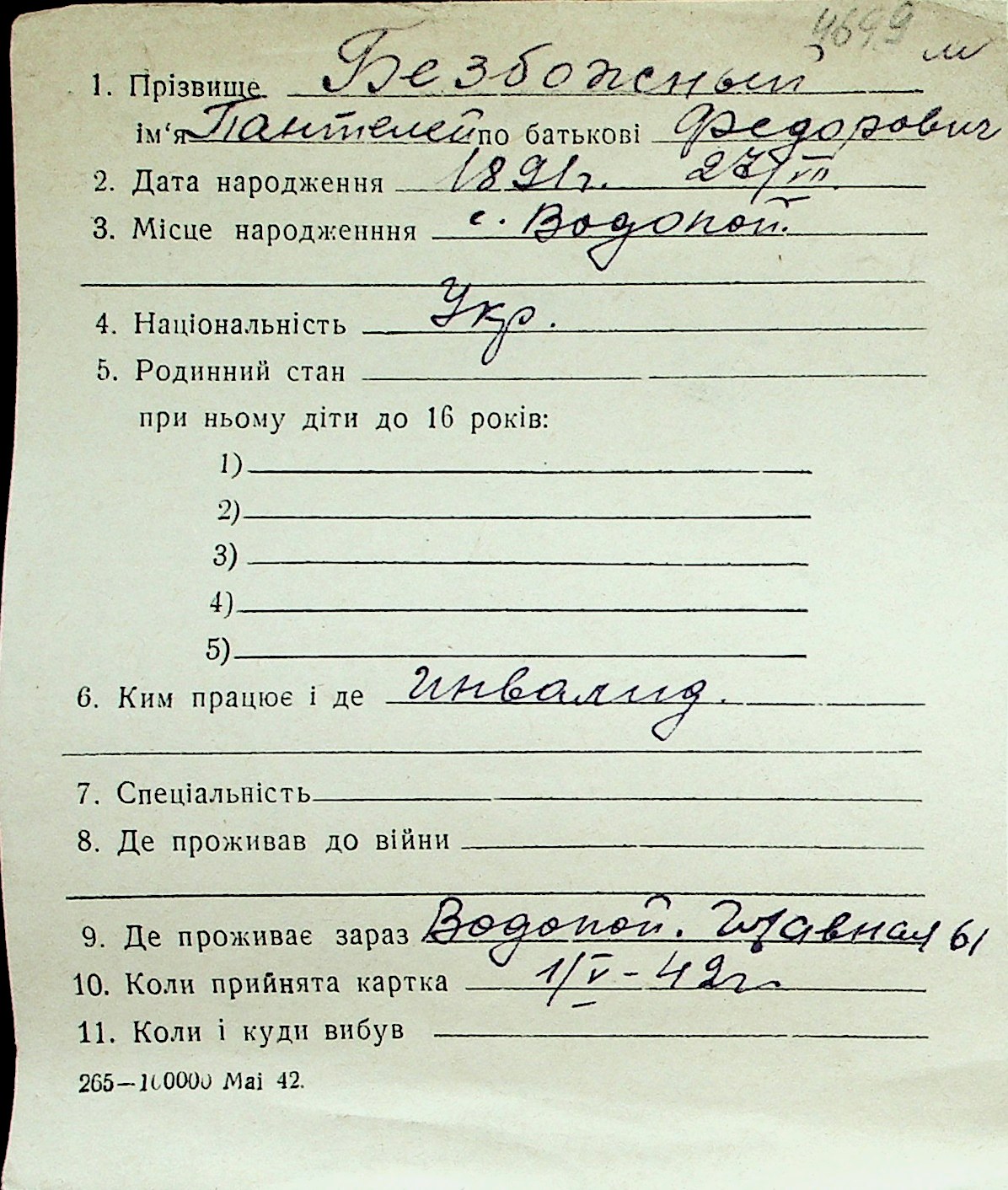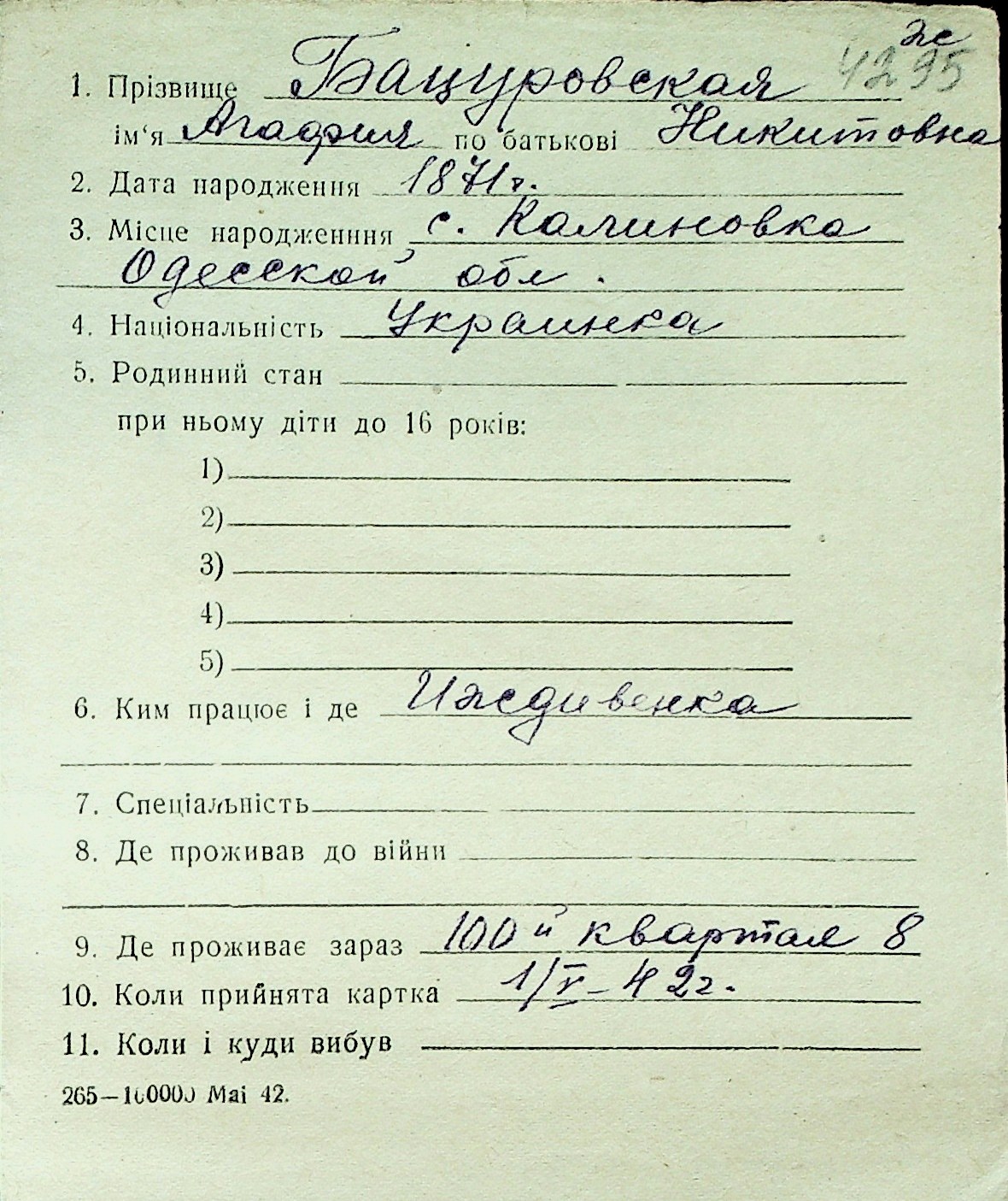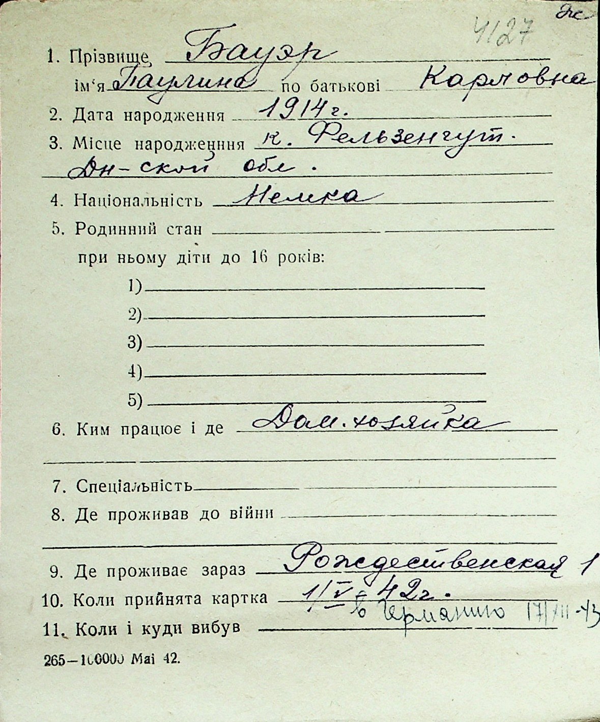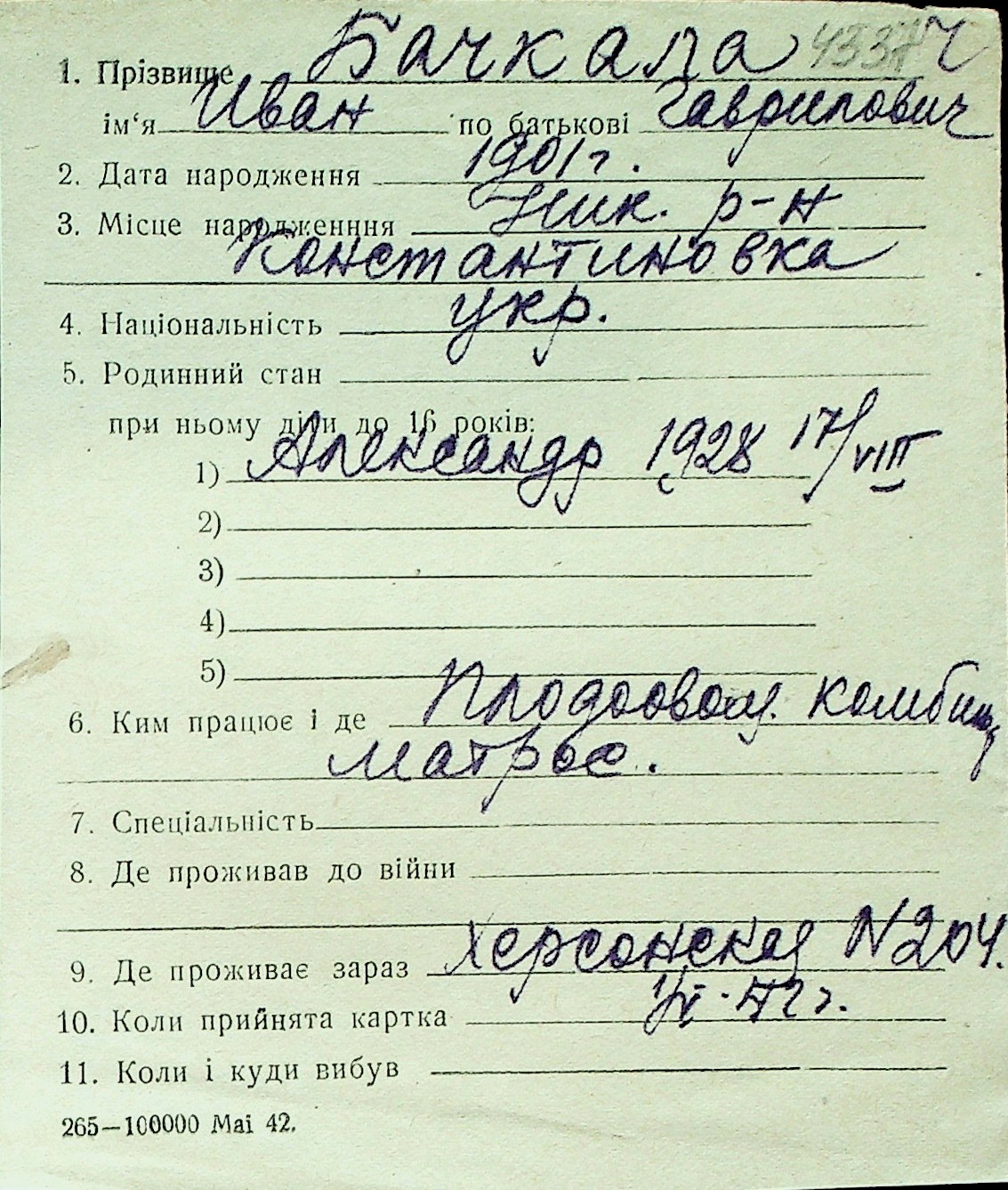 ◦ ◦ Перелік карток на осіб, які мешкали у м. Миколаїв у період окупації 1941–1944 років