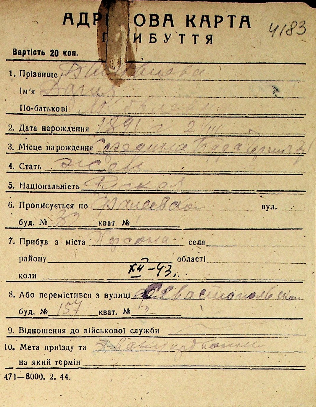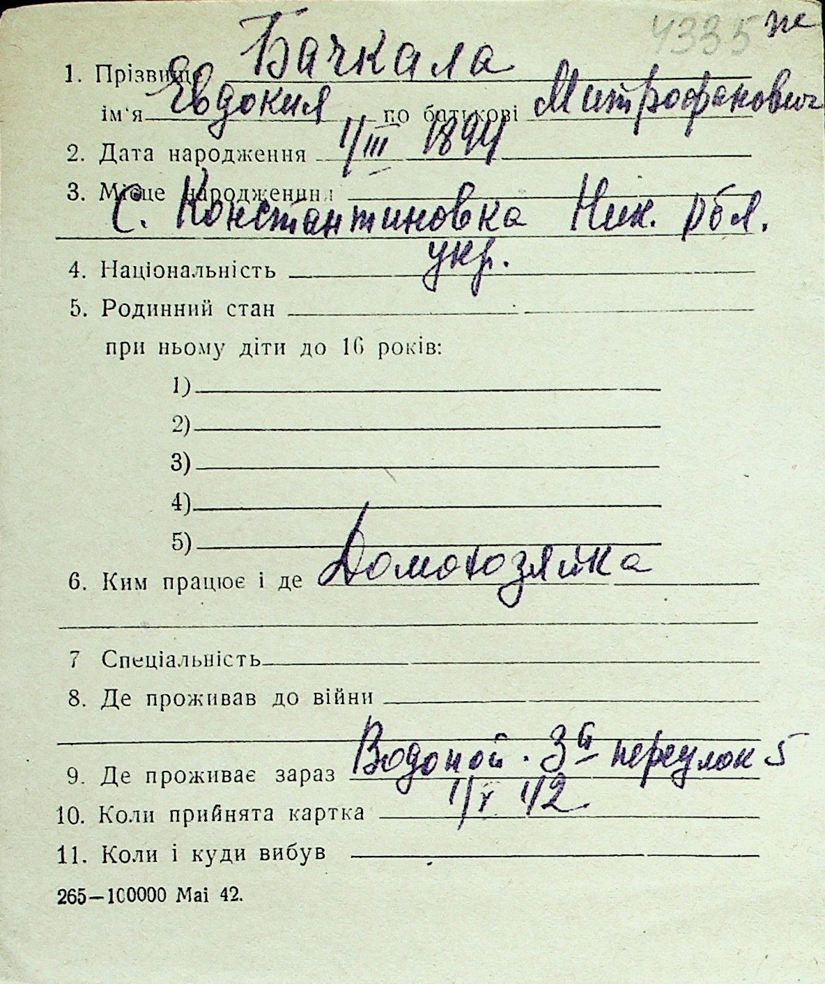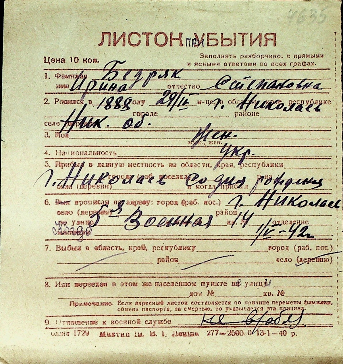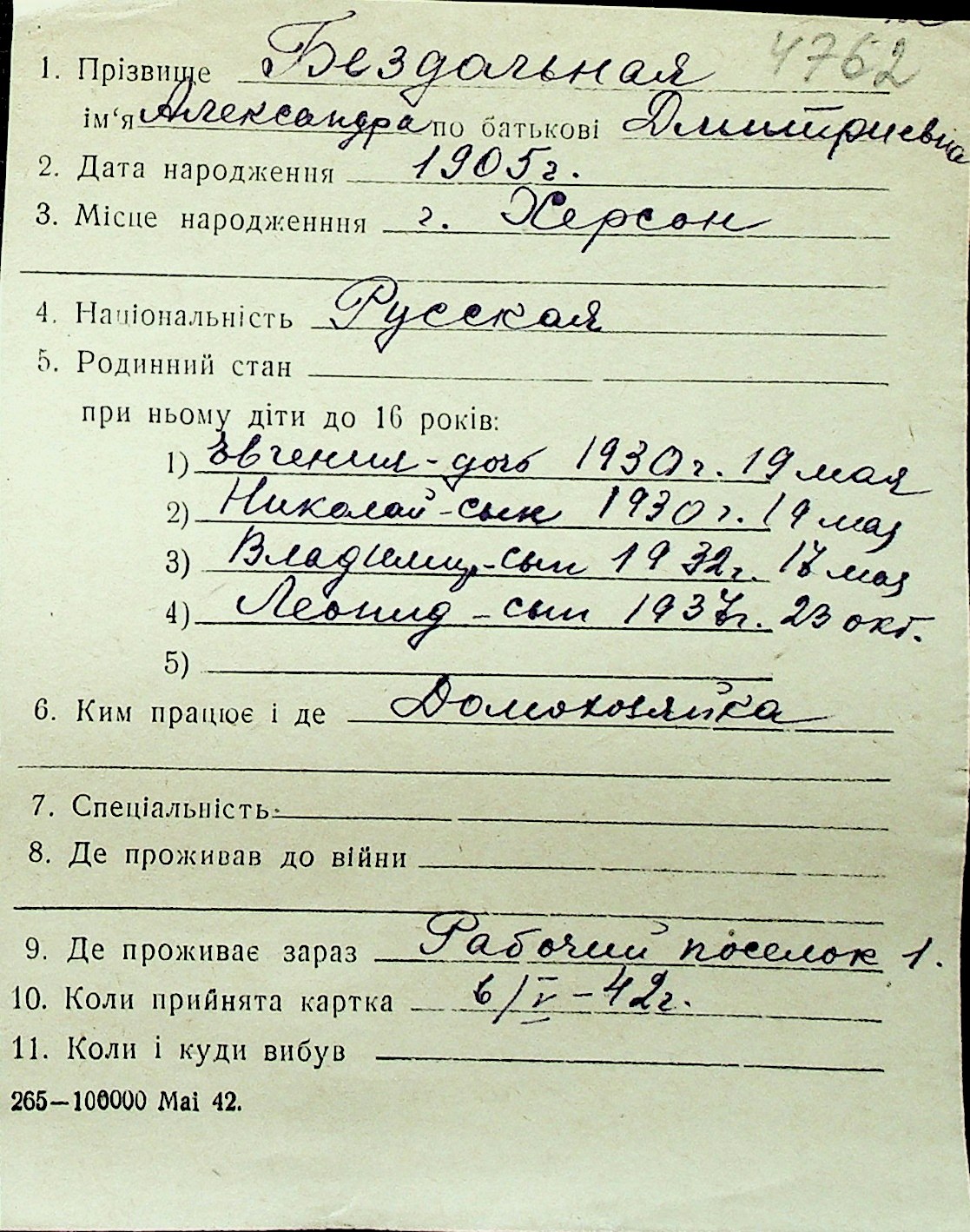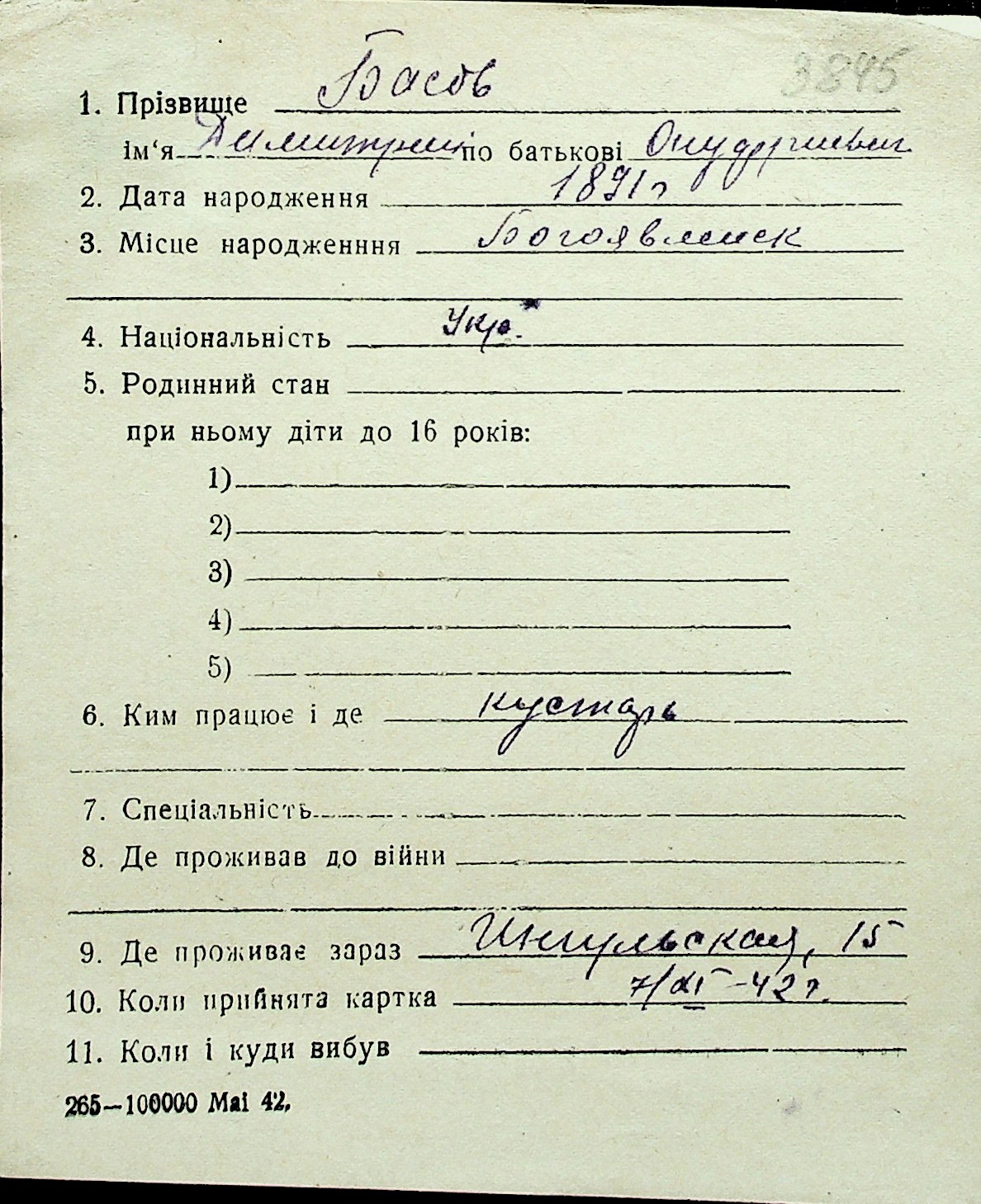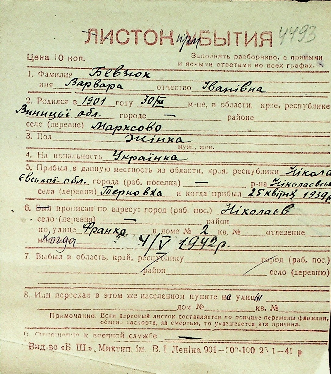 ◦ ◦ Перелік карток на осіб, які мешкали у м. Миколаїв у період окупації 1941–1944 років