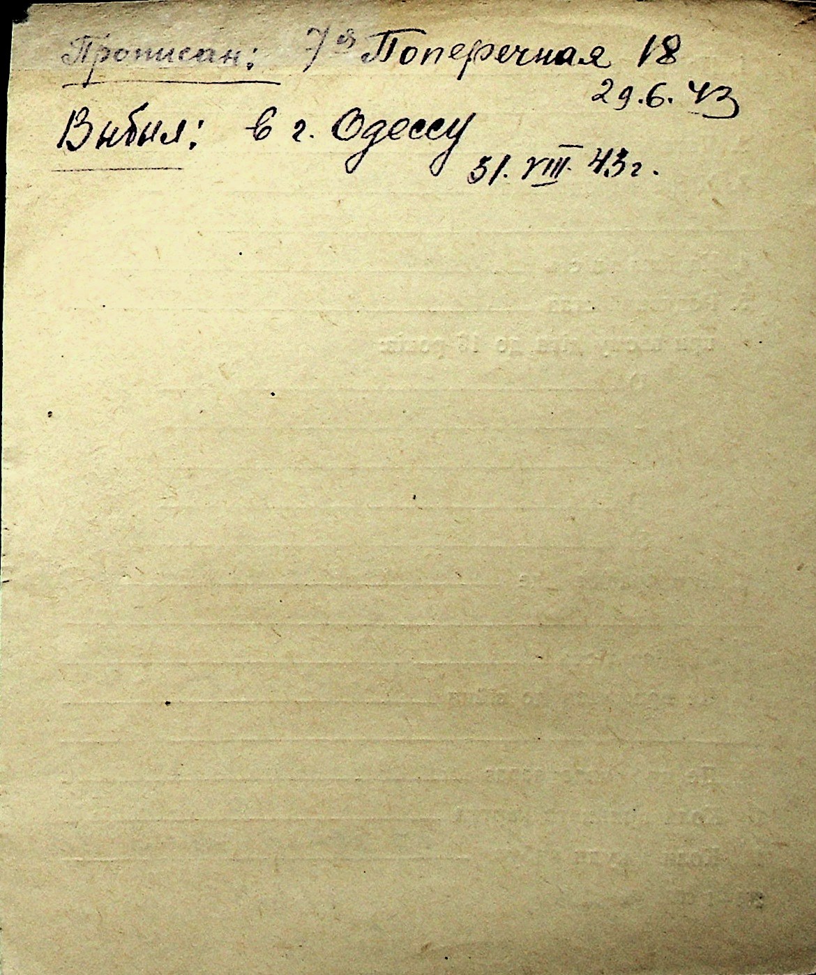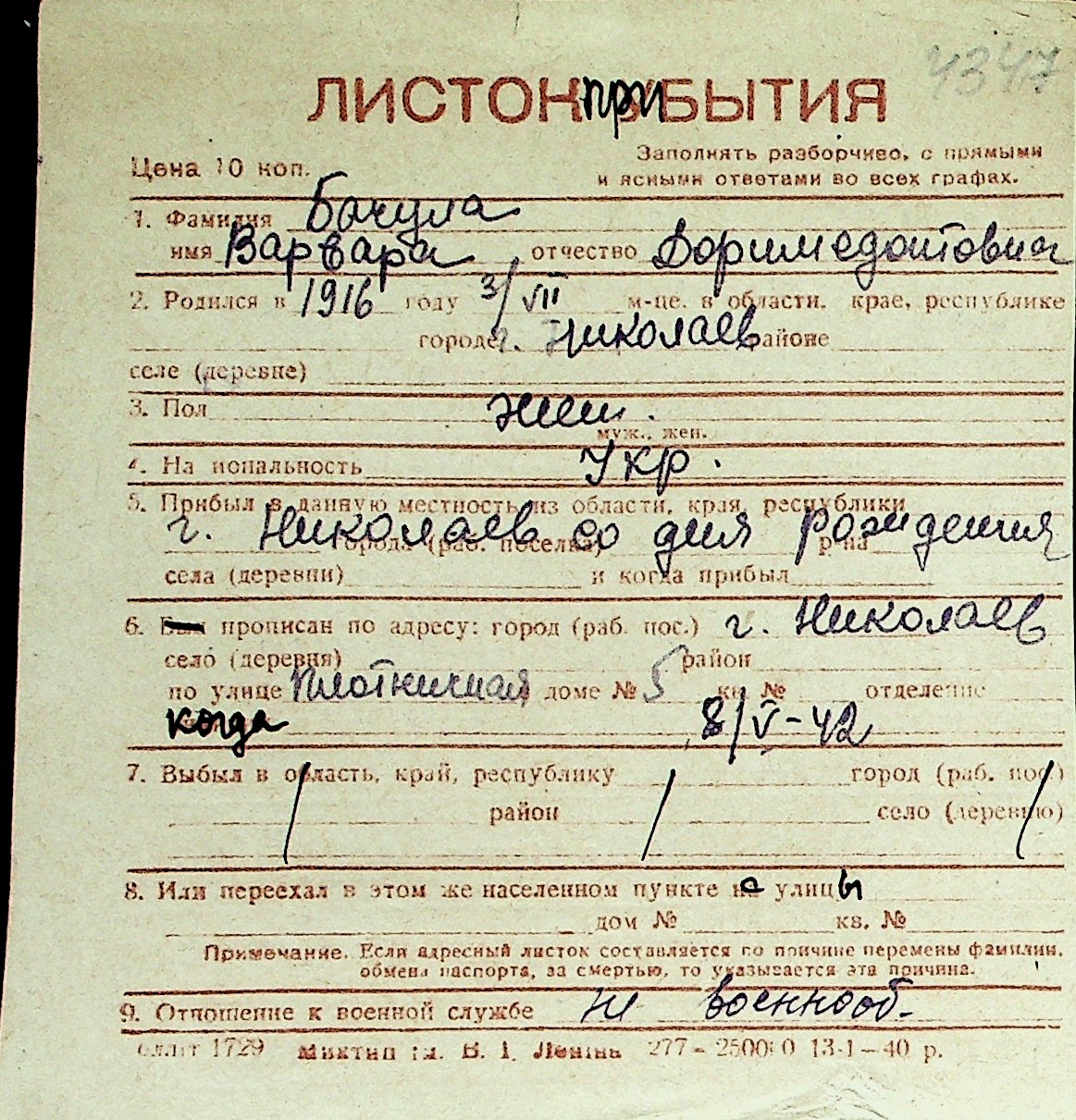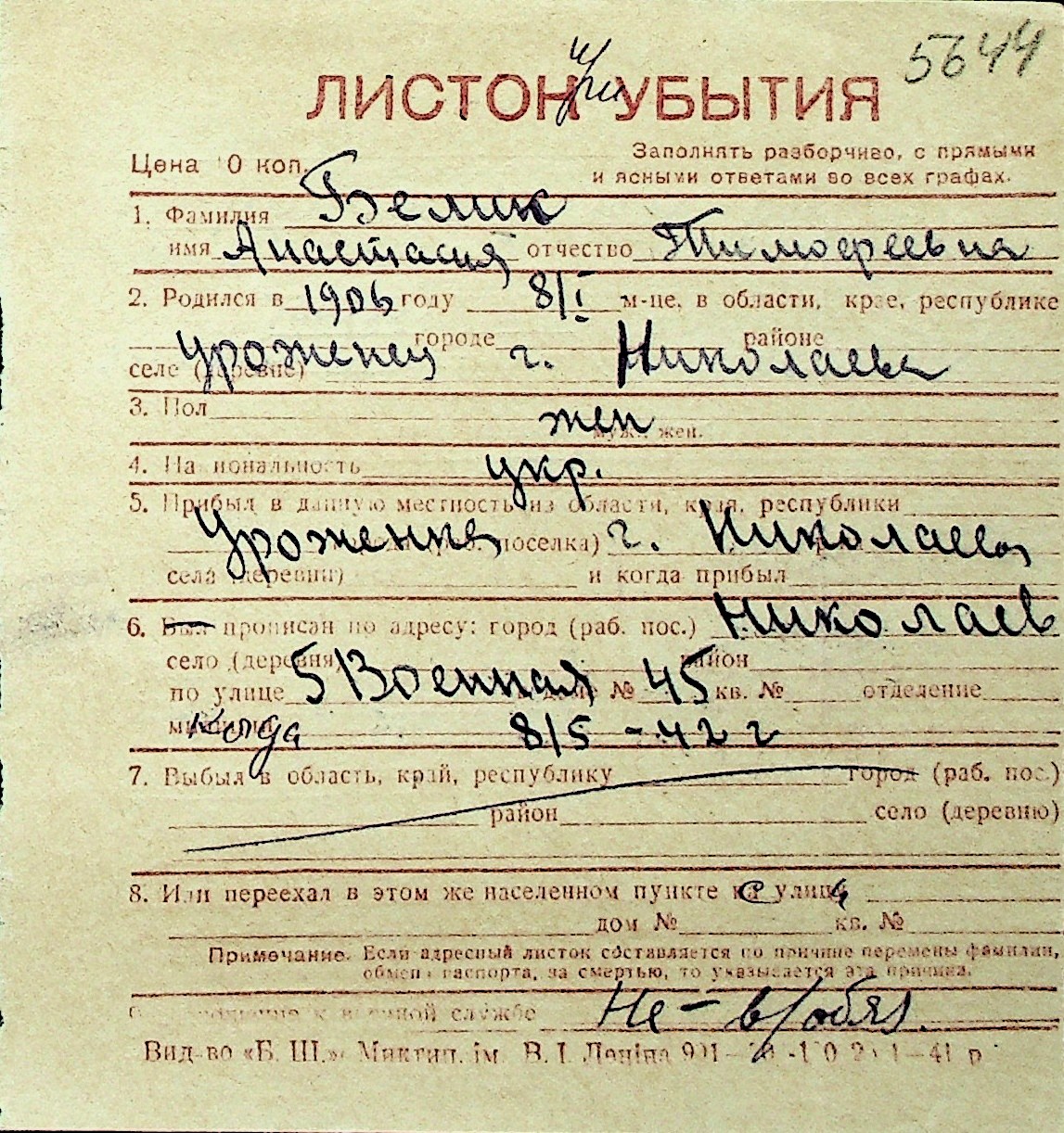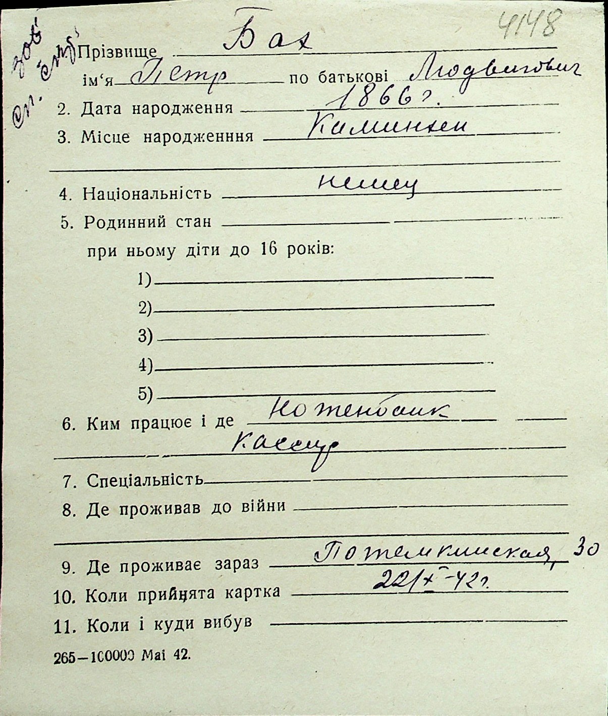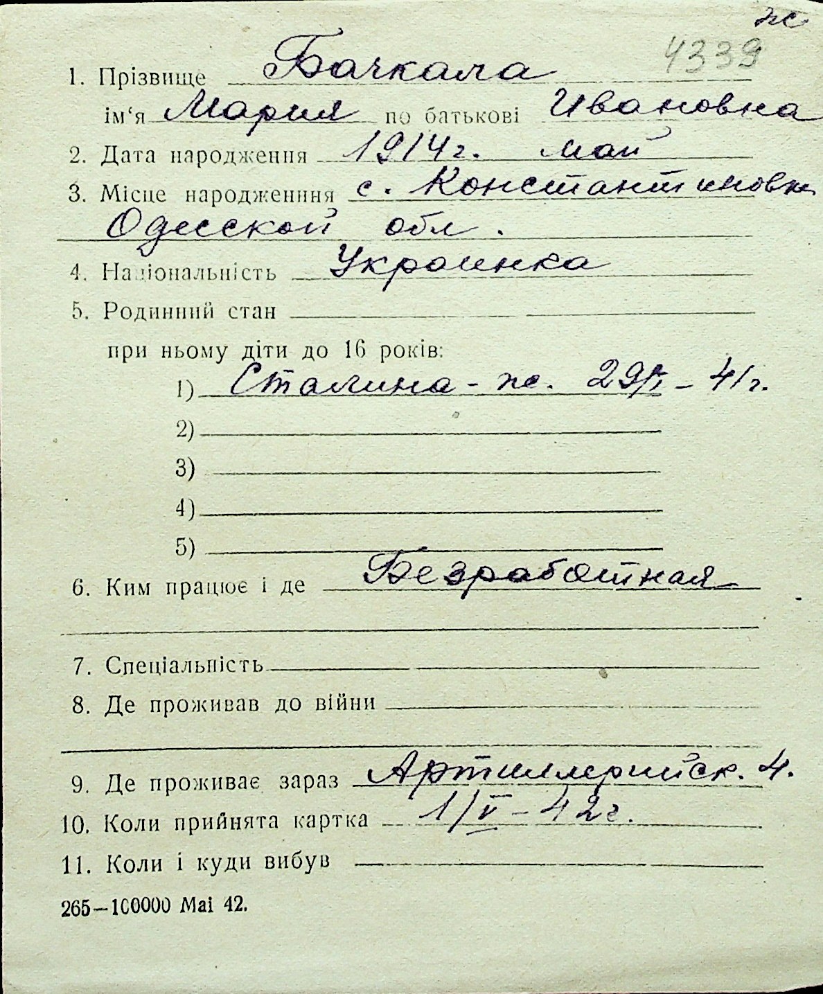◦ ◦ Перелік карток на осіб, які мешкали у м. Миколаїв у період окупації 1941–1944 років
