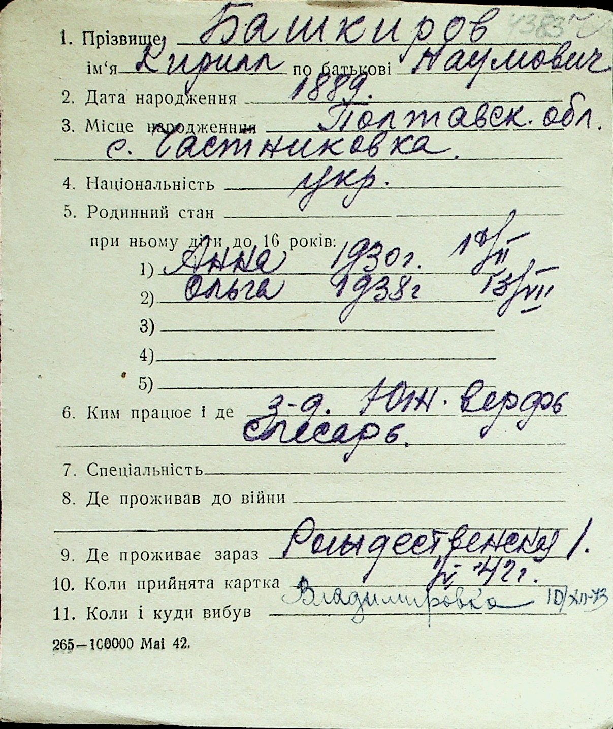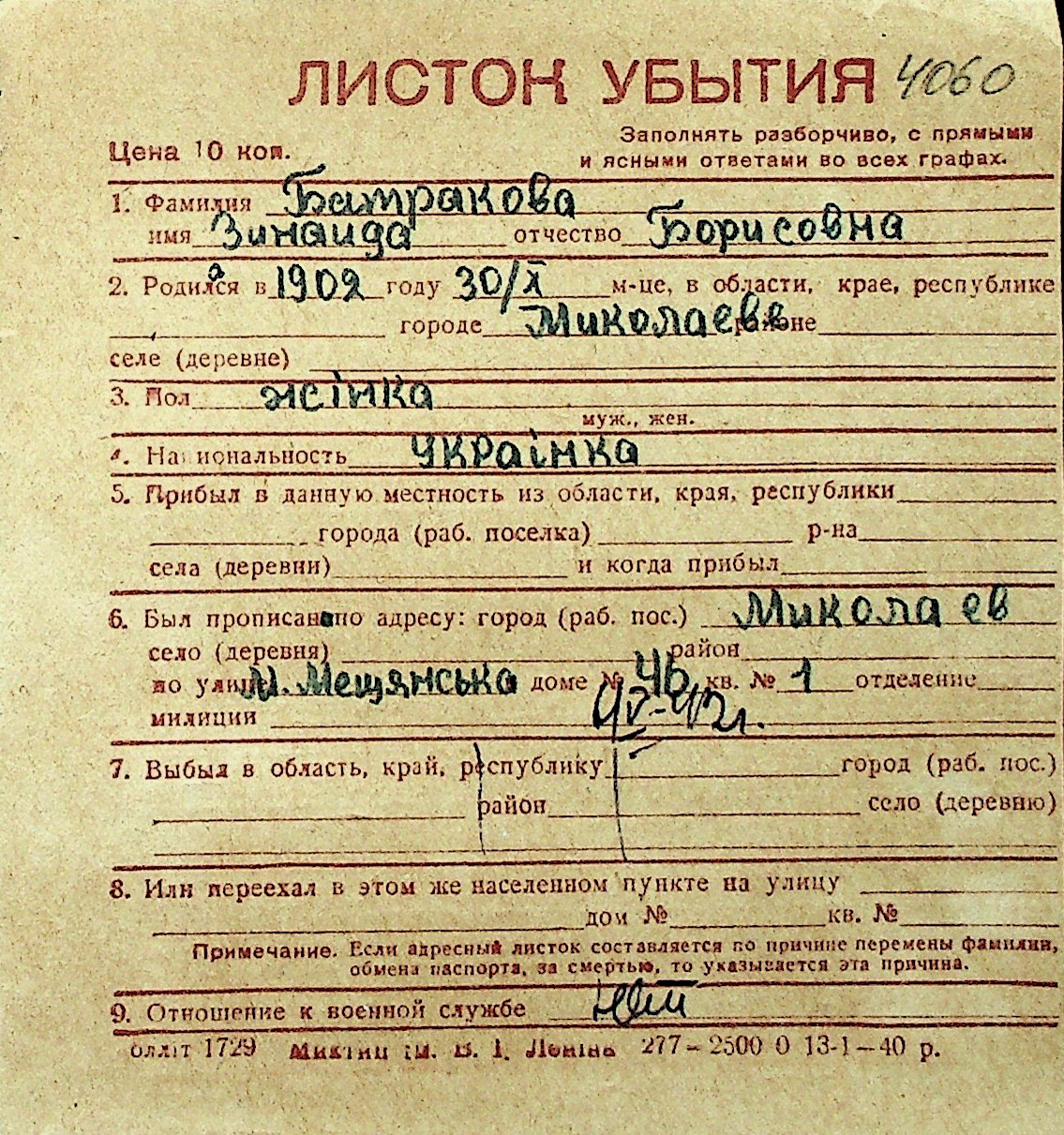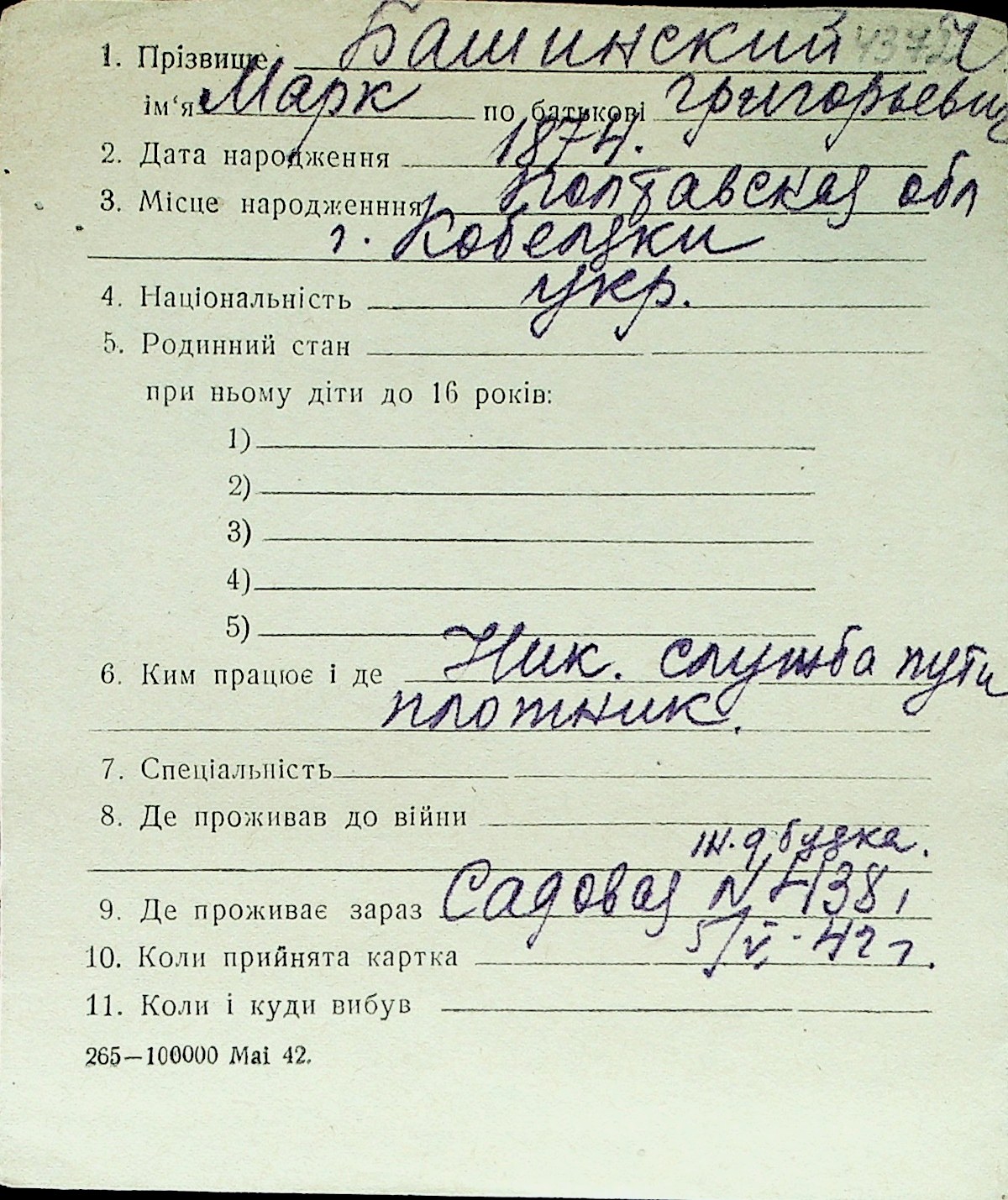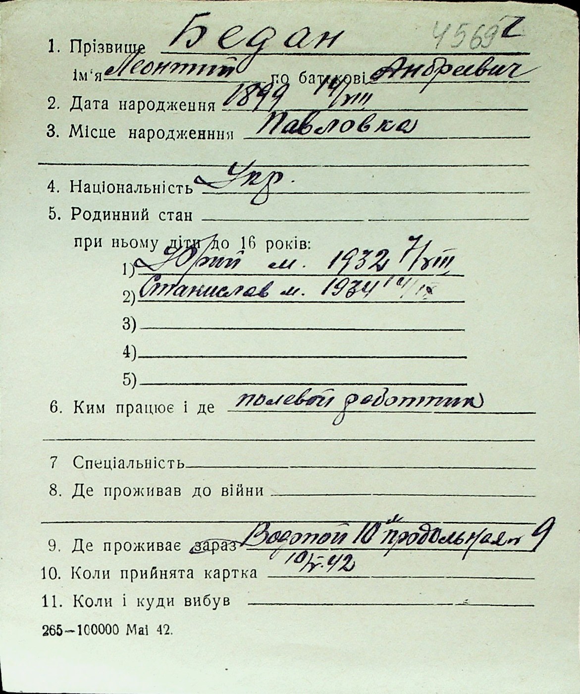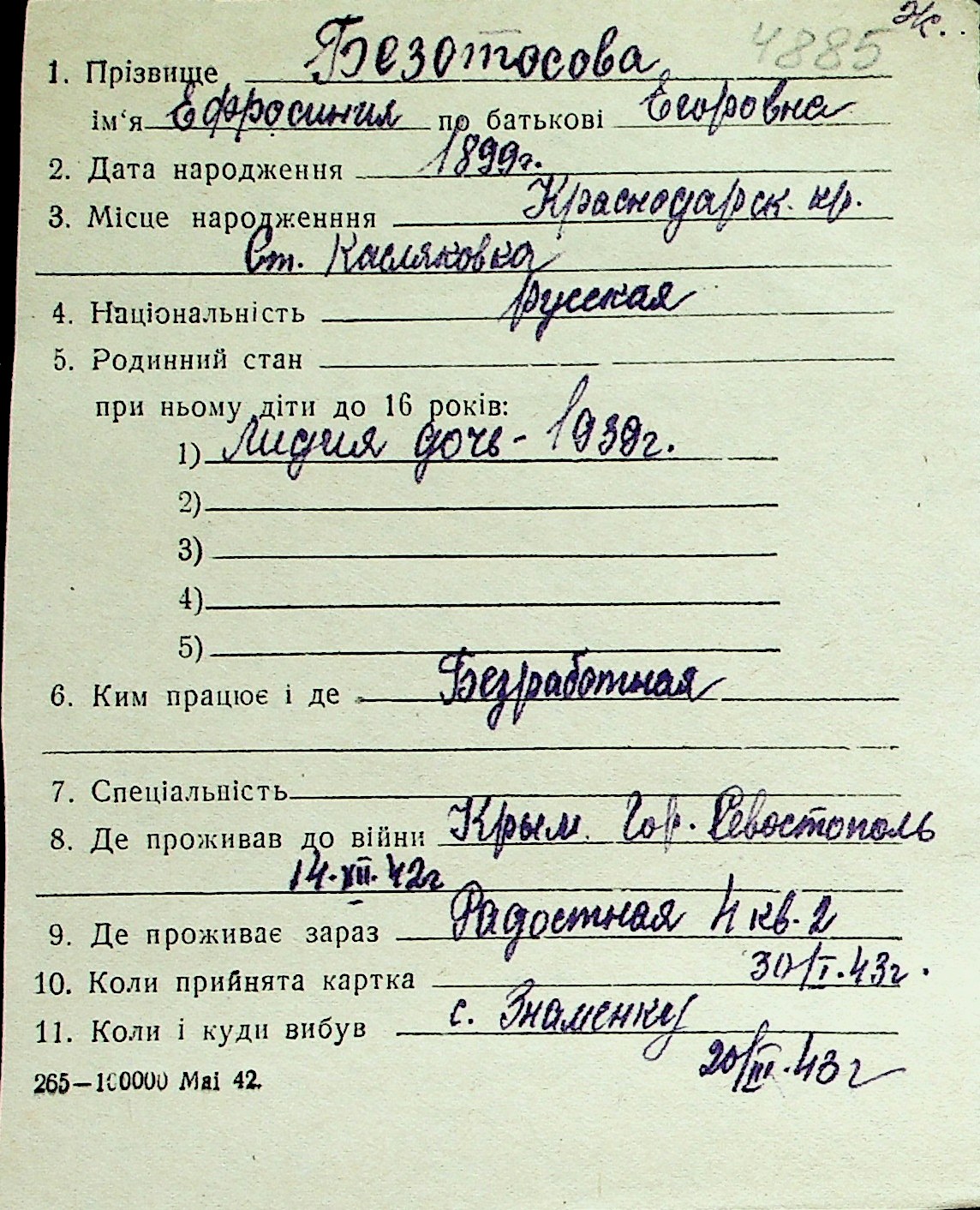 ◦ ◦ Перелік карток на осіб, які мешкали у м. Миколаїв у період окупації 1941–1944 років