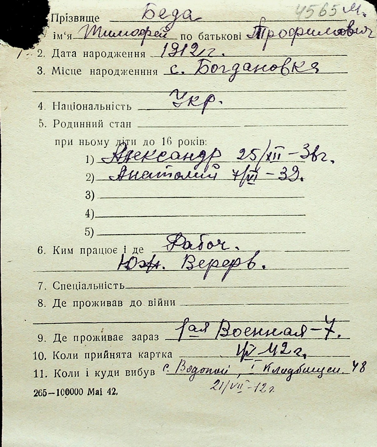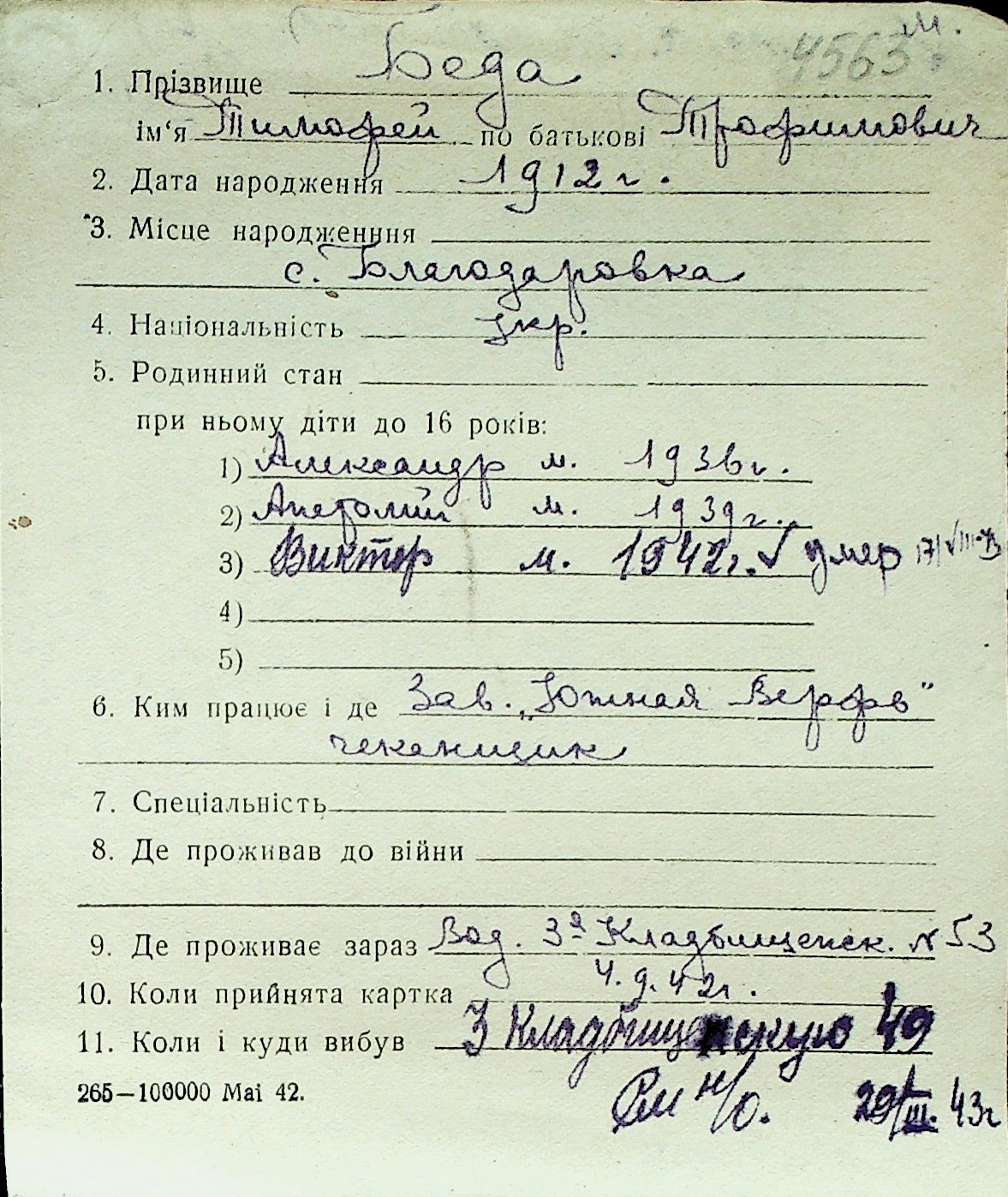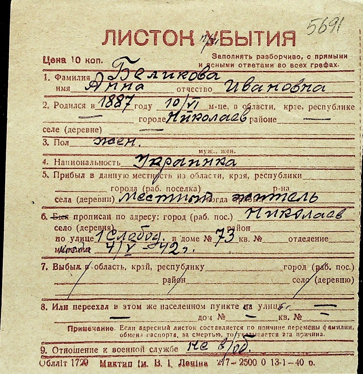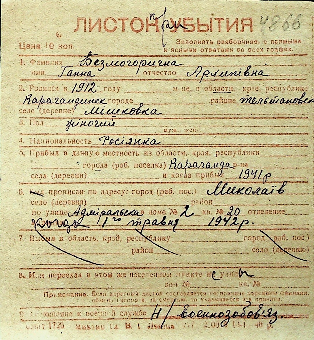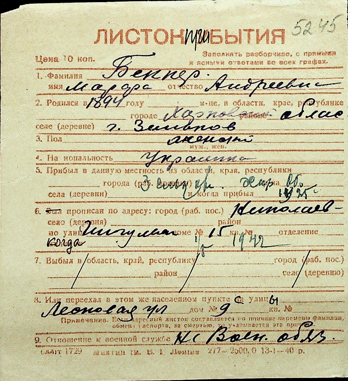 ◦ ◦ Перелік карток на осіб, які мешкали у м. Миколаїв у період окупації 1941–1944 років