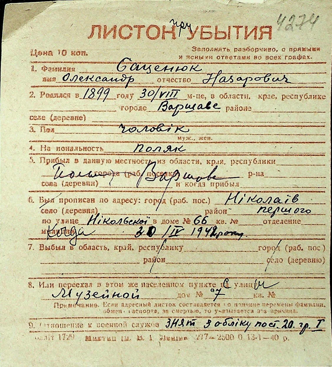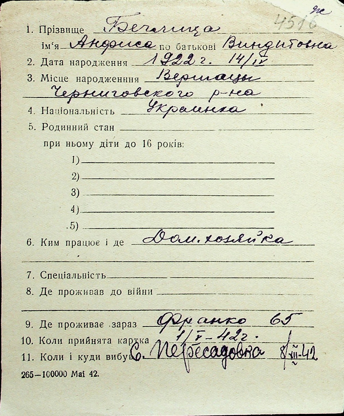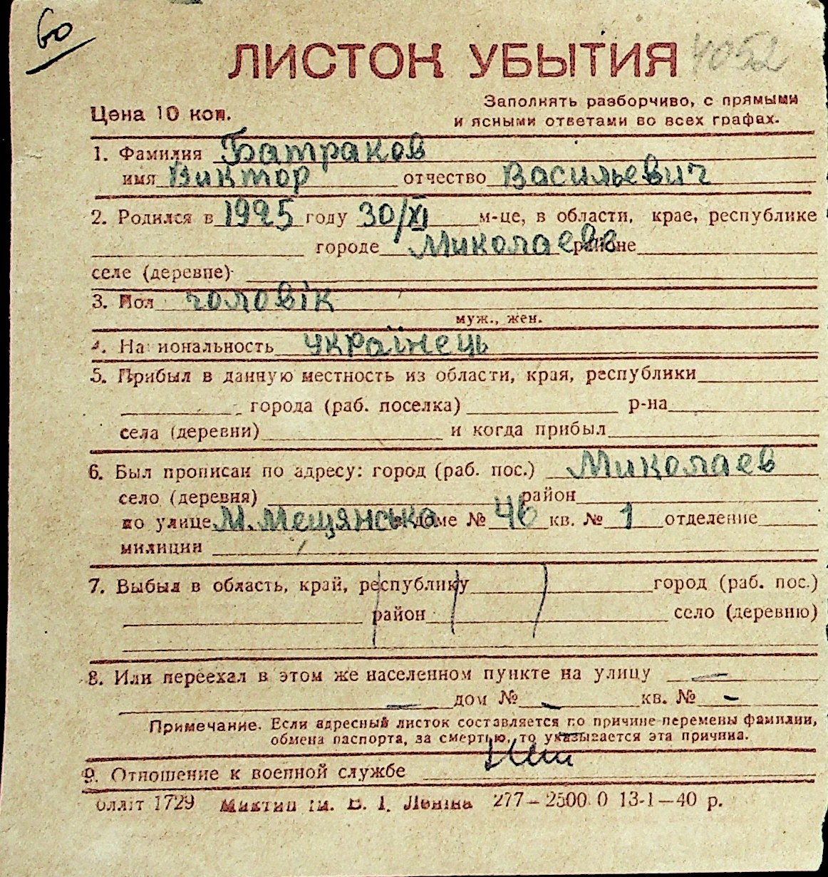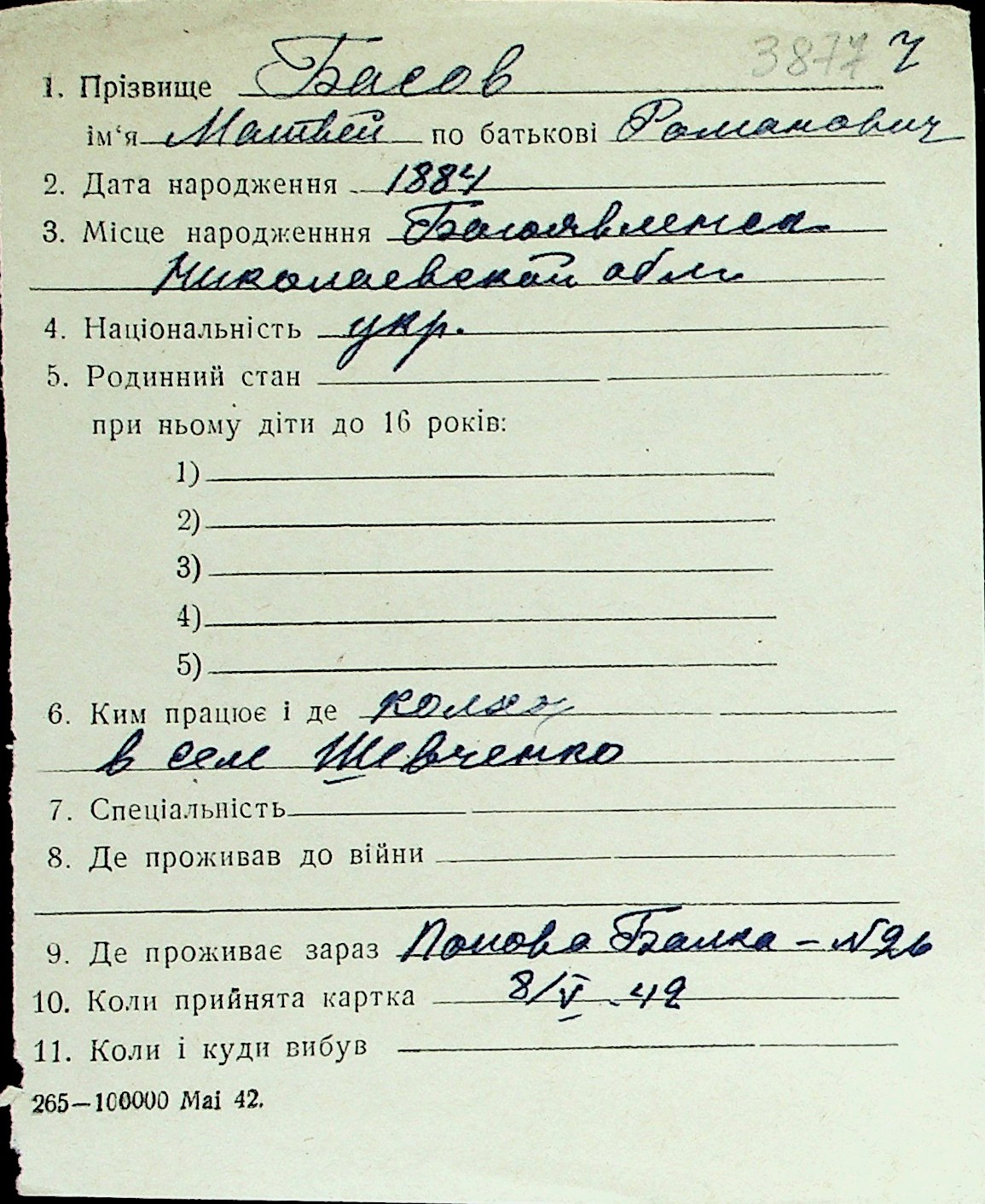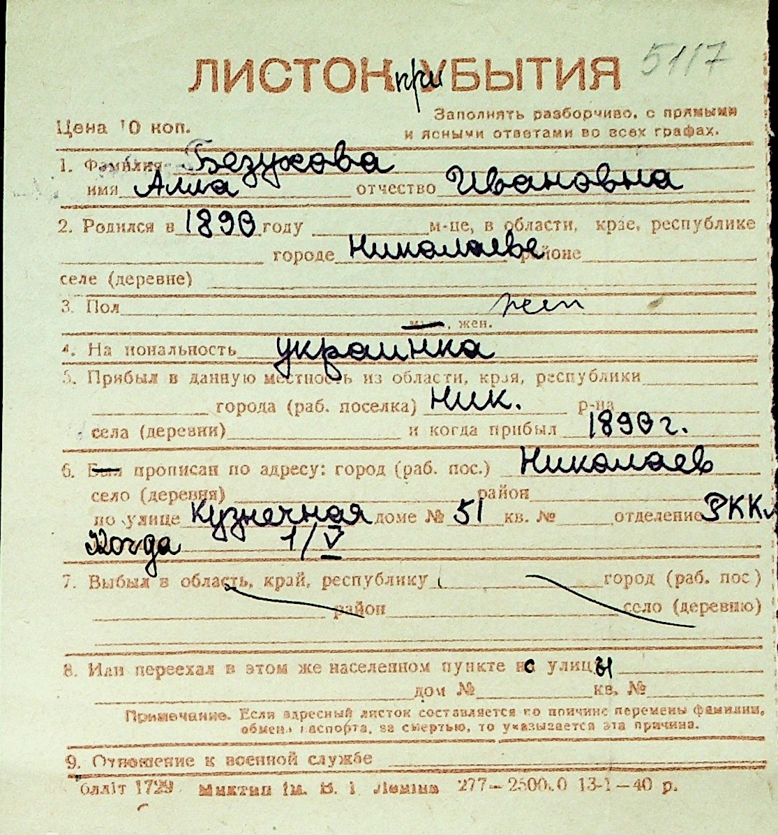 ◦ ◦ Перелік карток на осіб, які мешкали у м. Миколаїв у період окупації 1941–1944 років