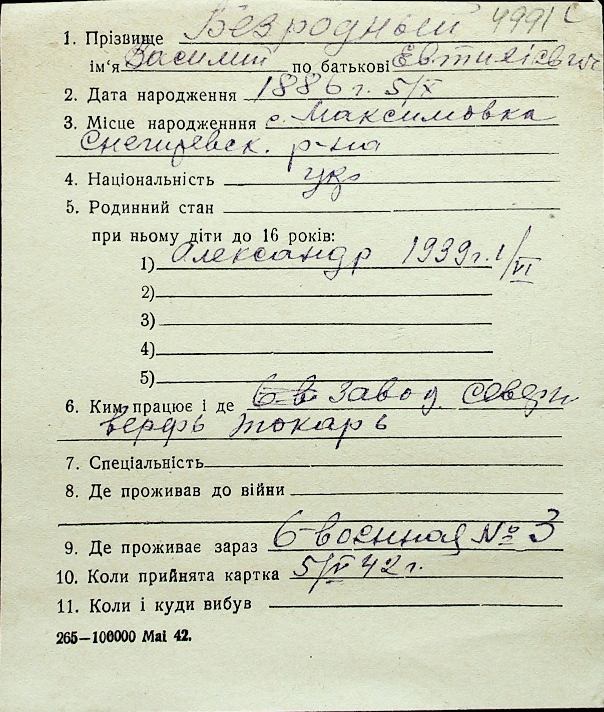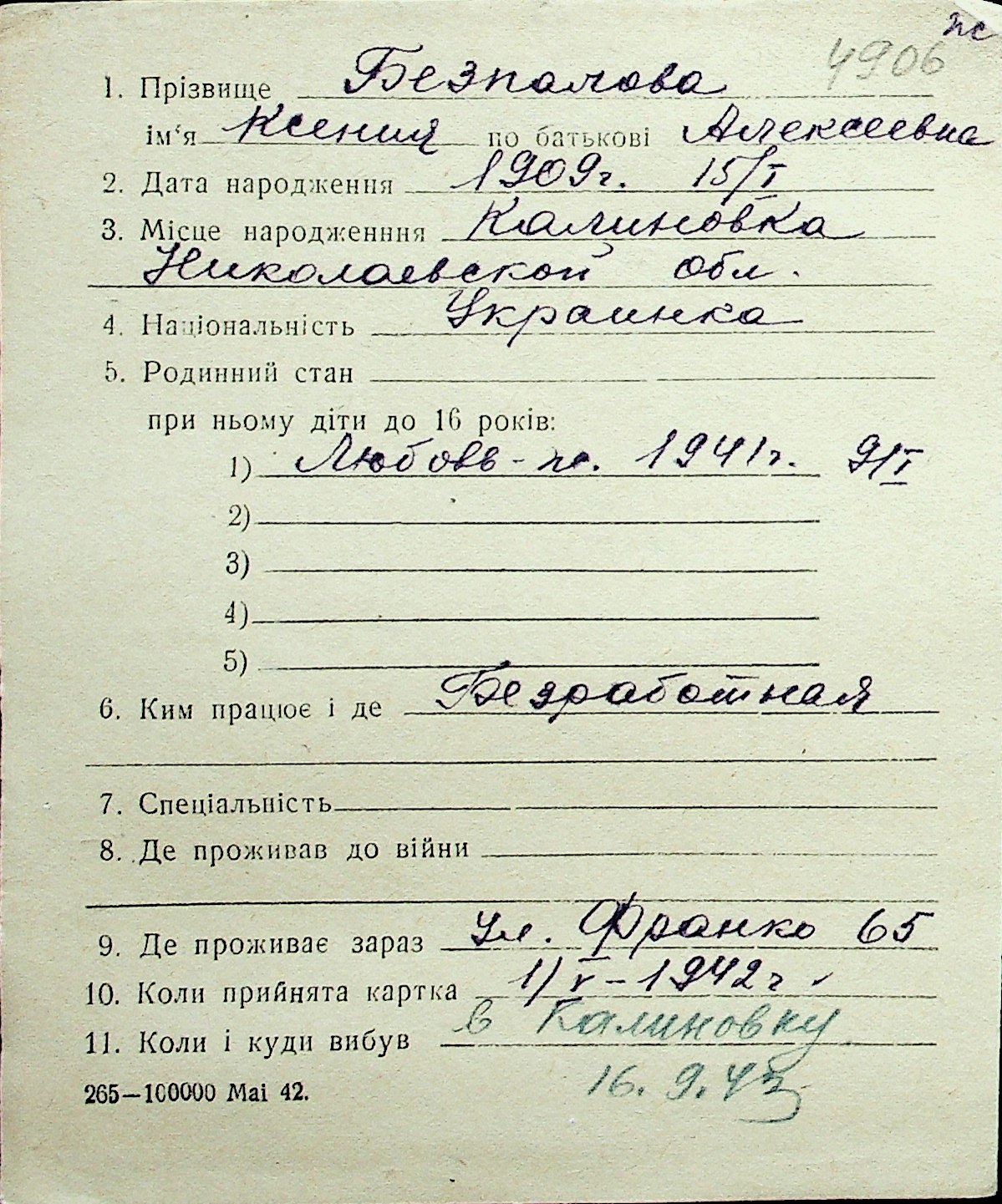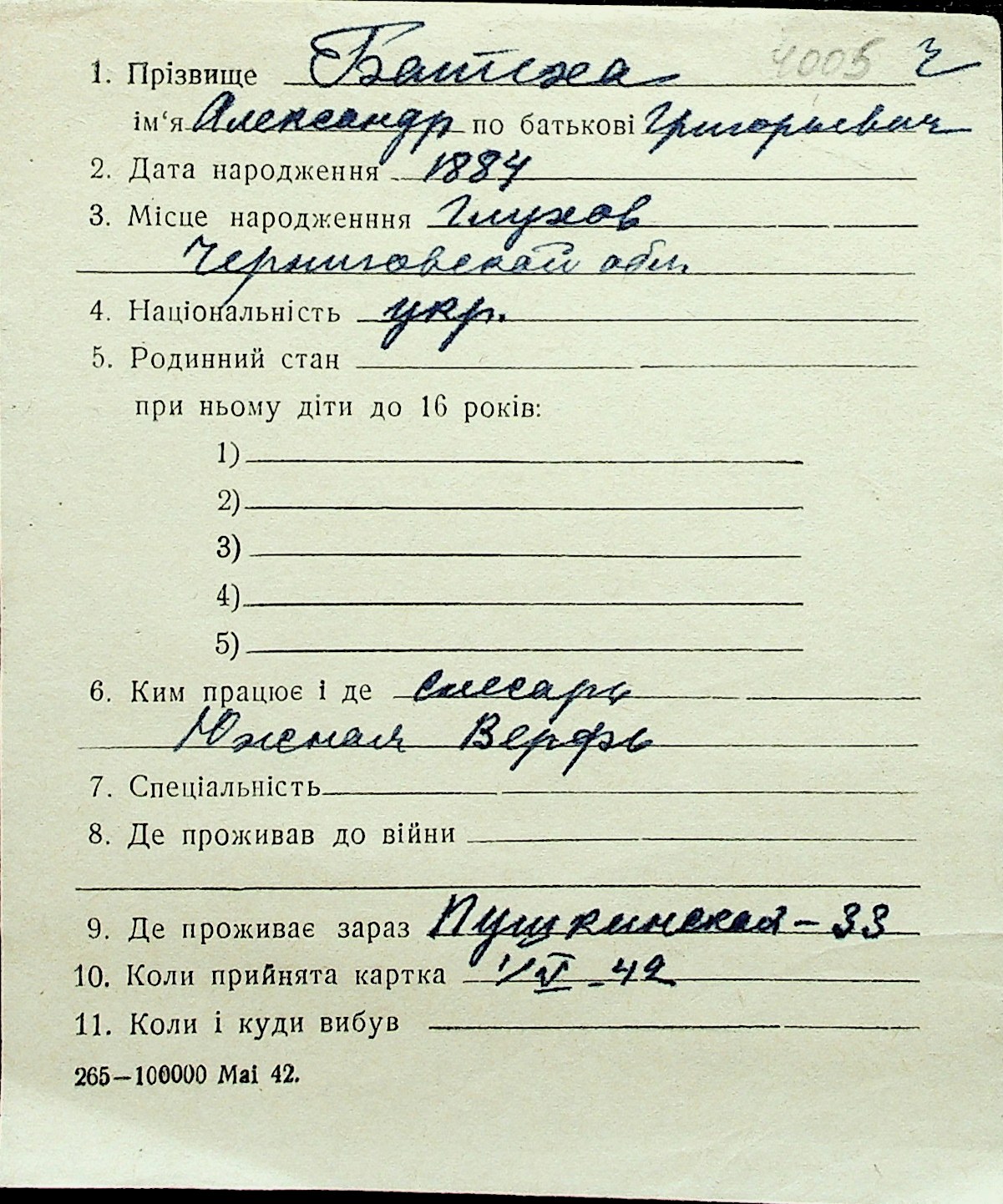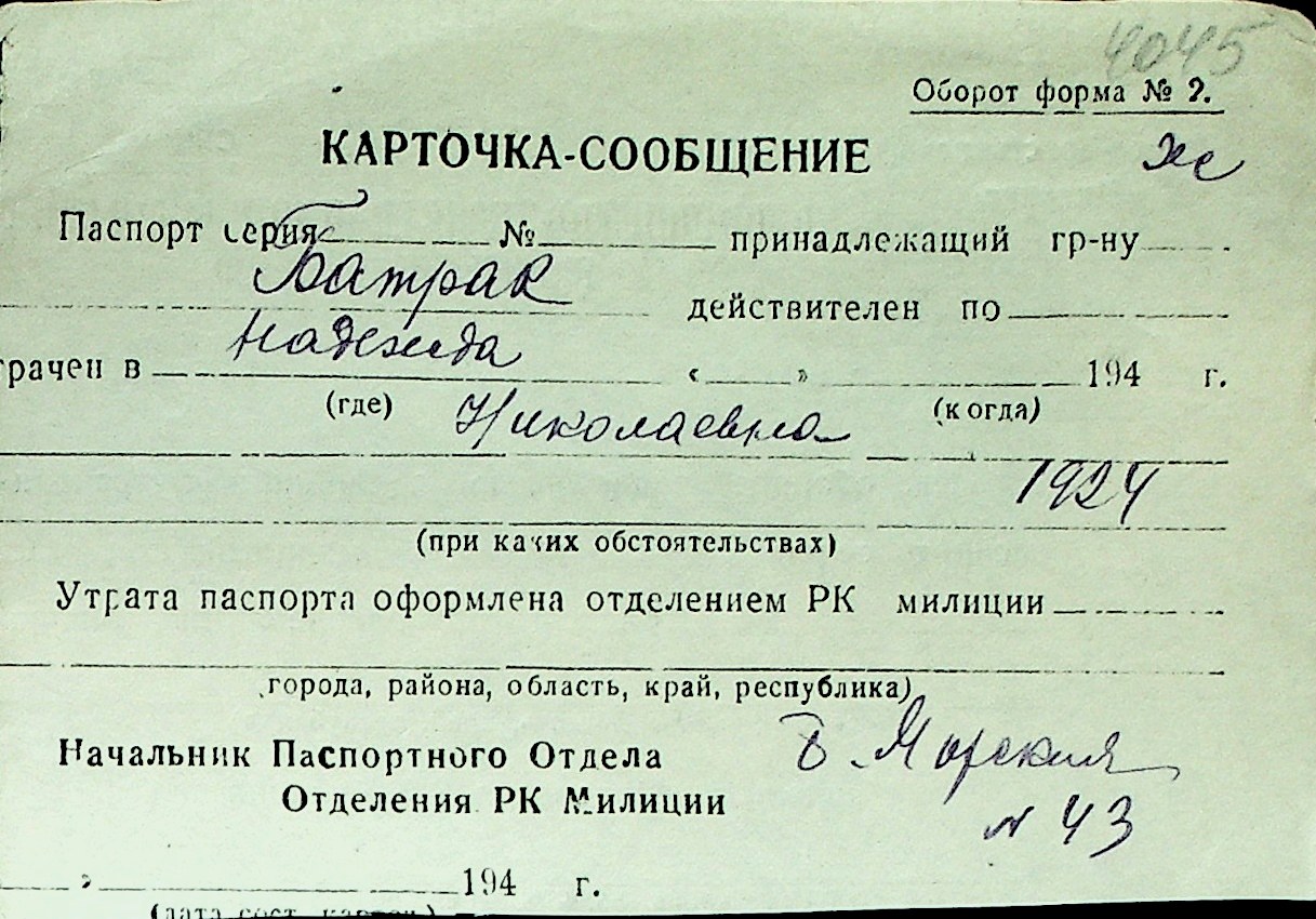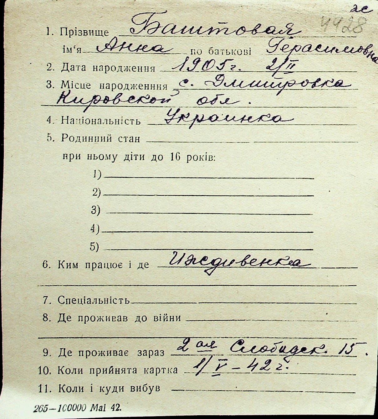 ◦ ◦ Перелік карток на осіб, які мешкали у м. Миколаїв у період окупації 1941–1944 років