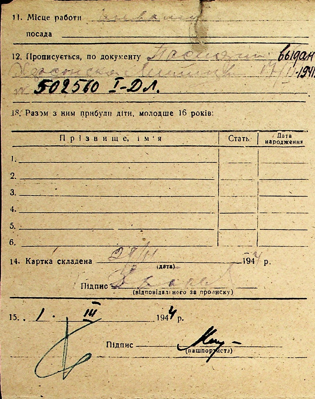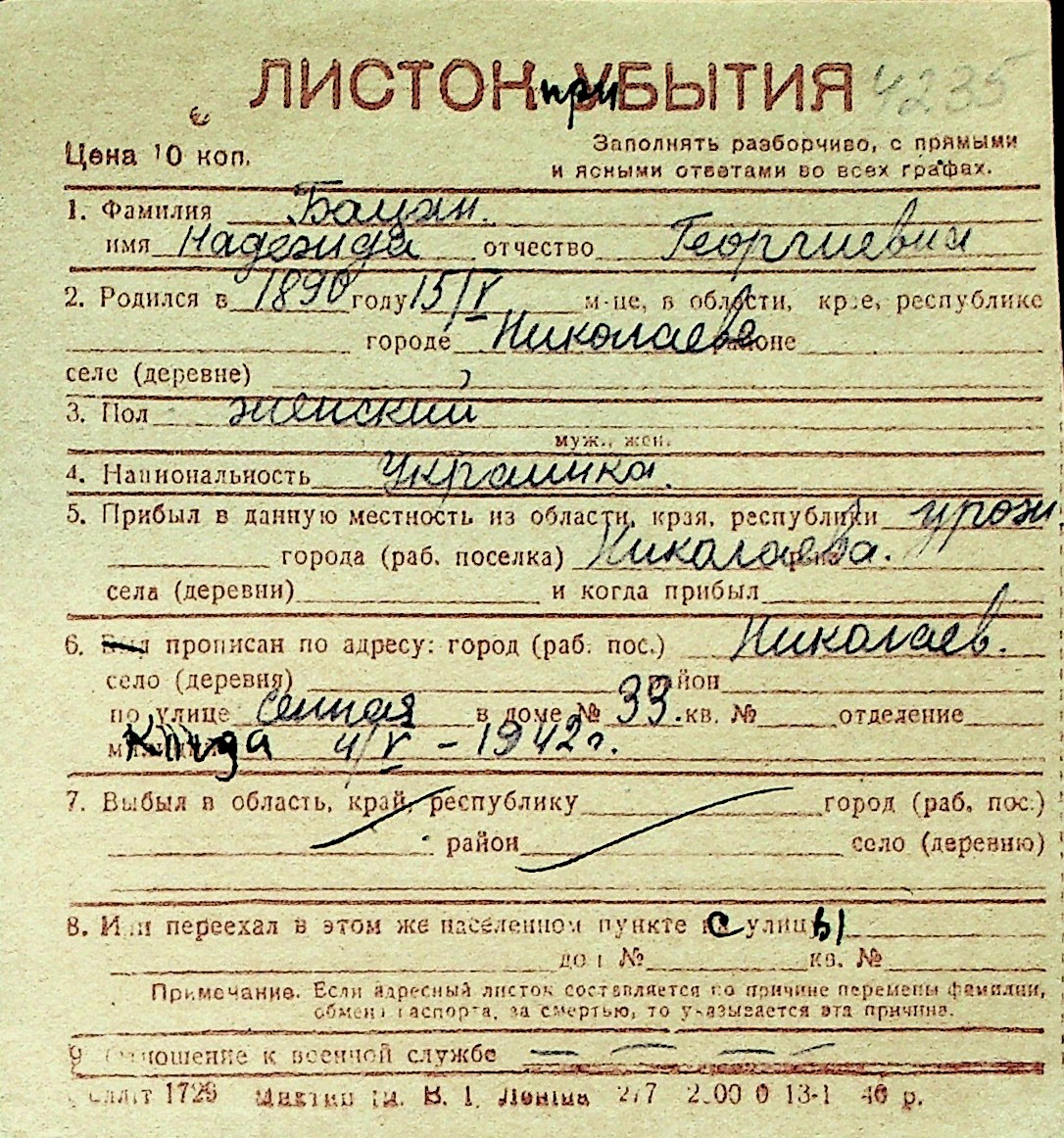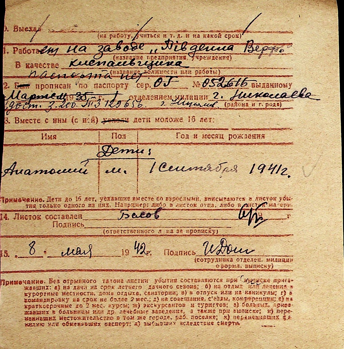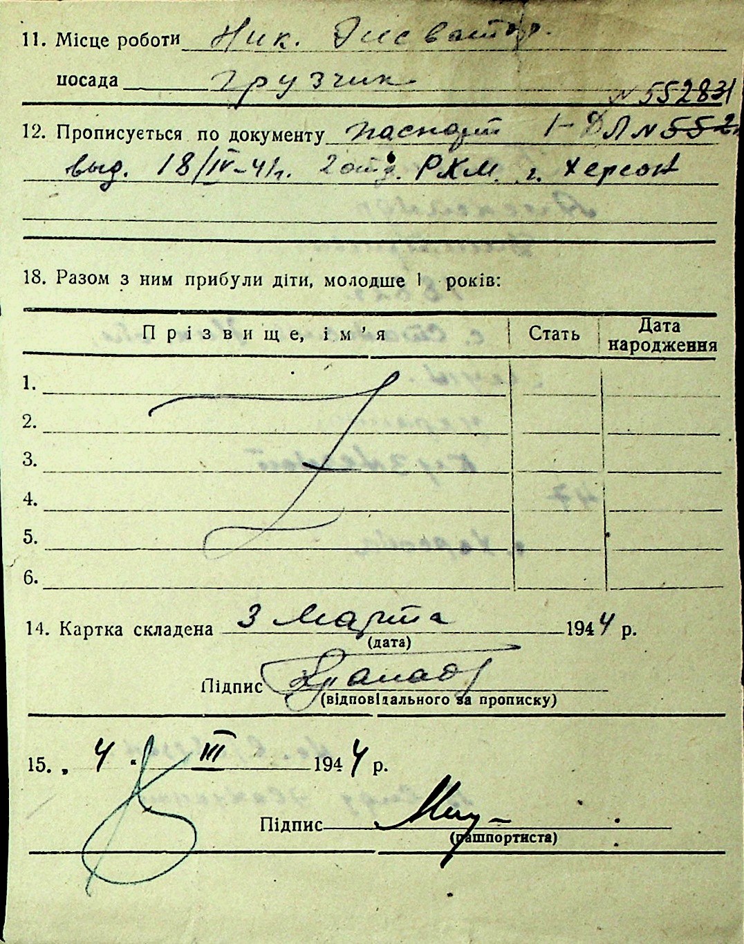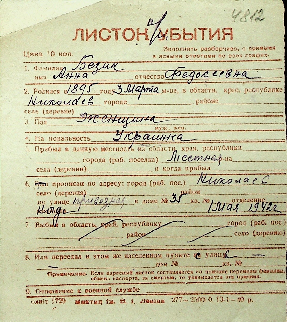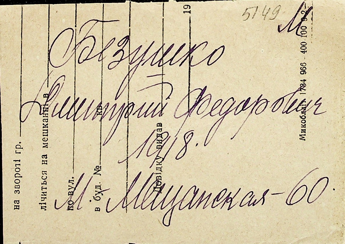 ◦ ◦ Перелік карток на осіб, які мешкали у м. Миколаїв у період окупації 1941–1944 років