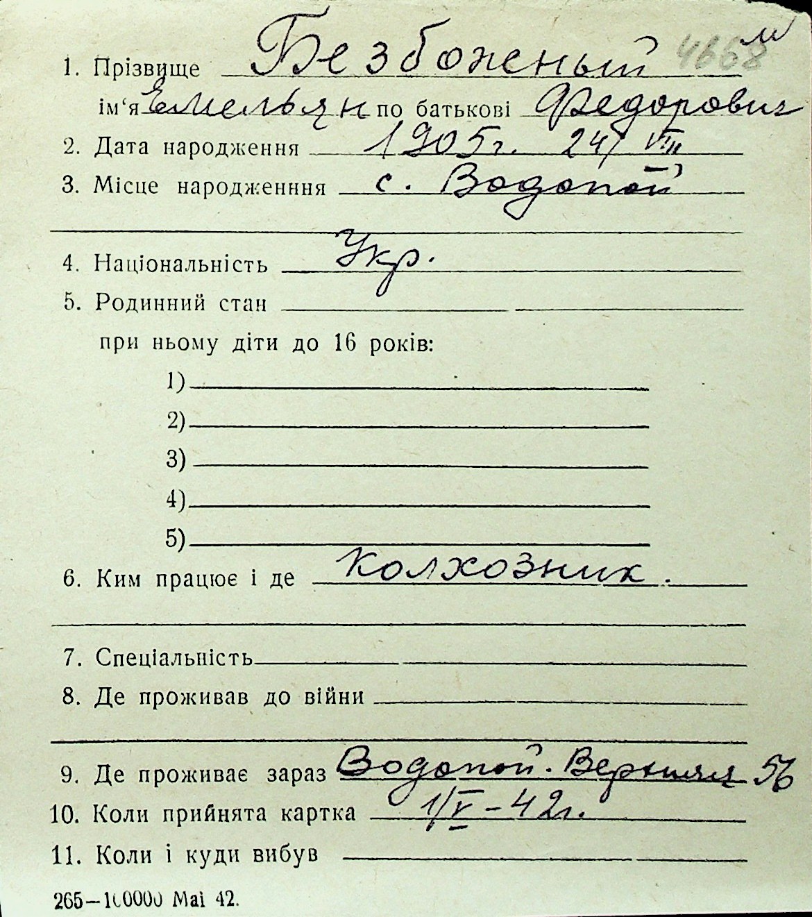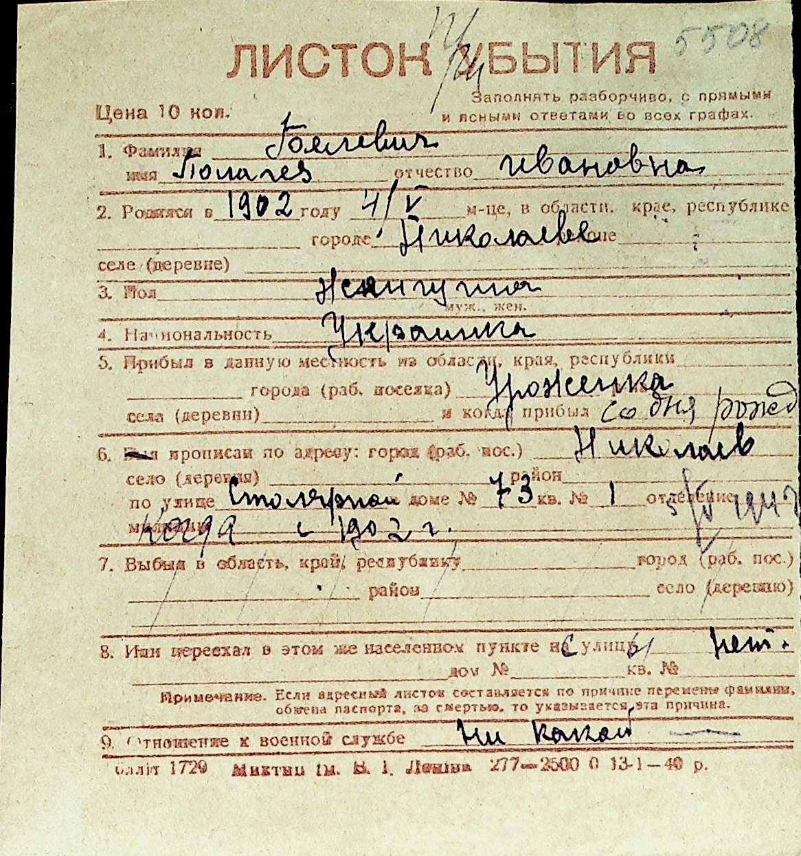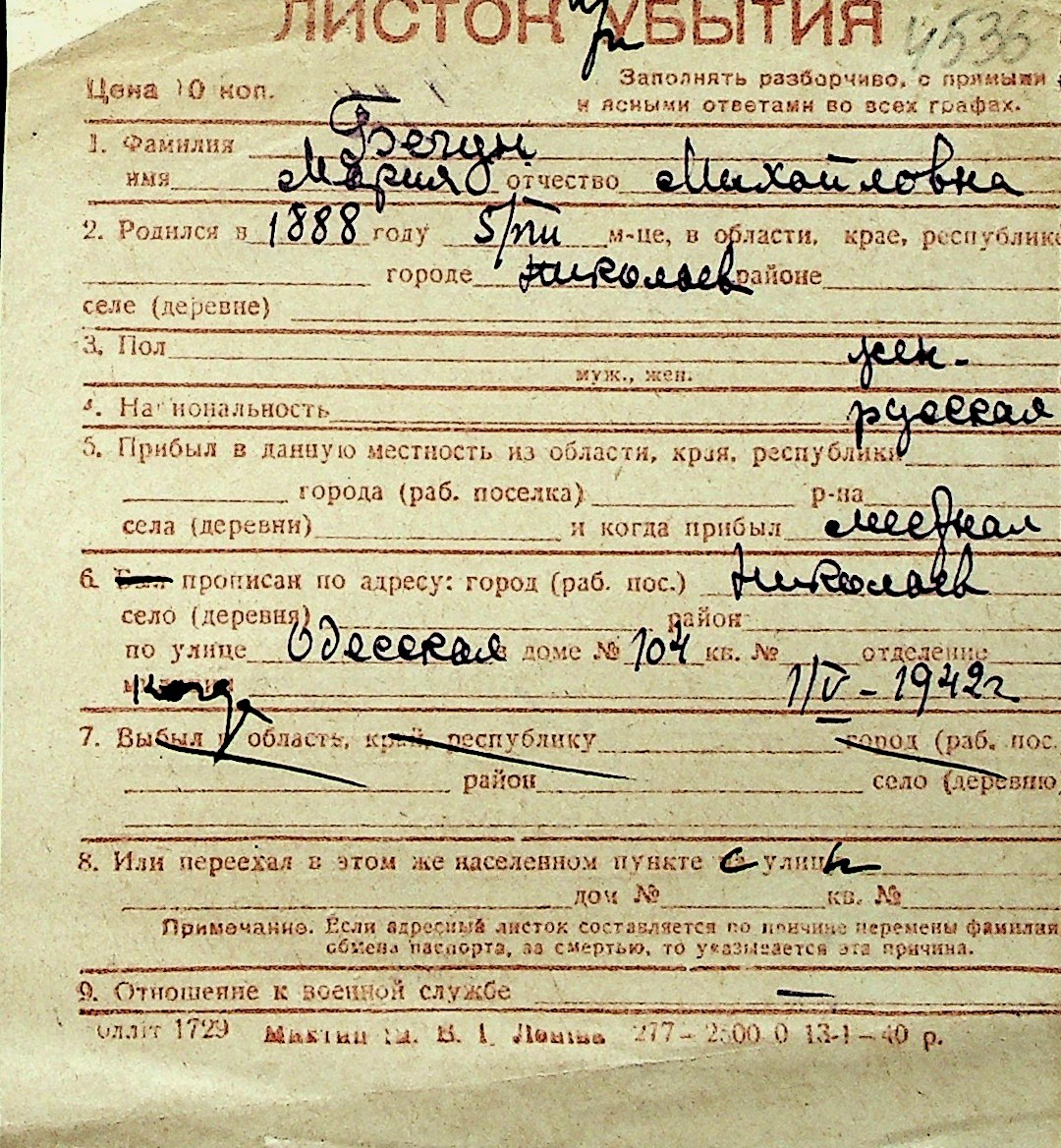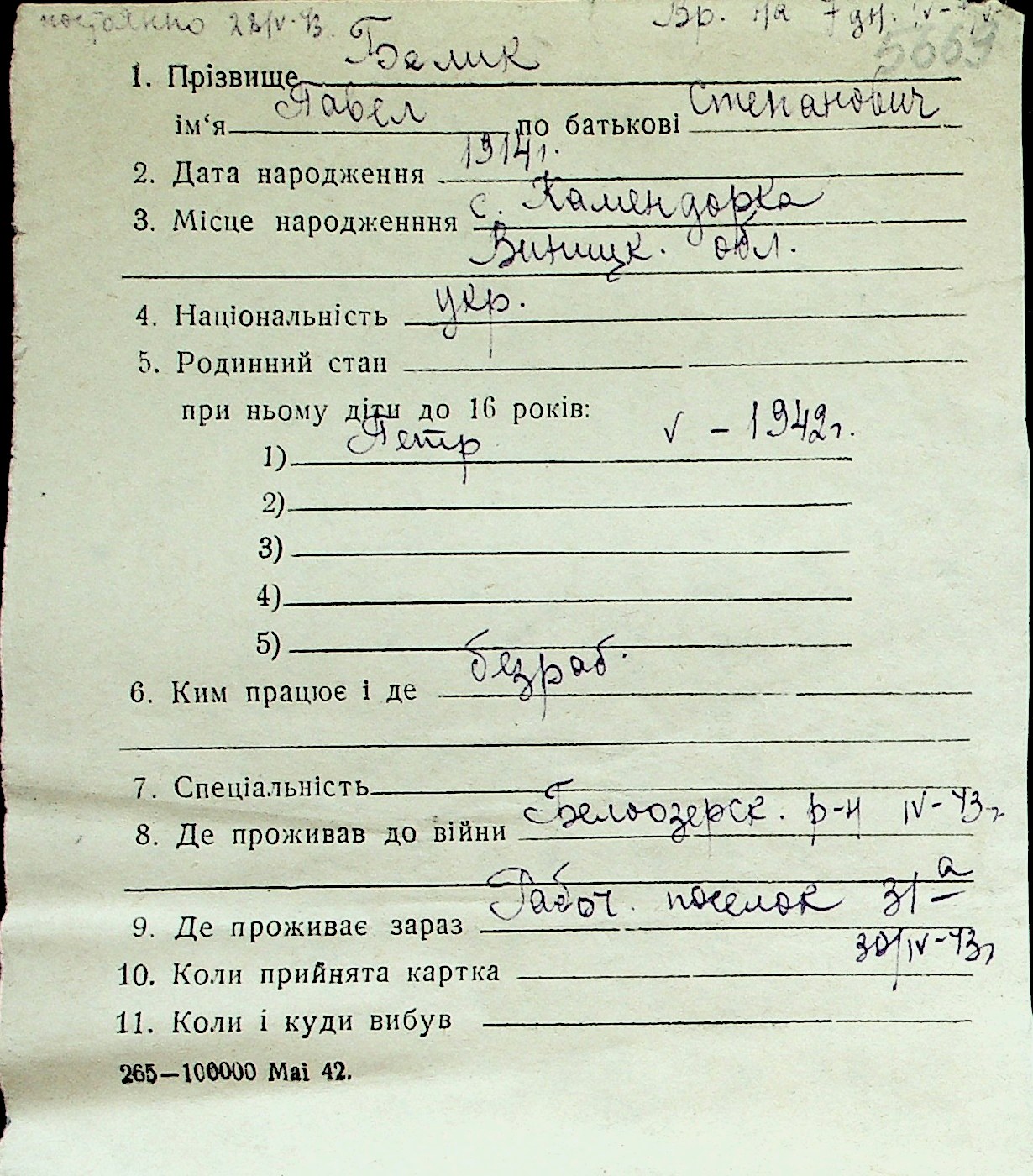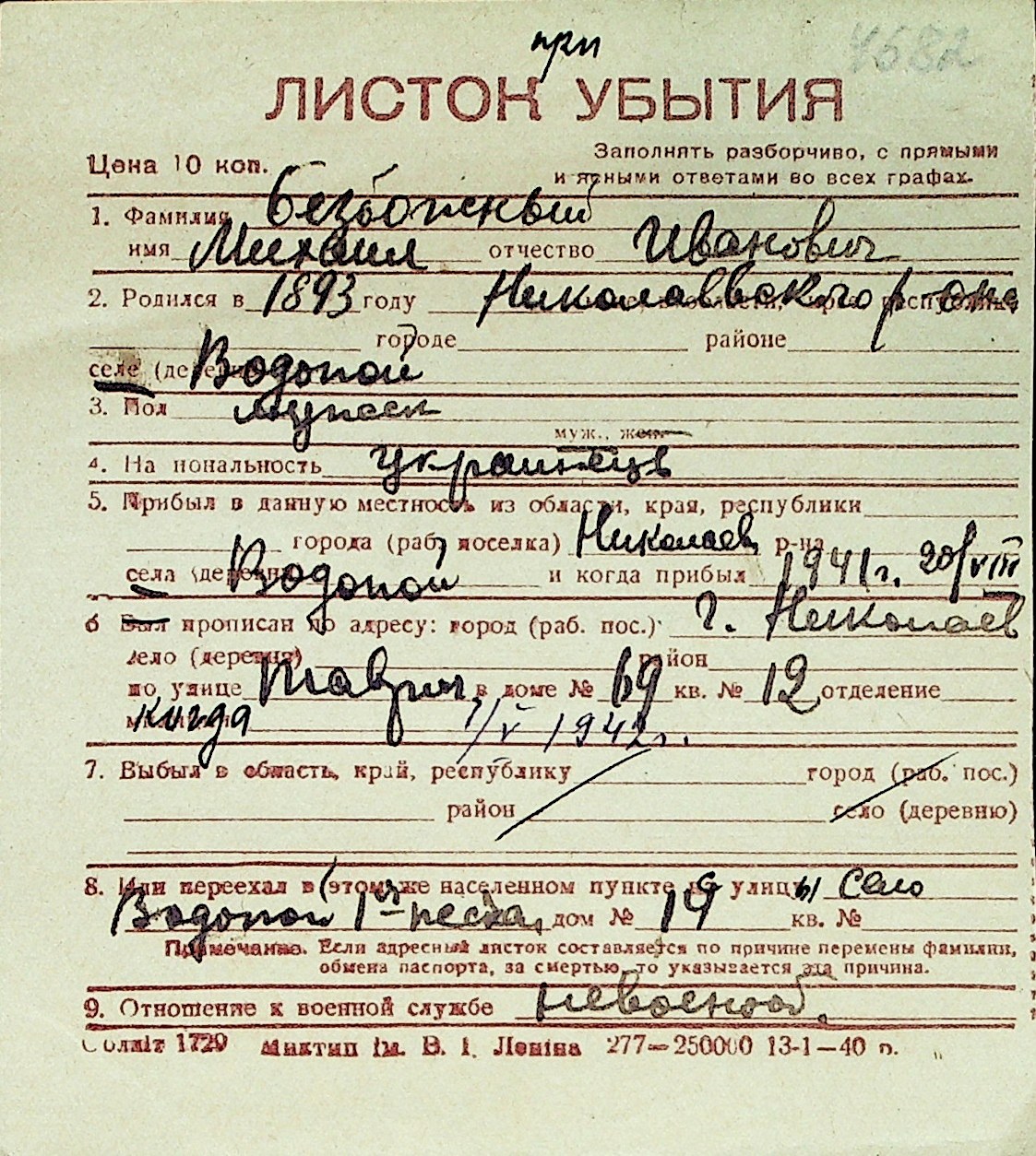 ◦ ◦ Перелік карток на осіб, які мешкали у м. Миколаїв у період окупації 1941–1944 років