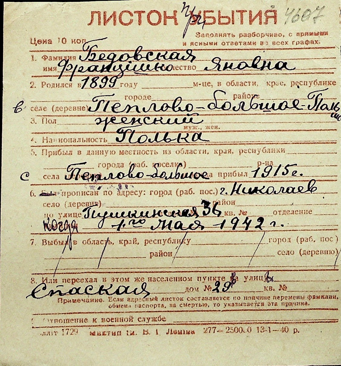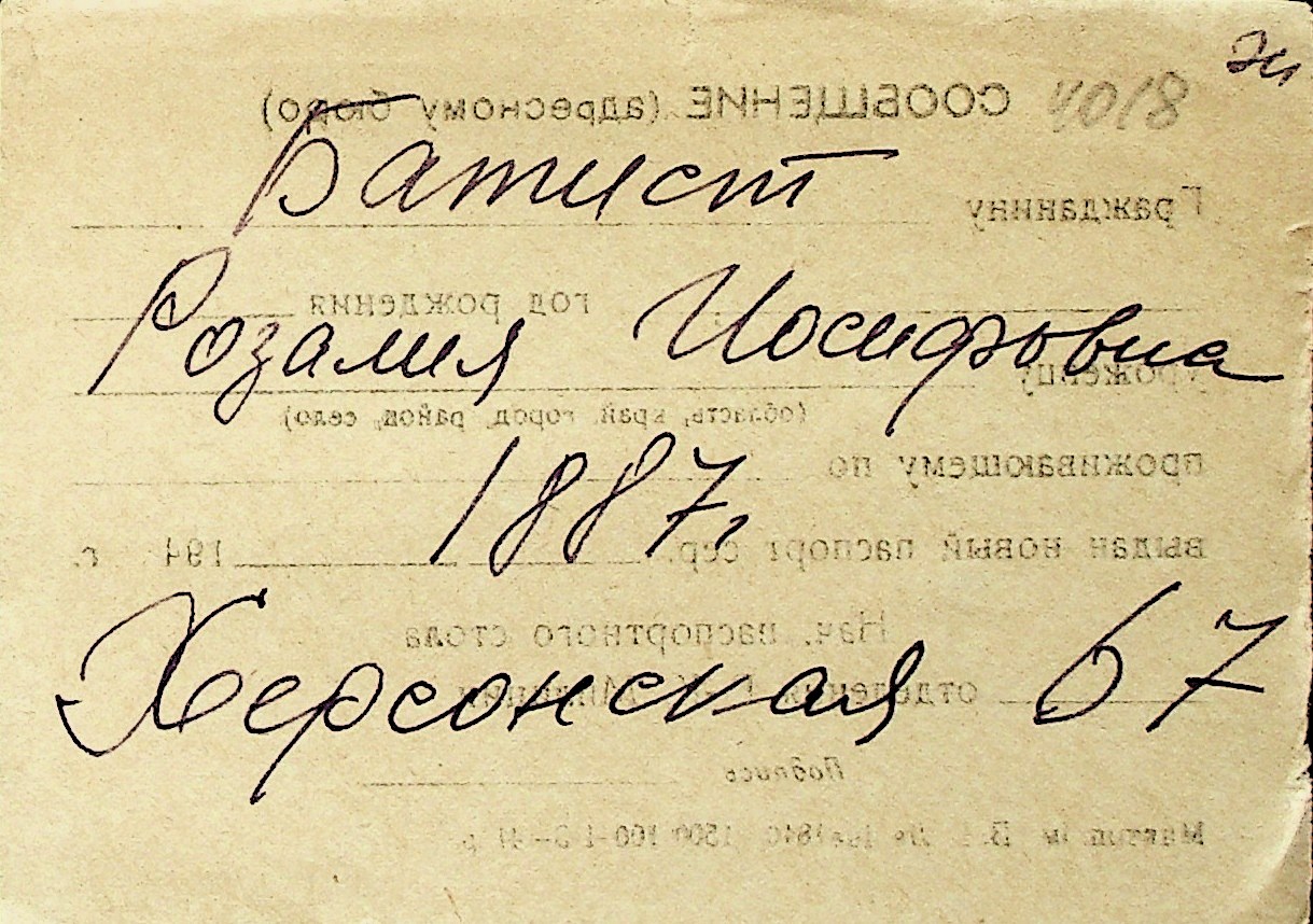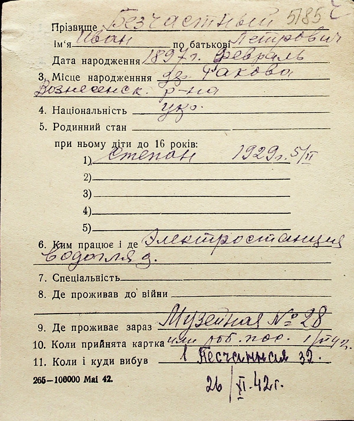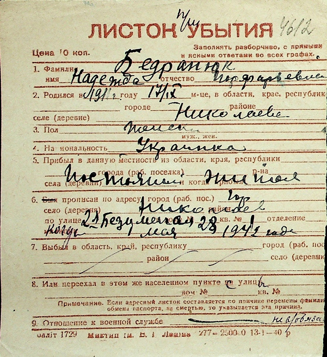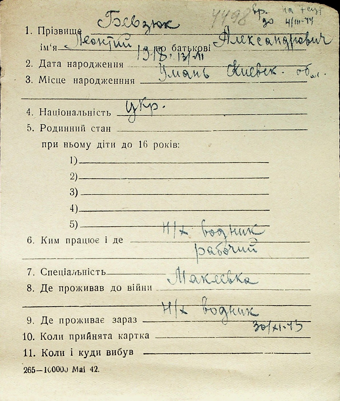 ◦ ◦ Перелік карток на осіб, які мешкали у м. Миколаїв у період окупації 1941–1944 років