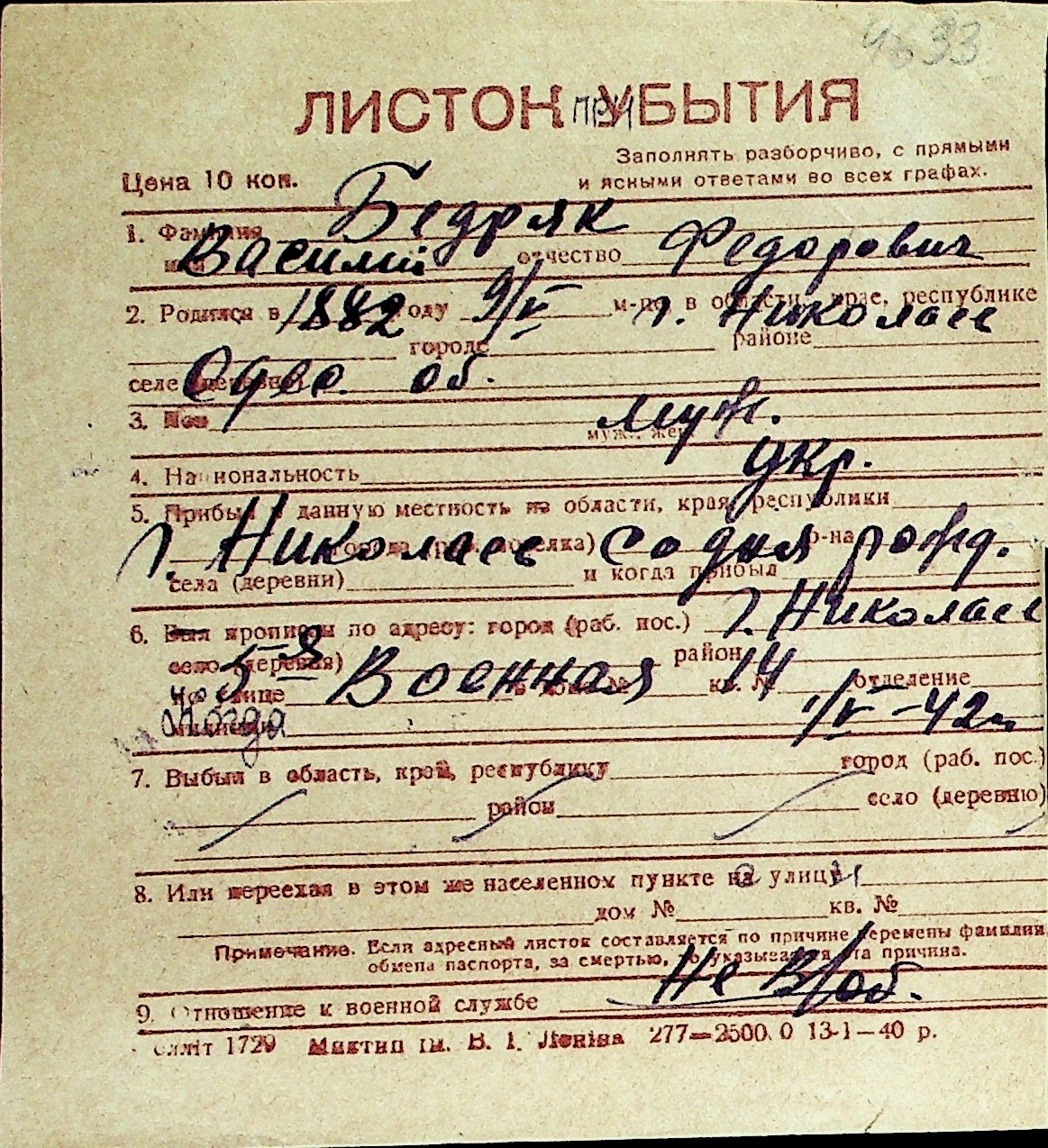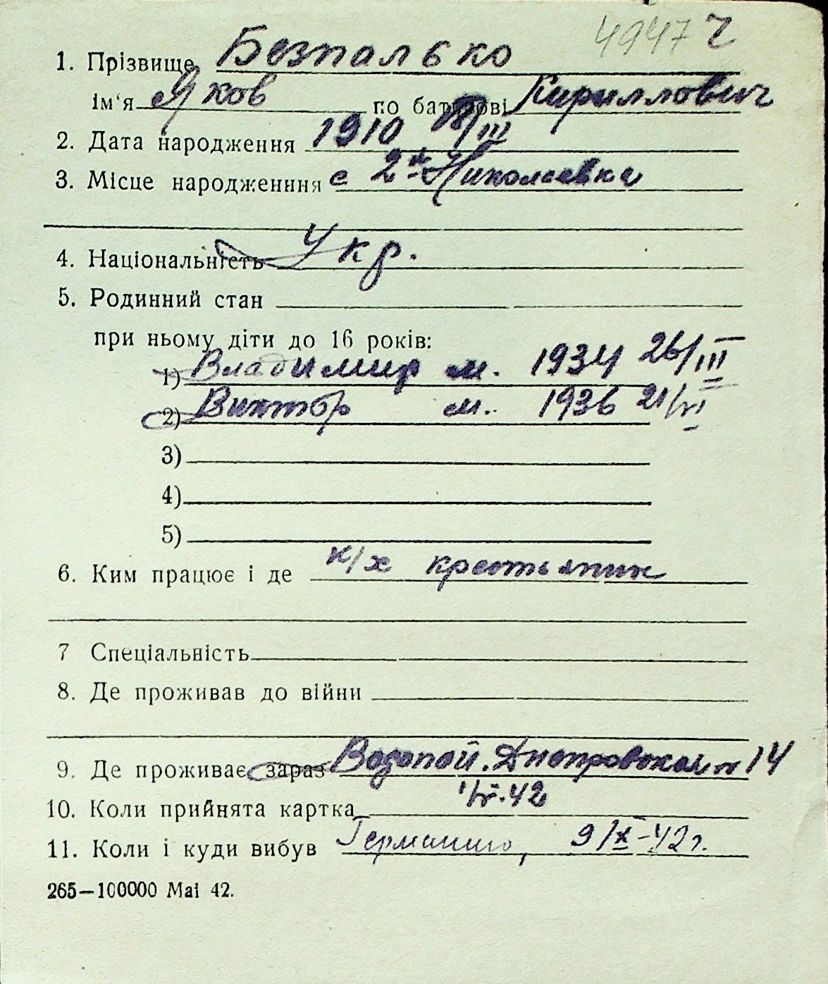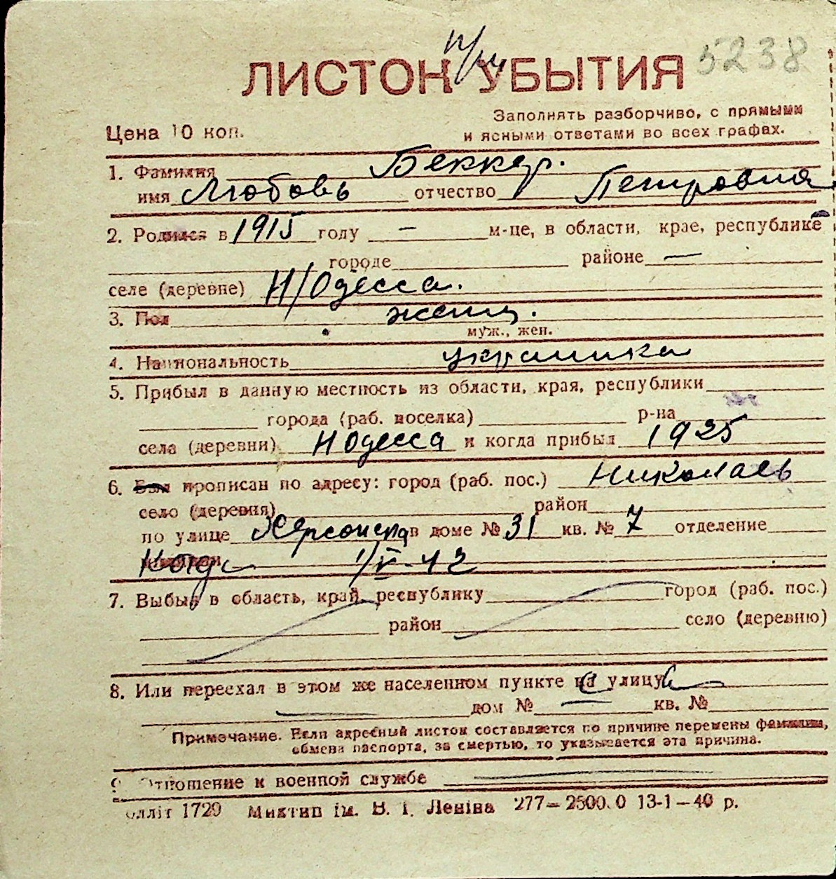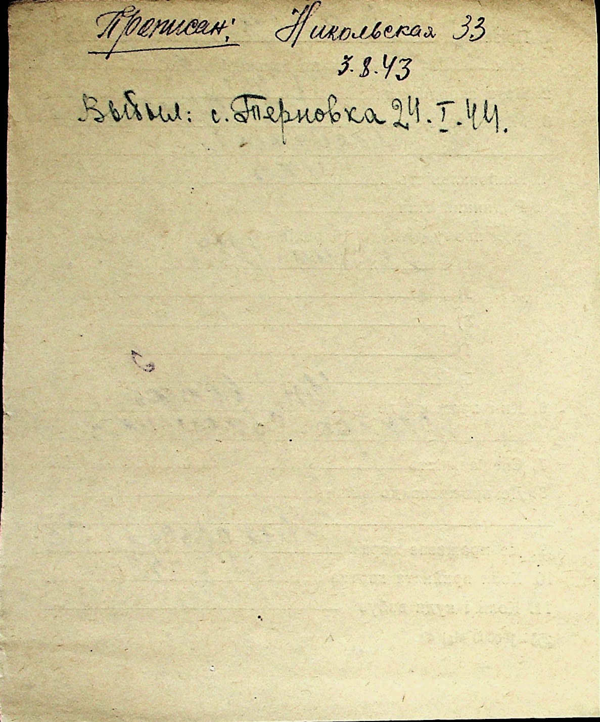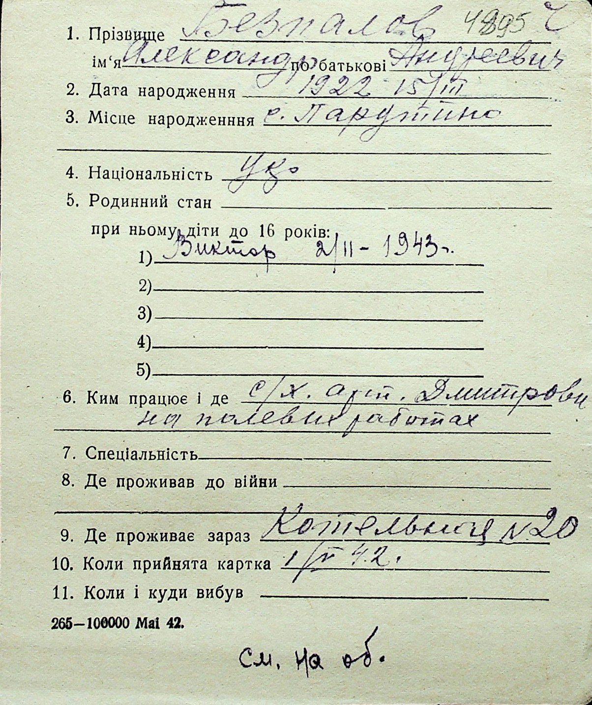 ◦ ◦ Перелік карток на осіб, які мешкали у м. Миколаїв у період окупації 1941–1944 років