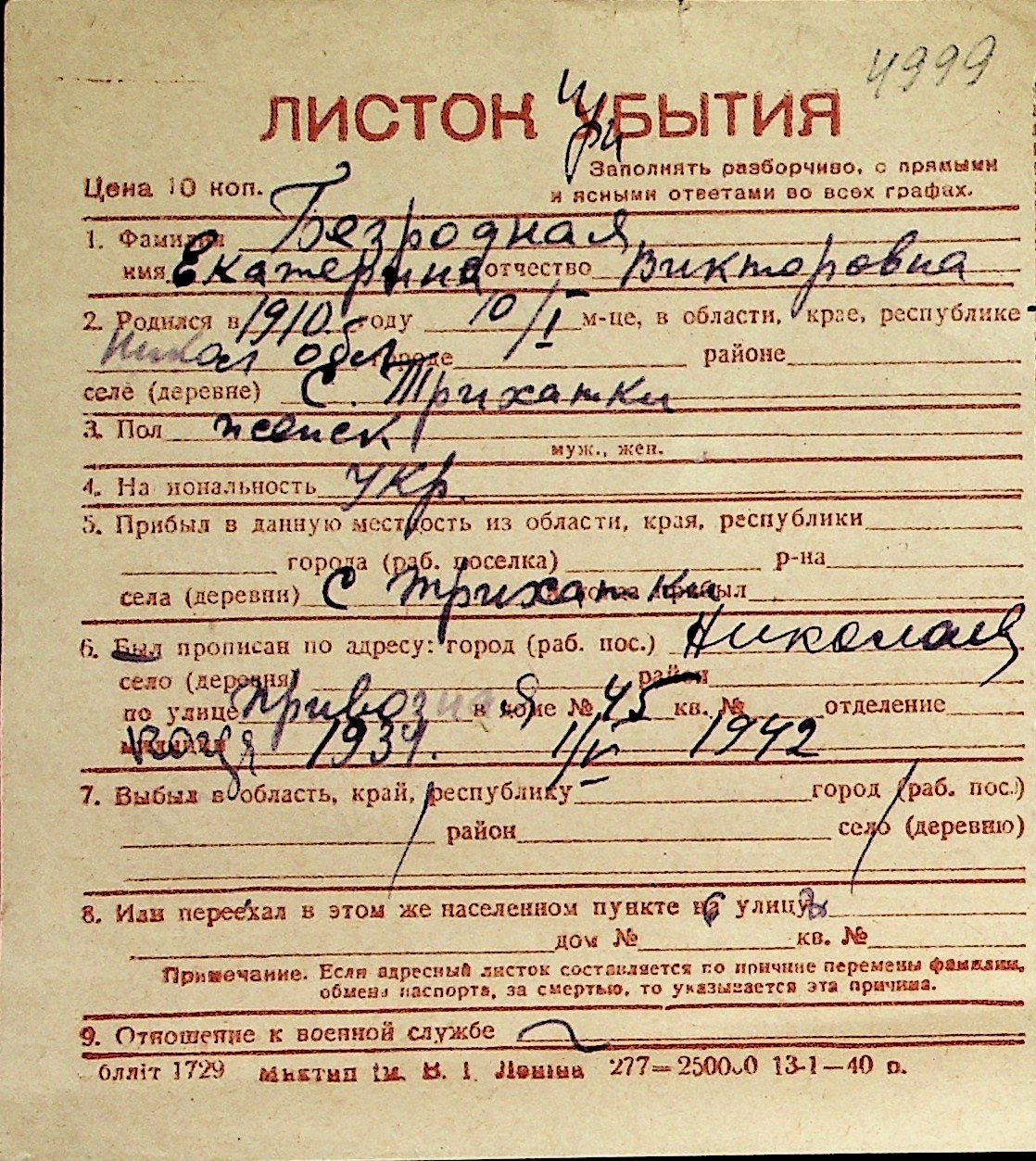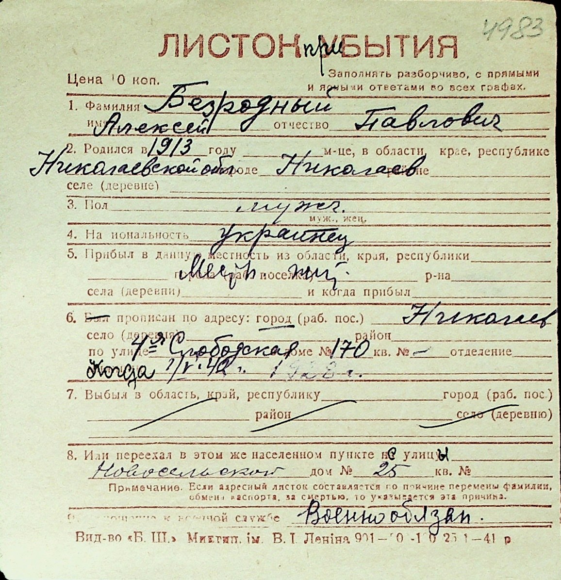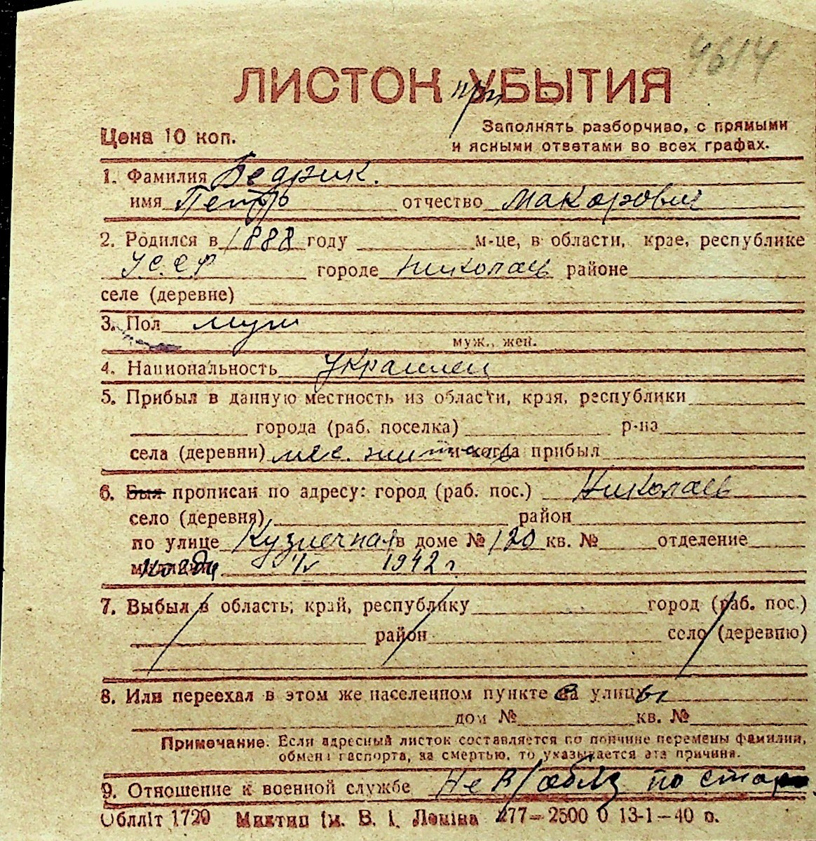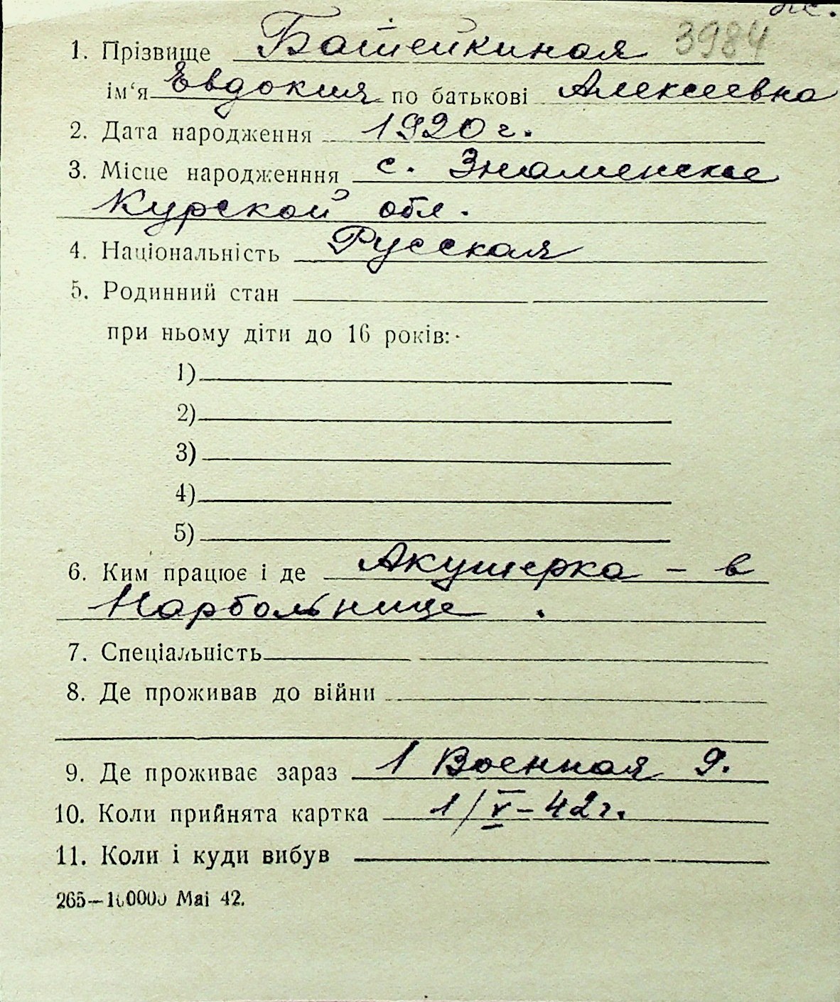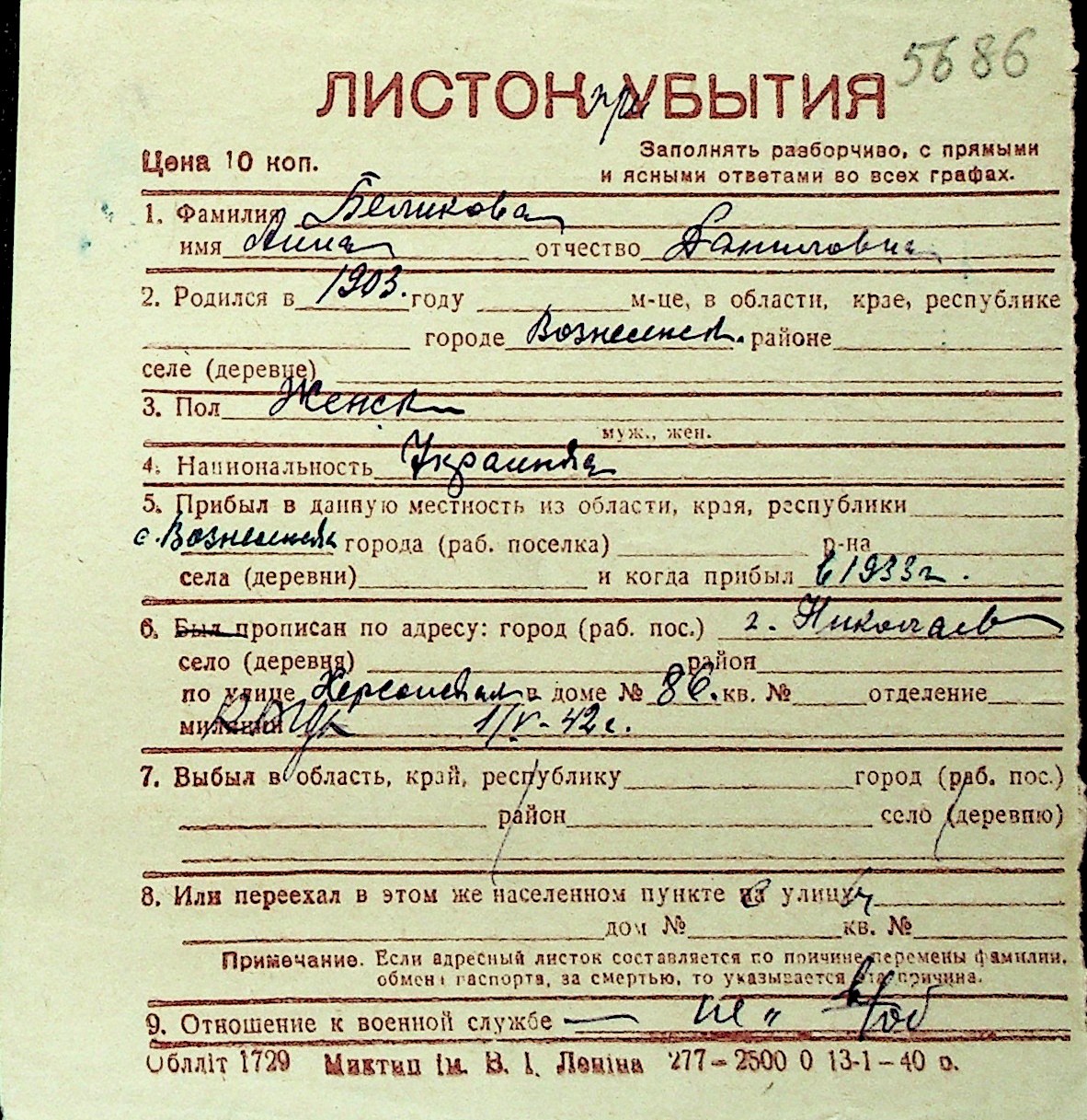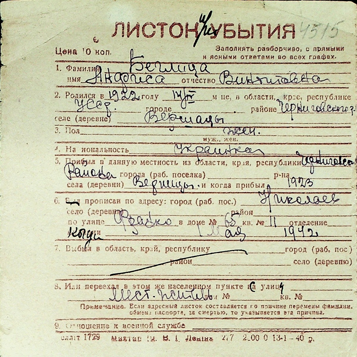 ◦ ◦ Перелік карток на осіб, які мешкали у м. Миколаїв у період окупації 1941–1944 років