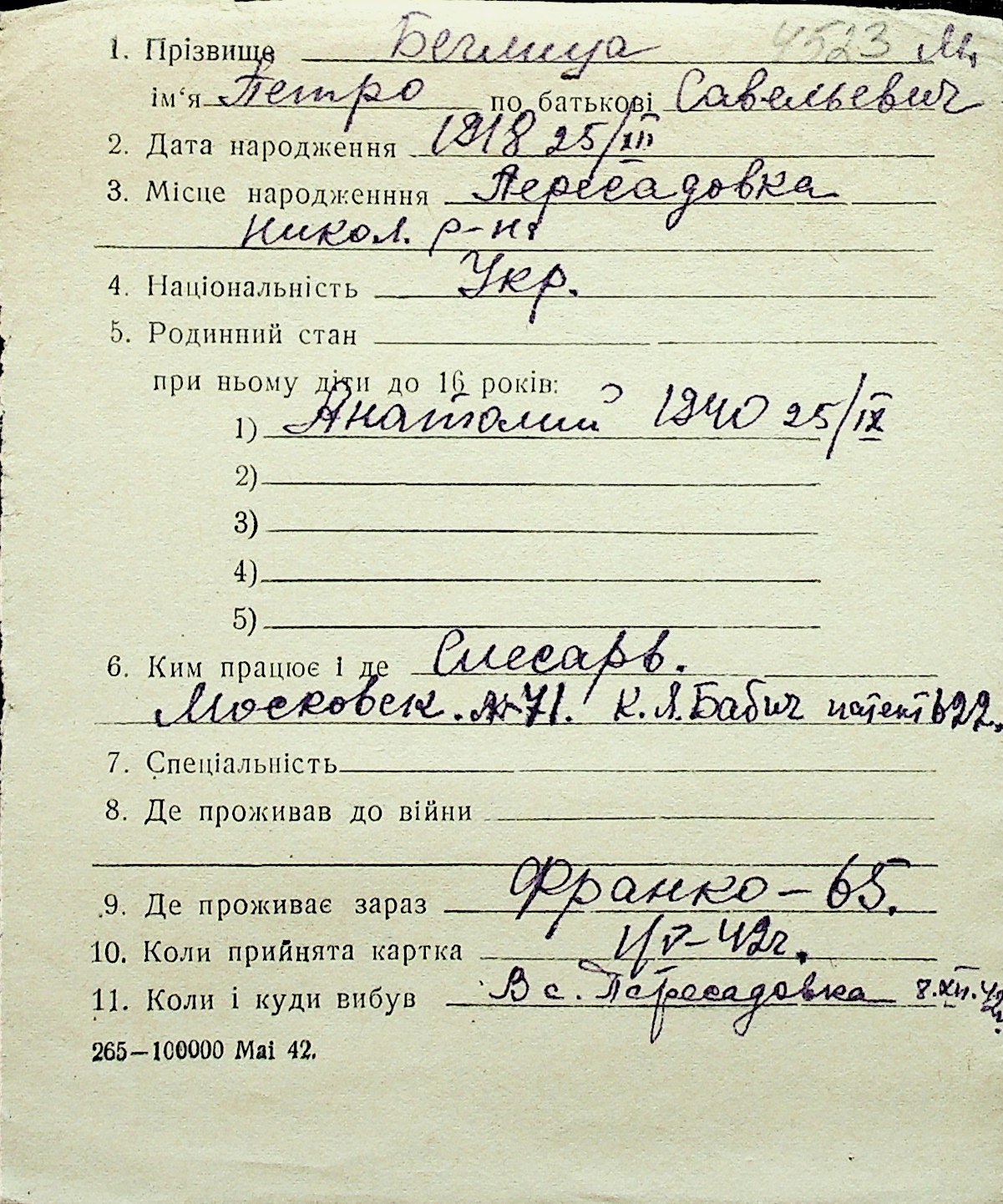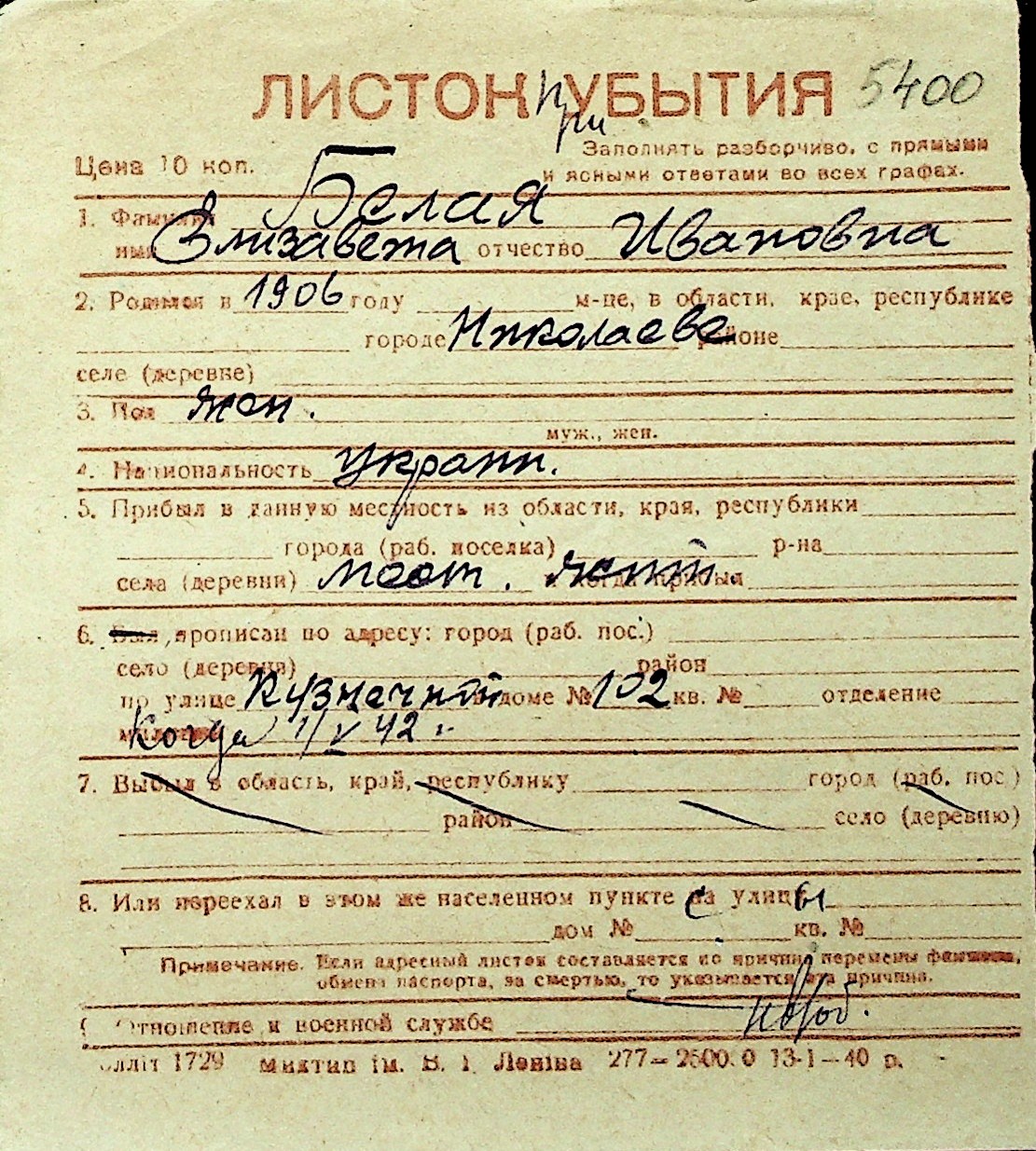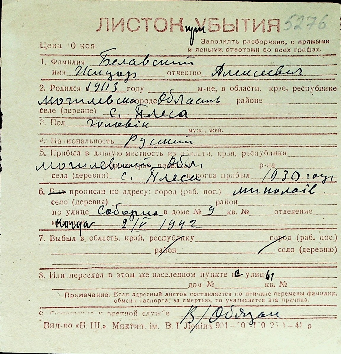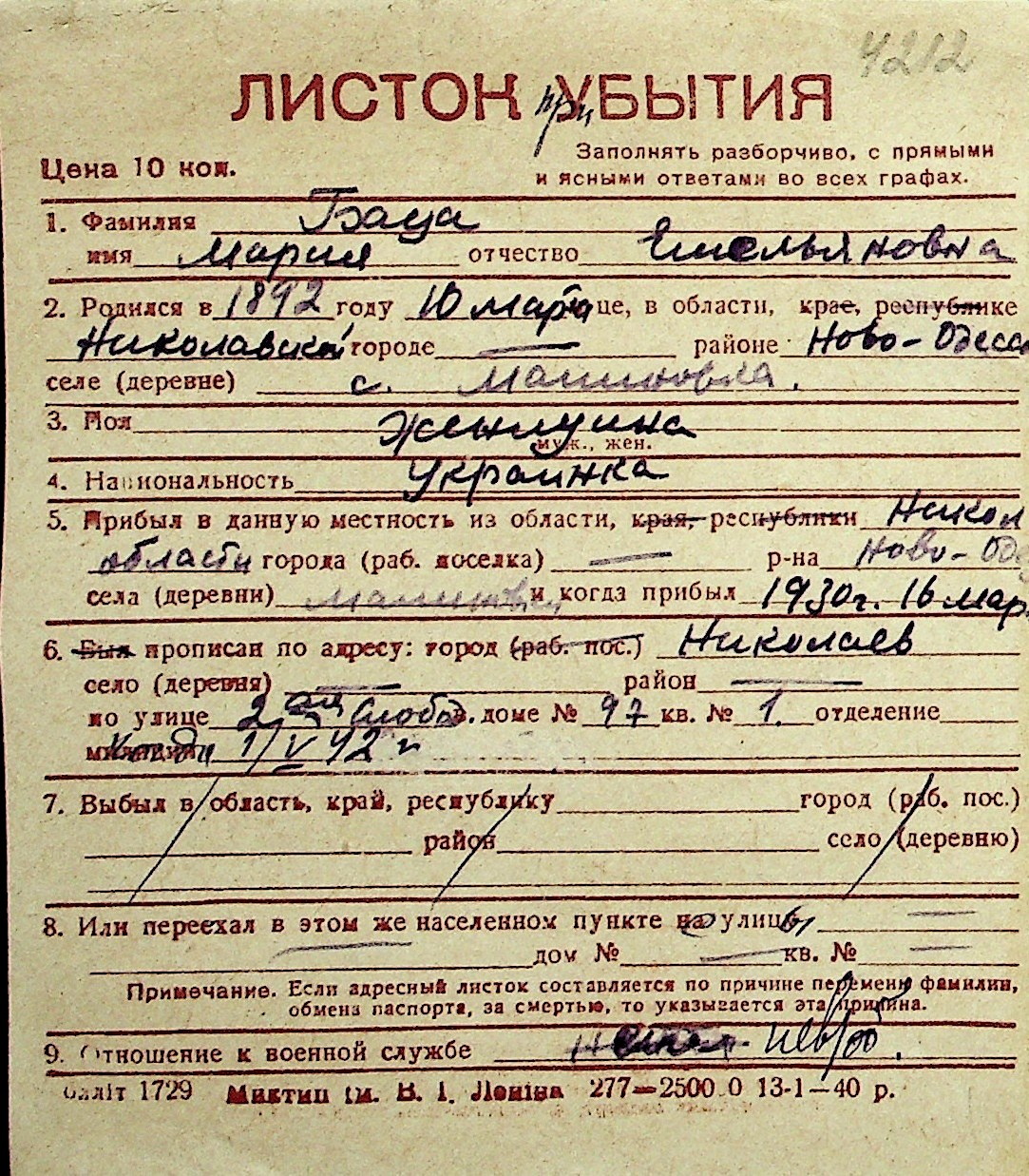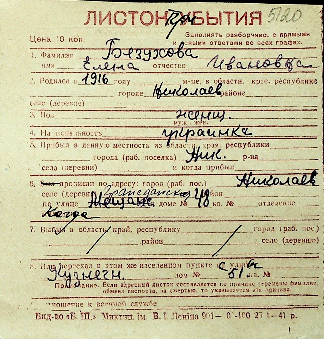 ◦ ◦ Перелік карток на осіб, які мешкали у м. Миколаїв у період окупації 1941–1944 років