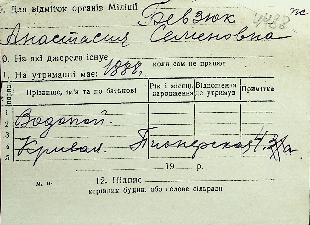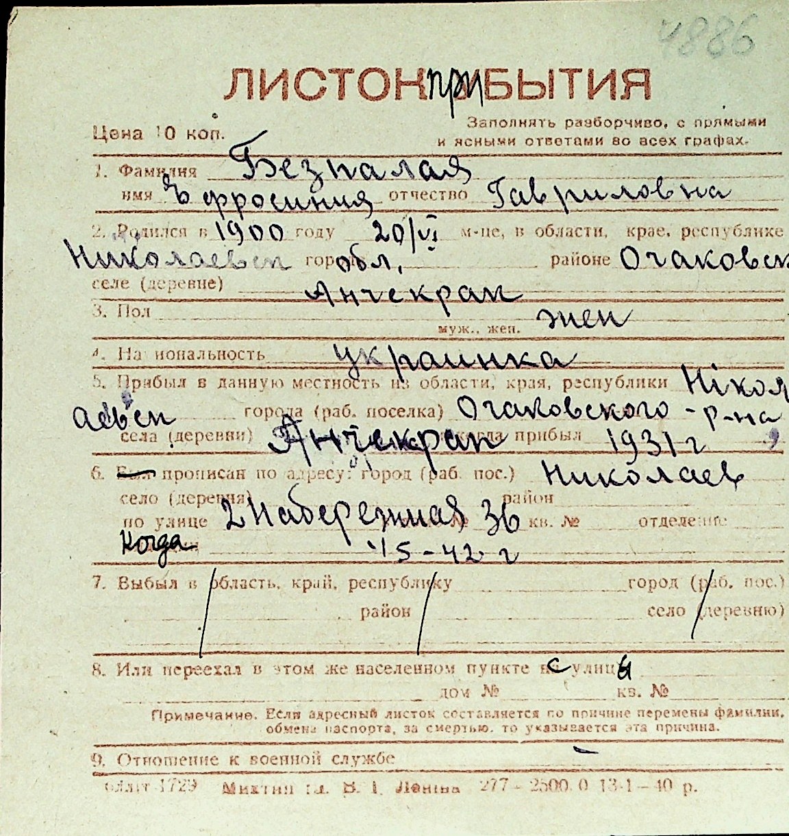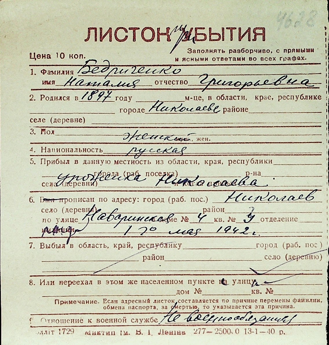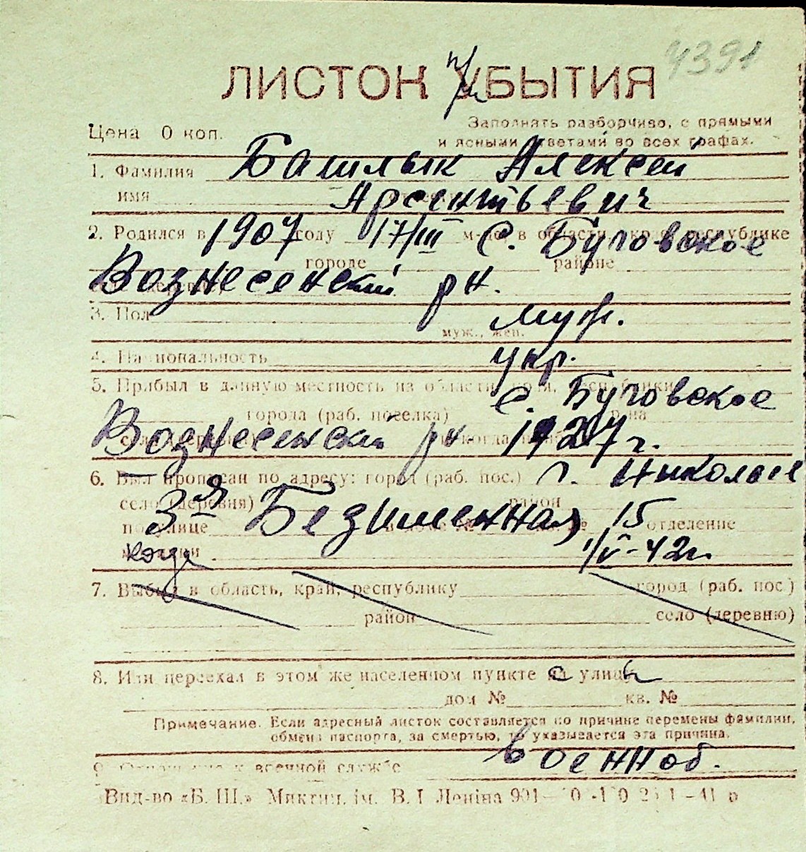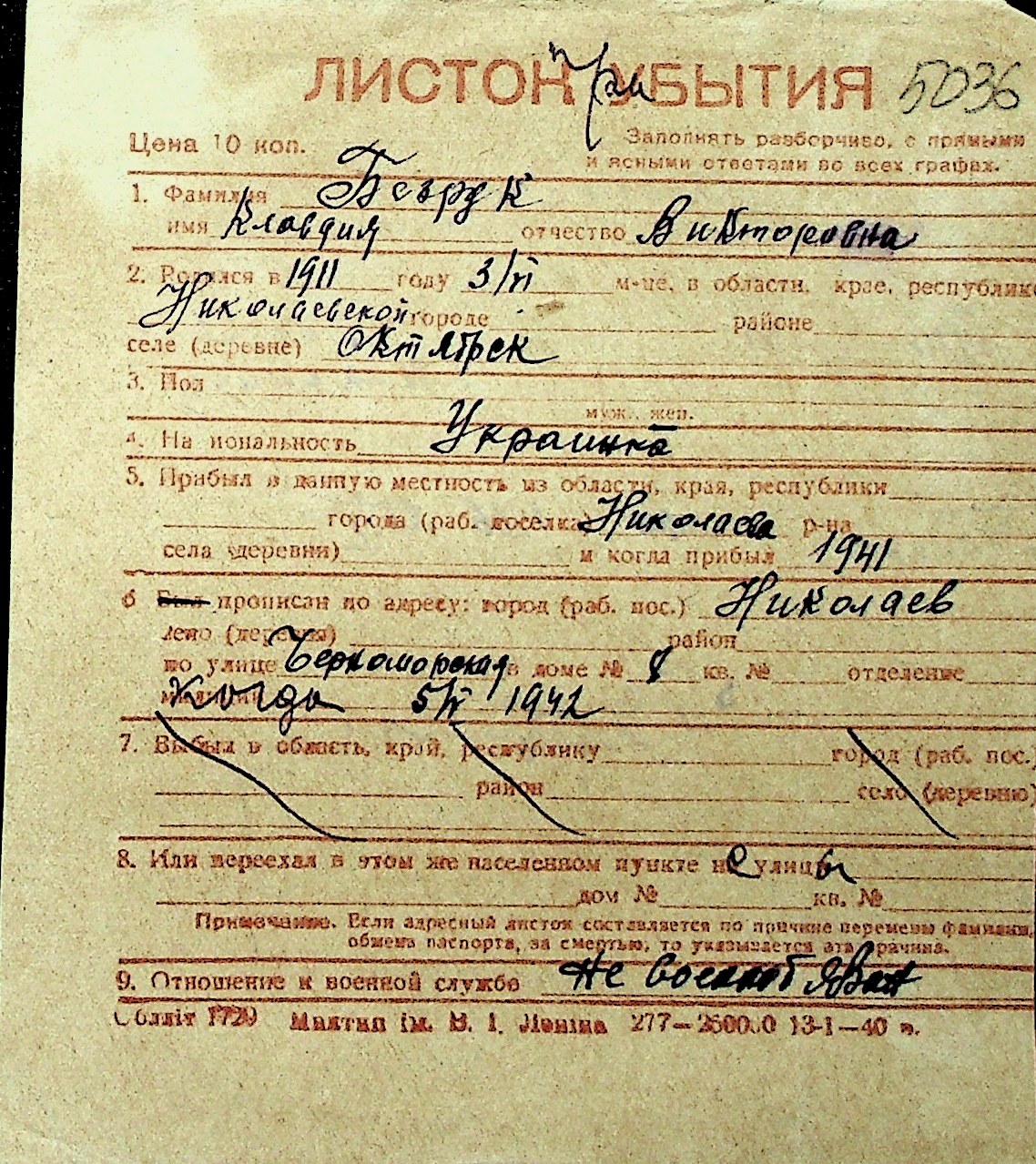 ◦ ◦ Перелік карток на осіб, які мешкали у м. Миколаїв у період окупації 1941–1944 років