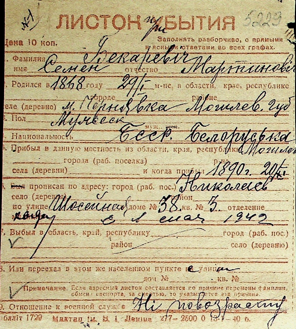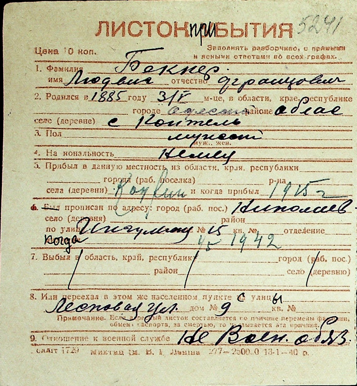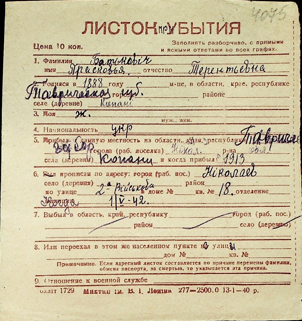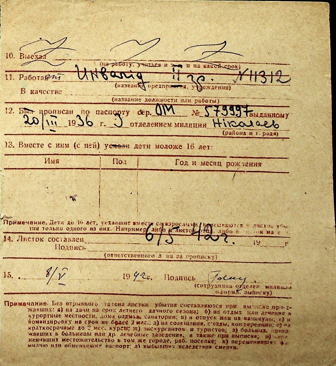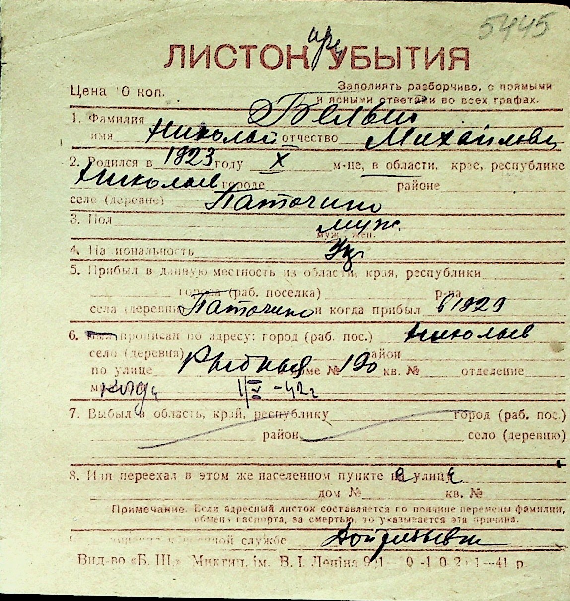 ◦ ◦ Перелік карток на осіб, які мешкали у м. Миколаїв у період окупації 1941–1944 років