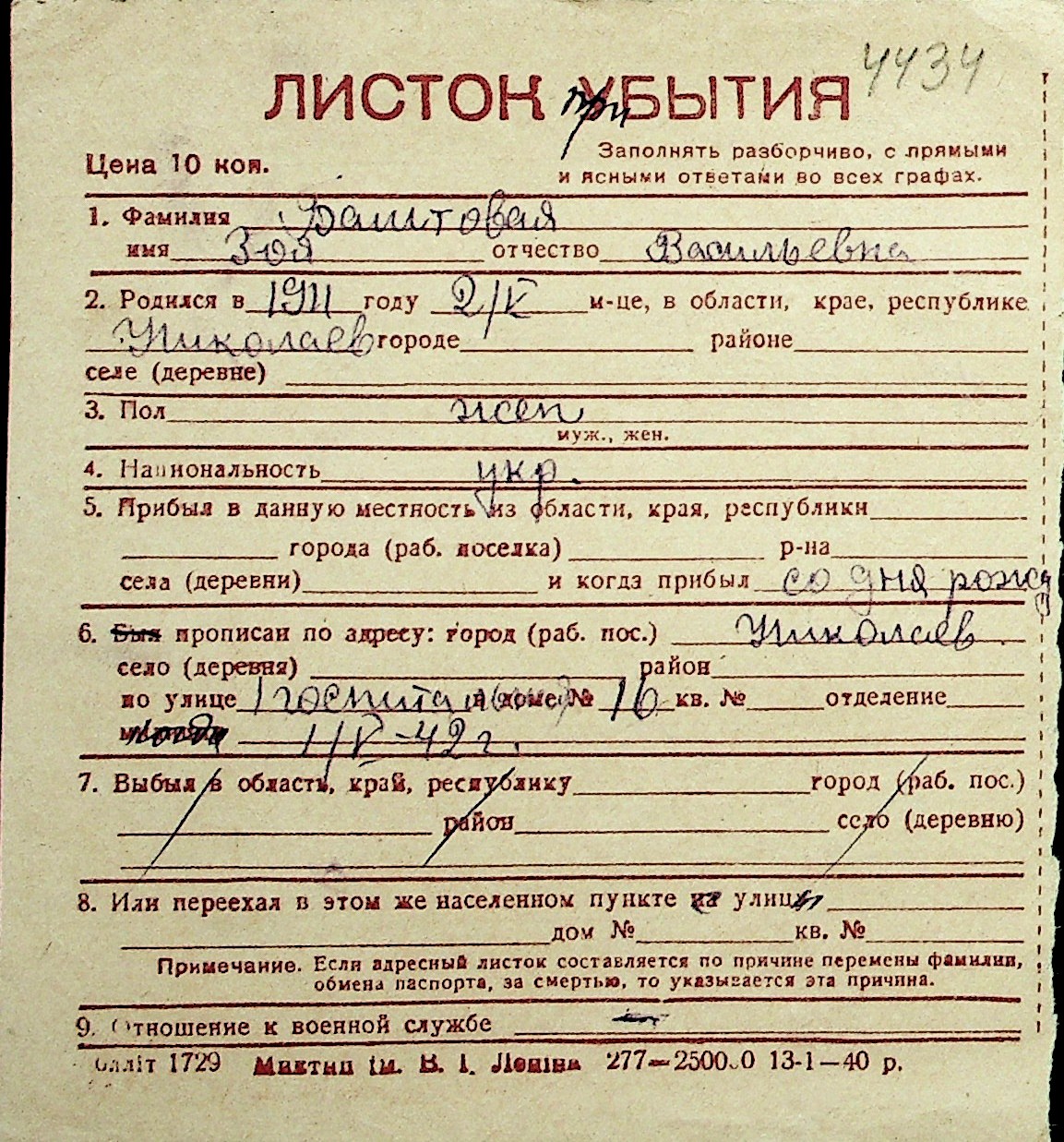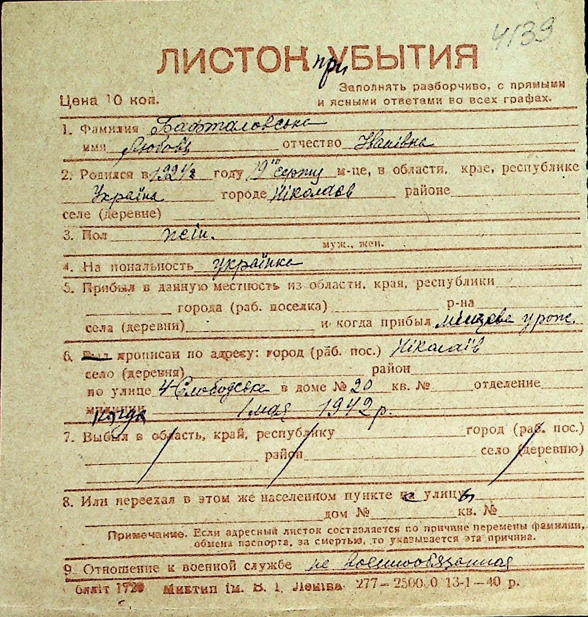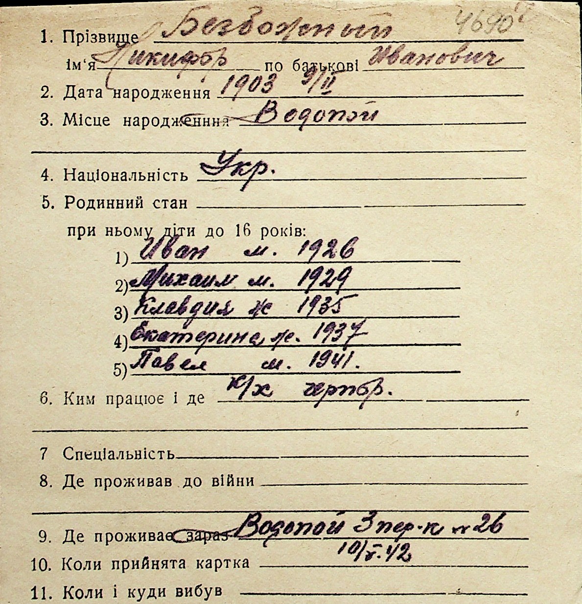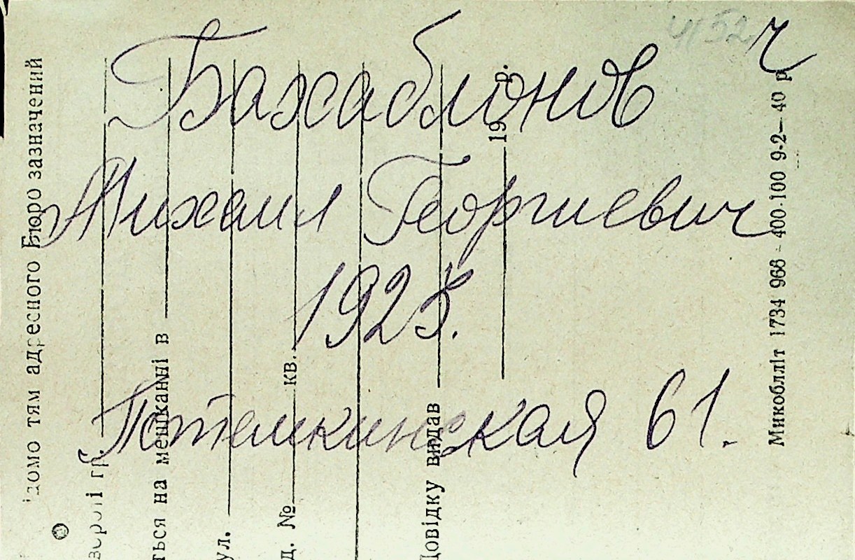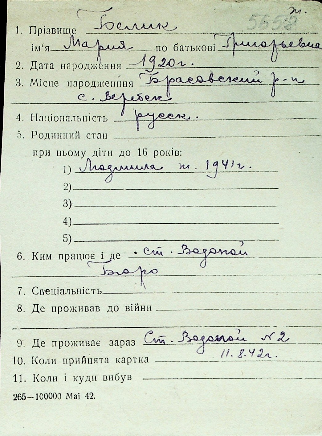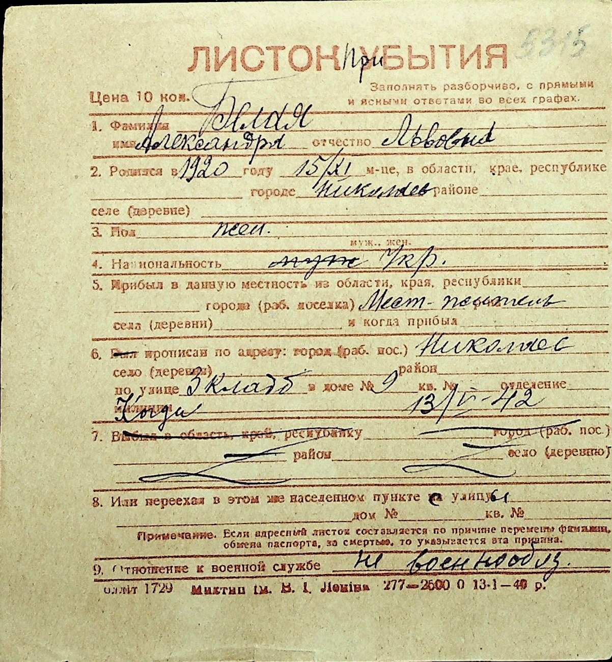 ◦ ◦ Перелік карток на осіб, які мешкали у м. Миколаїв у період окупації 1941–1944 років