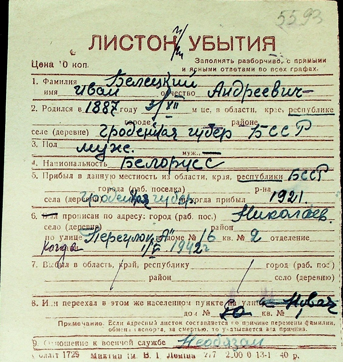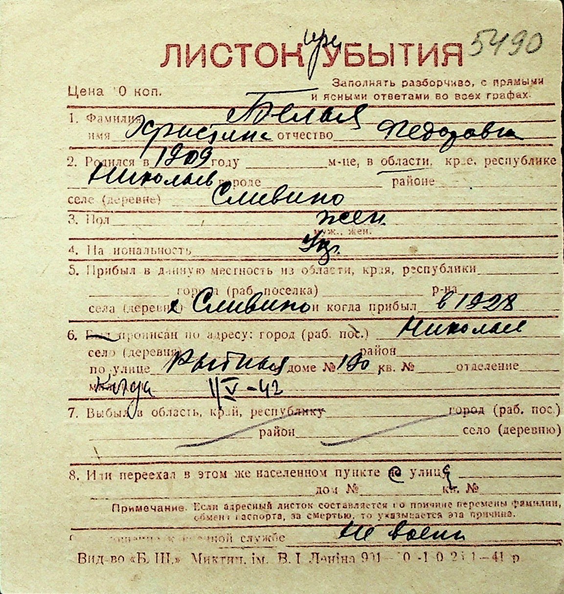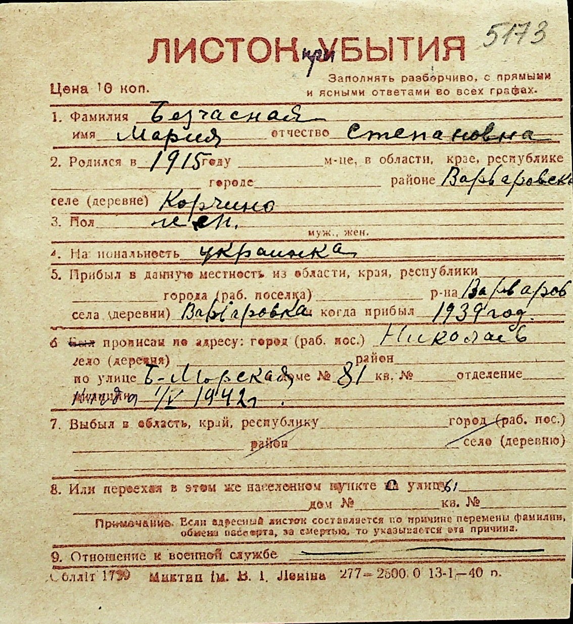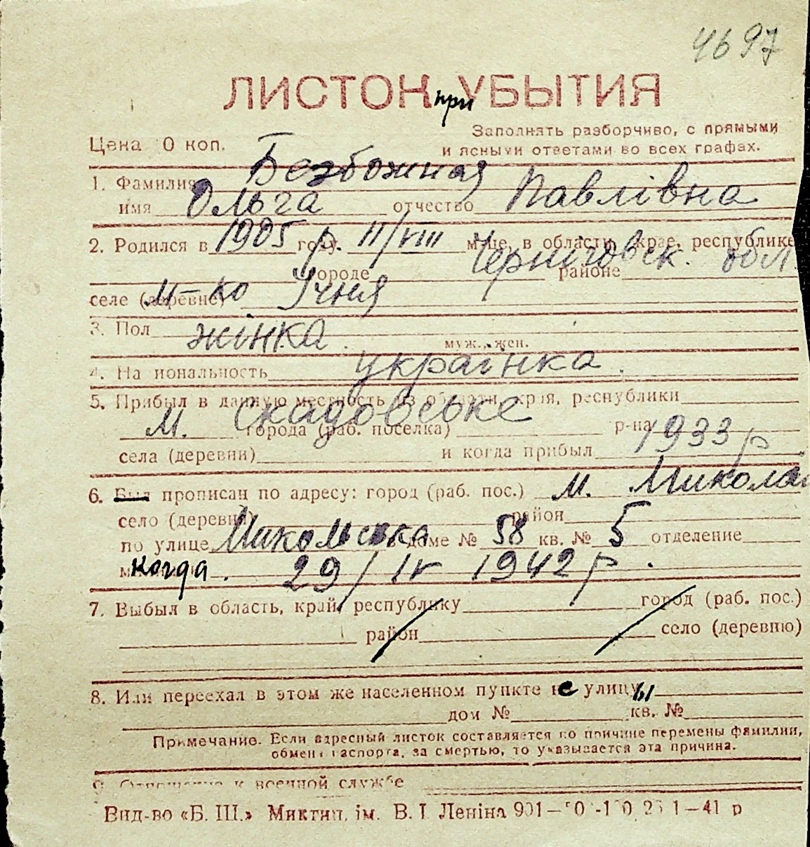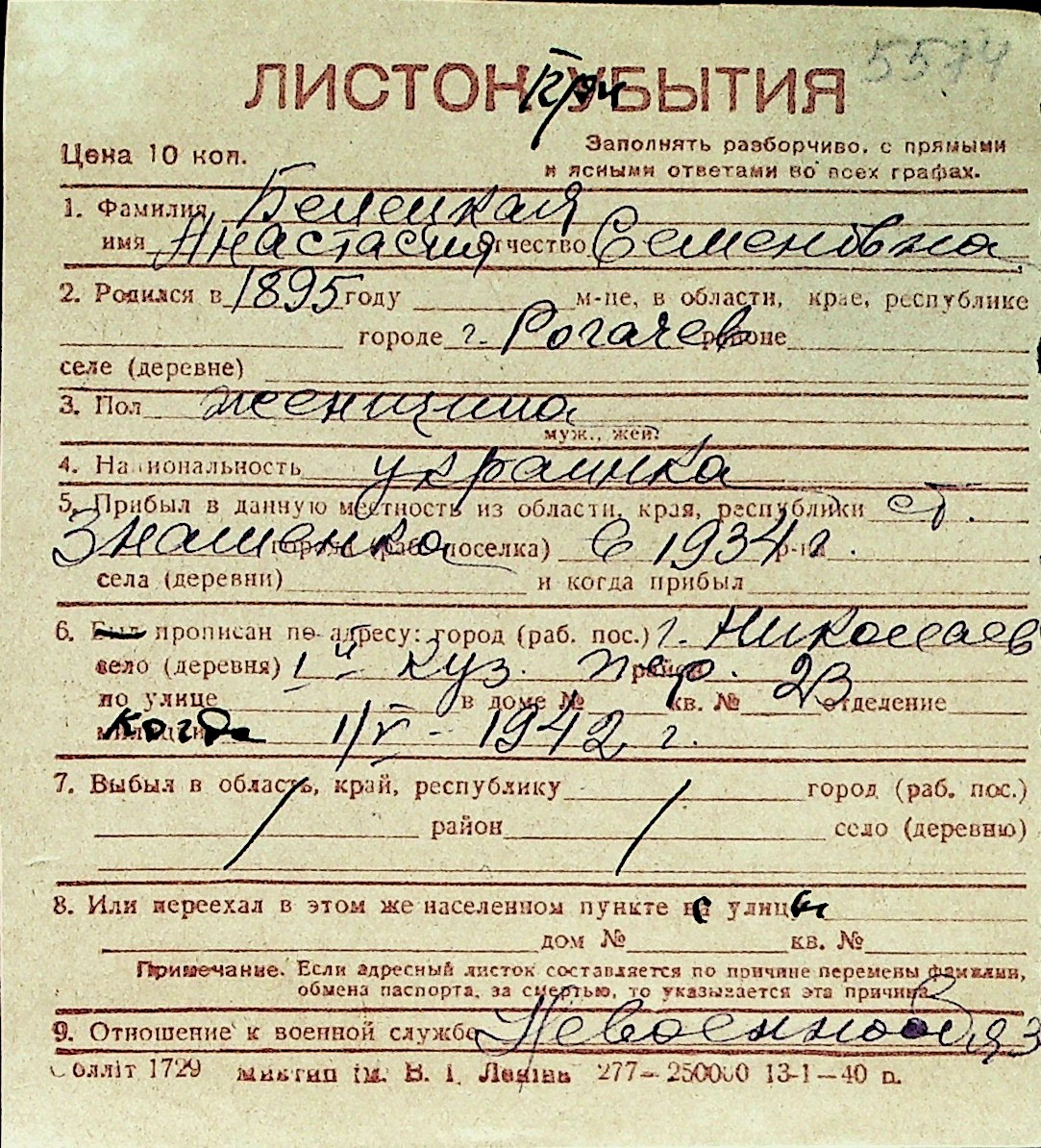 ◦ ◦ Перелік карток на осіб, які мешкали у м. Миколаїв у період окупації 1941–1944 років
