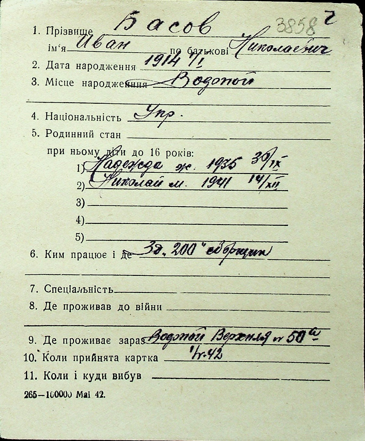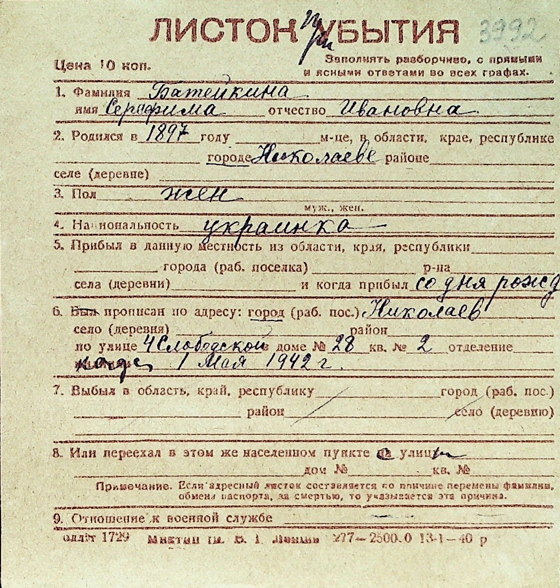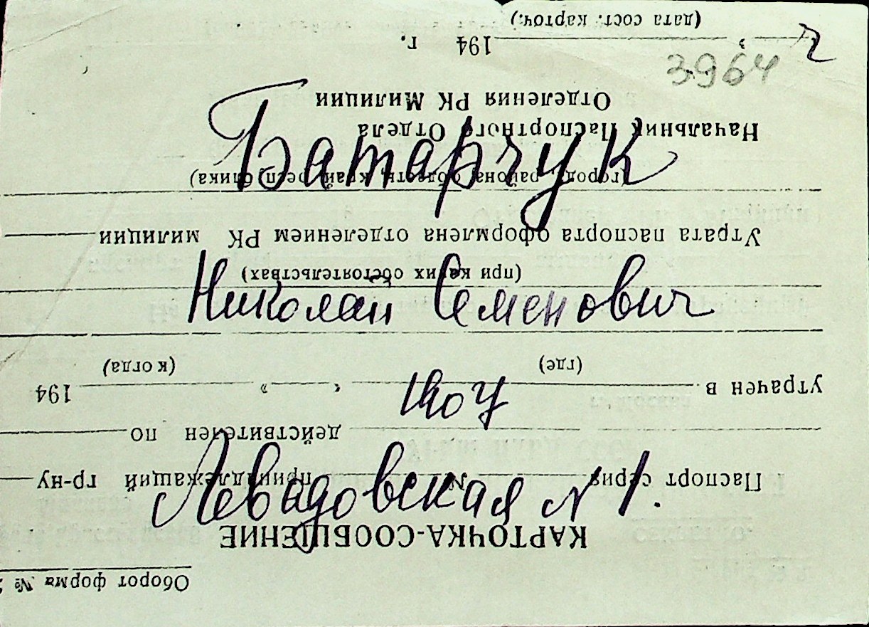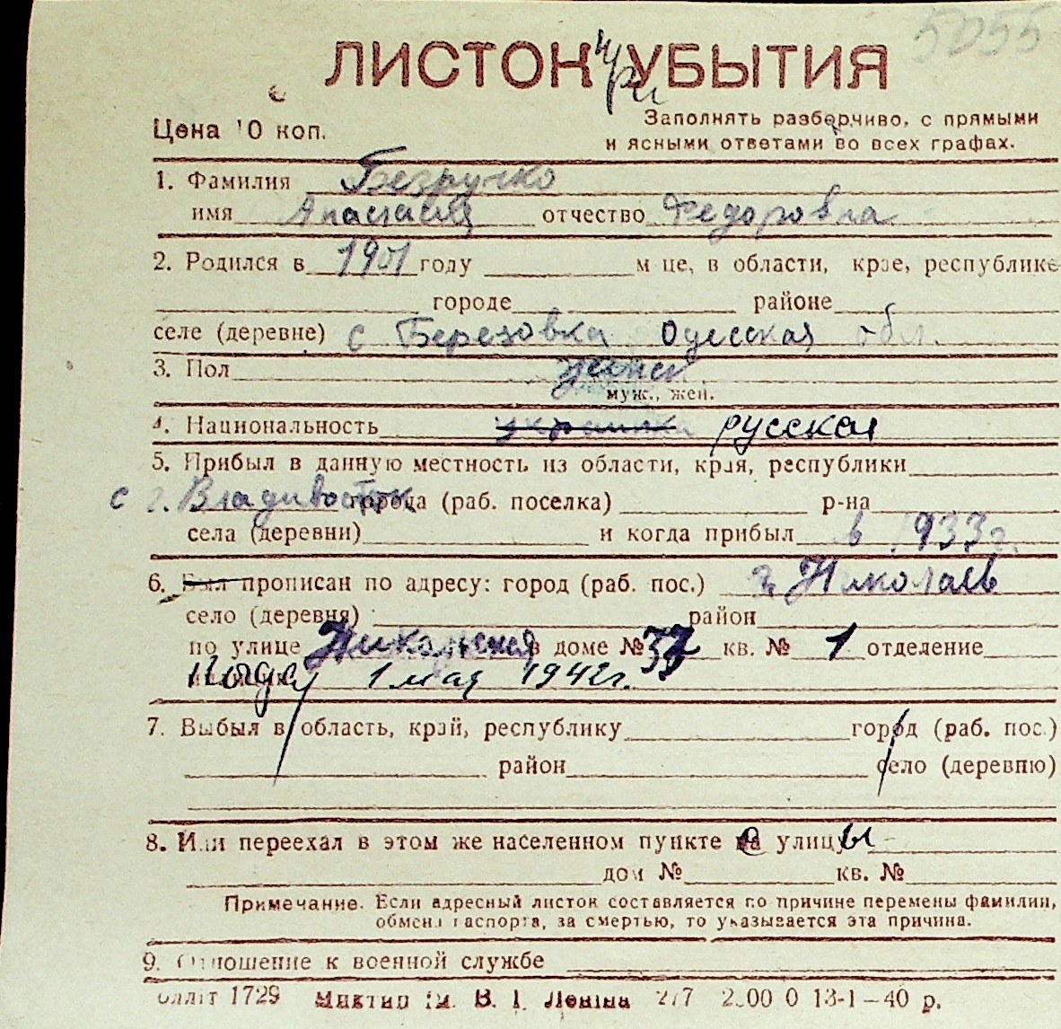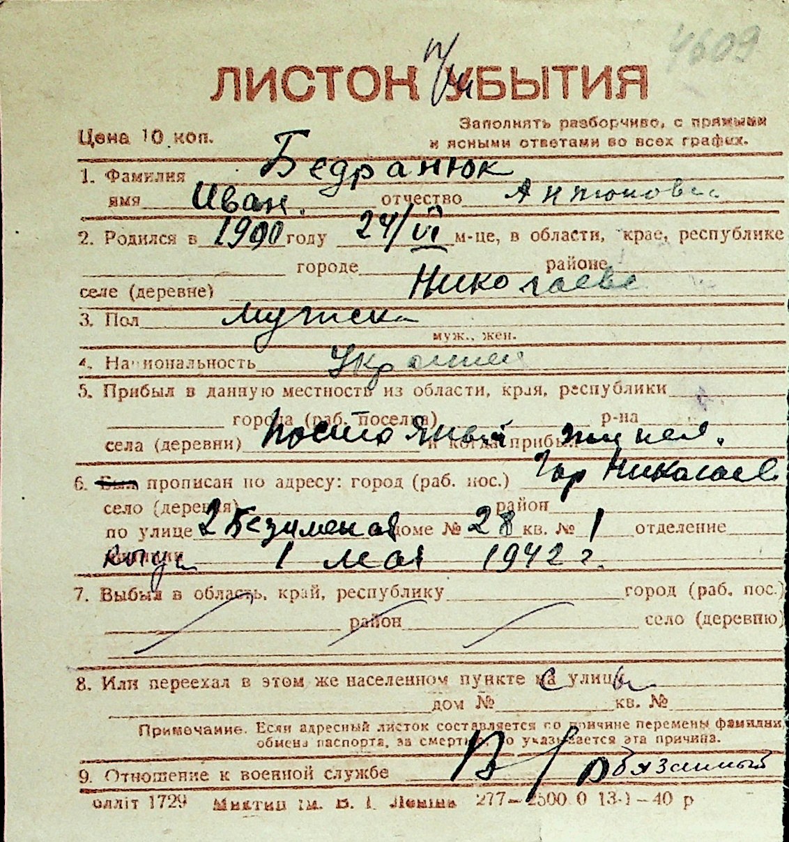 ◦ ◦ Перелік карток на осіб, які мешкали у м. Миколаїв у період окупації 1941–1944 років