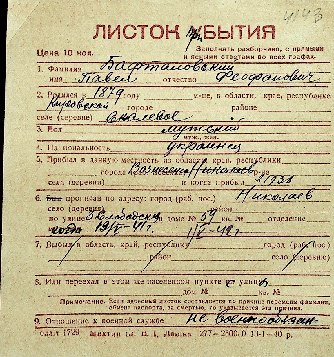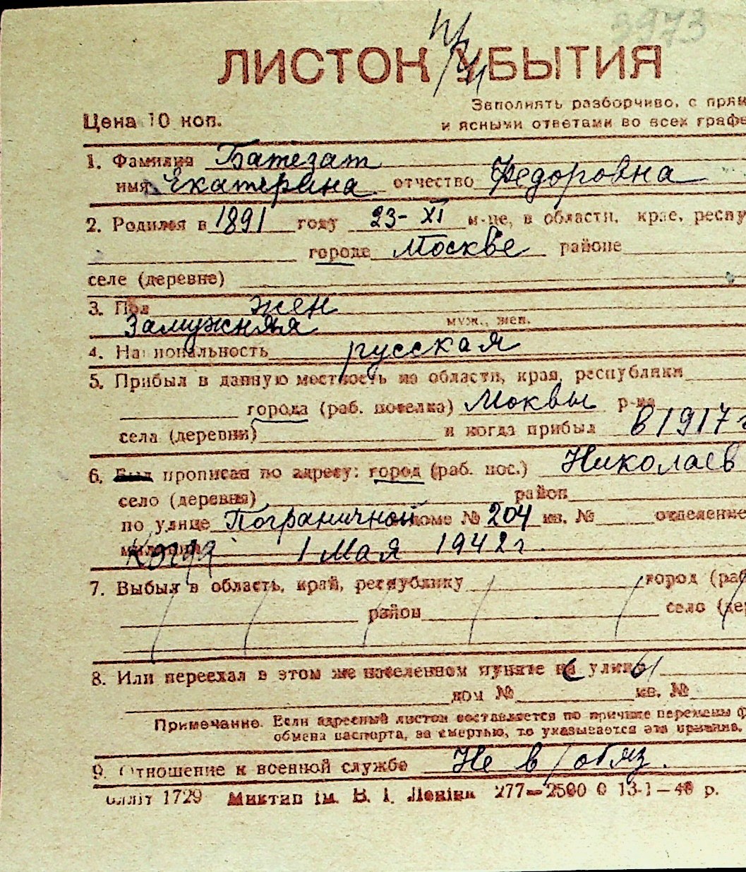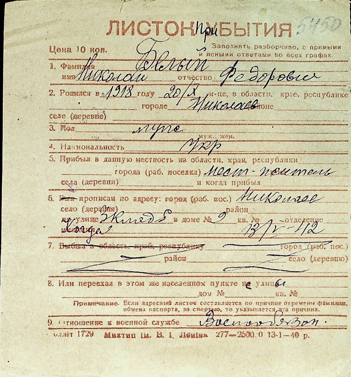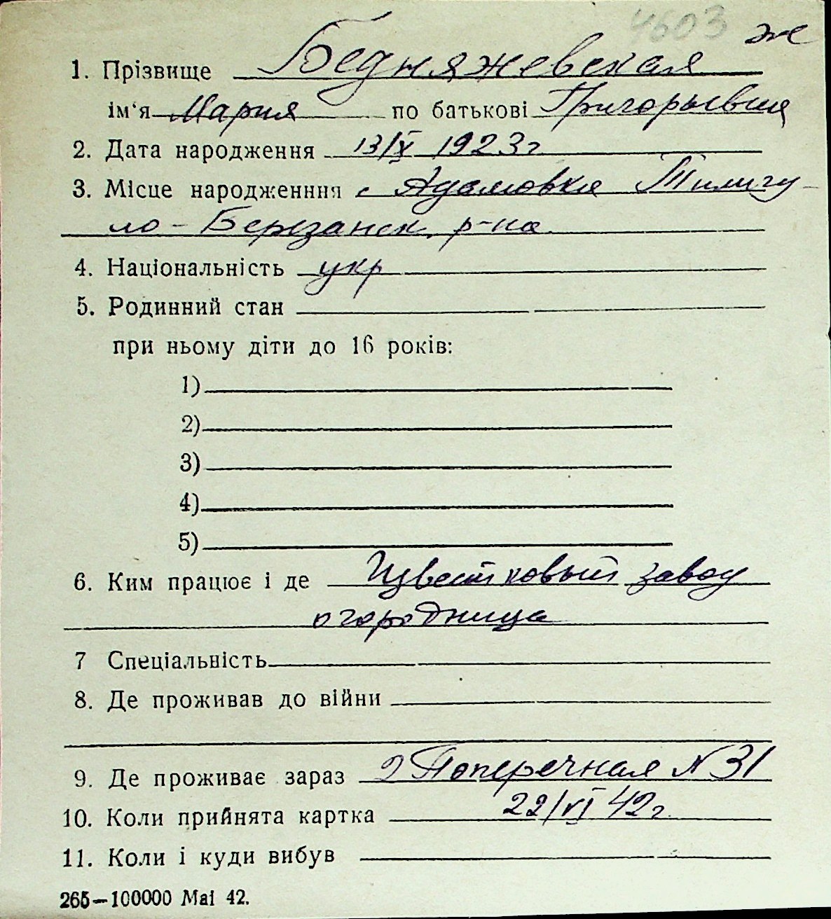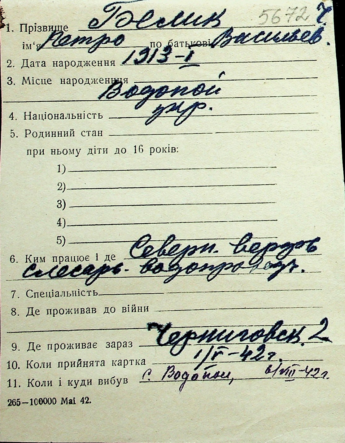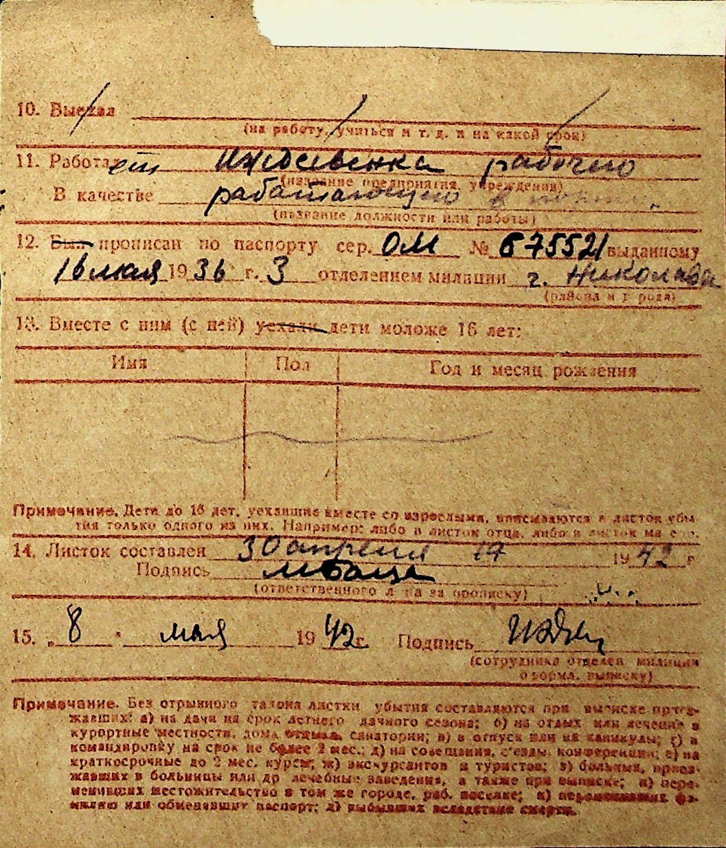 ◦ ◦ Перелік карток на осіб, які мешкали у м. Миколаїв у період окупації 1941–1944 років