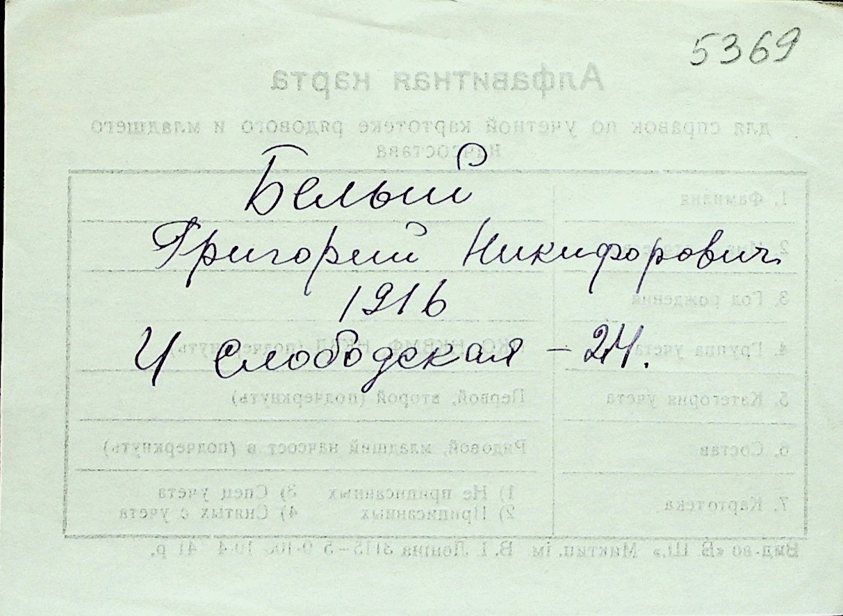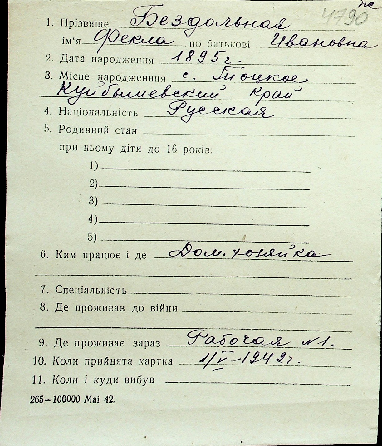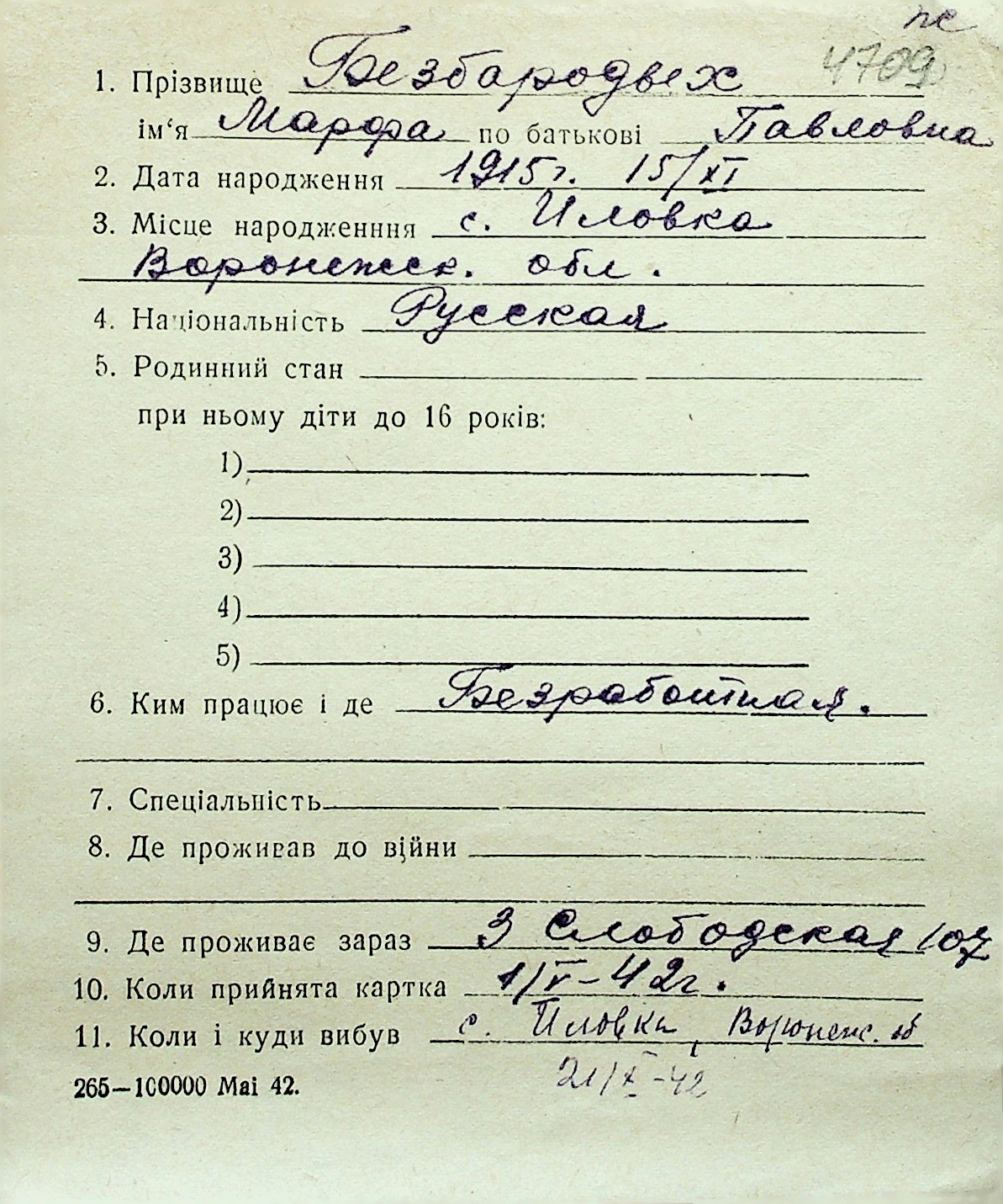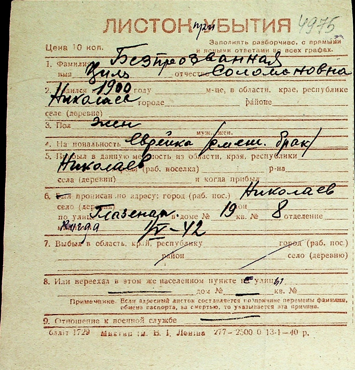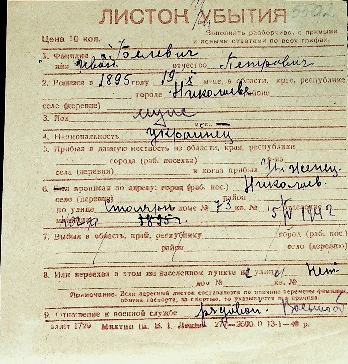◦ ◦ Перелік карток на осіб, які мешкали у м. Миколаїв у період окупації 1941–1944 років