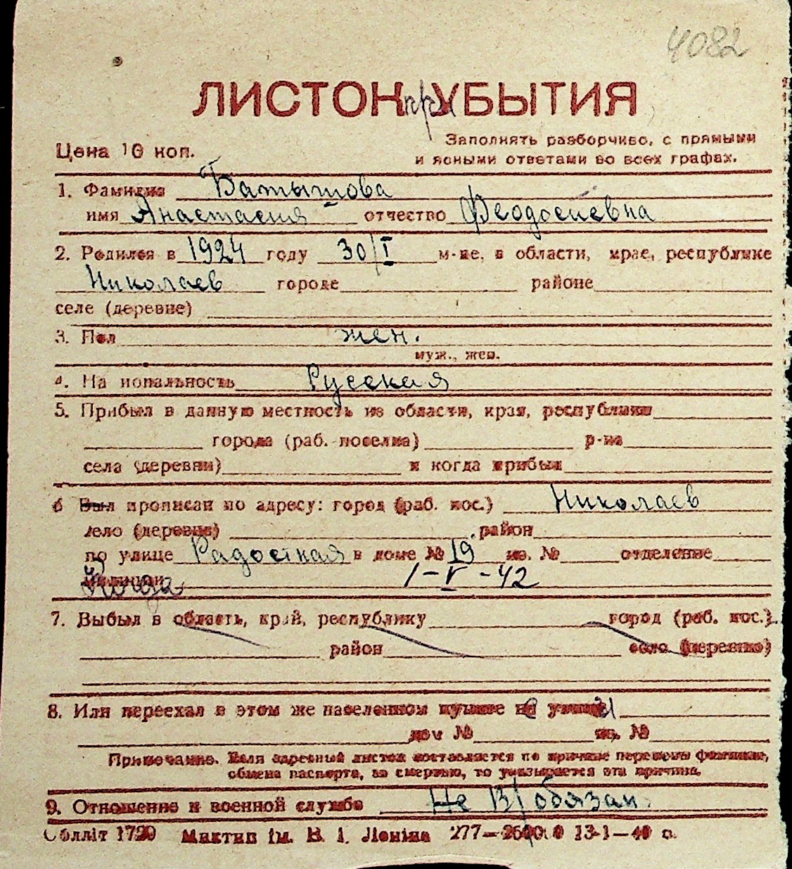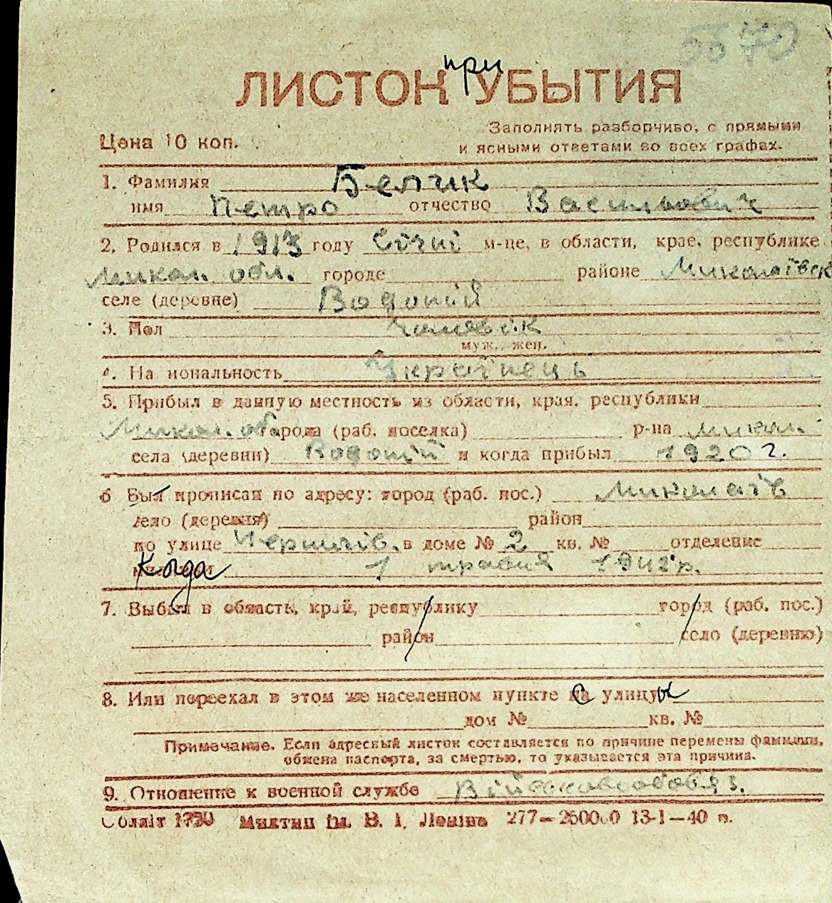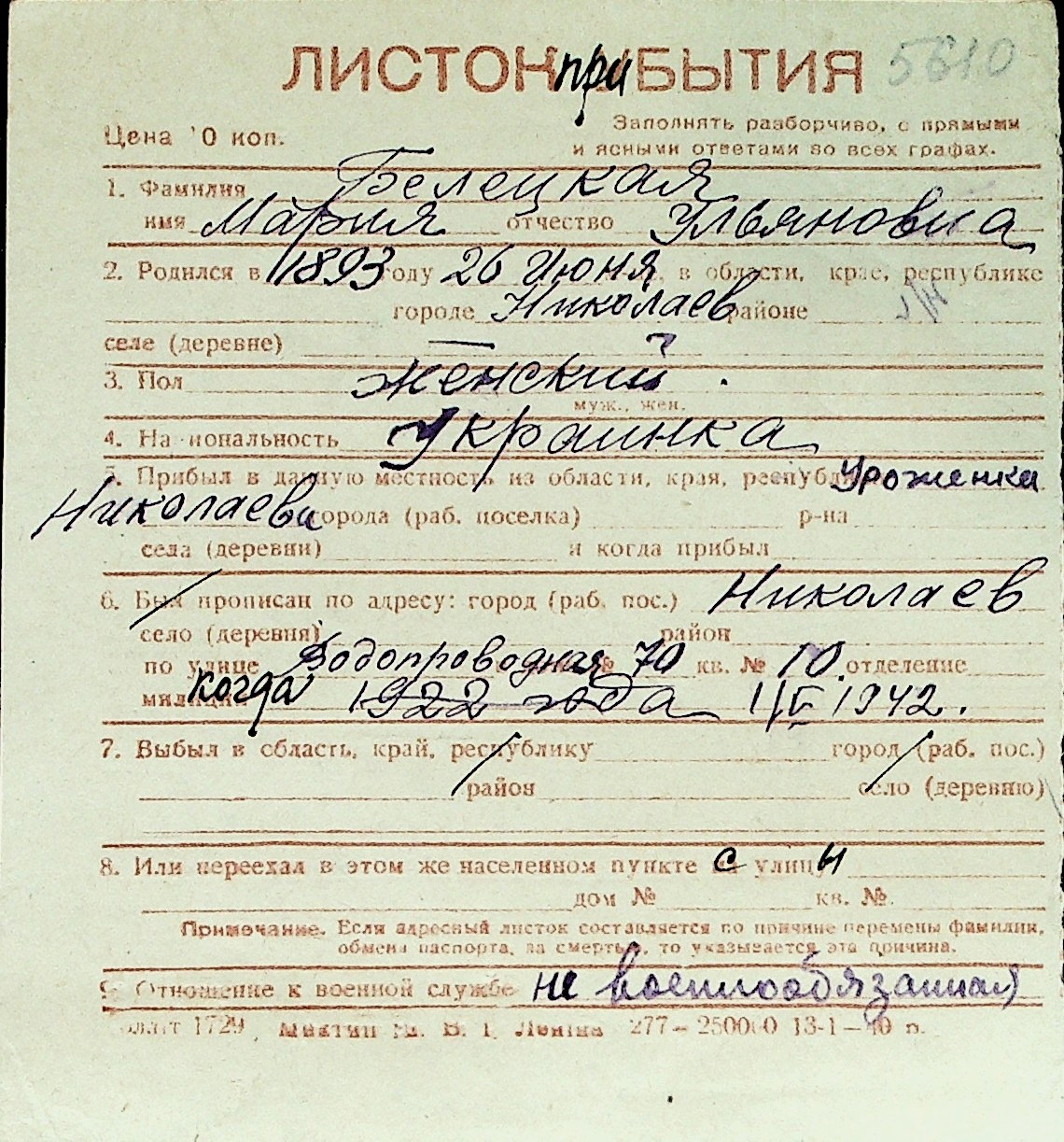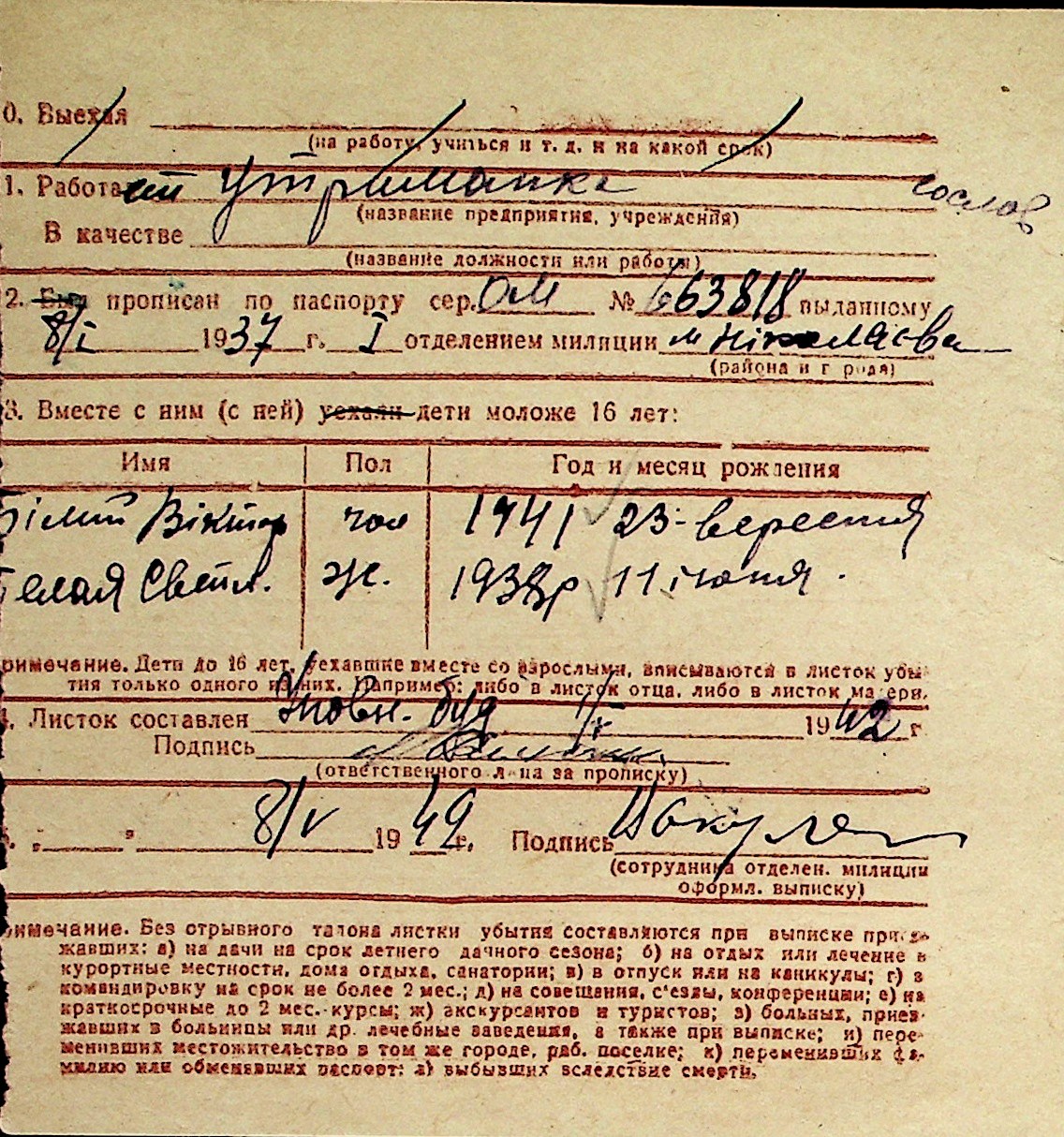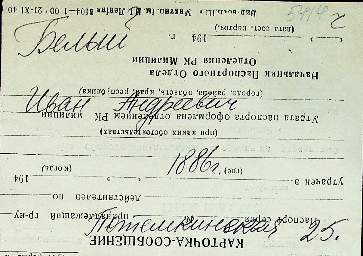 ◦ ◦ Перелік карток на осіб, які мешкали у м. Миколаїв у період окупації 1941–1944 років