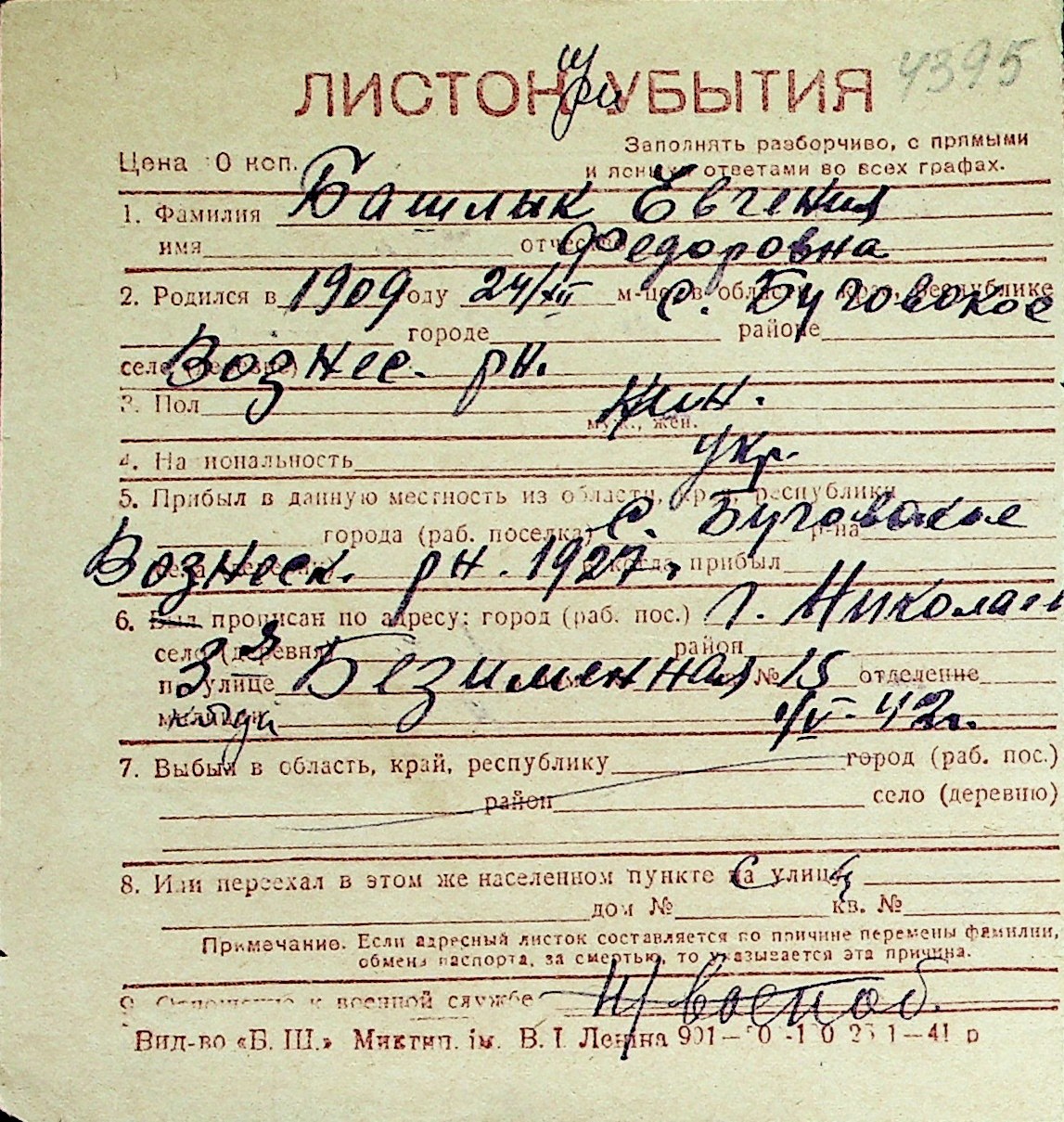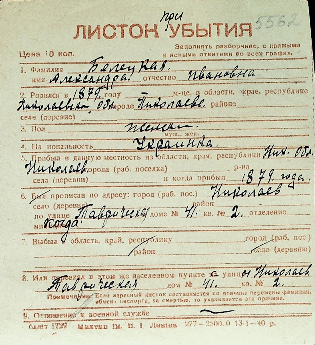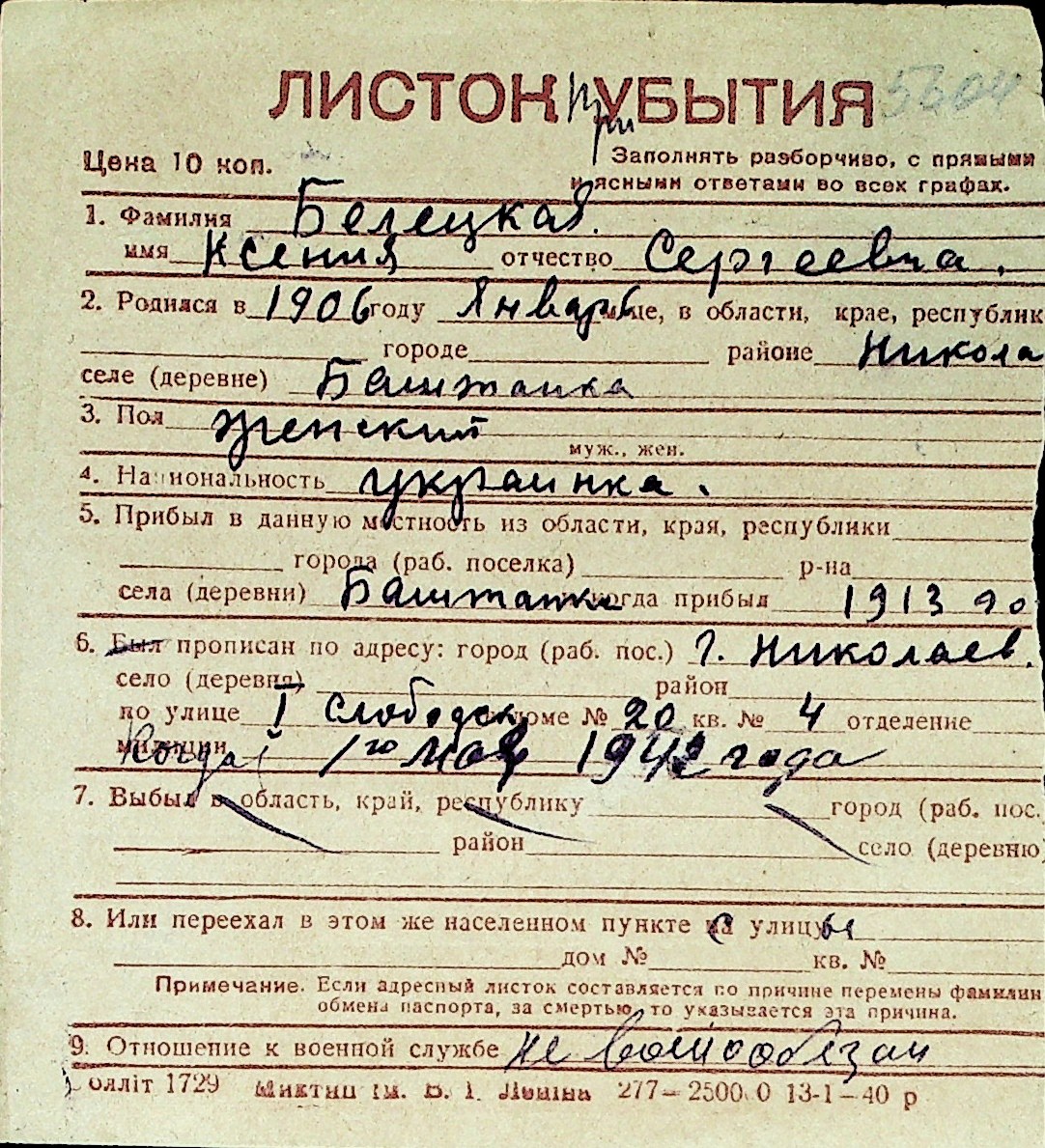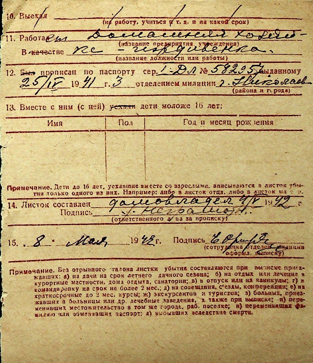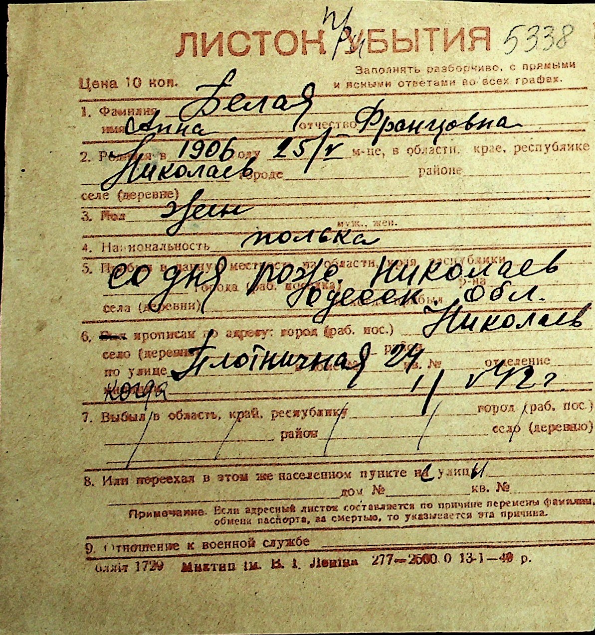 ◦ ◦ Перелік карток на осіб, які мешкали у м. Миколаїв у період окупації 1941–1944 років